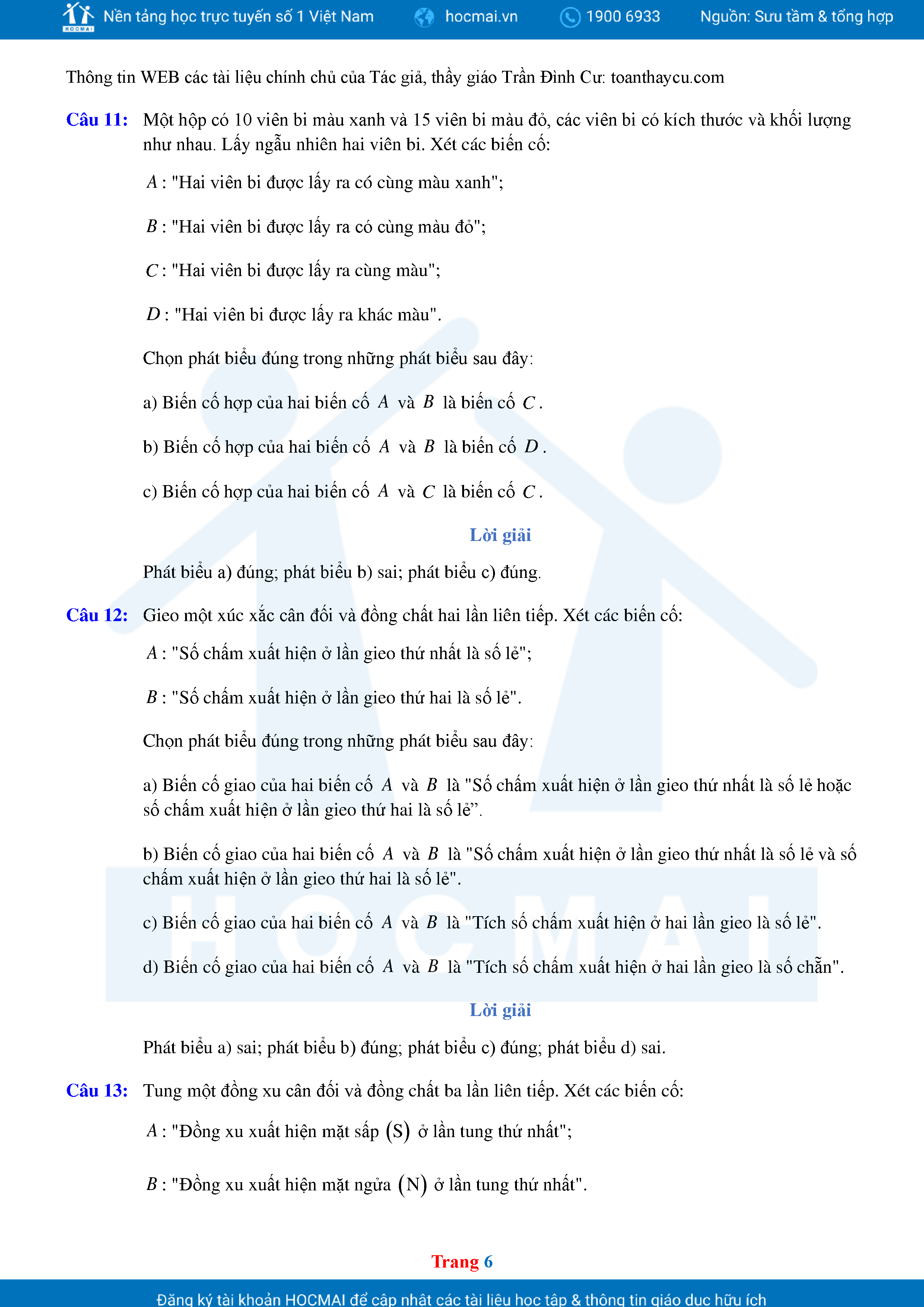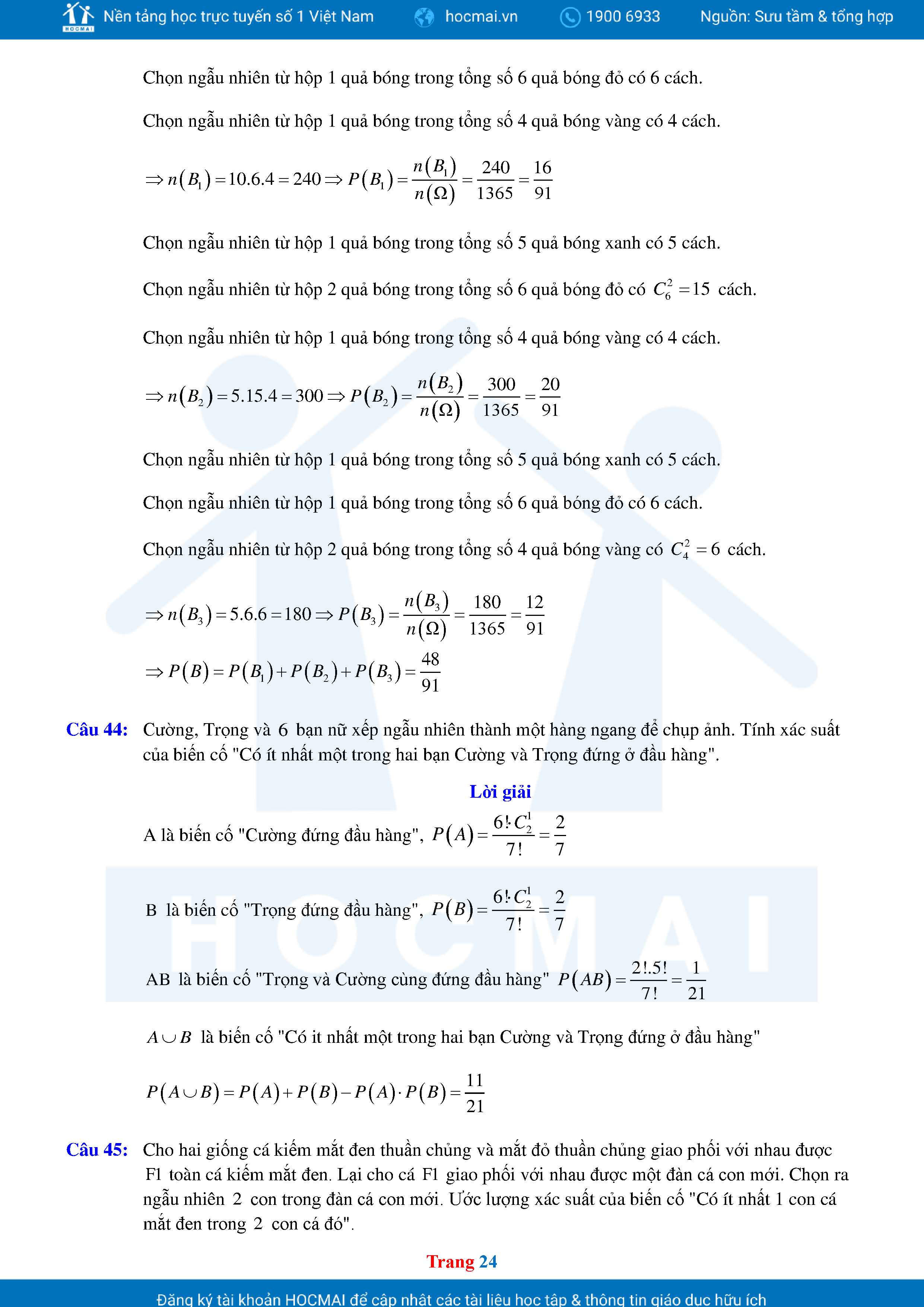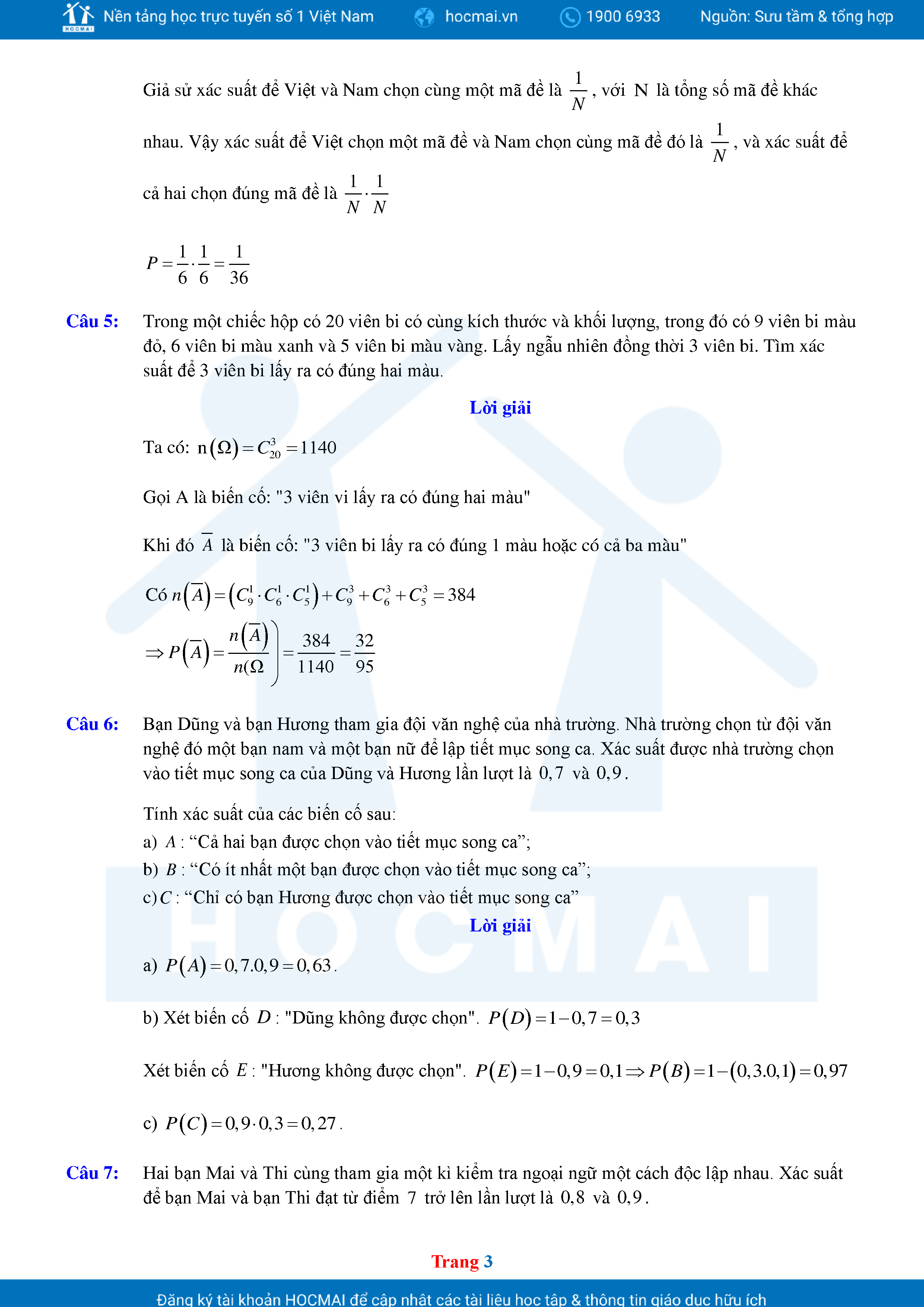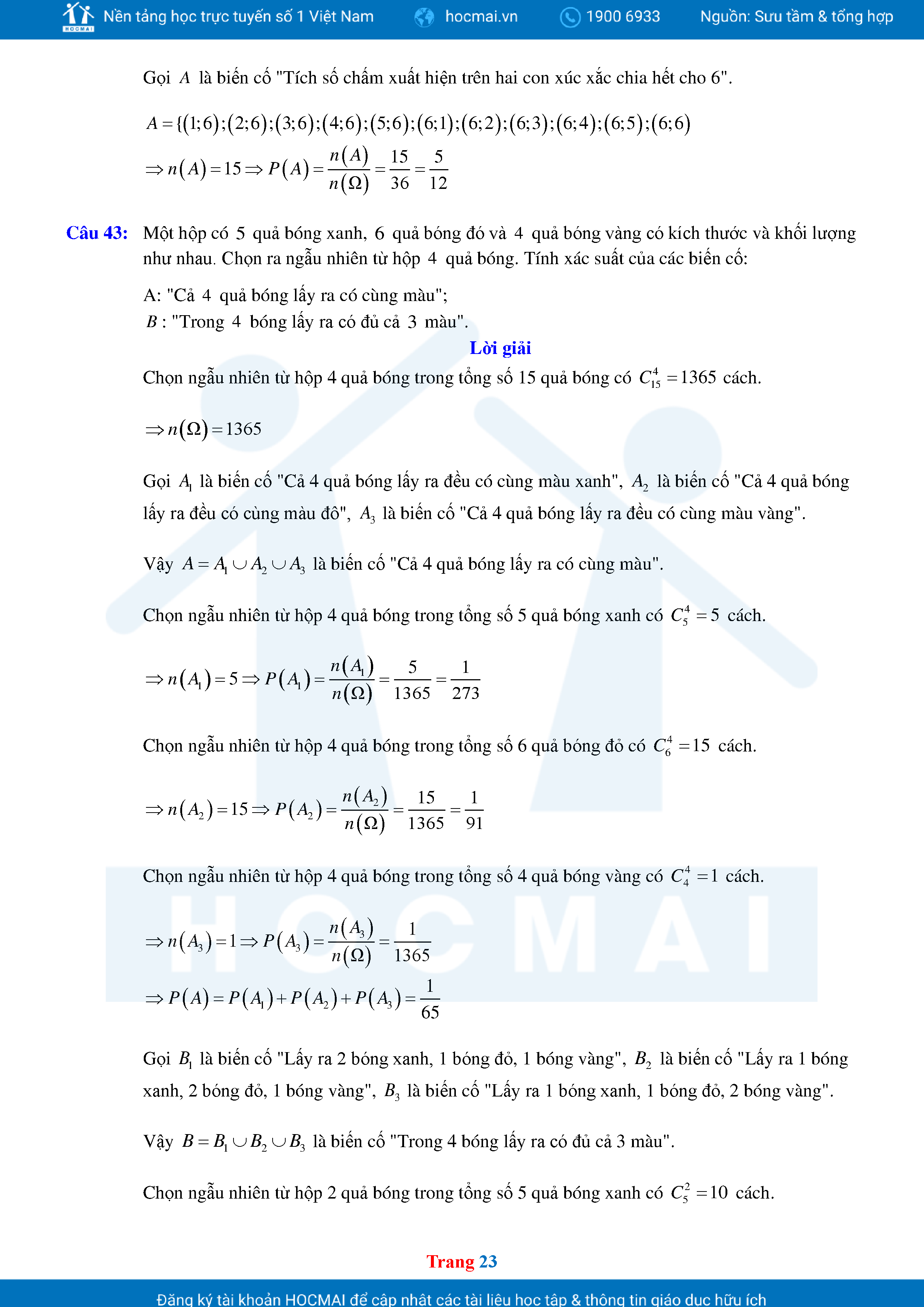 Các Dạng Toán Thực Tế Xác Suất Lớp 11 Có Lời Giải Chi Tiết