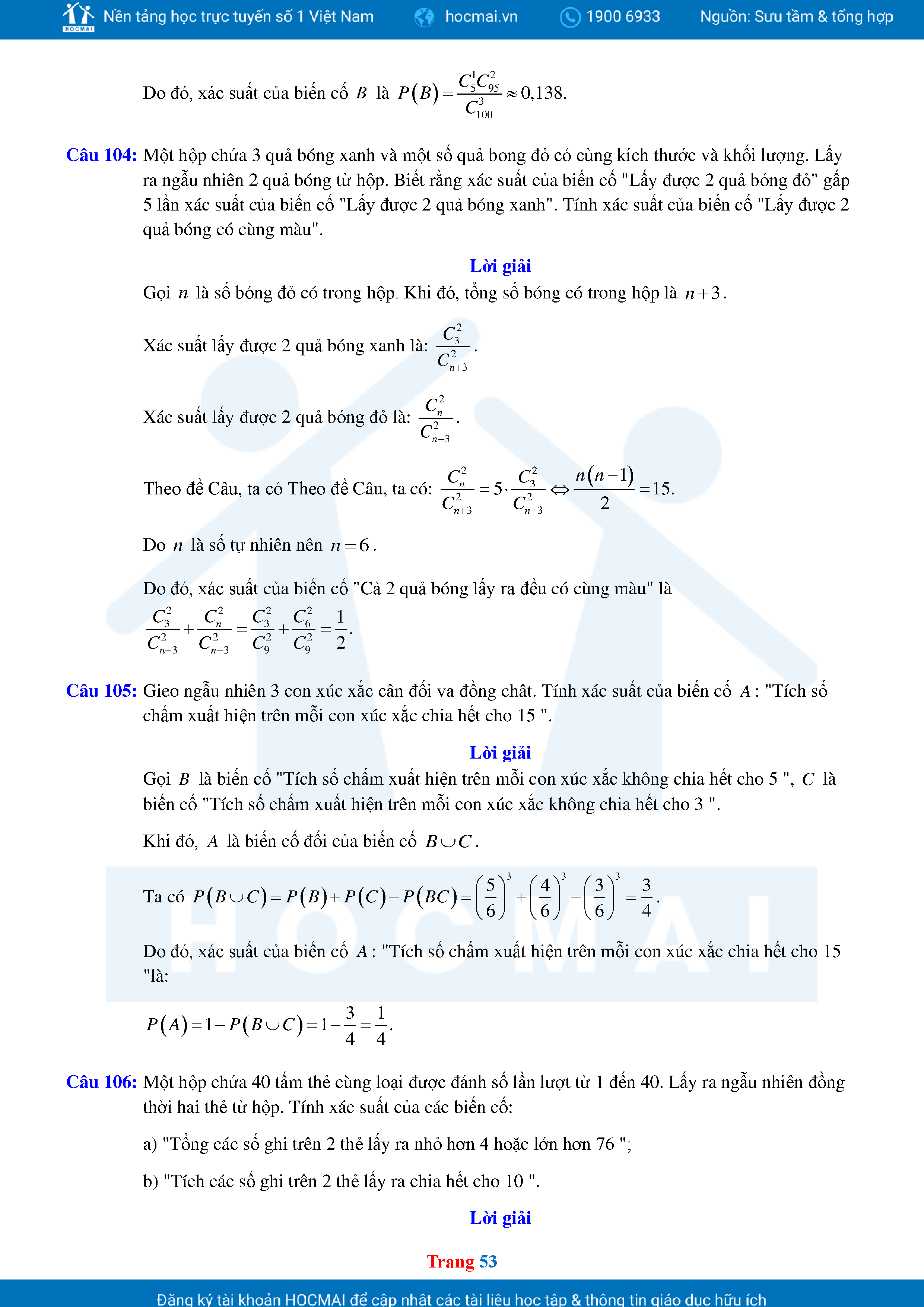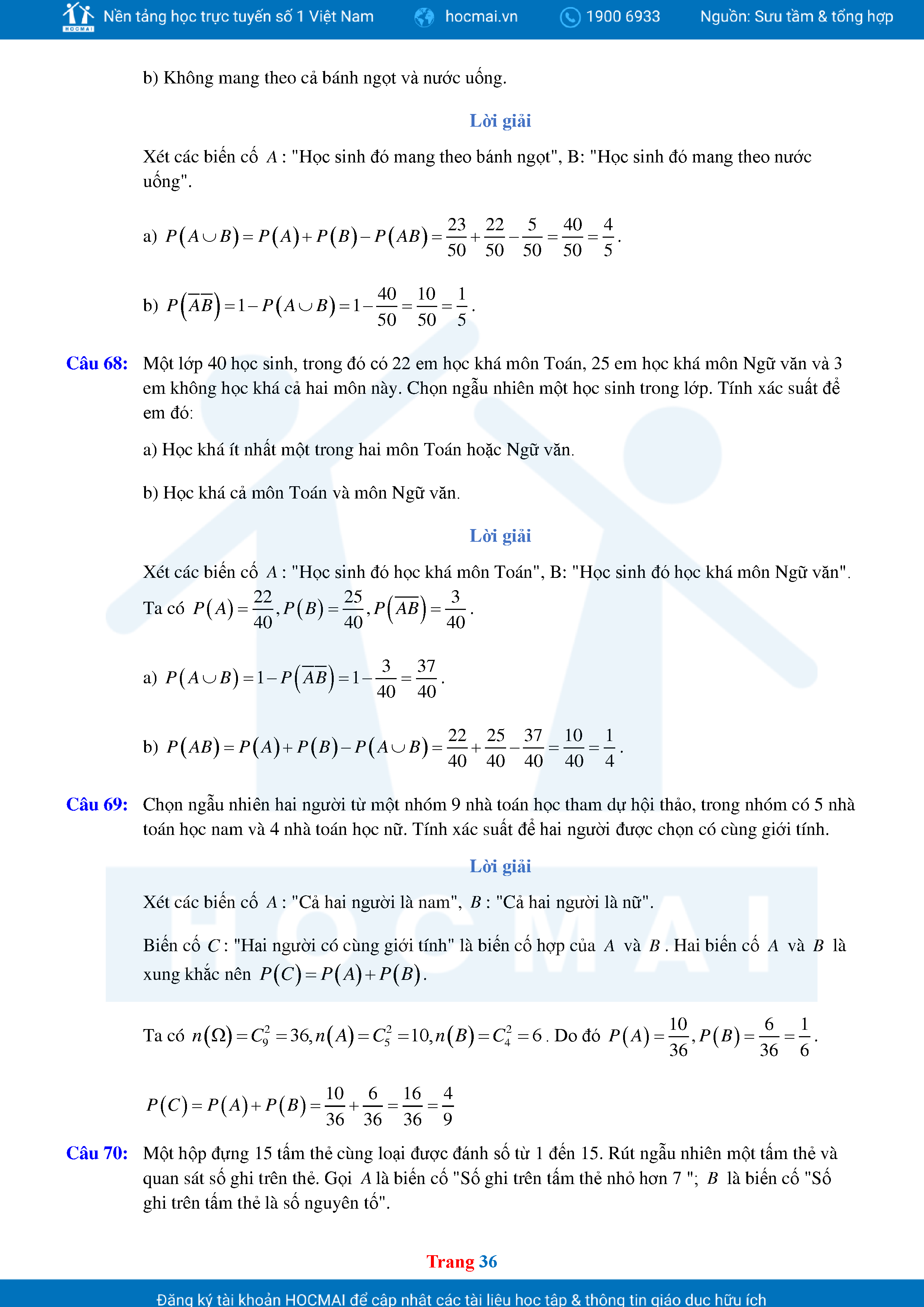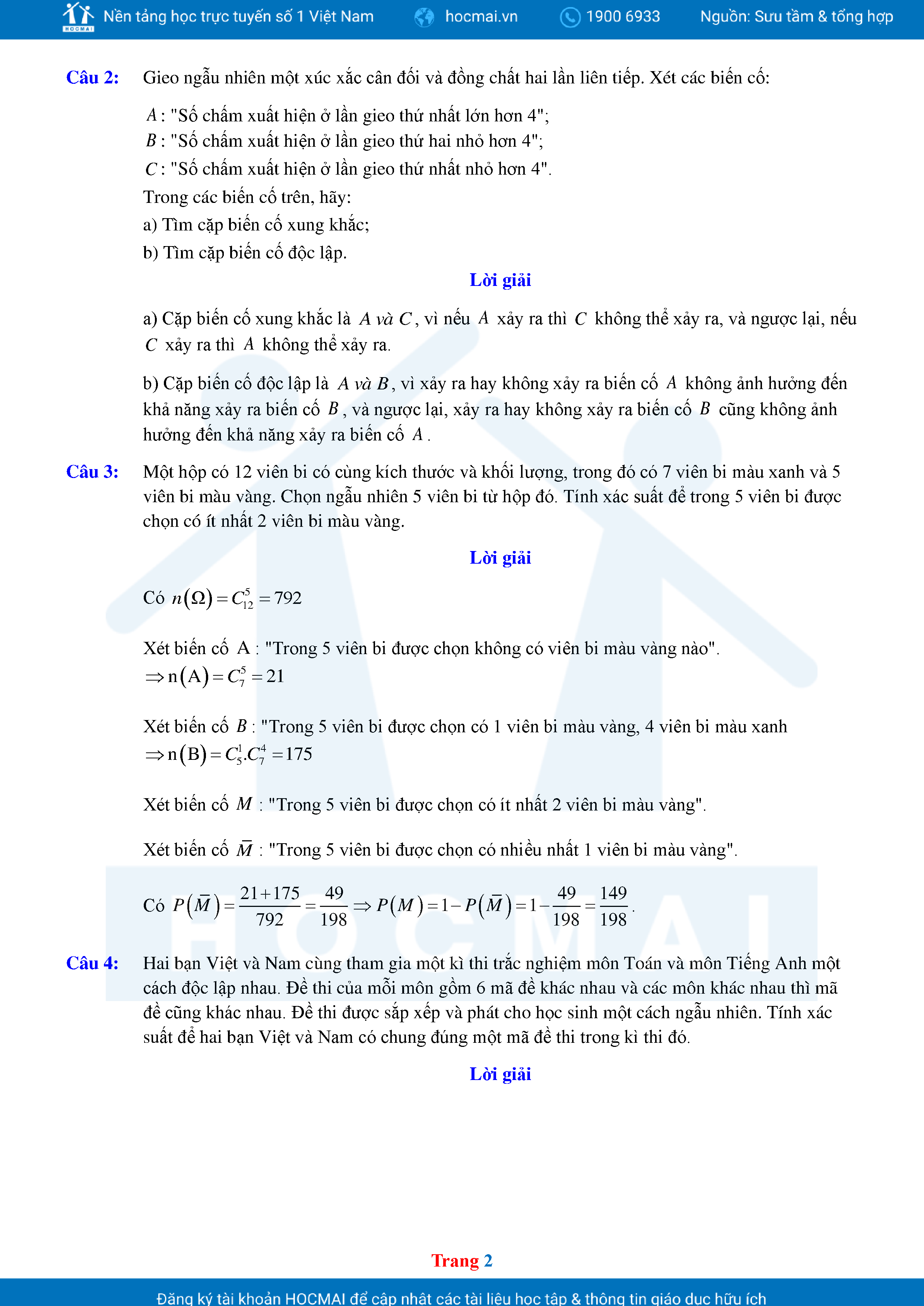 Các Dạng Toán Thực Tế Xác Suất Lớp 11 Có Lời Giải Chi Tiết