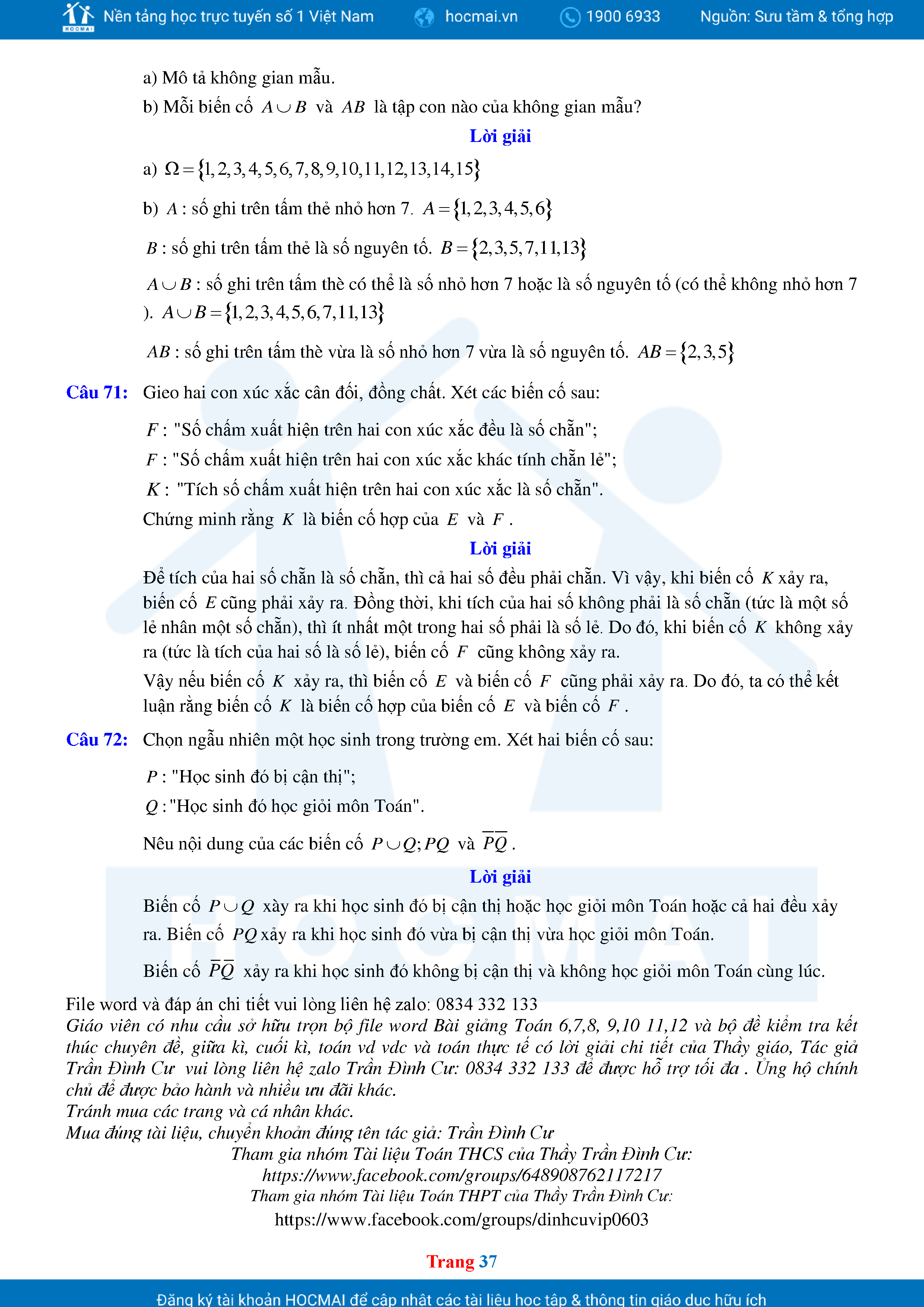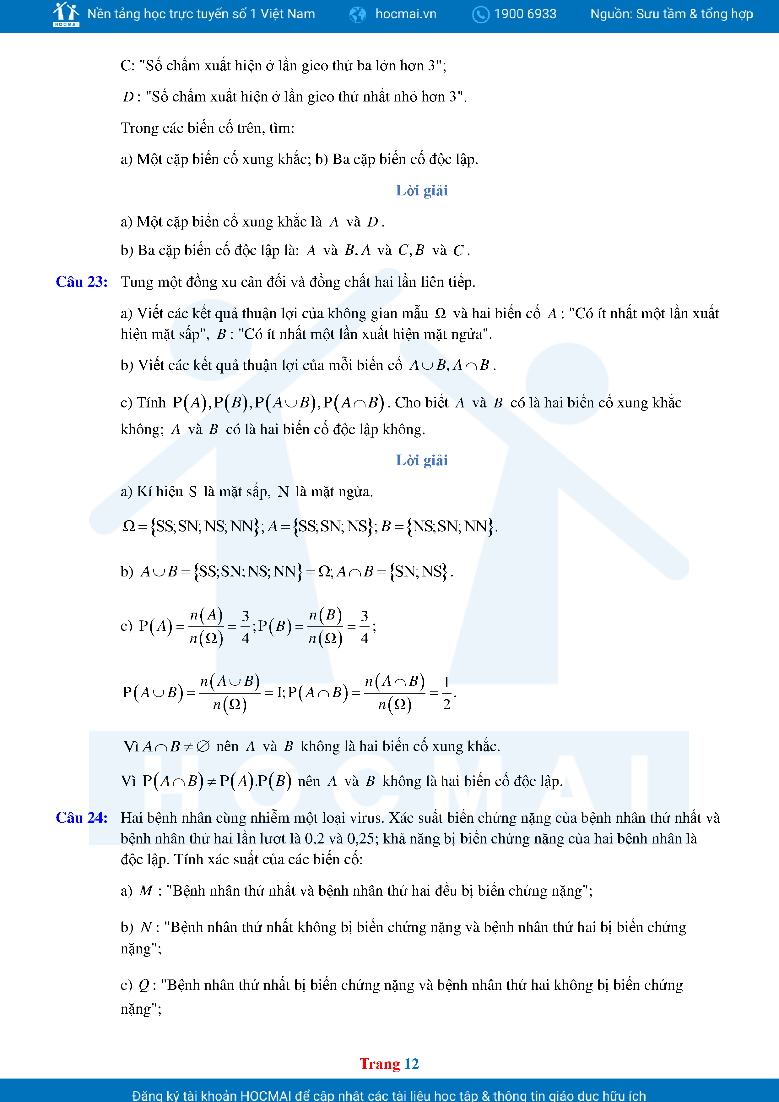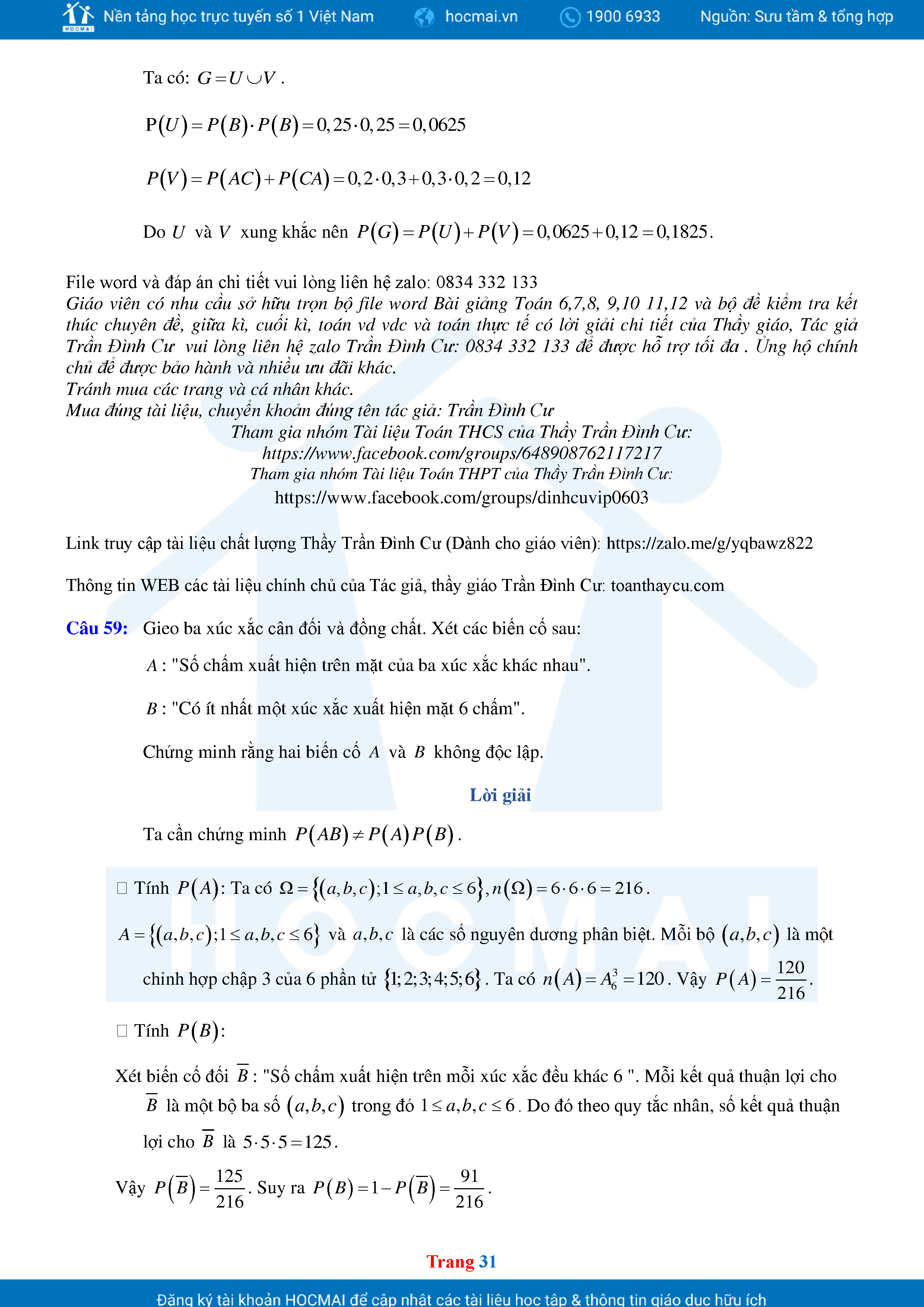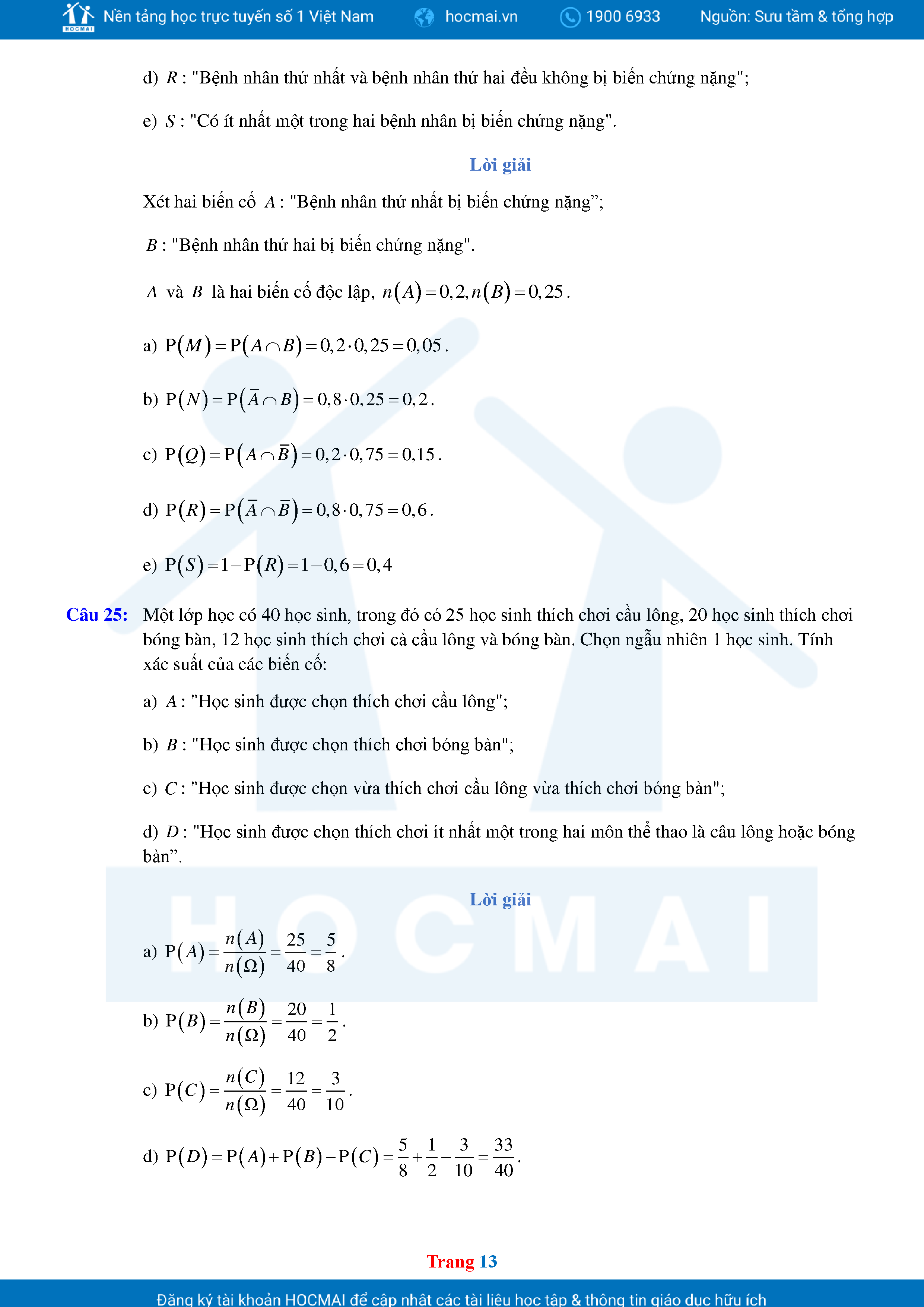 Các Dạng Toán Thực Tế Xác Suất Lớp 11 Có Lời Giải Chi Tiết