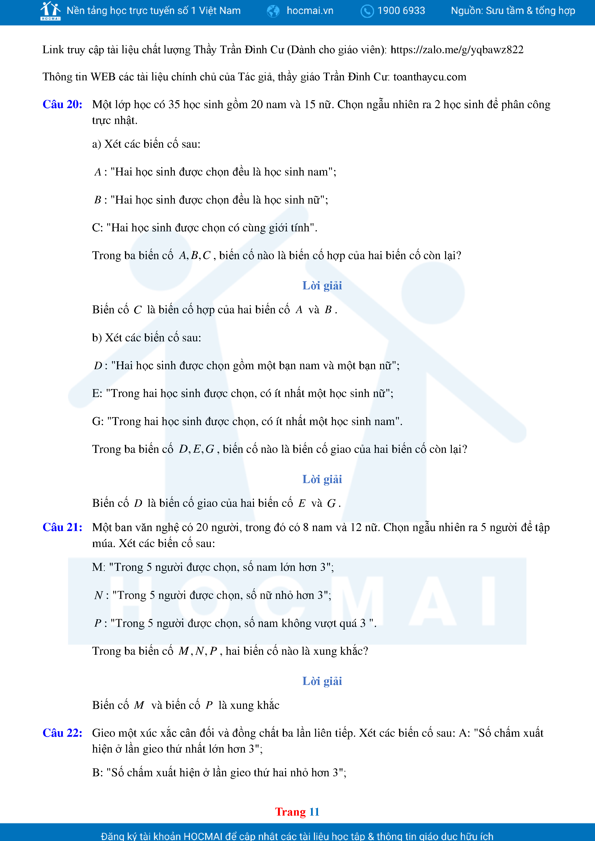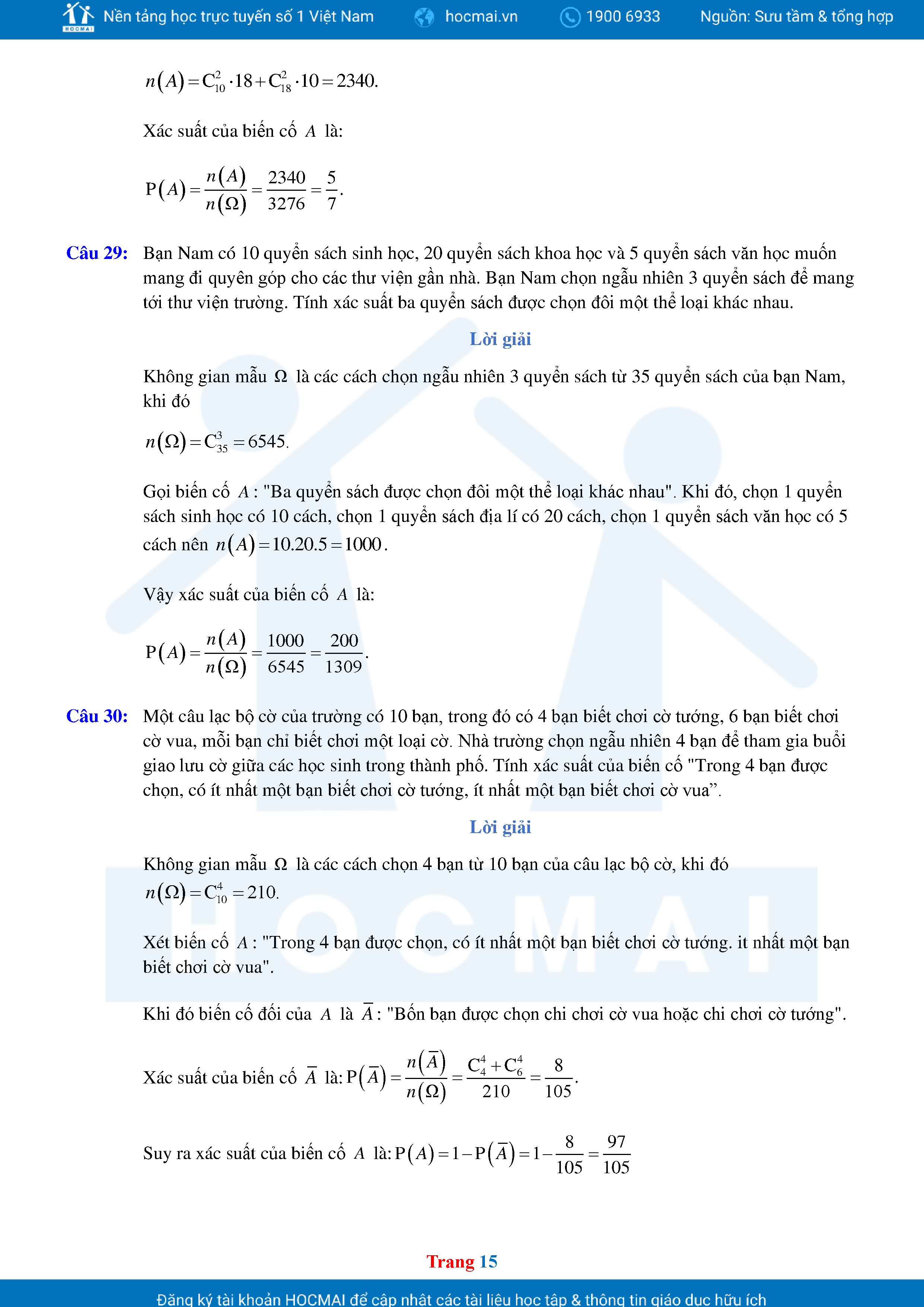Các Dạng Toán Thực Tế Xác Suất Lớp 11 Có Lời Giải Chi Tiết