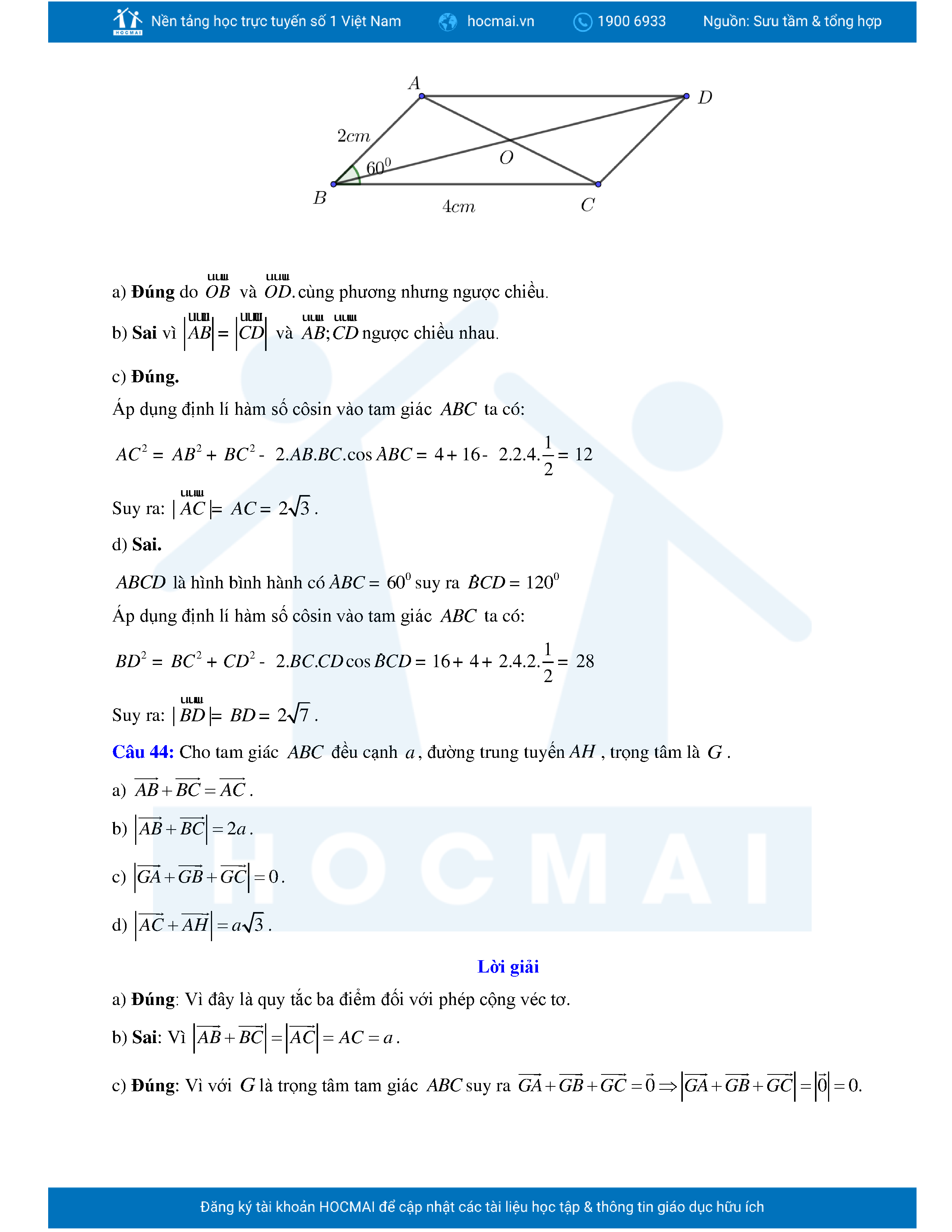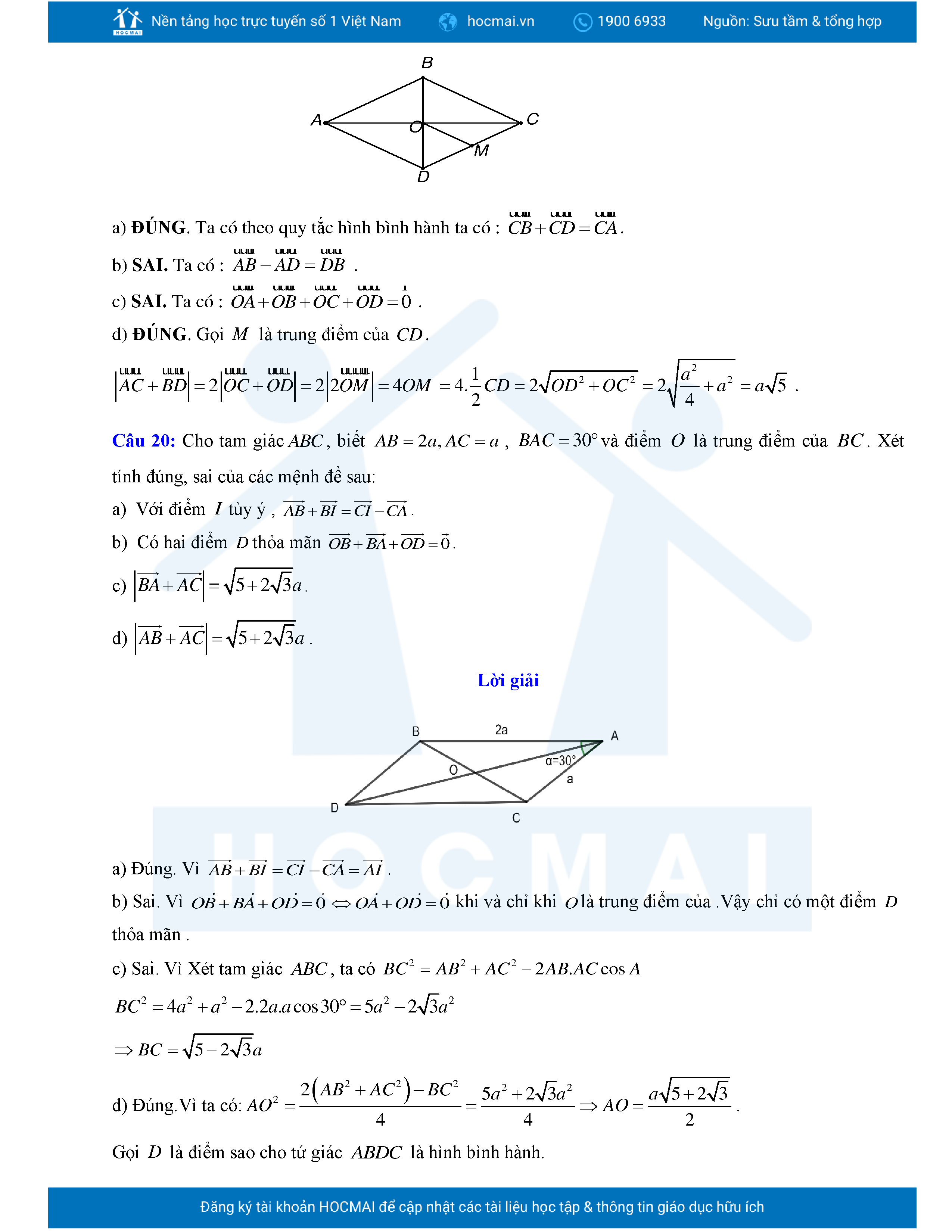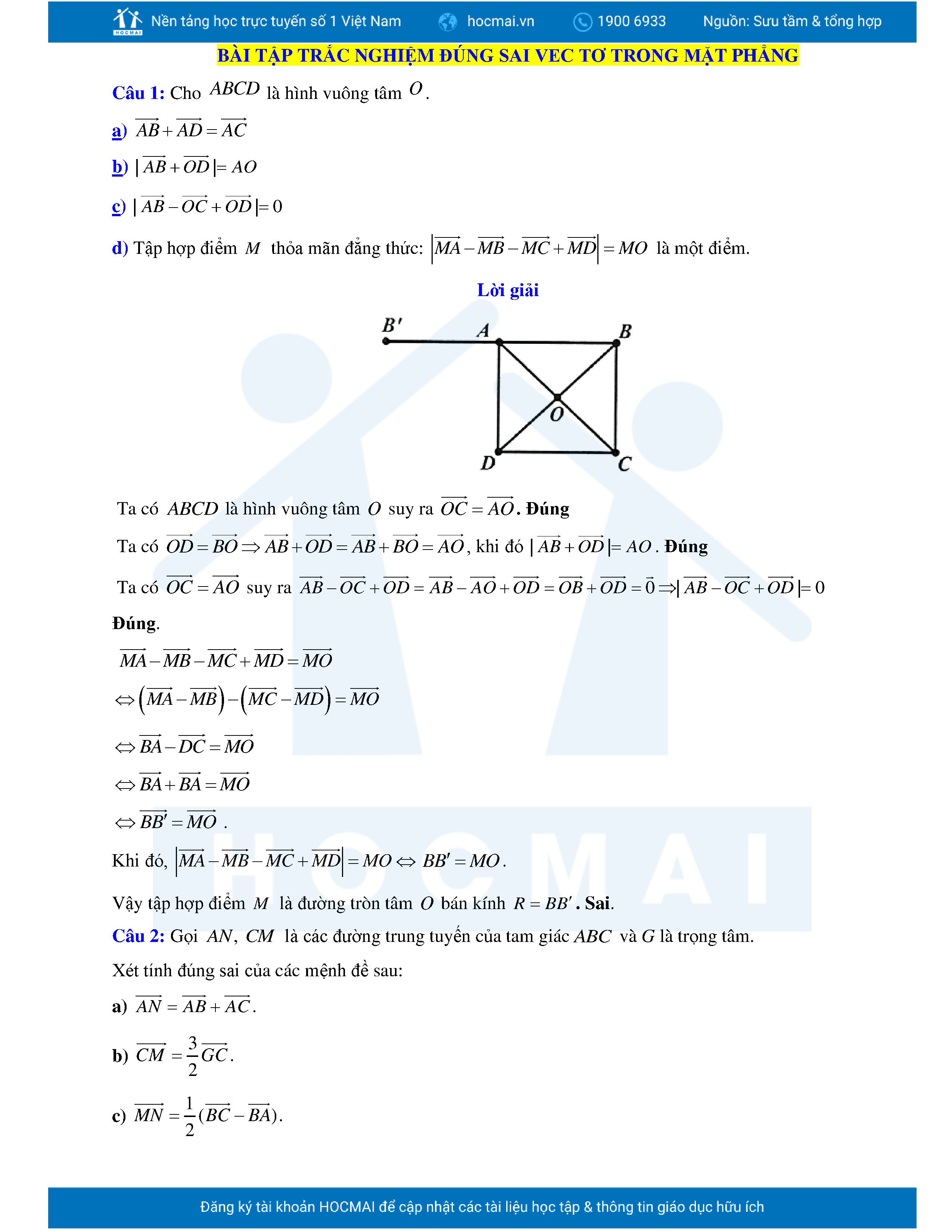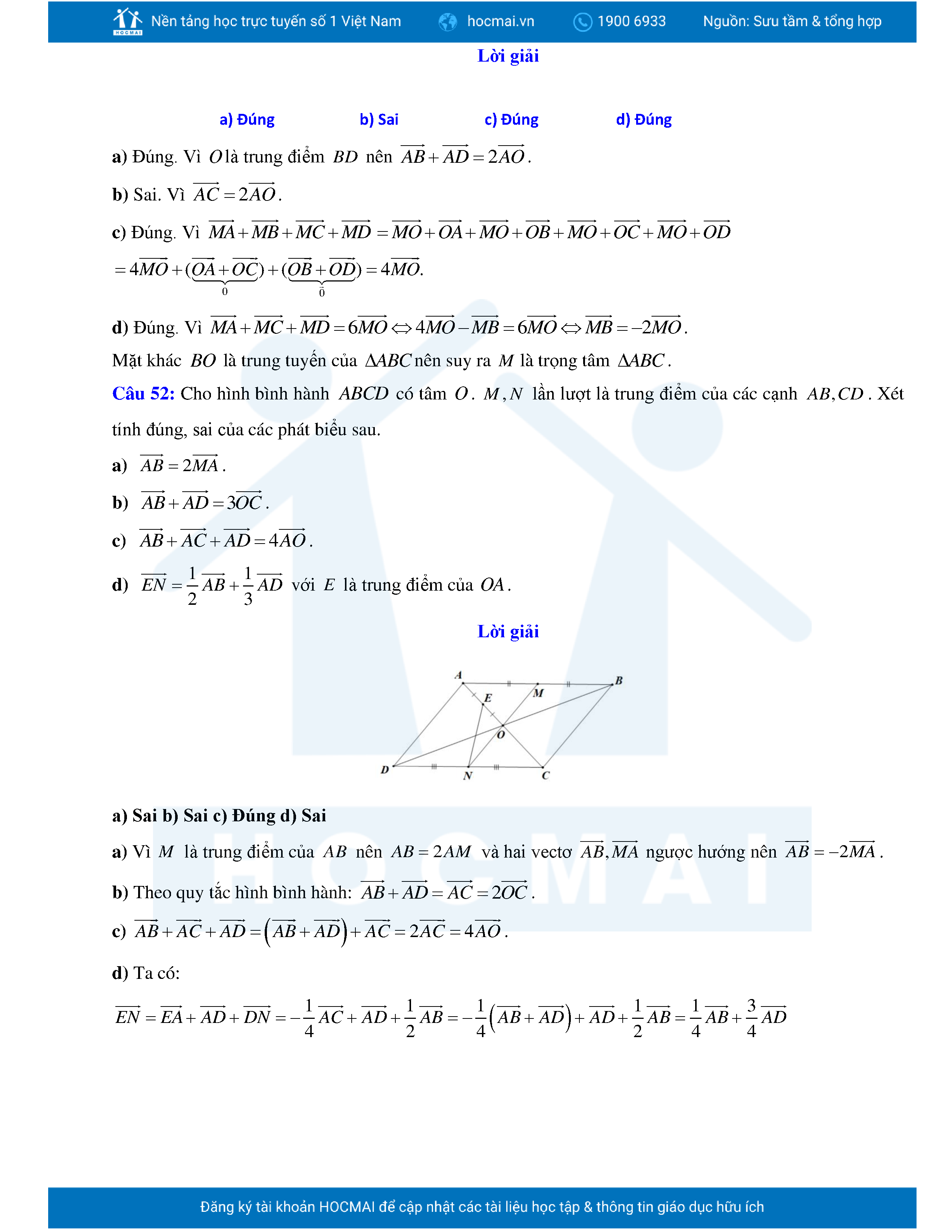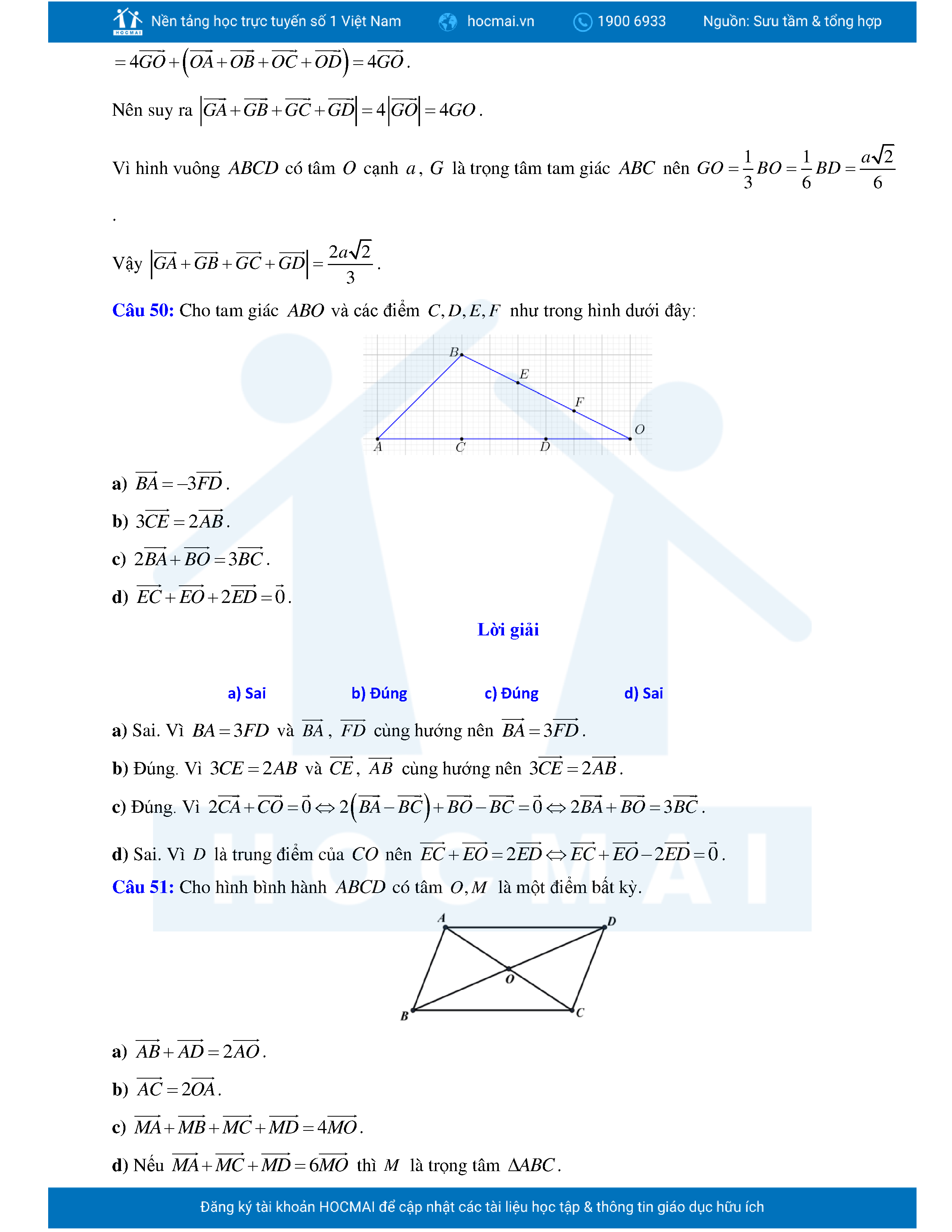 50 bài tập trắc nghiệm đúng sai Vectơ trong mặt phẳng kèm giải chi tiết.