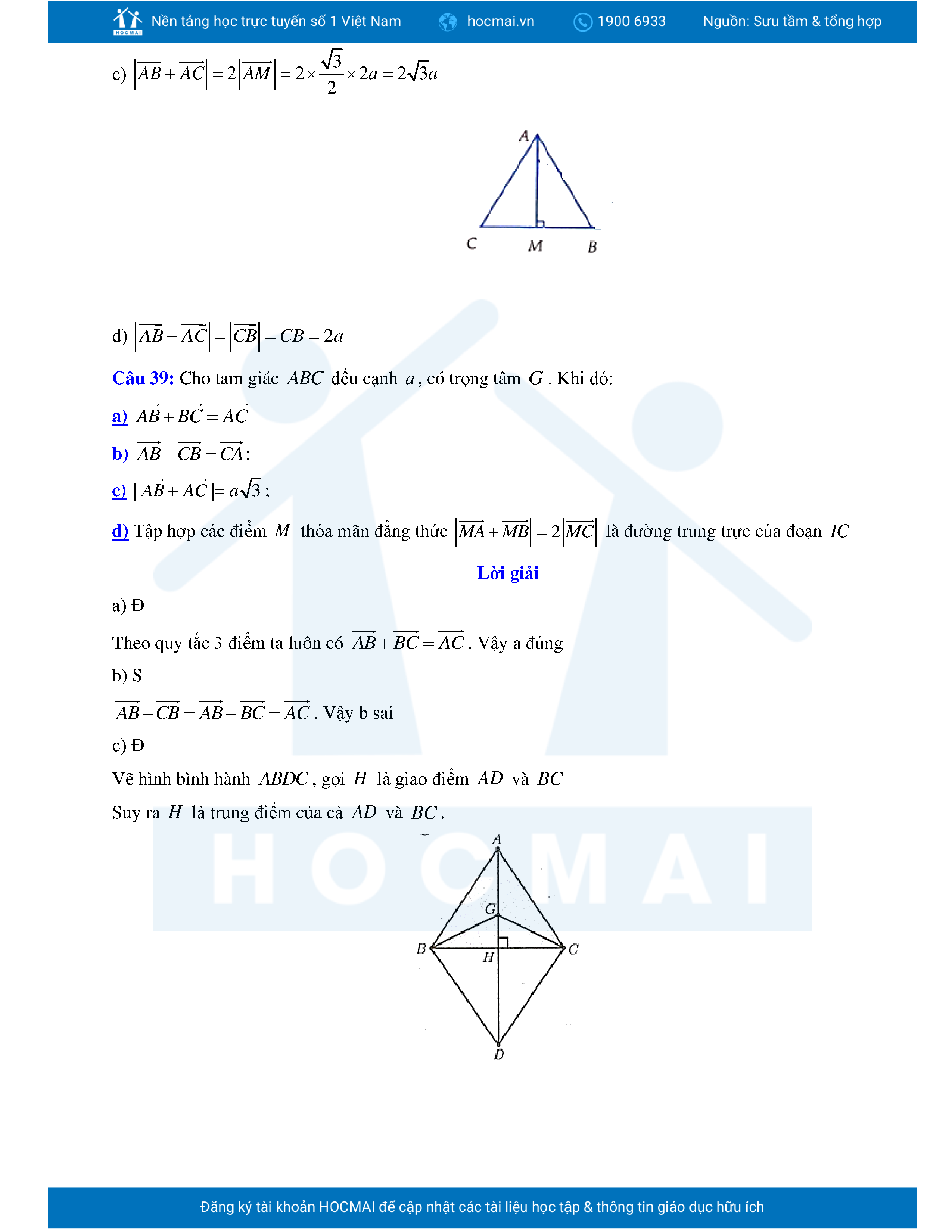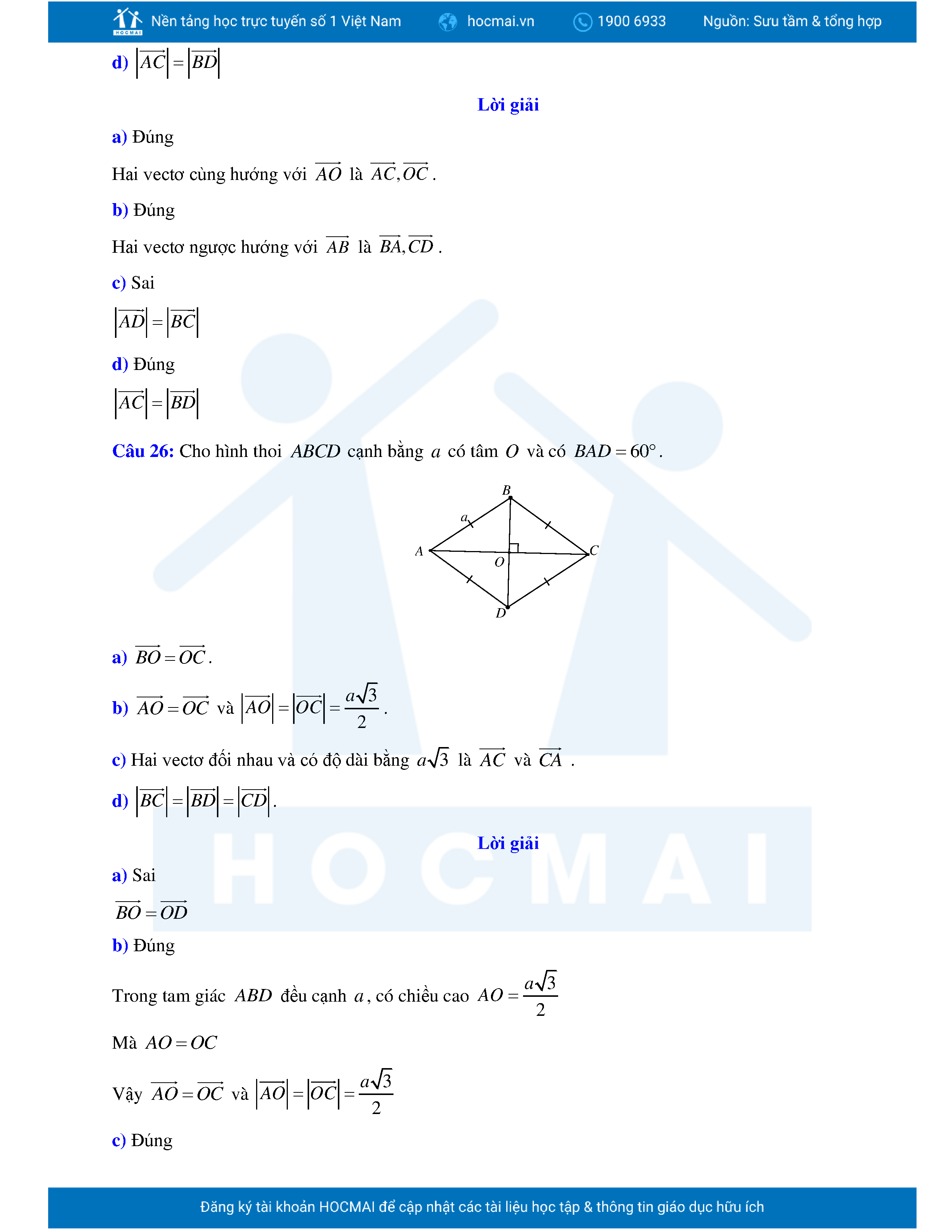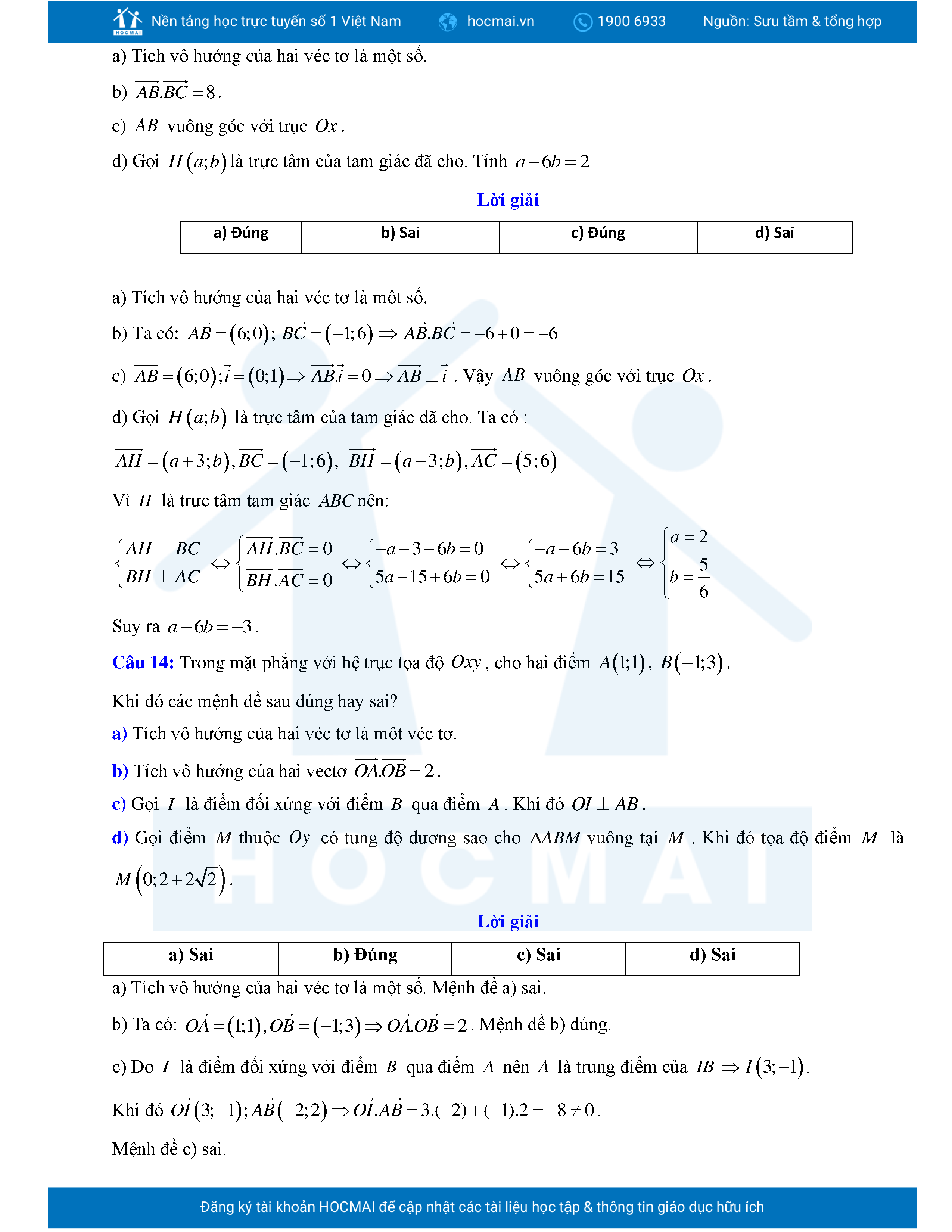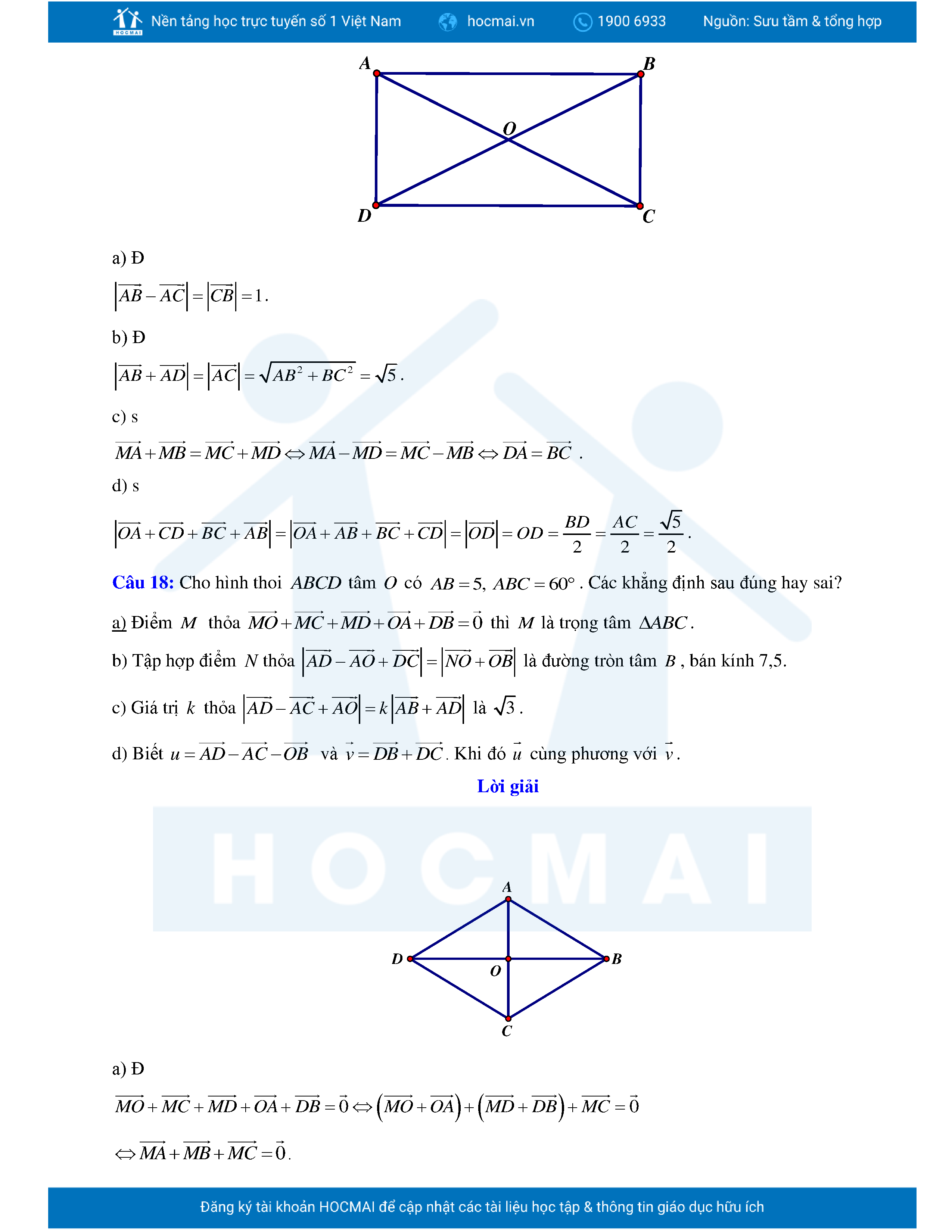 50 bài tập trắc nghiệm đúng sai Vectơ trong mặt phẳng kèm giải chi tiết.