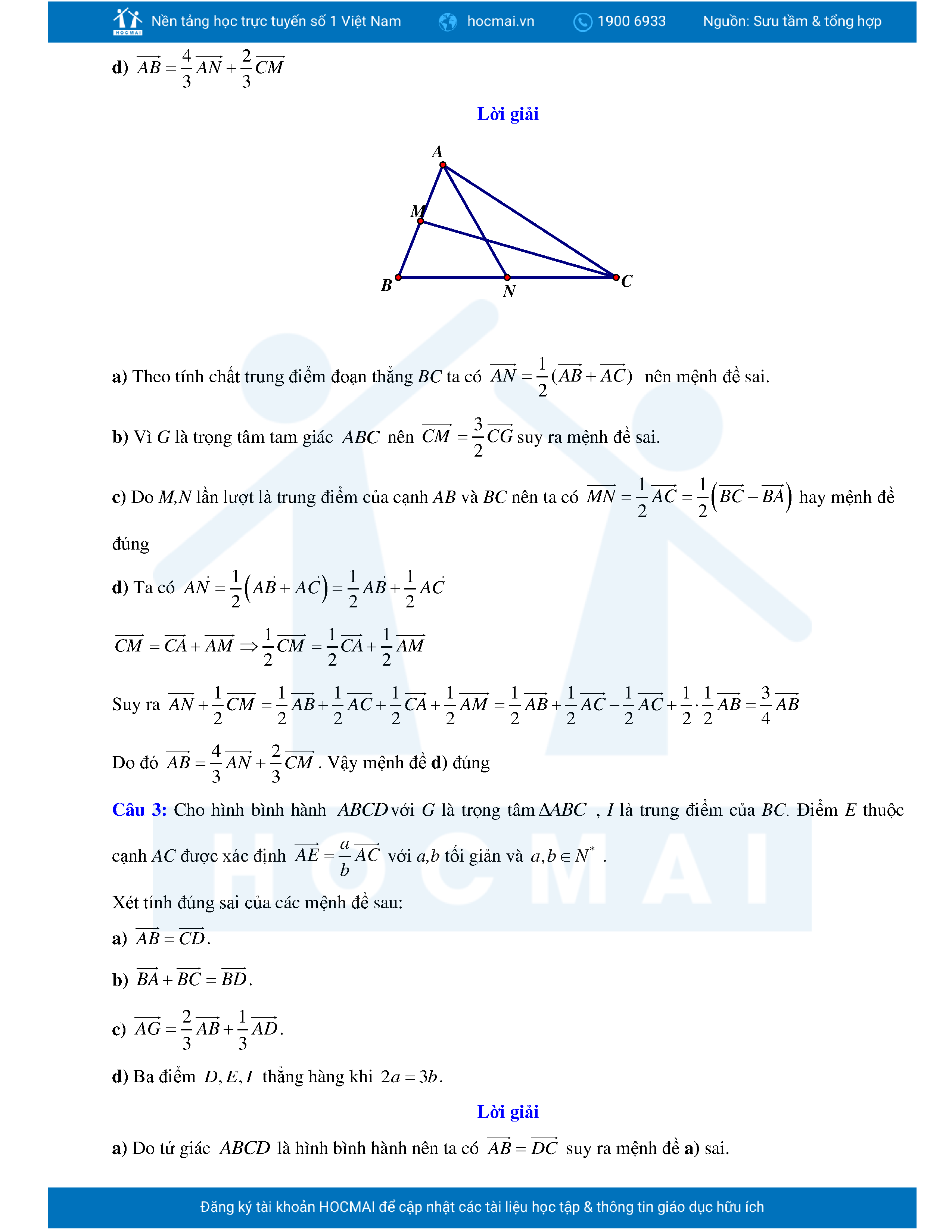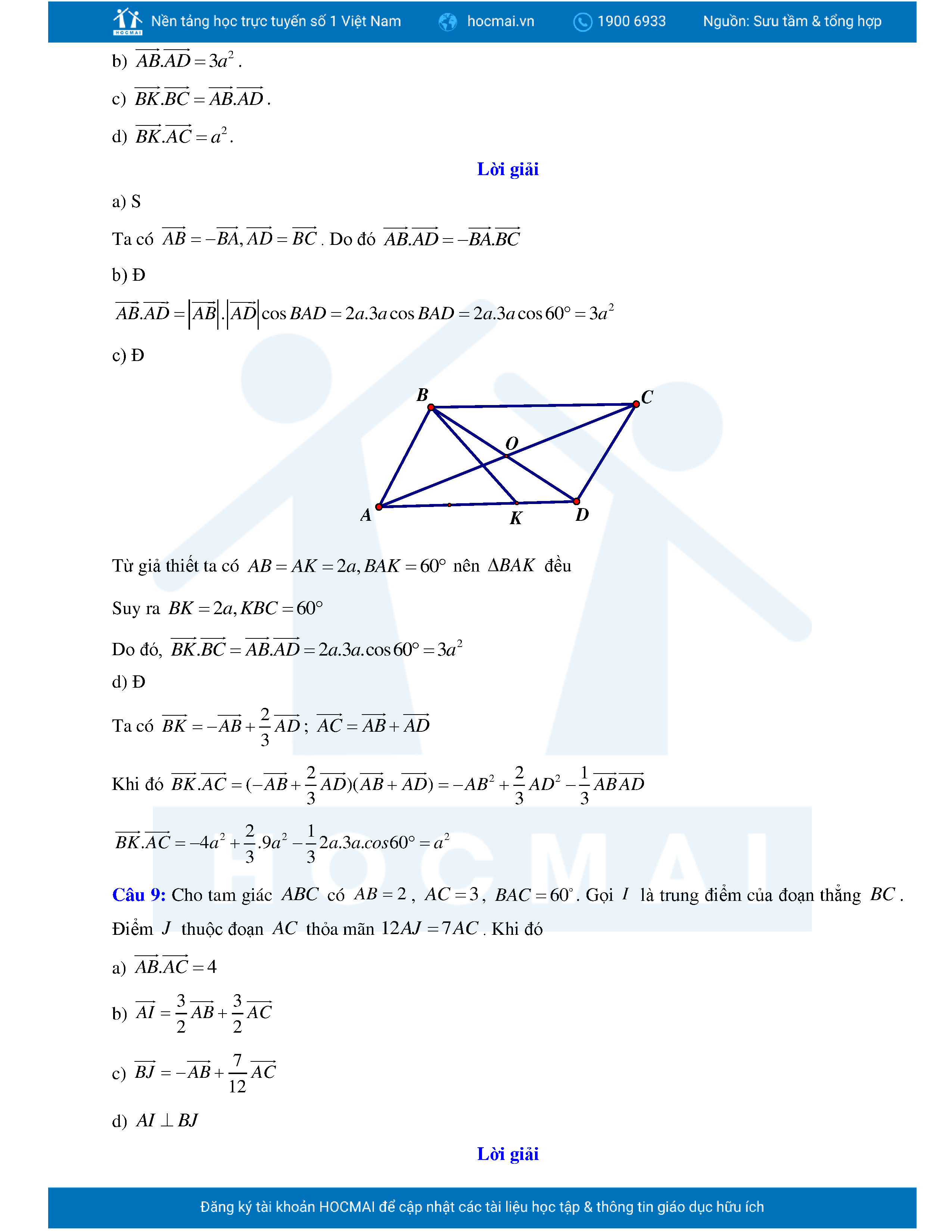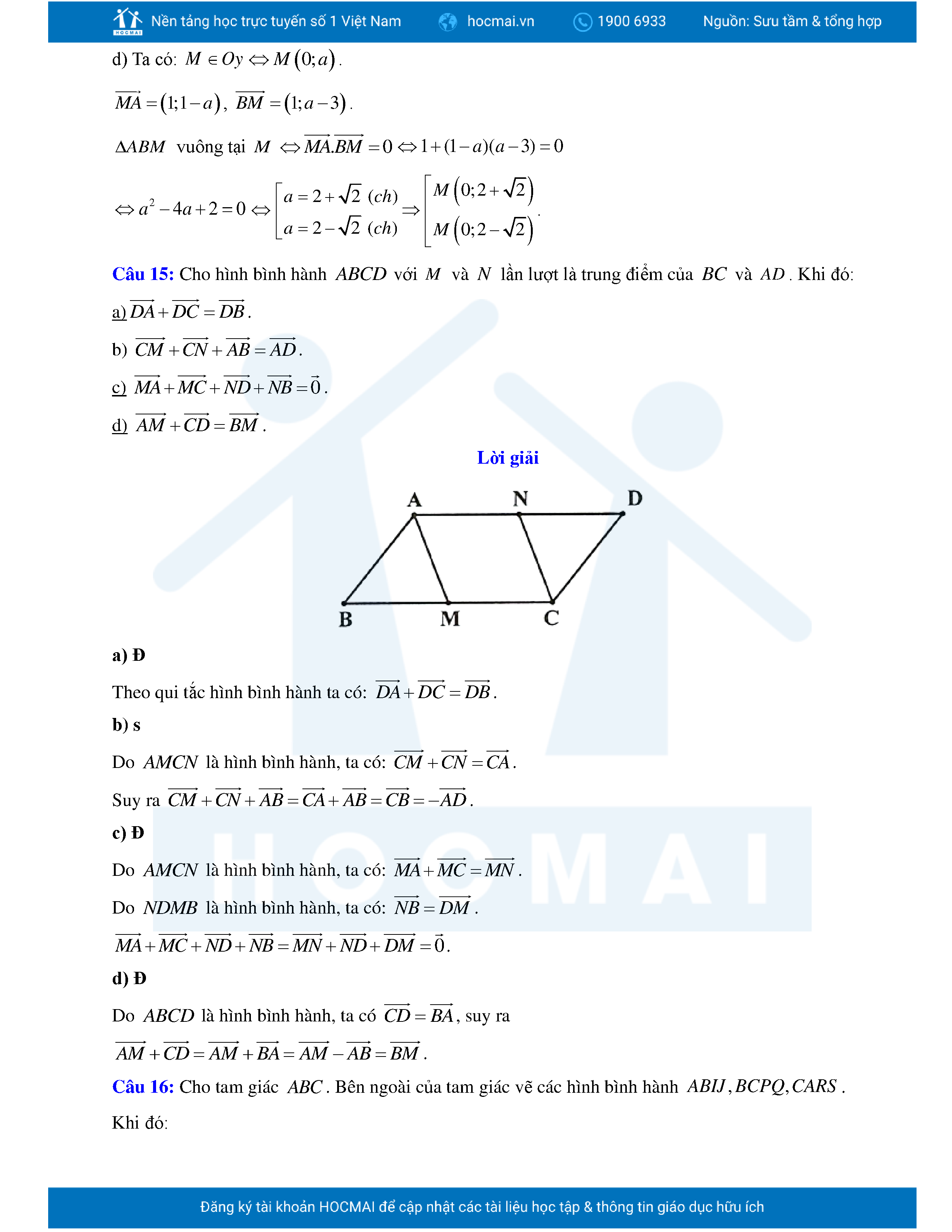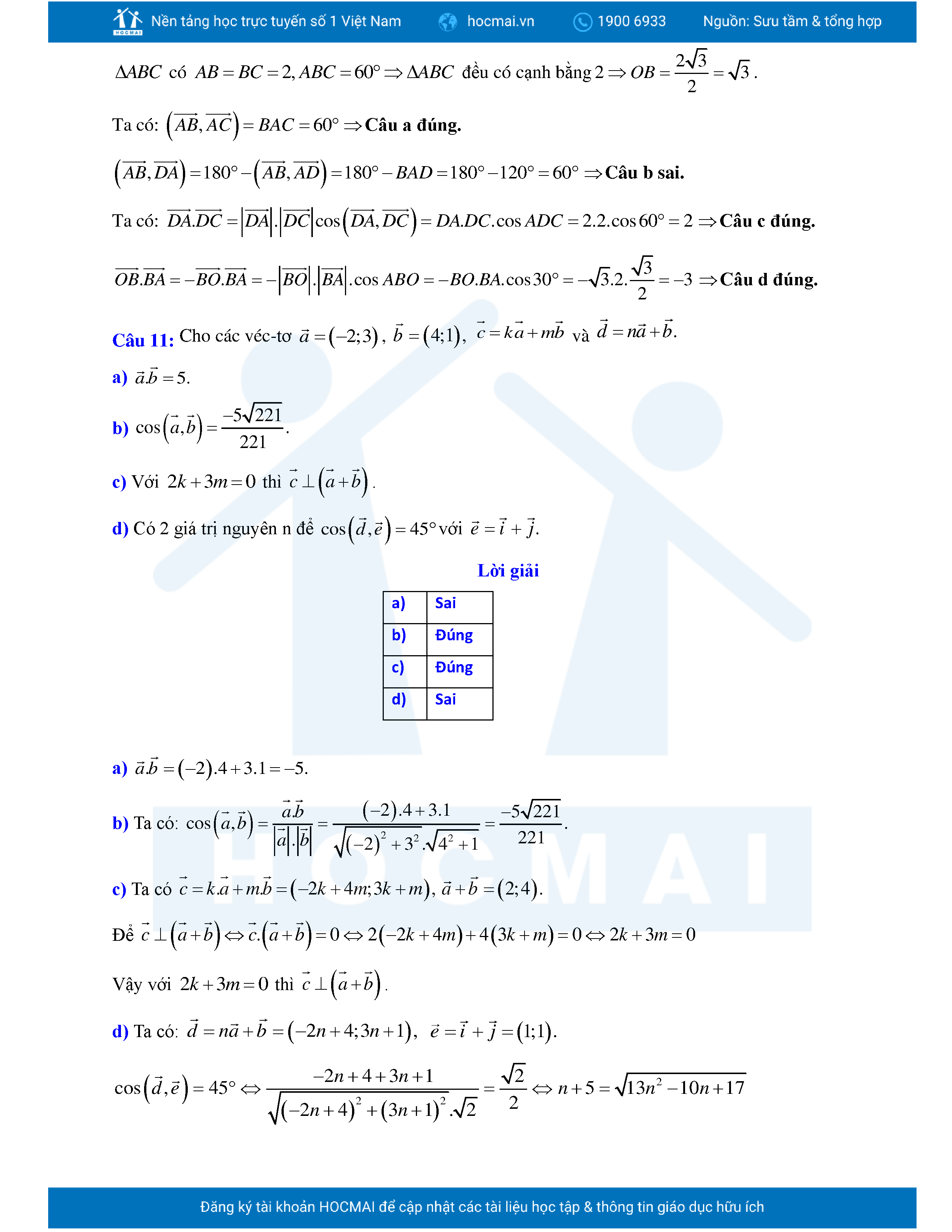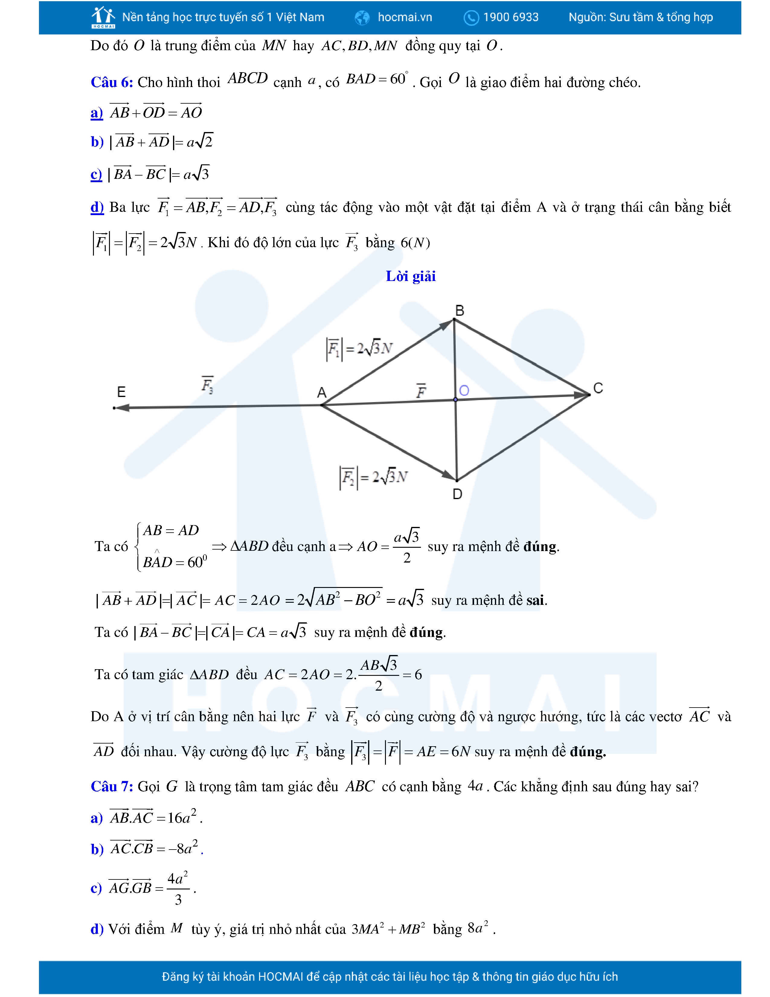 50 bài tập trắc nghiệm đúng sai Vectơ trong mặt phẳng kèm giải chi tiết.