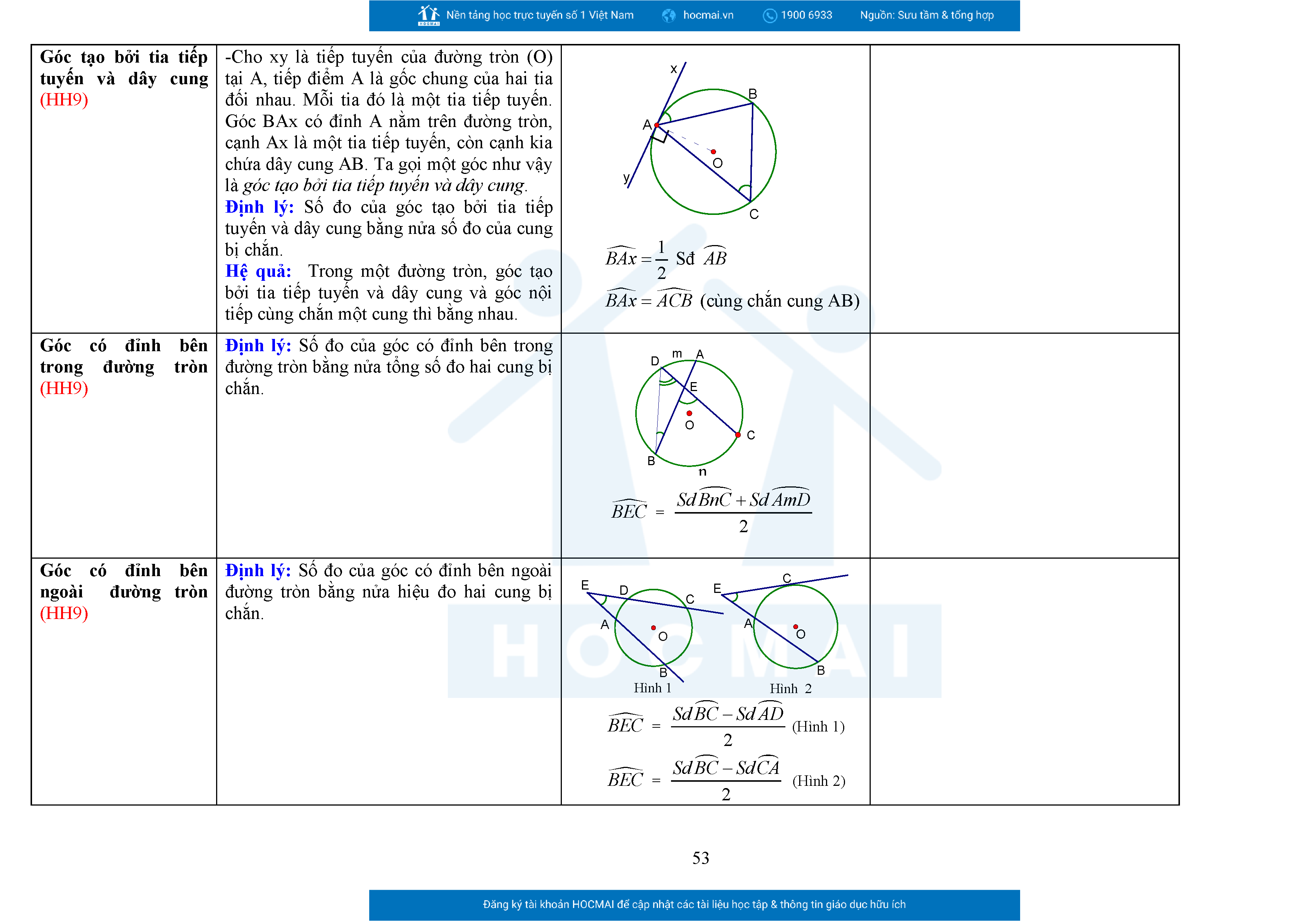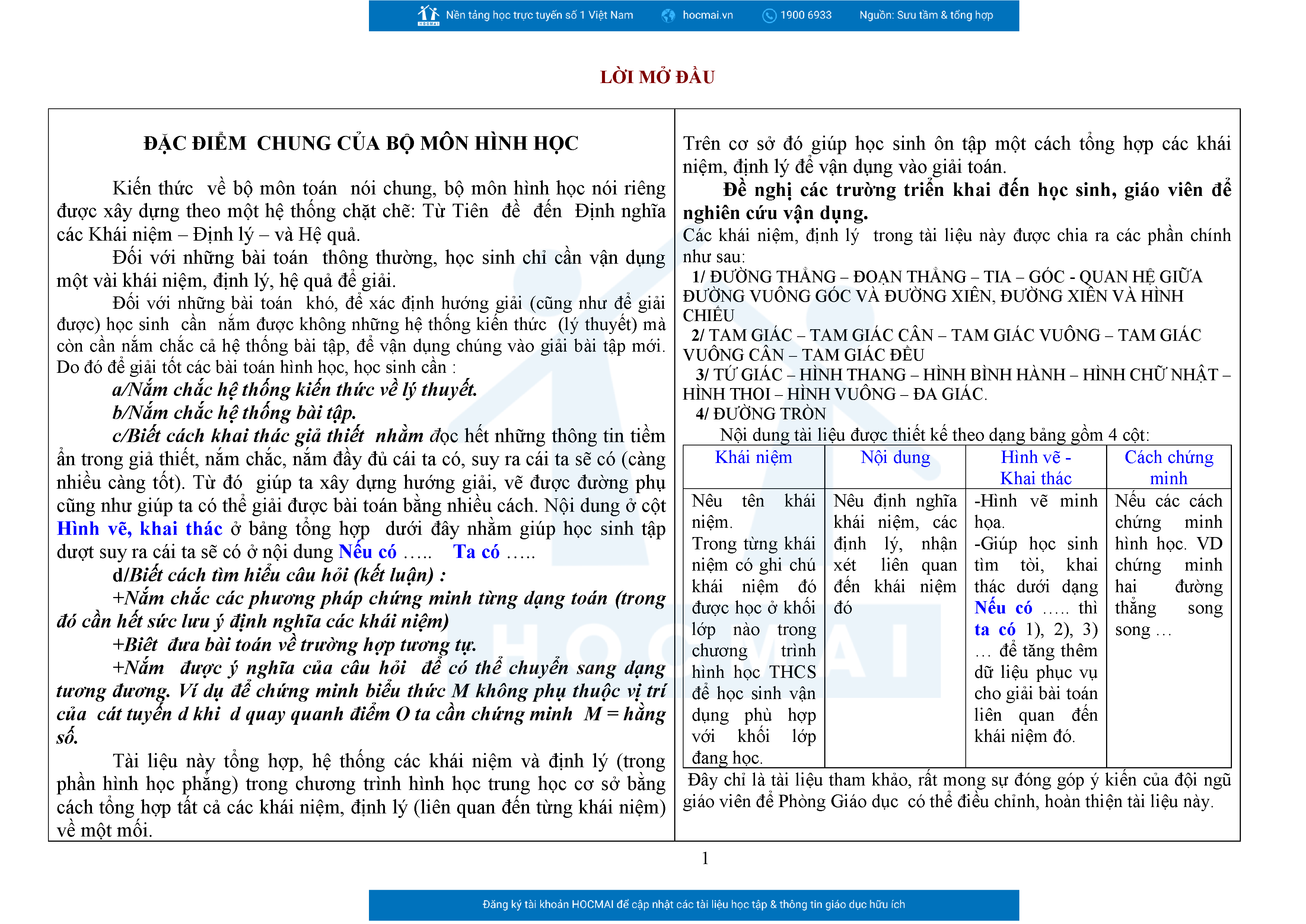Hệ thống các khái niệm cơ bản và định lý hình học THCS (hình học phẳng)