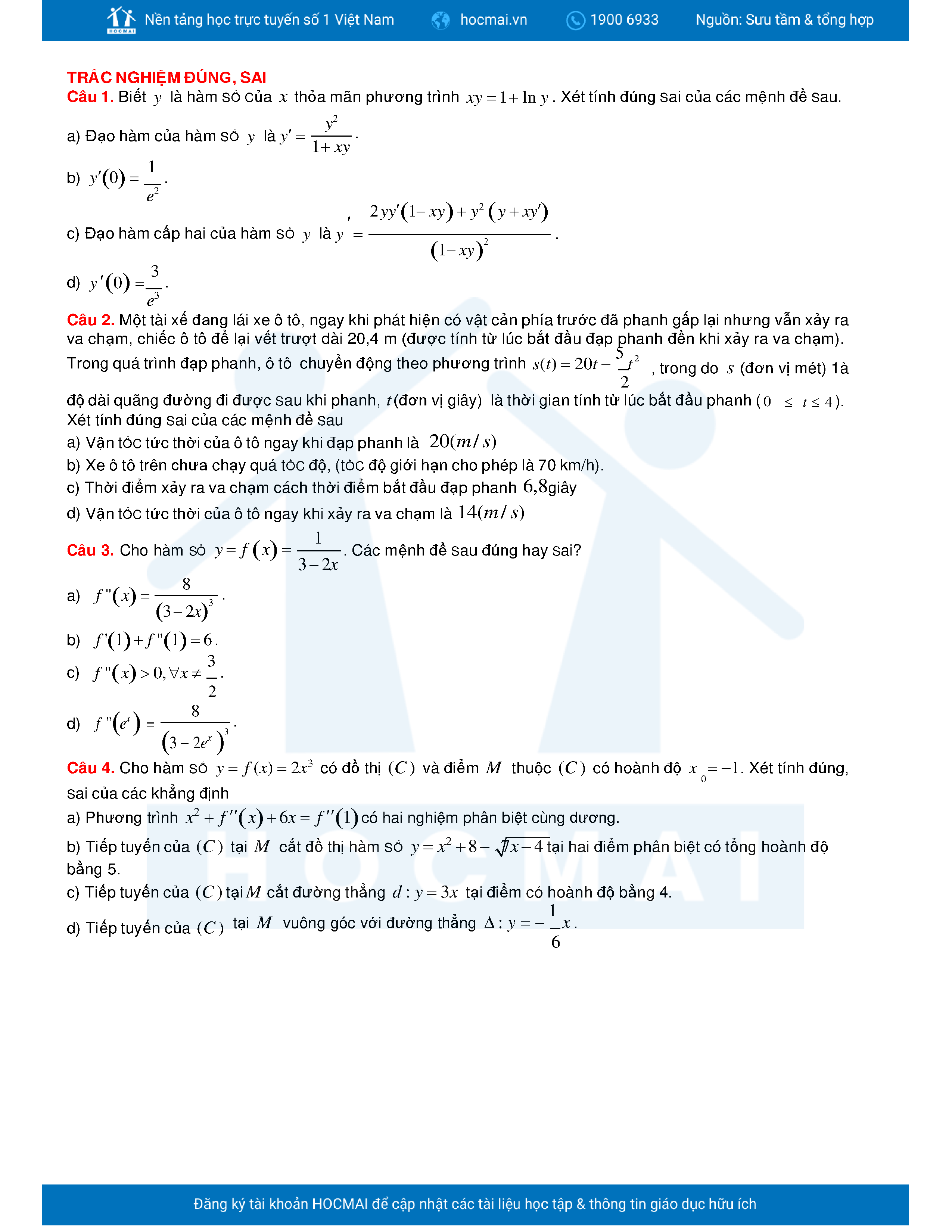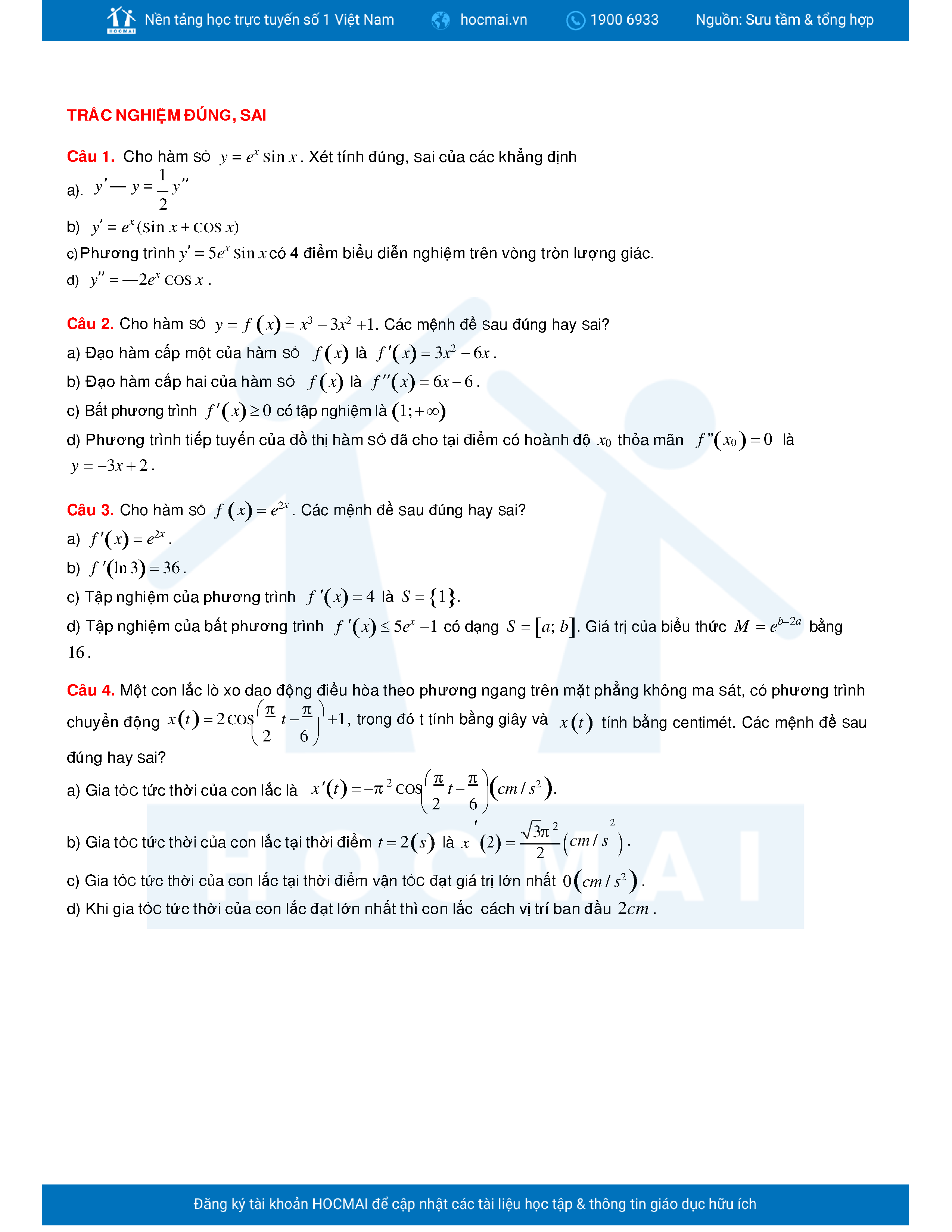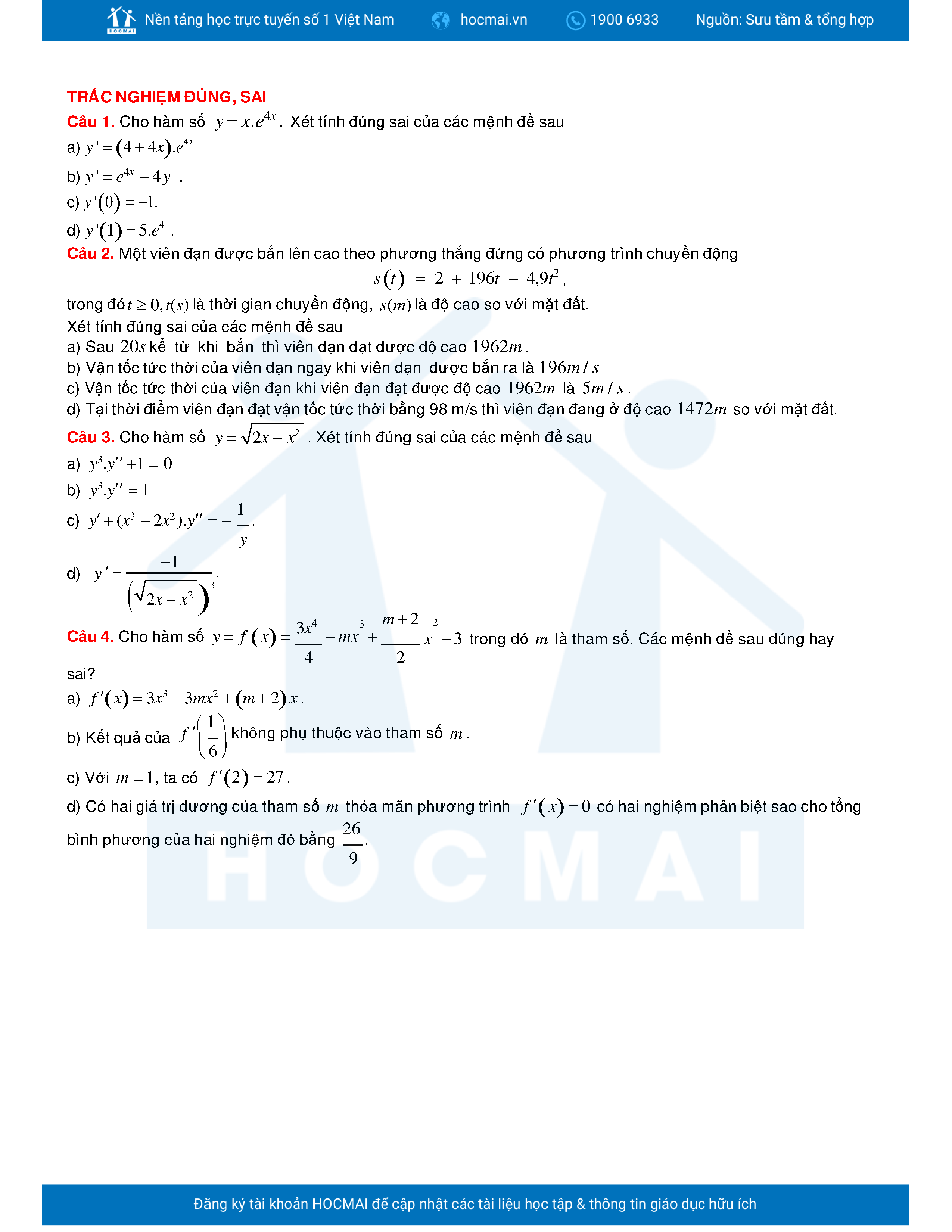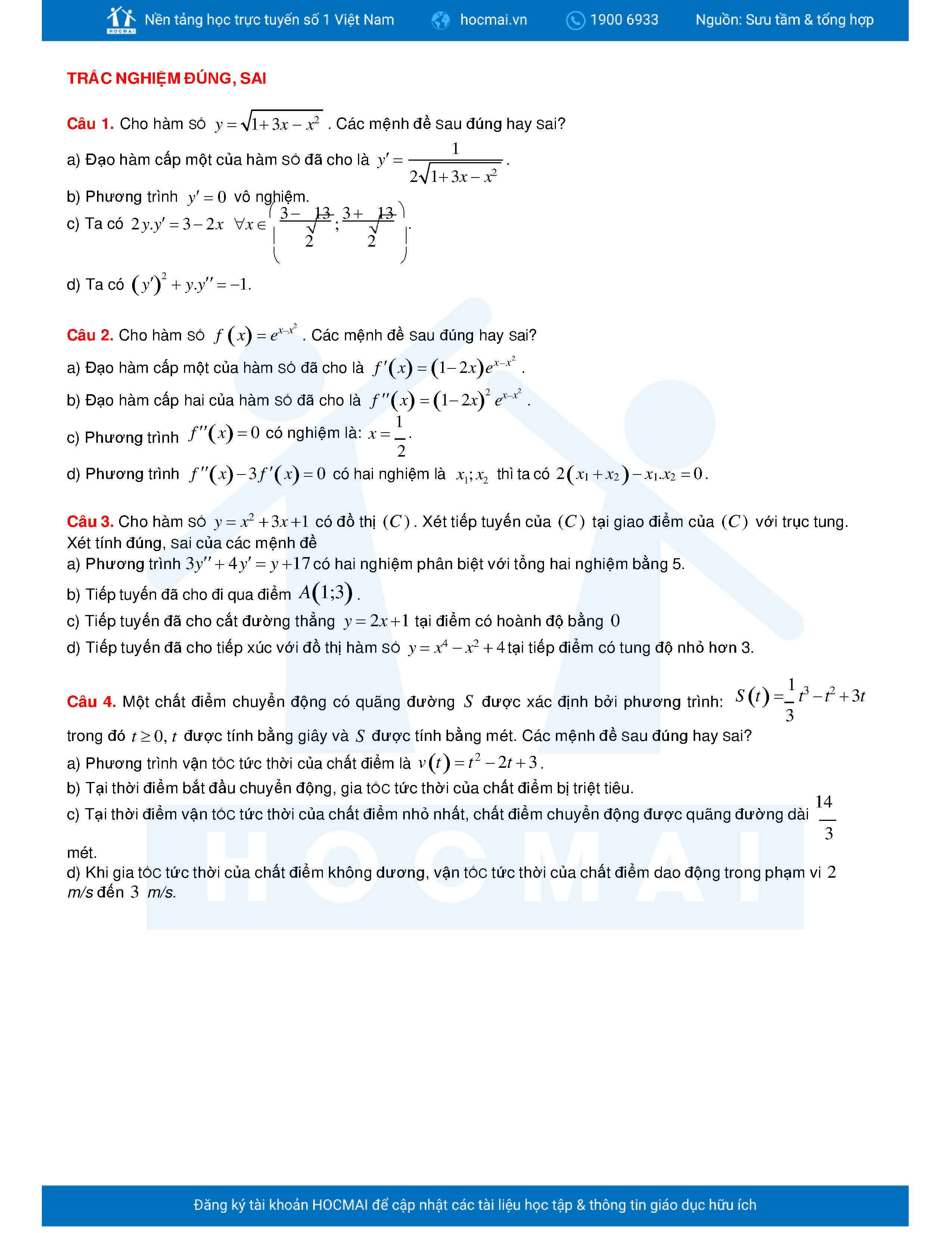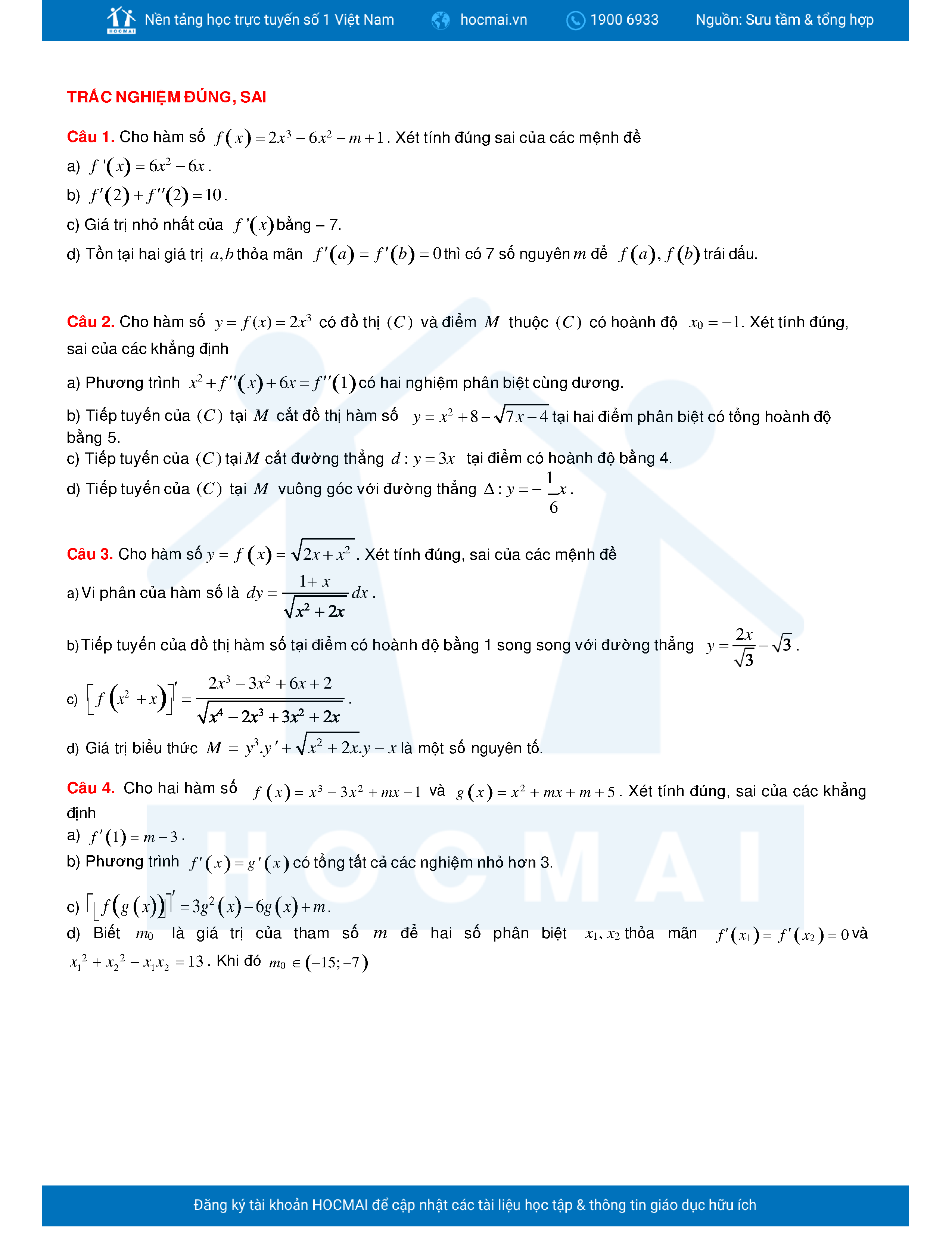 Luyện tập chung Toán 11 THPT đạo hàm và ứng dụng