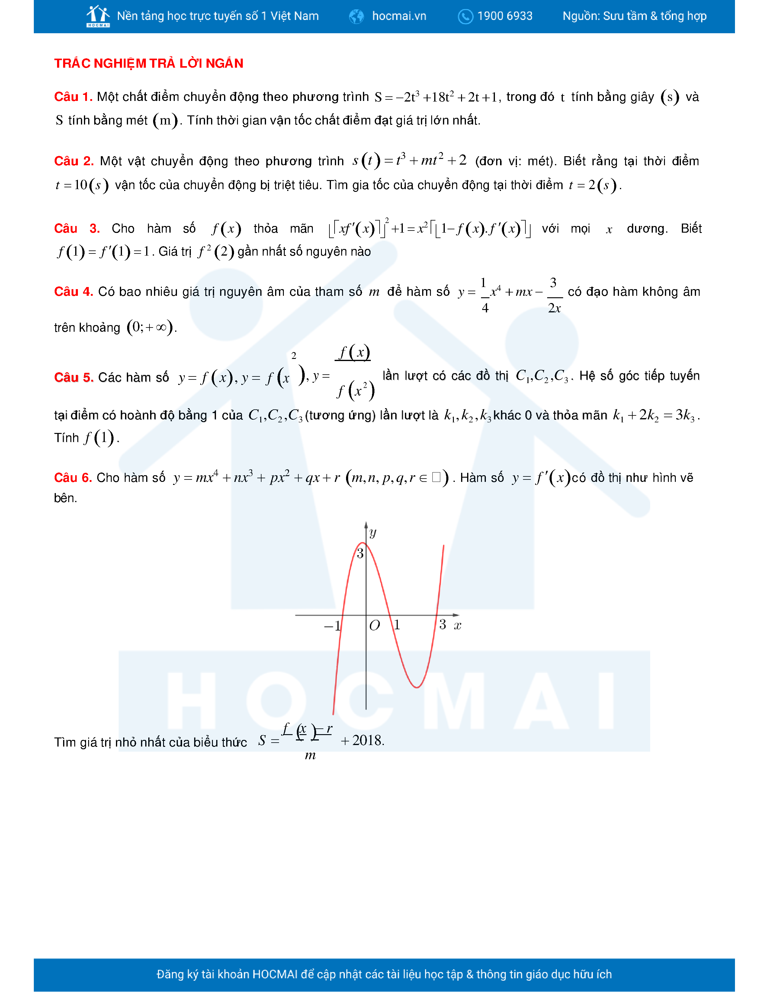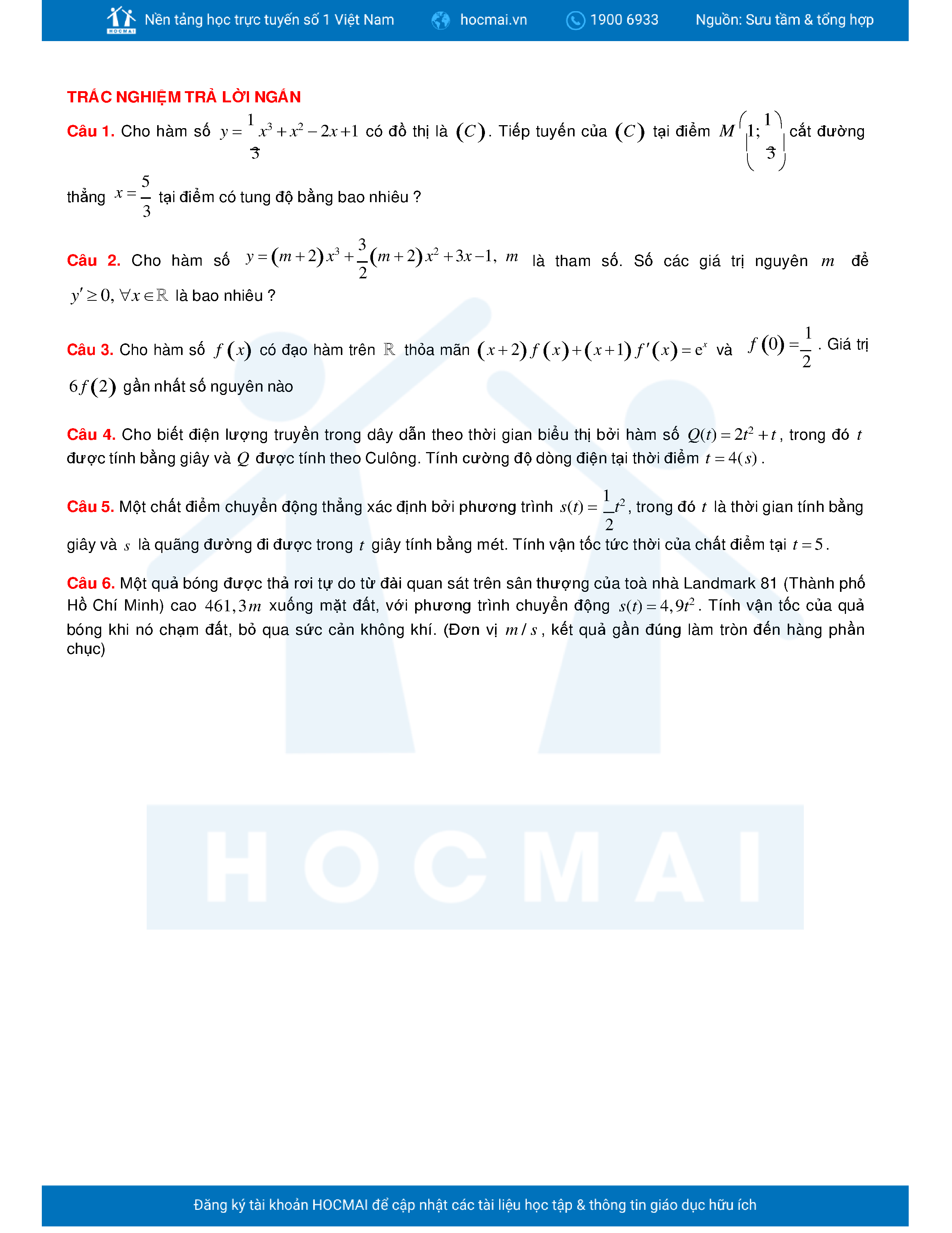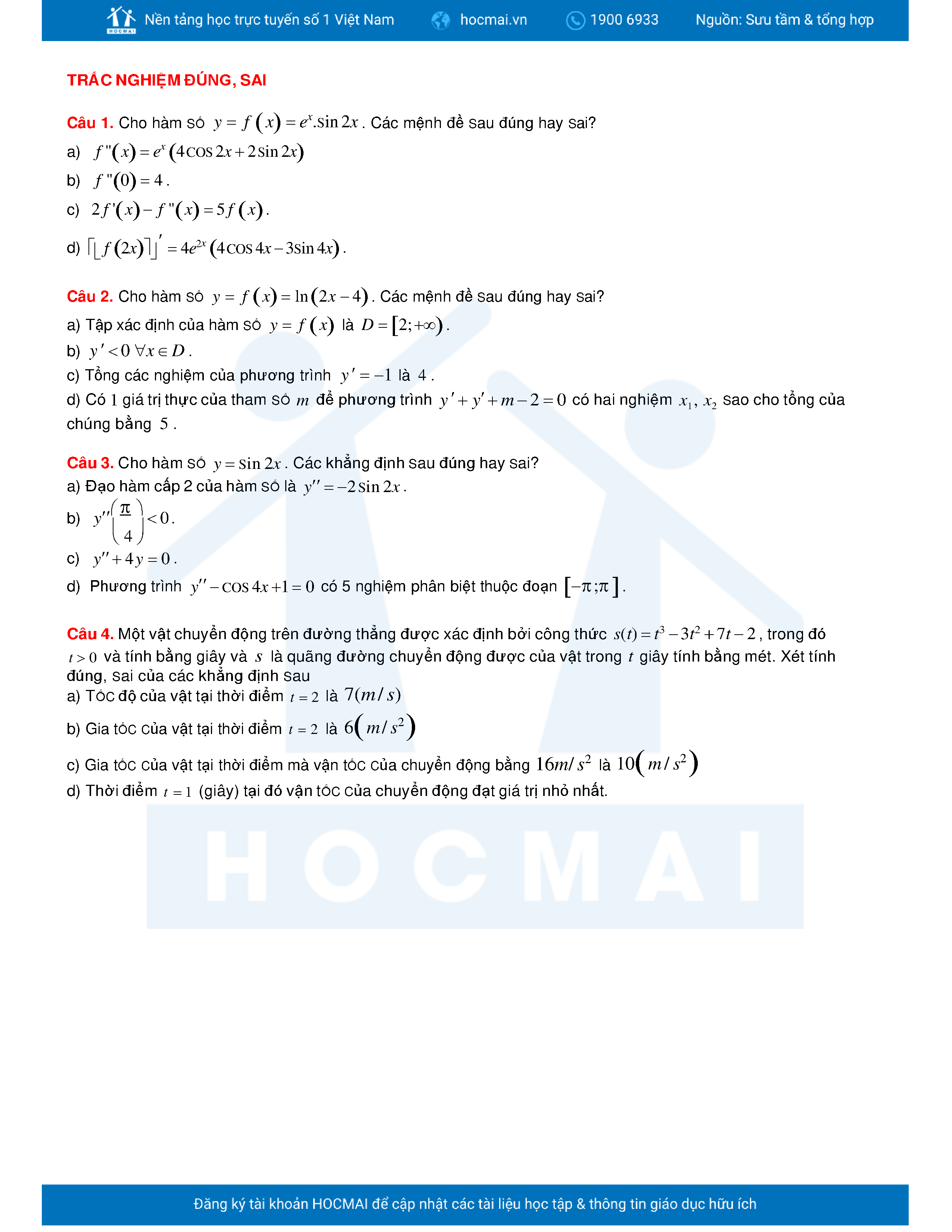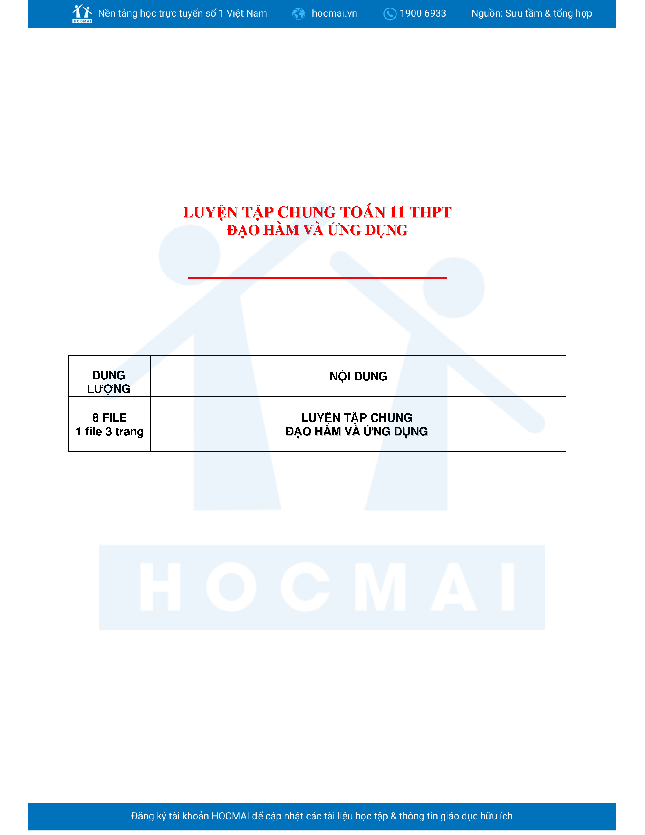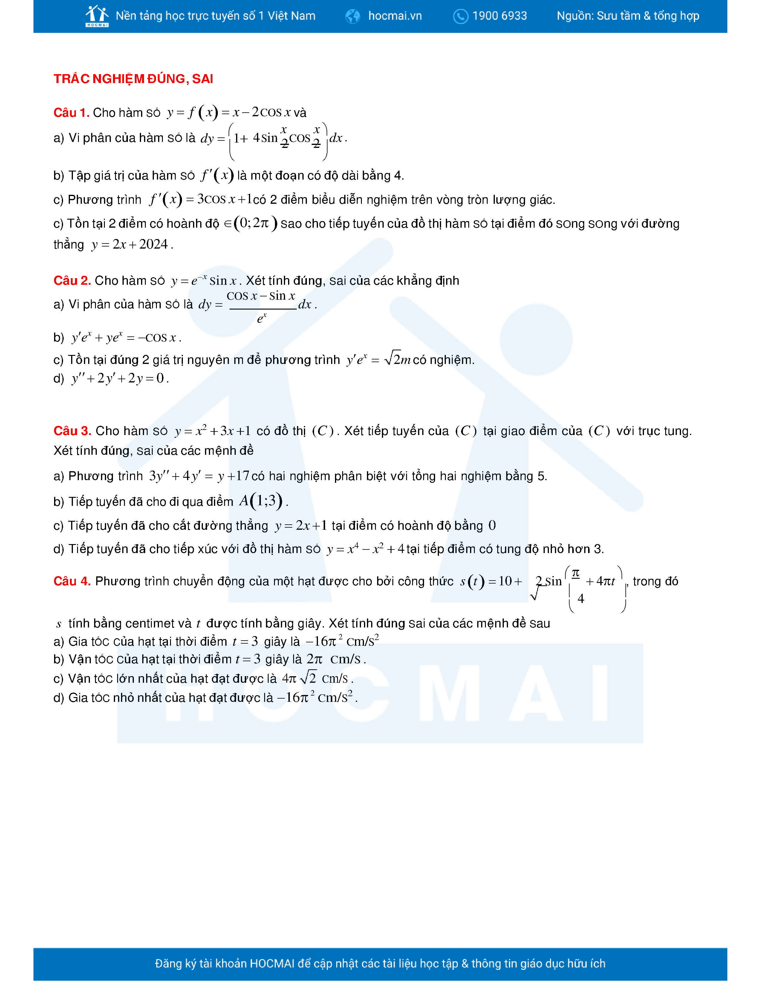 Luyện tập chung Toán 11 THPT đạo hàm và ứng dụng