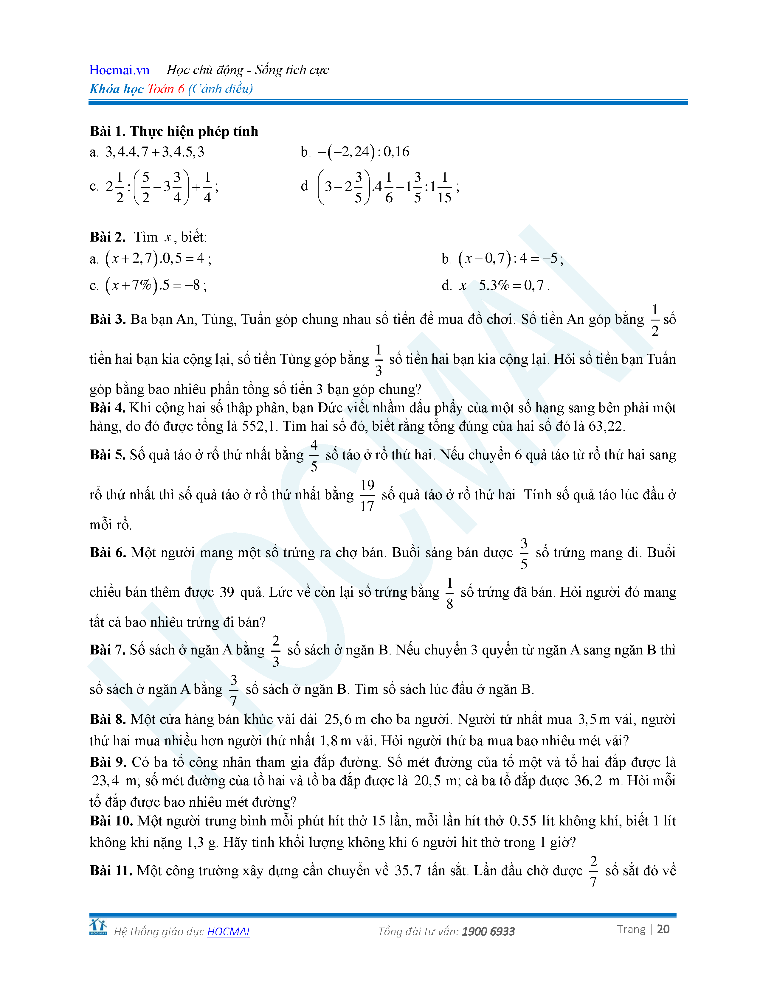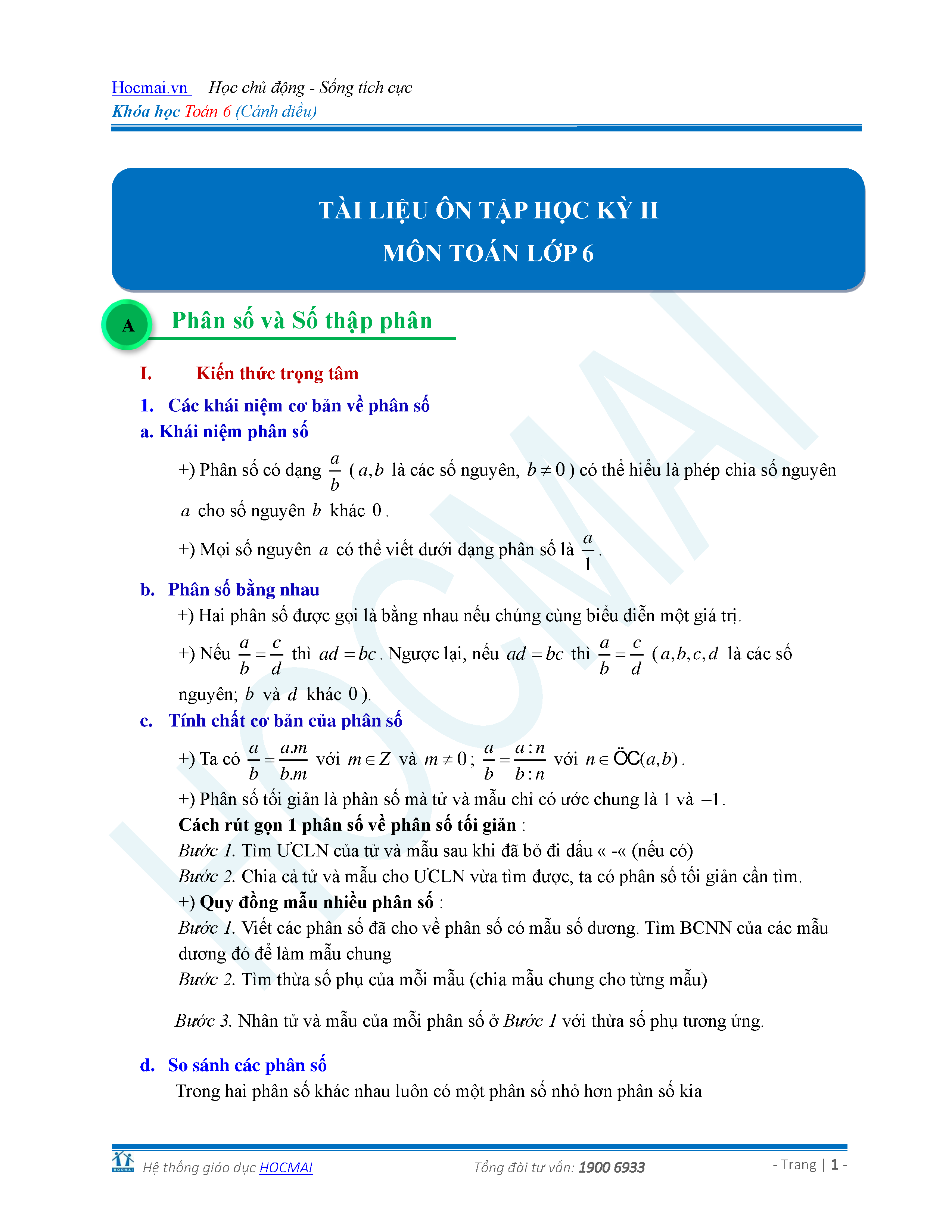 Tài liệu ôn thi cuối học kì II - Toán 6 CD