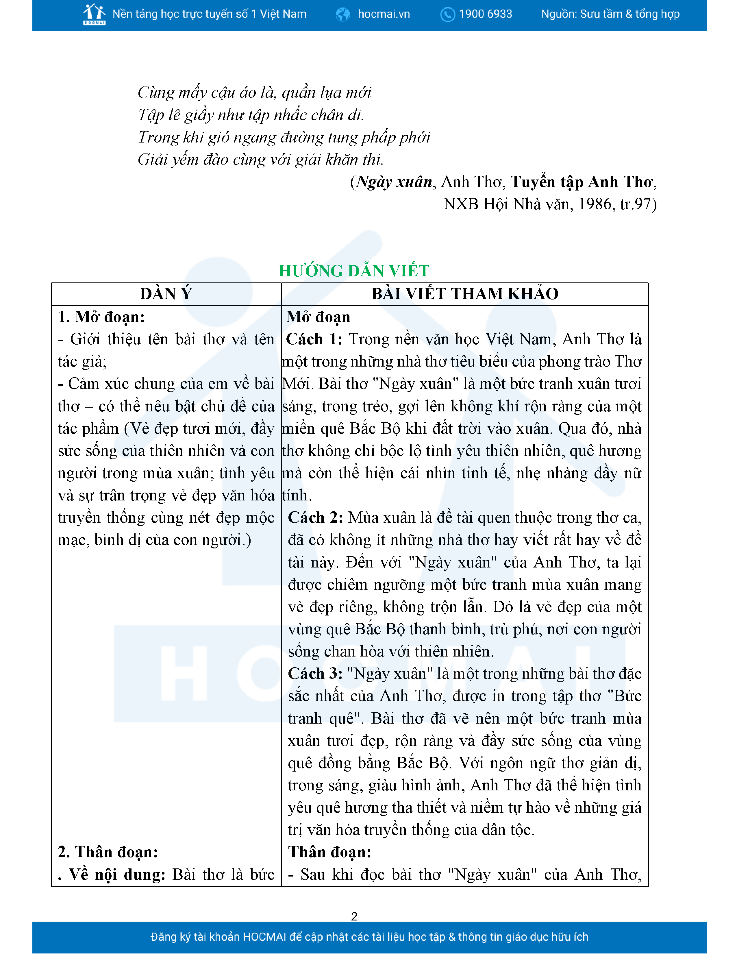 Hướng dẫn viết đoạn văn ghi lại cảm nghĩ về bài thơ