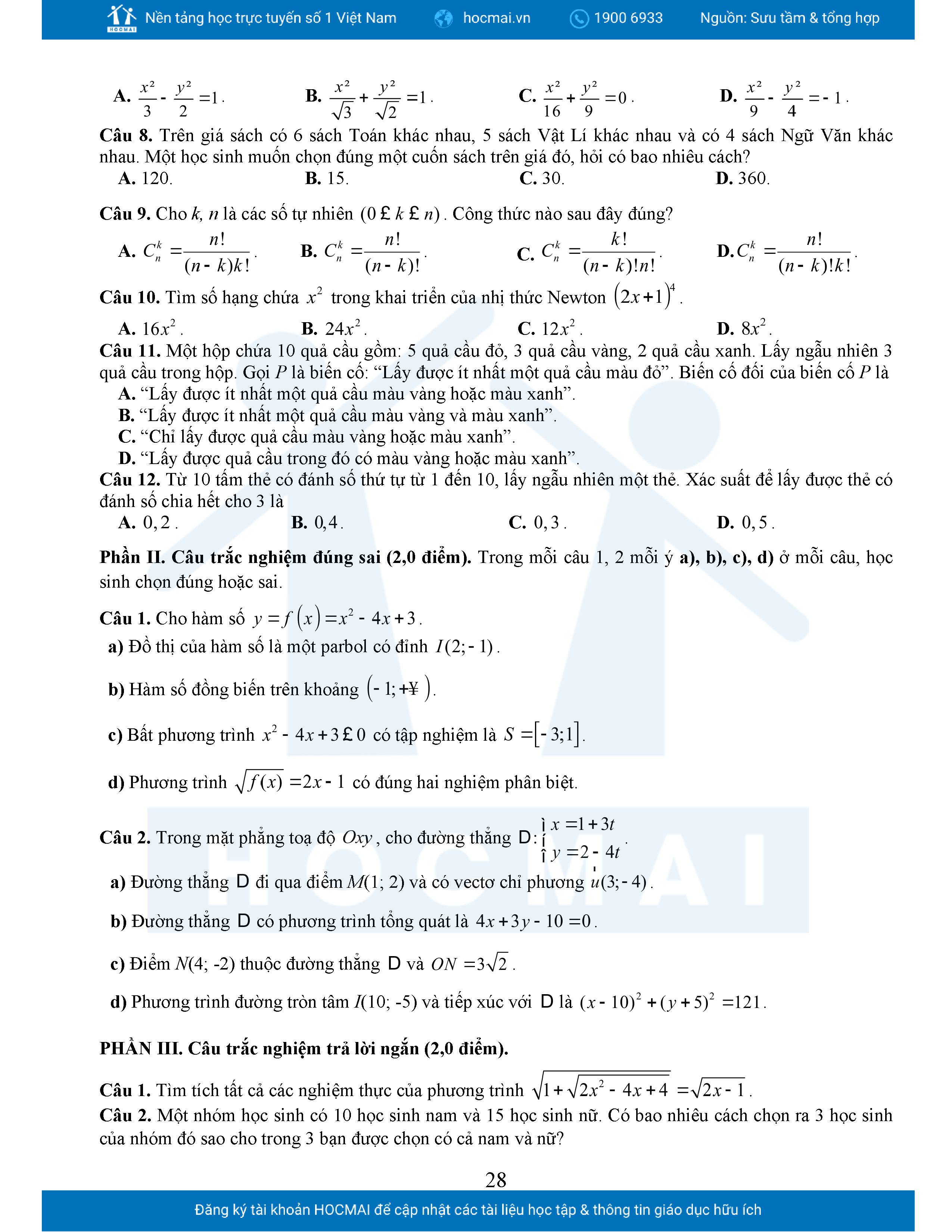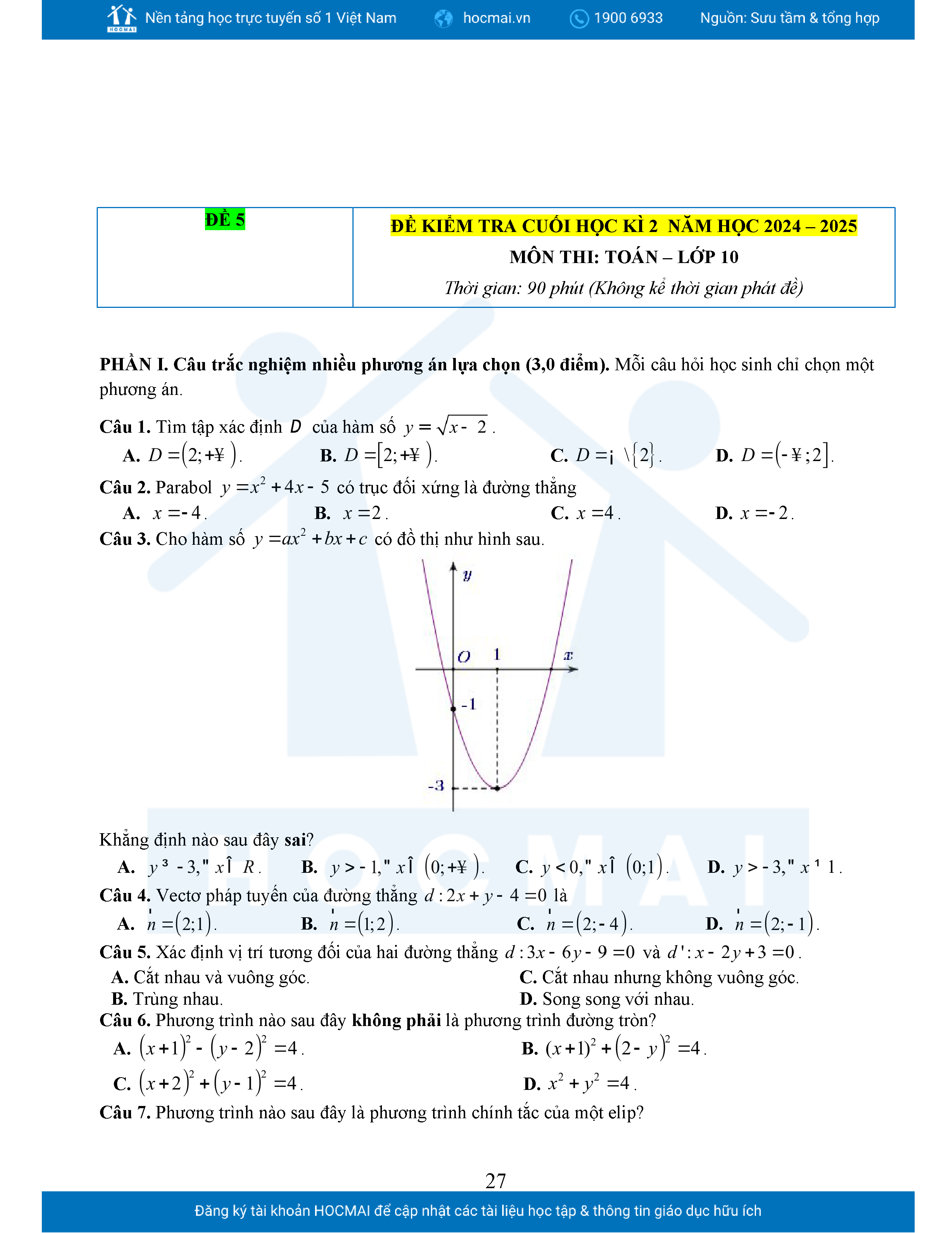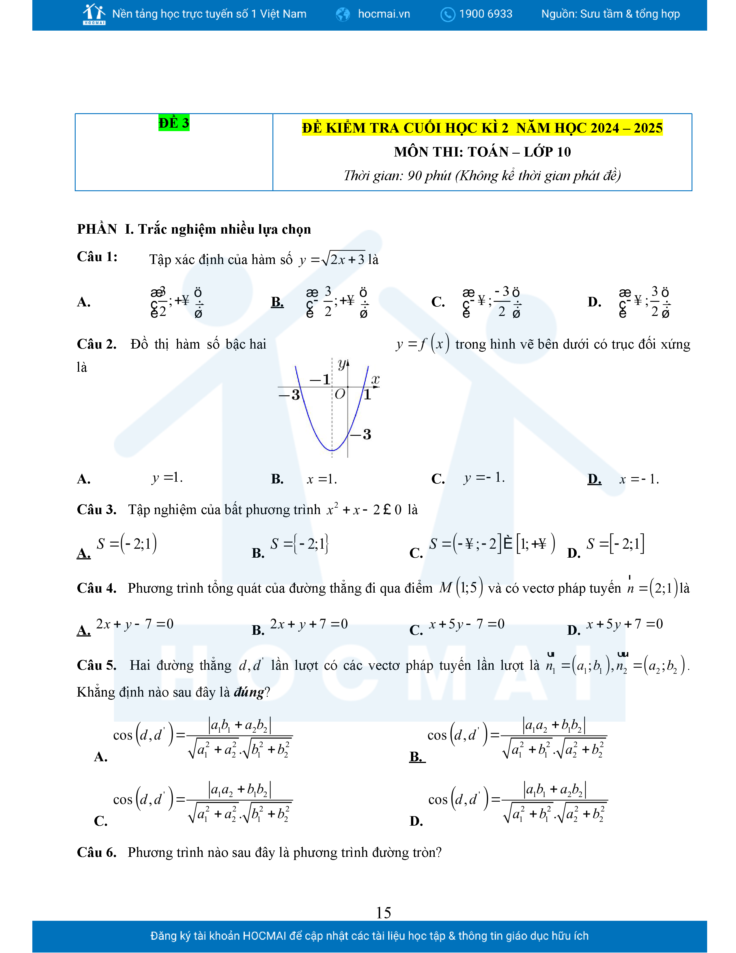 Bộ 5 Đề Thi Kỳ 2 Toán 10 Kết Nối Tri Thức Cấu Trúc Mới 2025