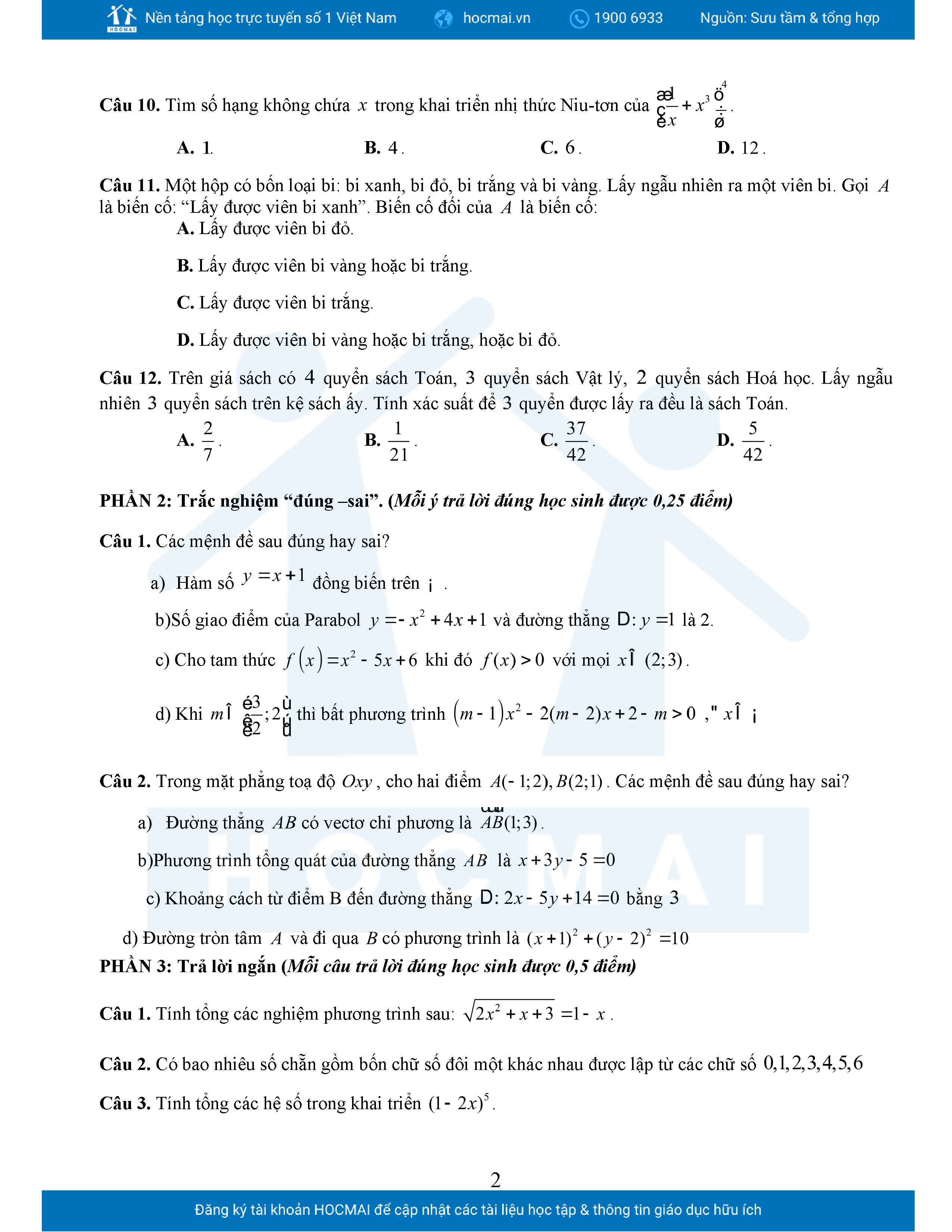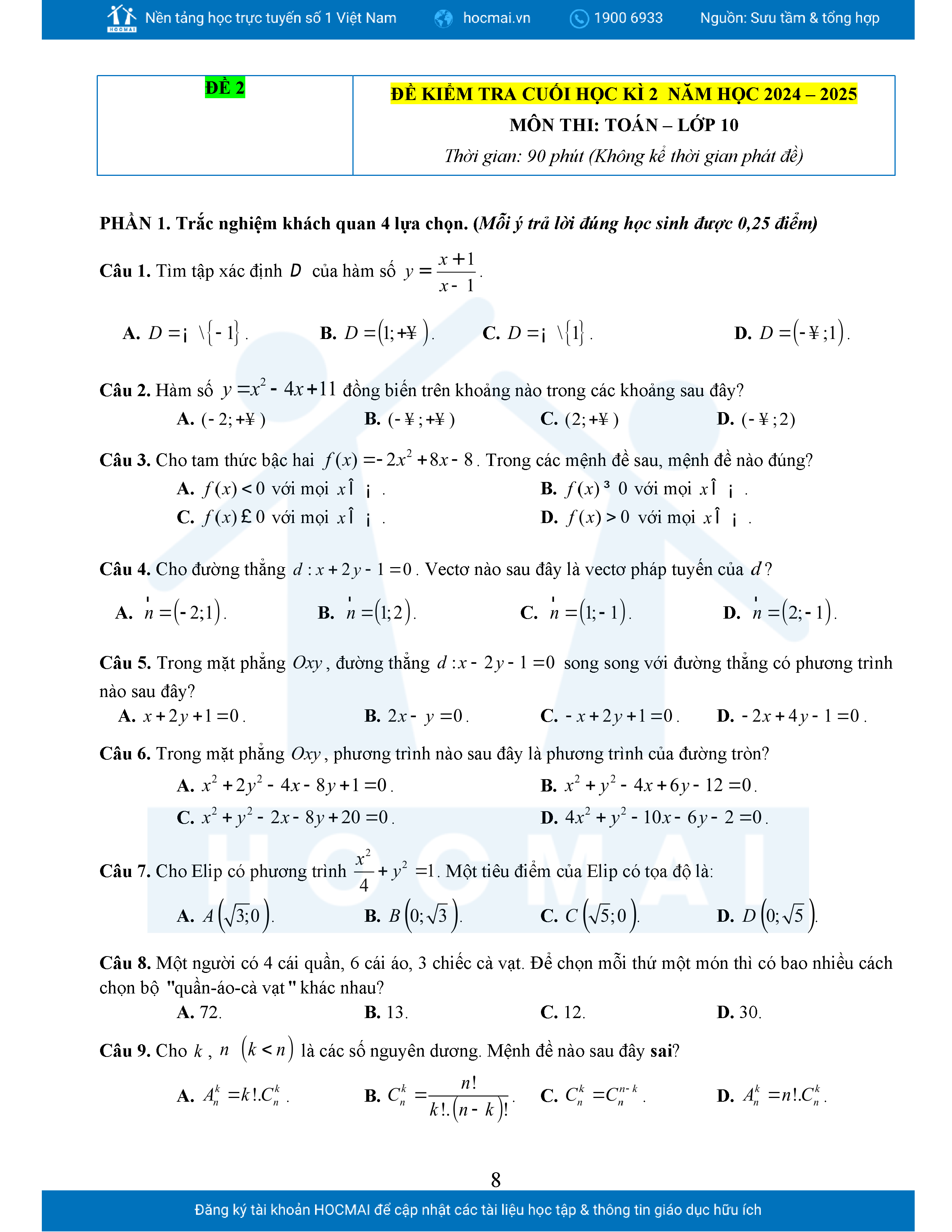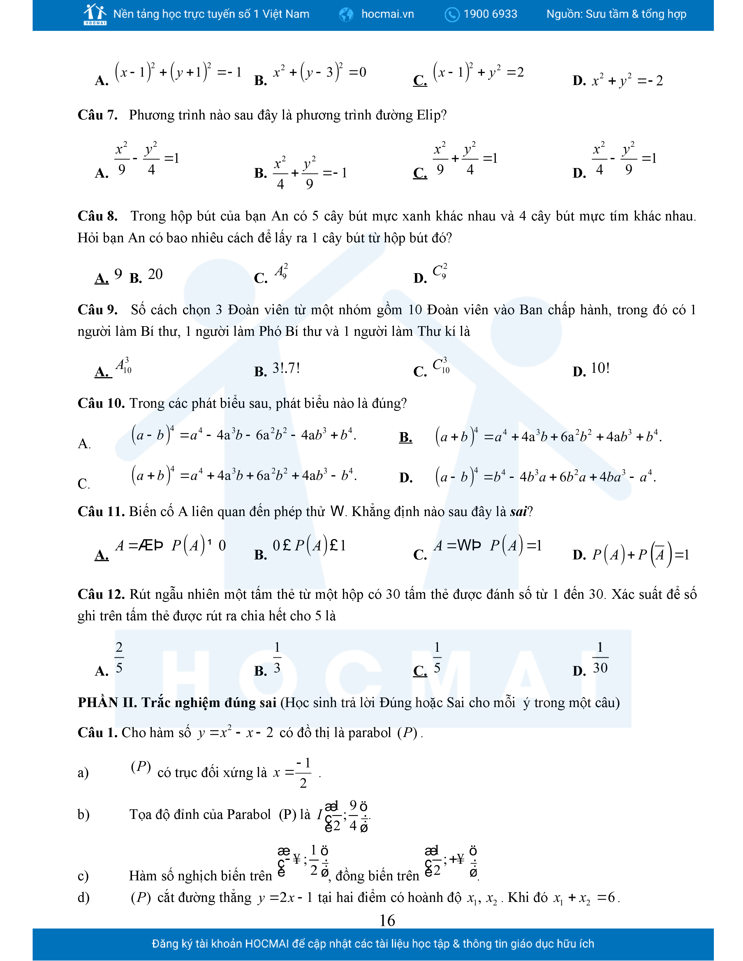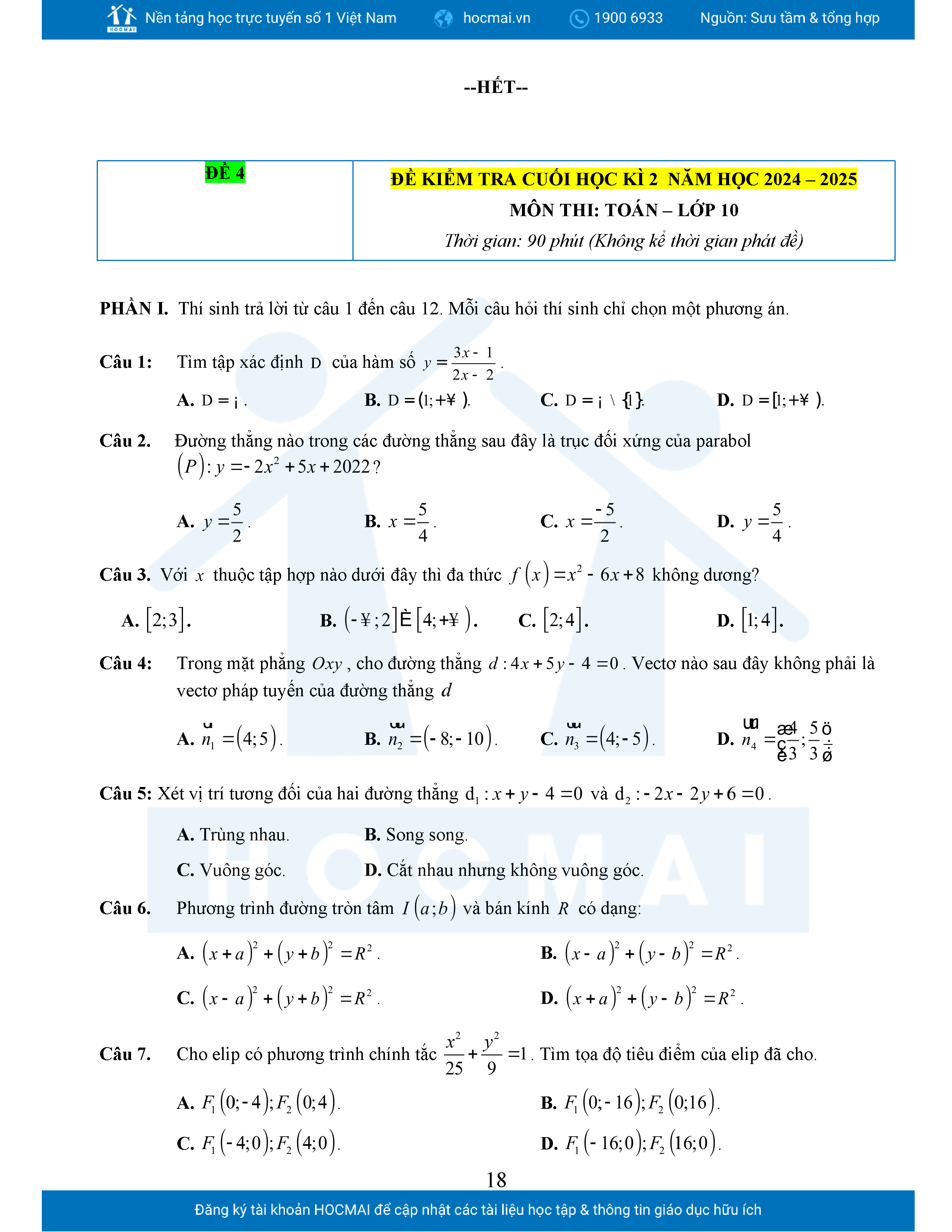 Bộ 5 Đề Thi Kỳ 2 Toán 10 Kết Nối Tri Thức Cấu Trúc Mới 2025