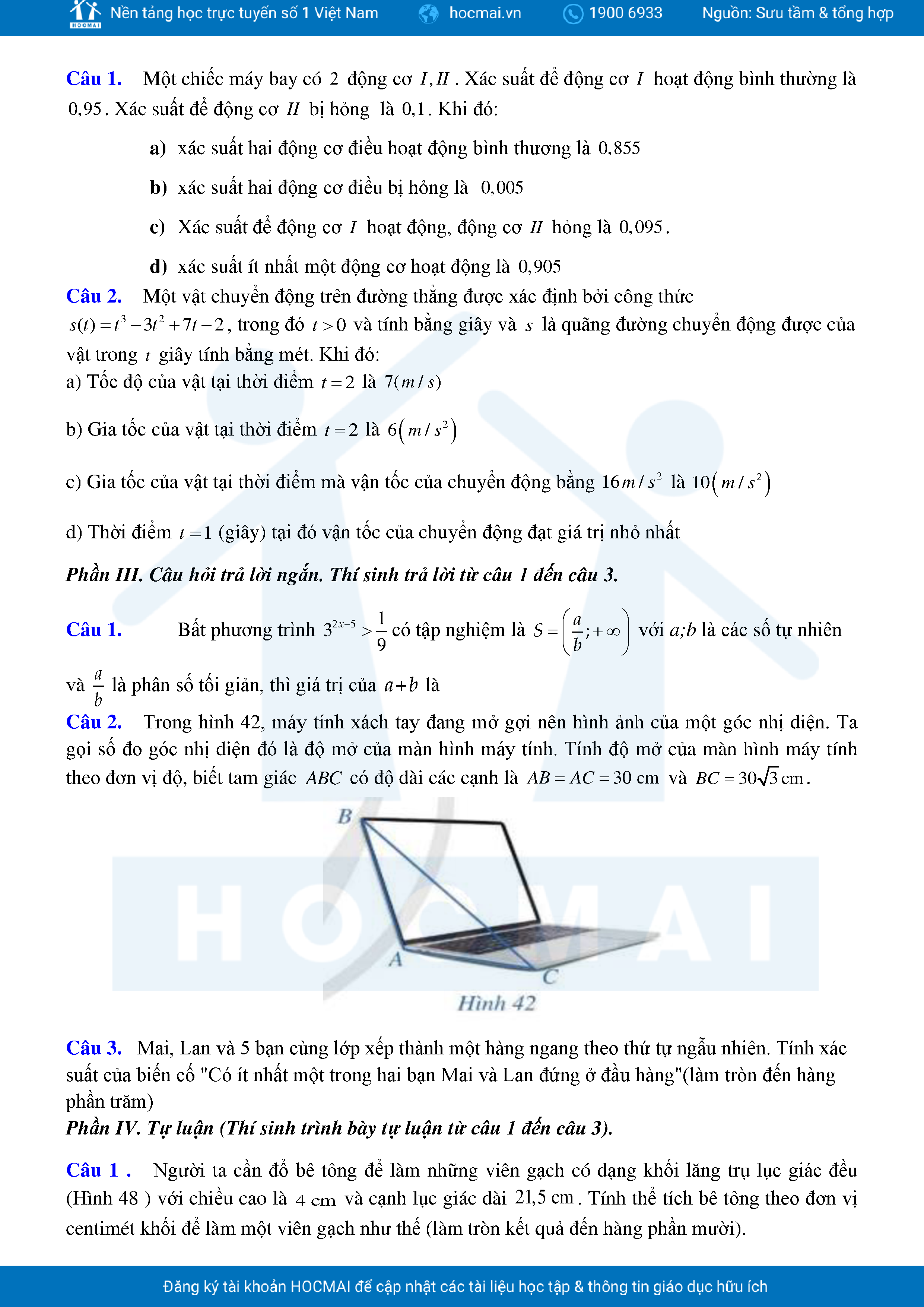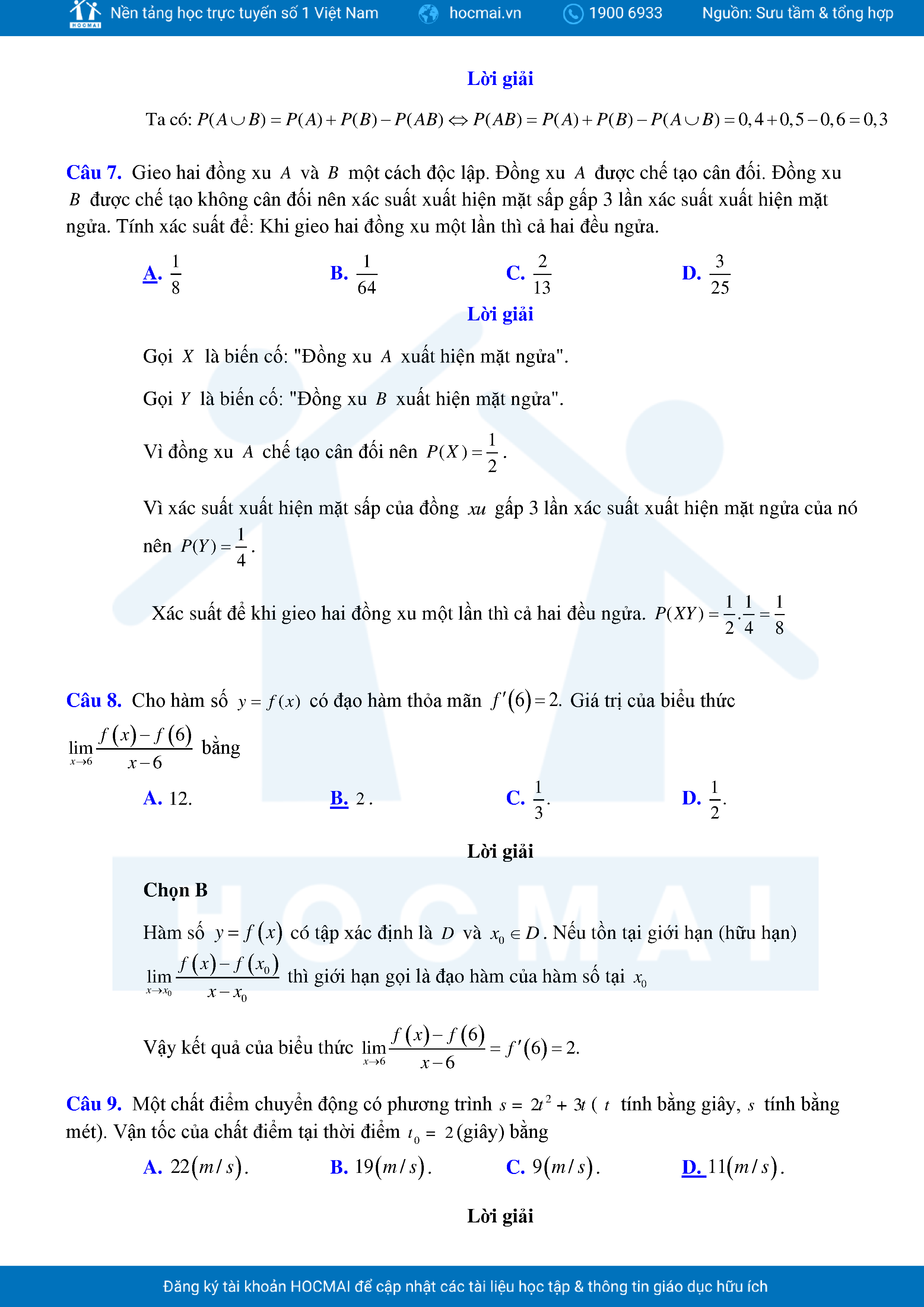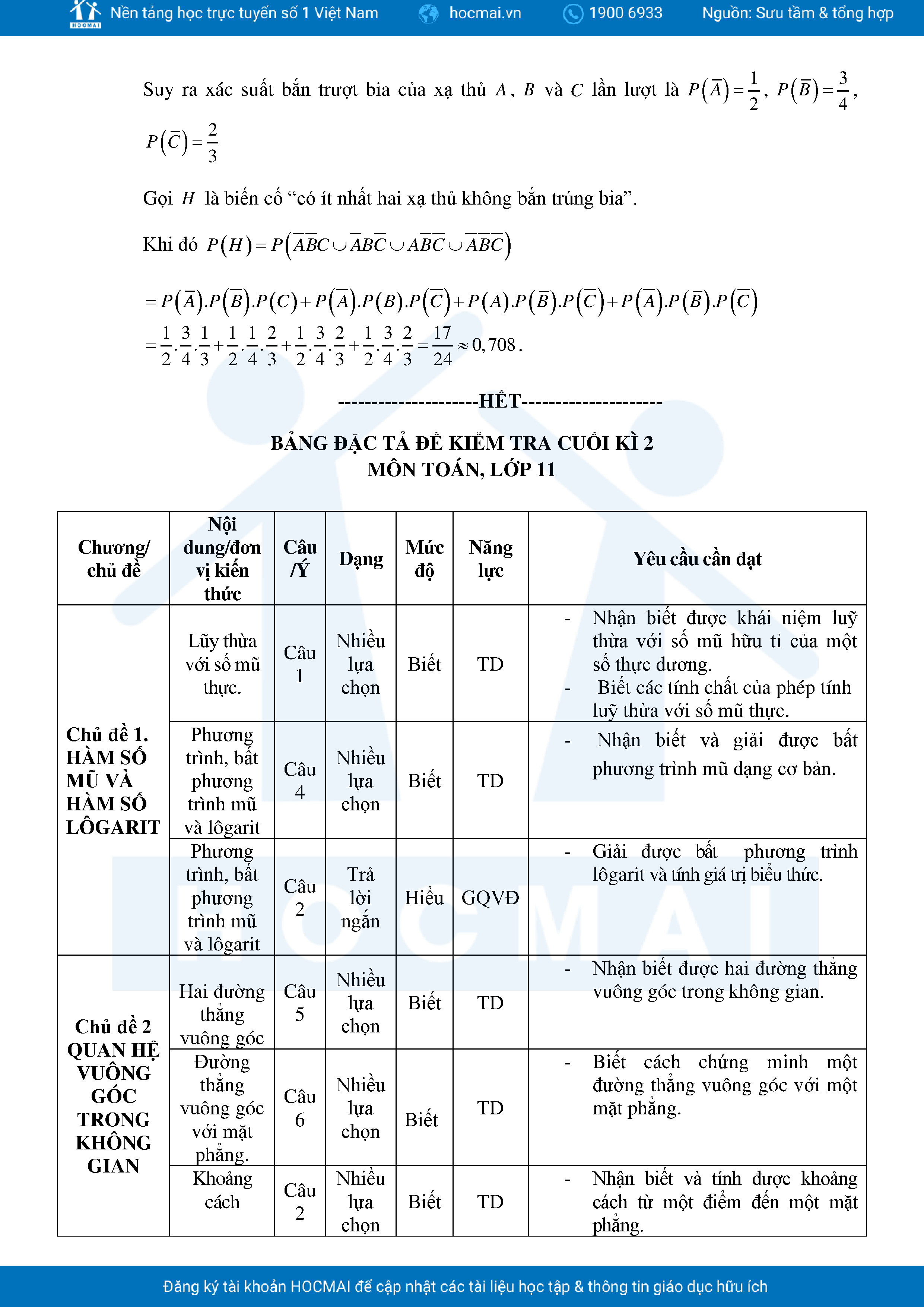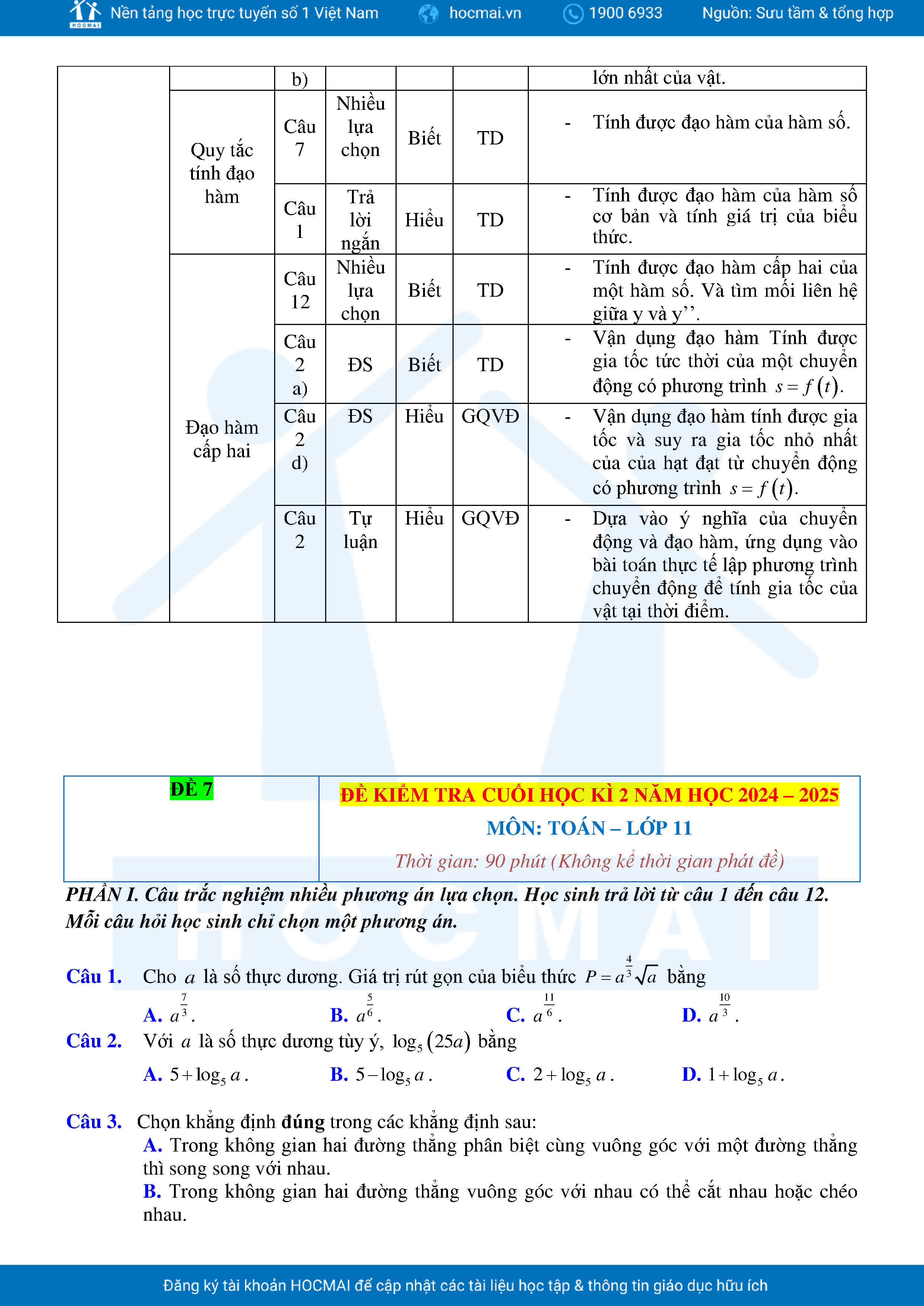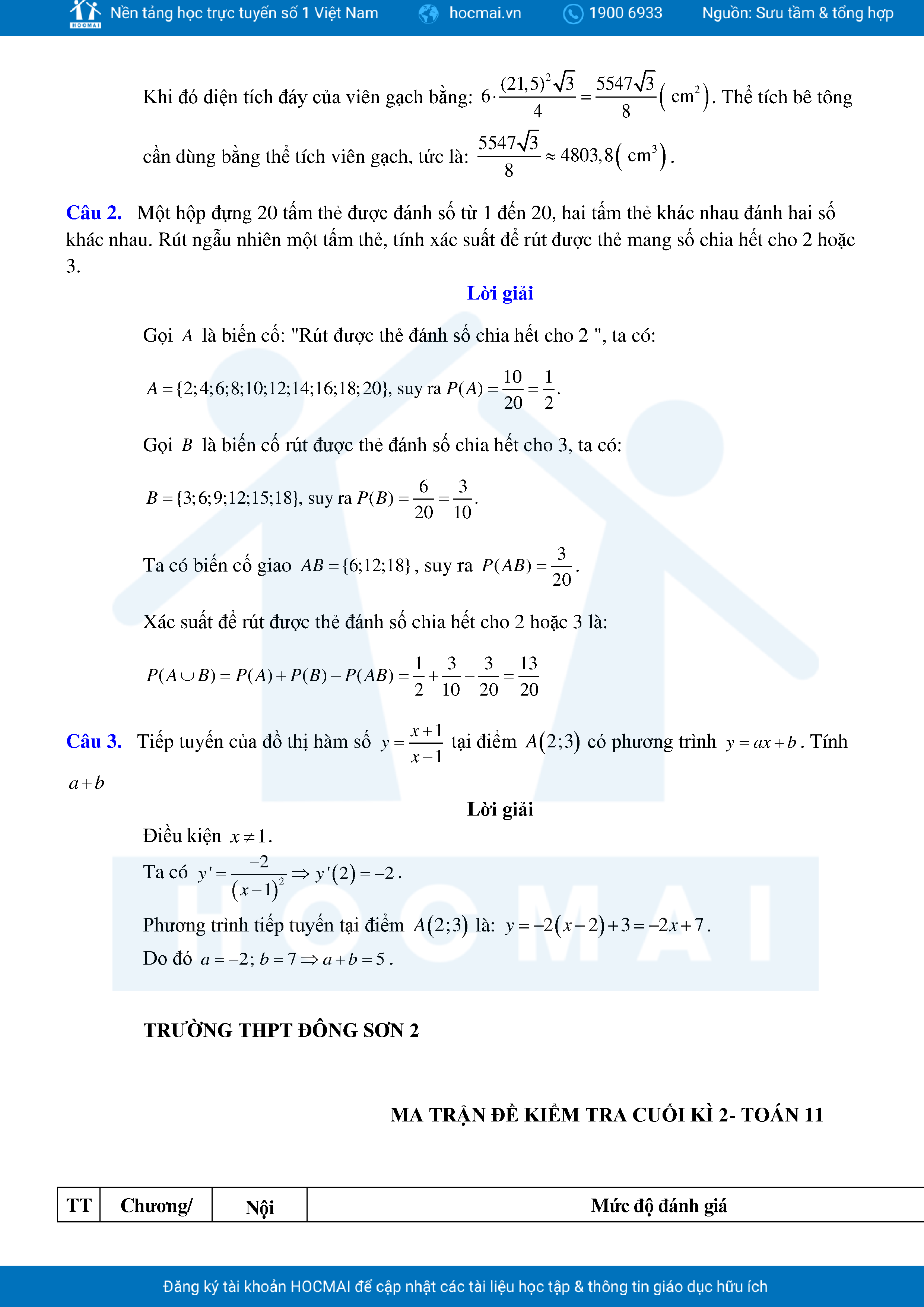 Bộ đề kiểm tra cuối học kì 2 Toán 11 CTM (Đề 6-10) kèm lời giải chi tiết.