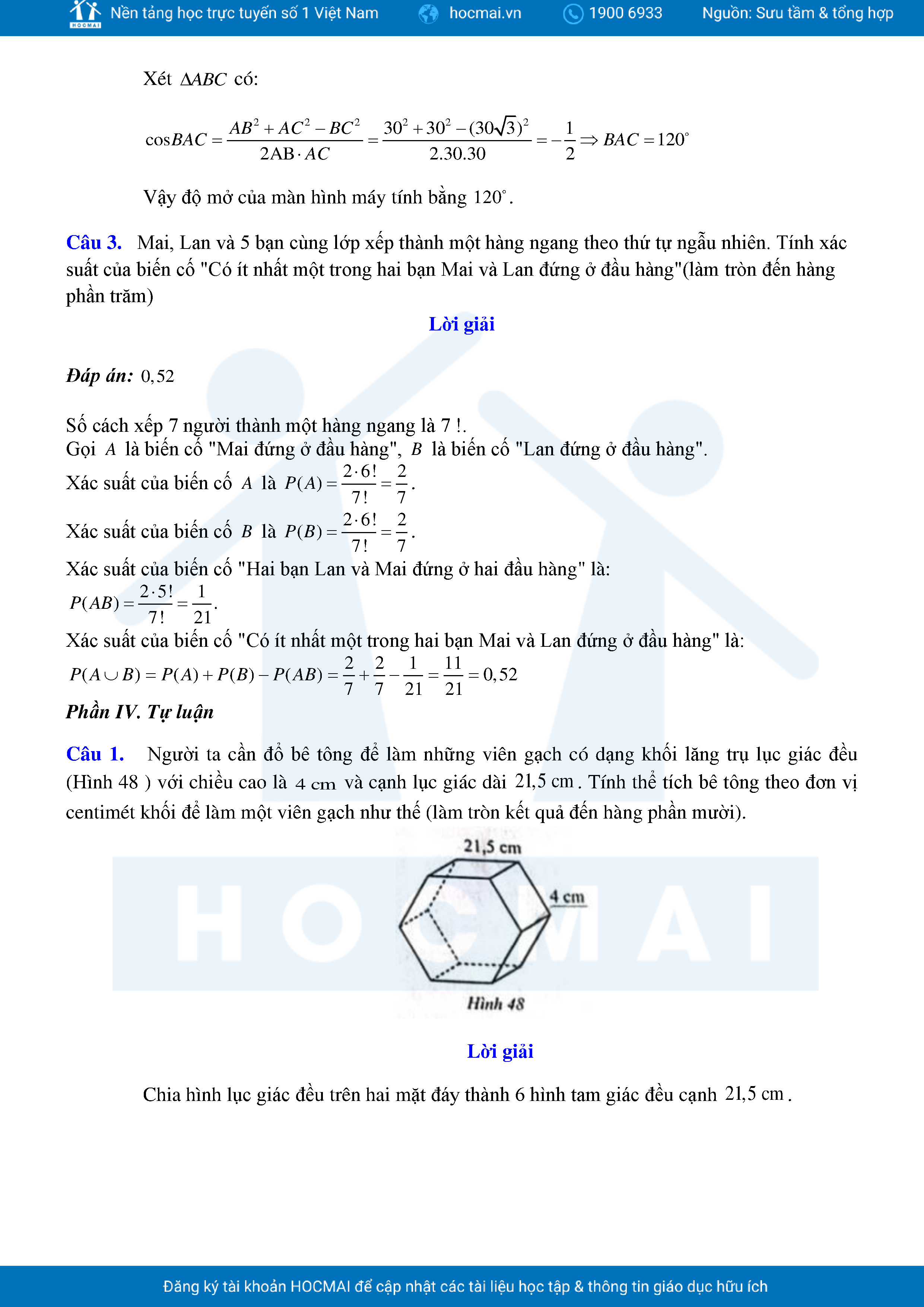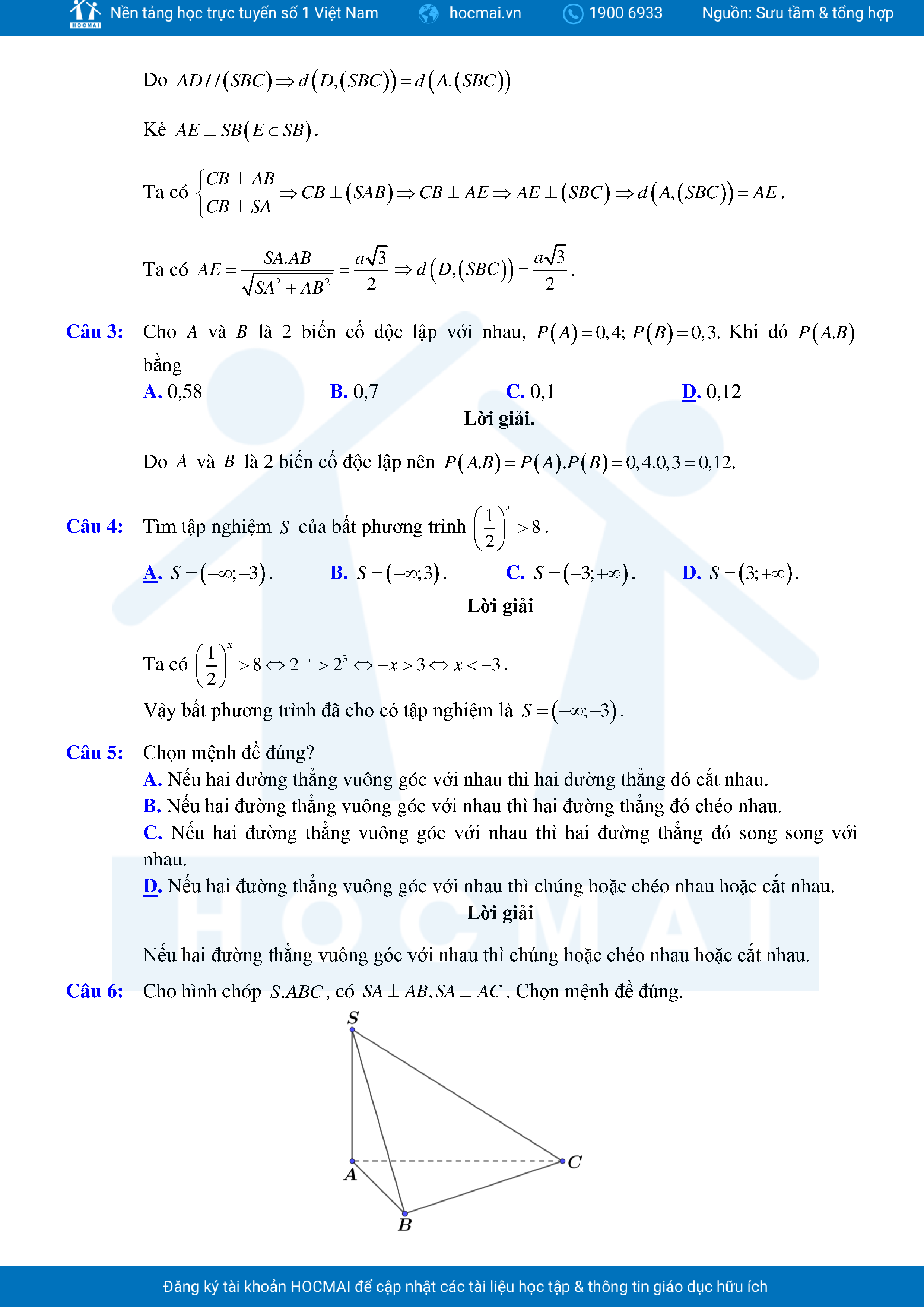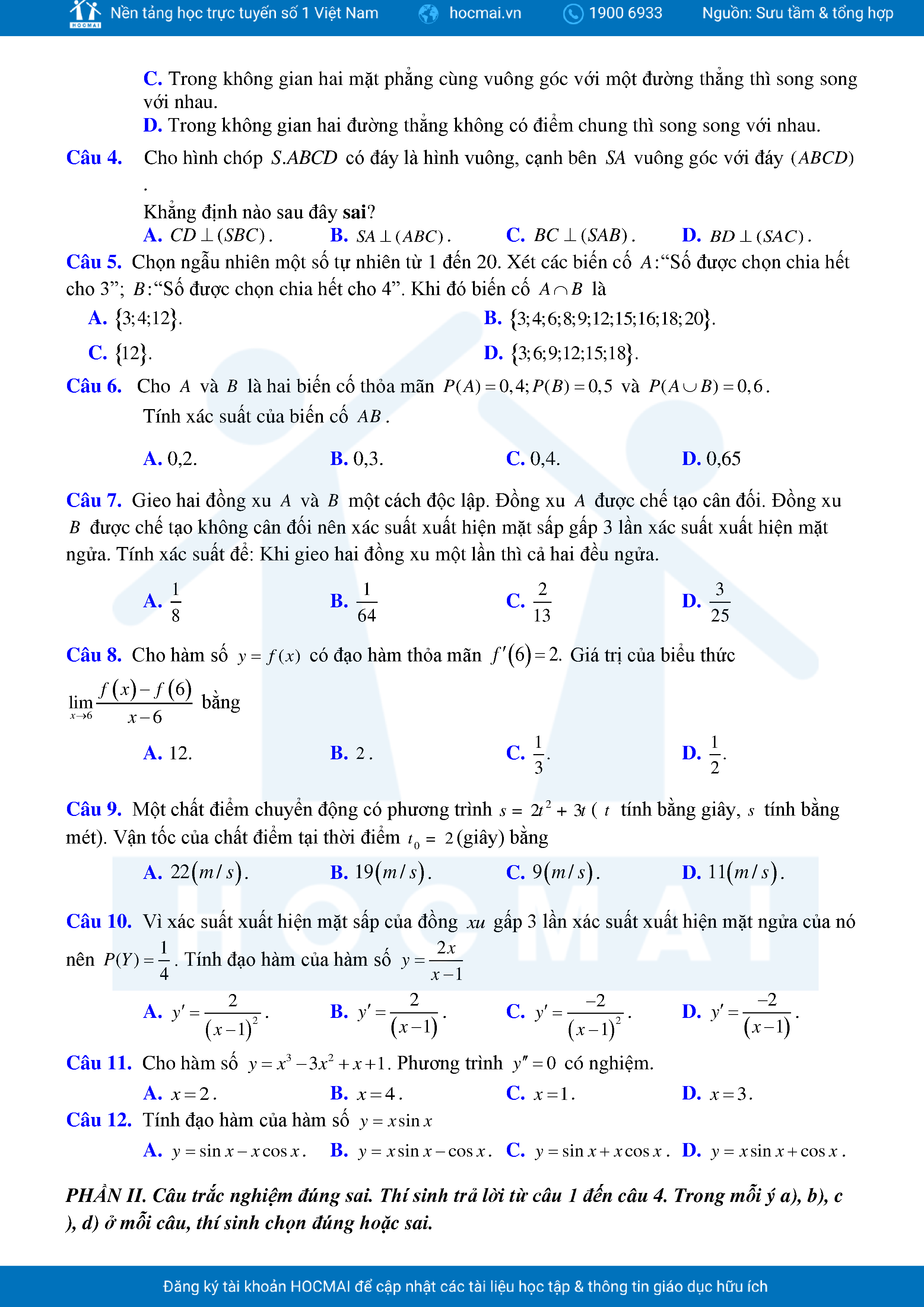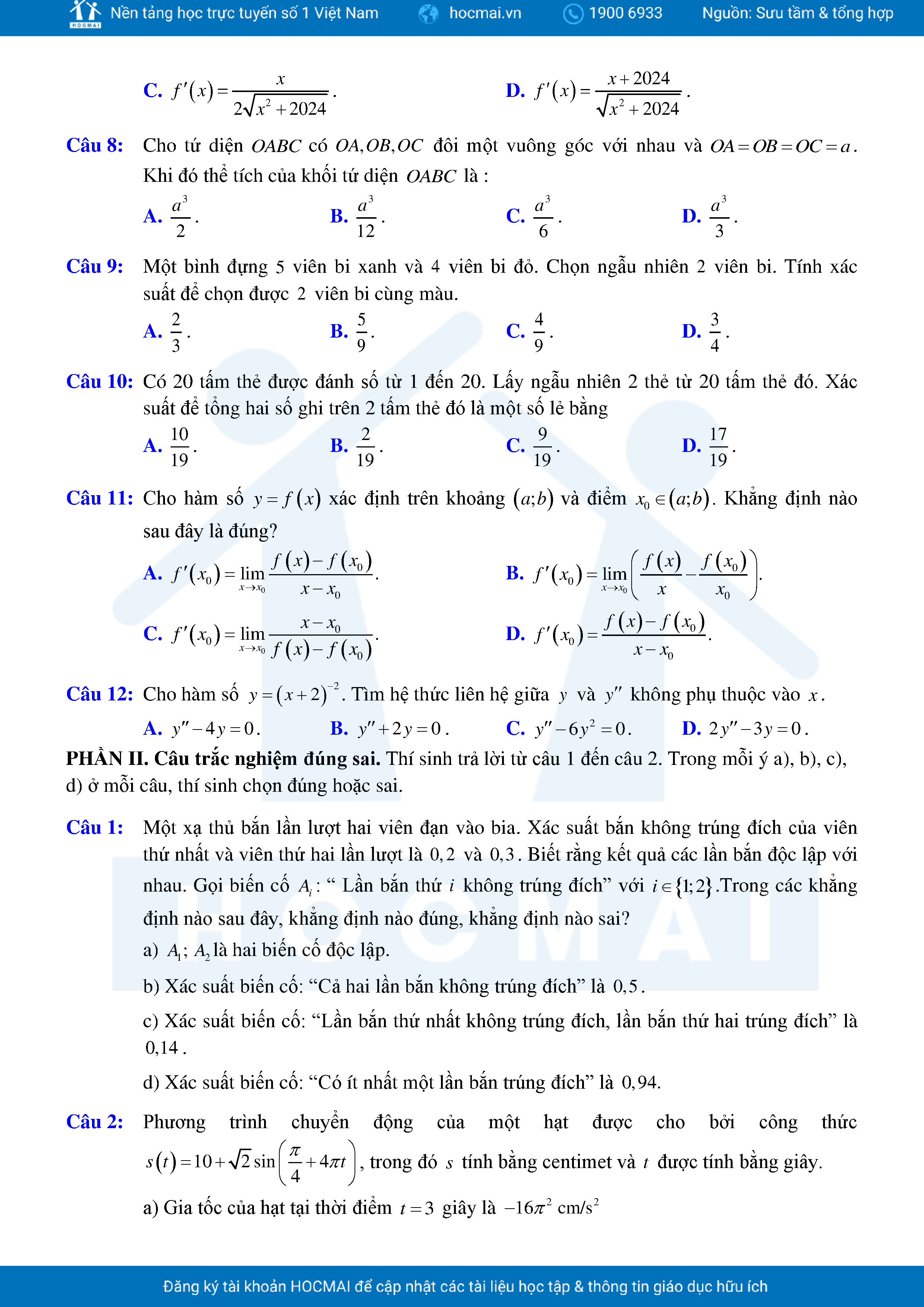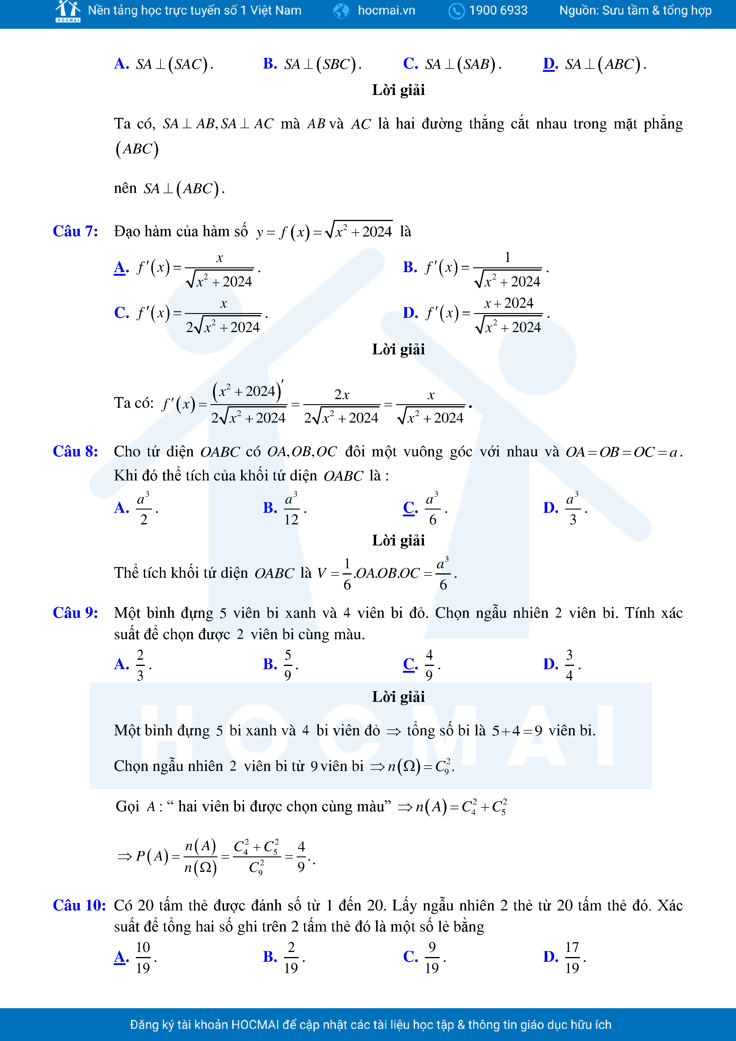 Bộ đề kiểm tra cuối học kì 2 Toán 11 CTM (Đề 6-10) kèm lời giải chi tiết.