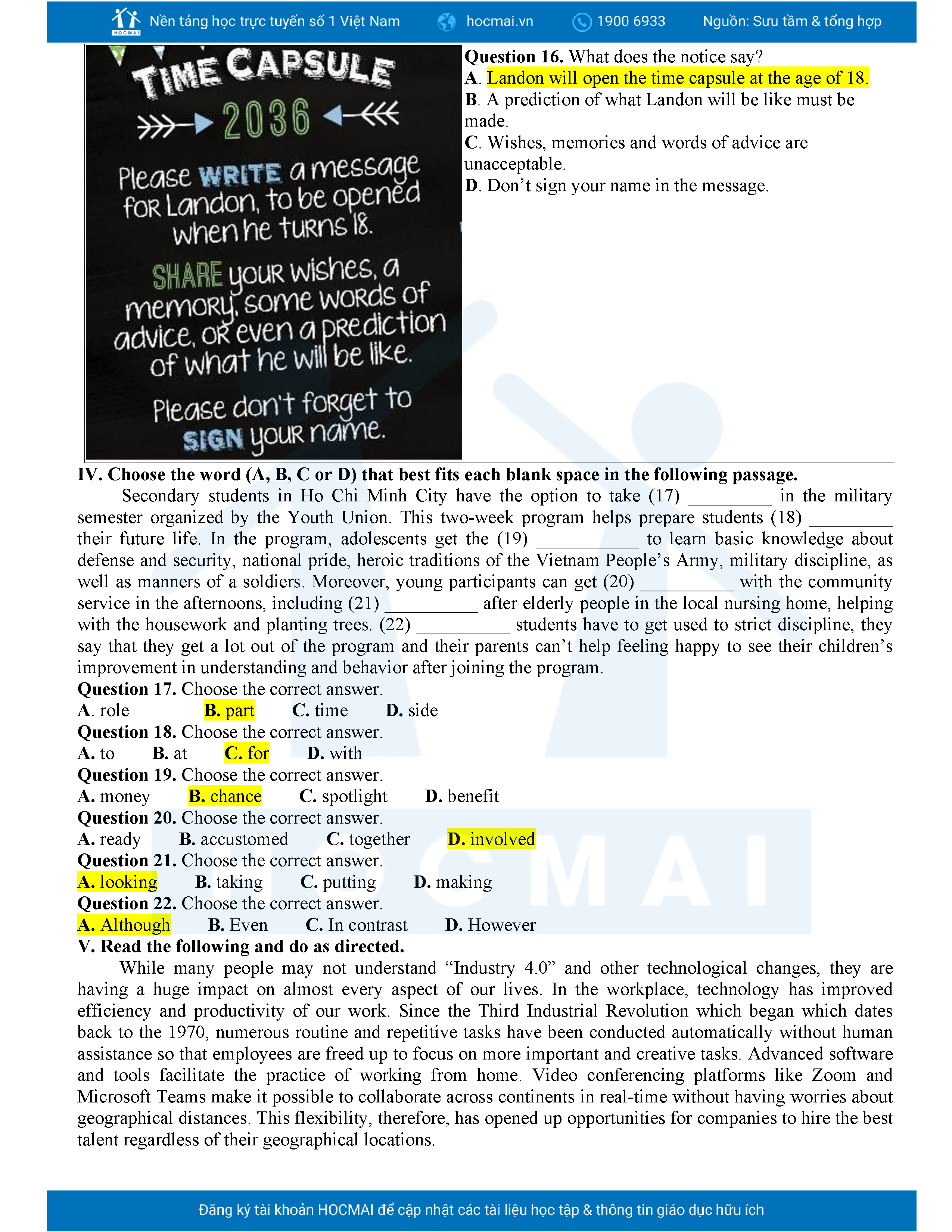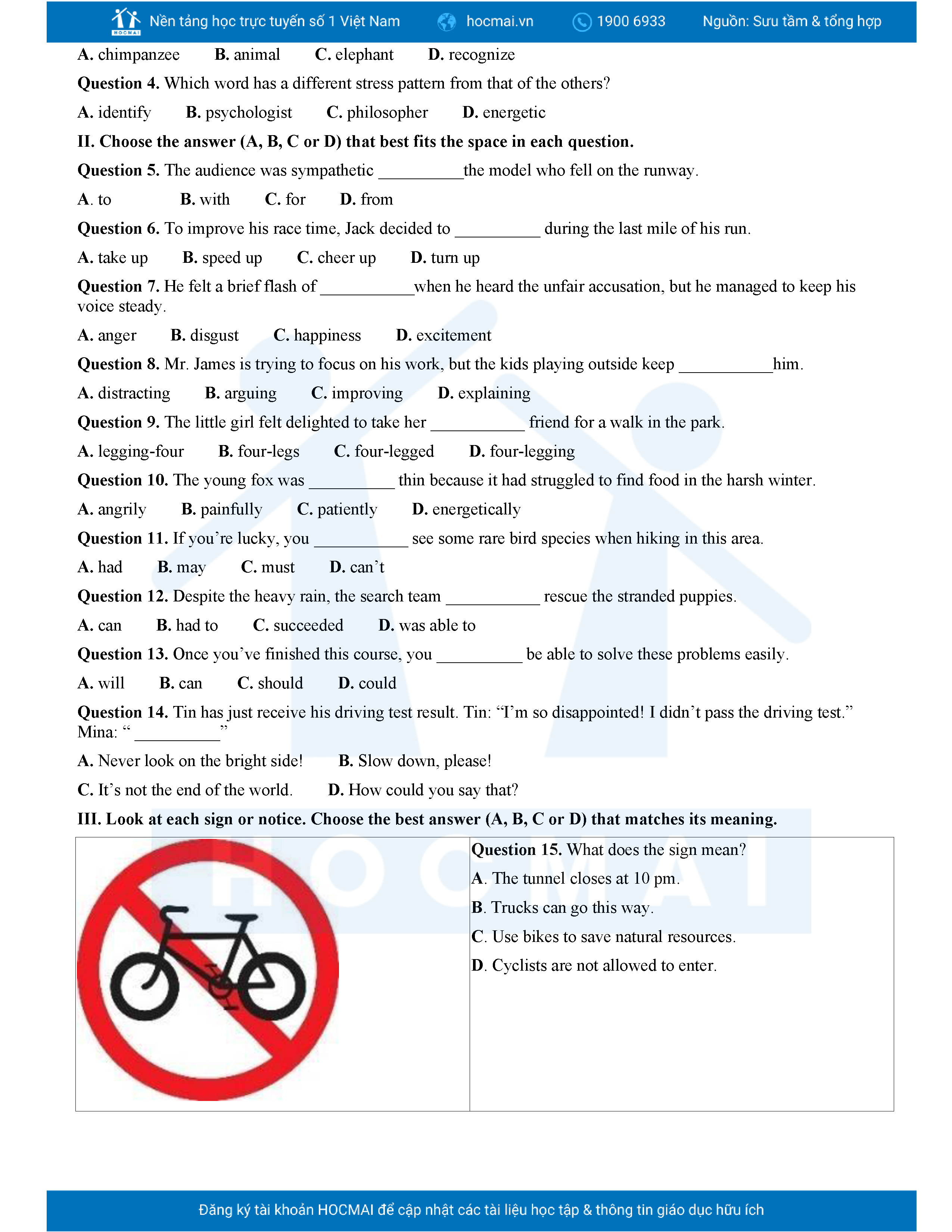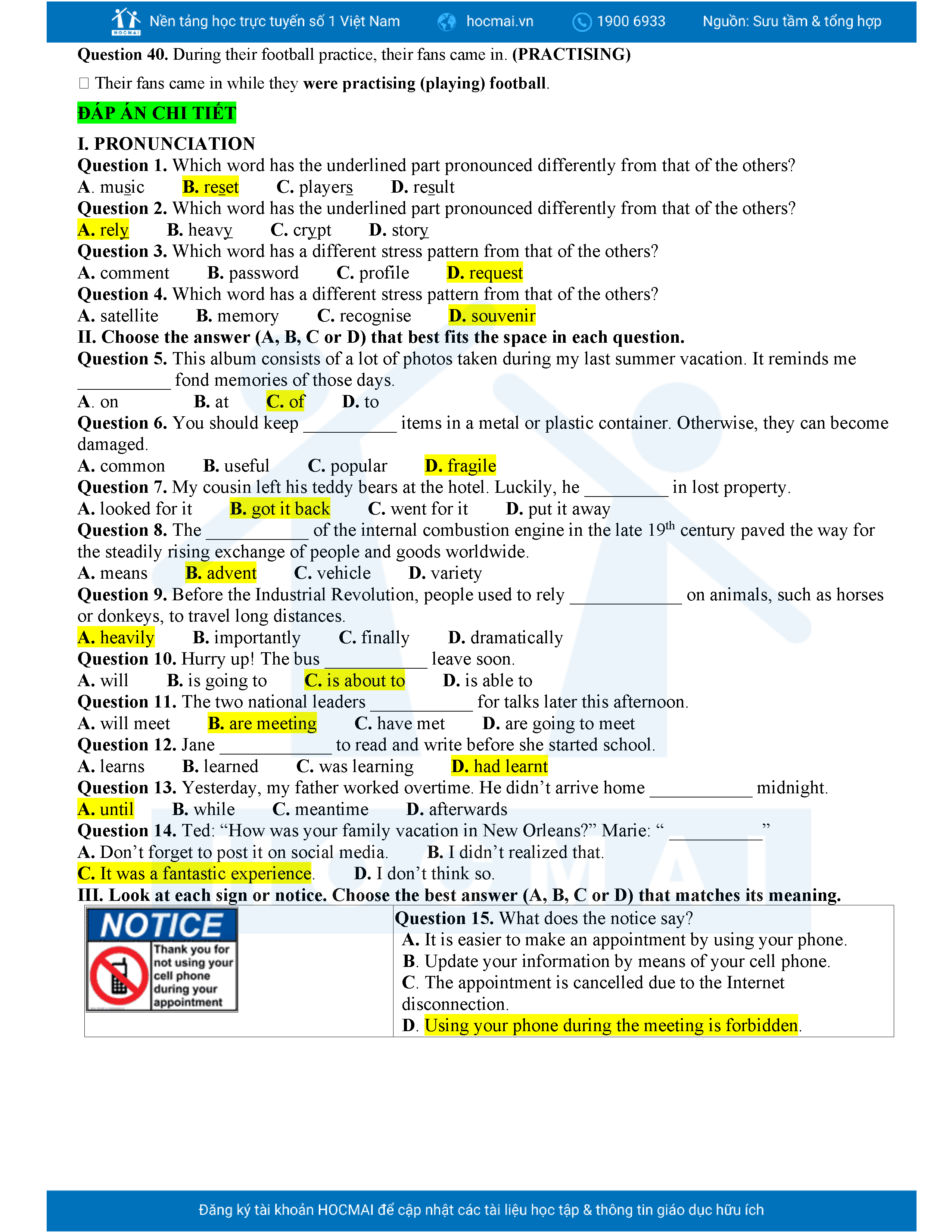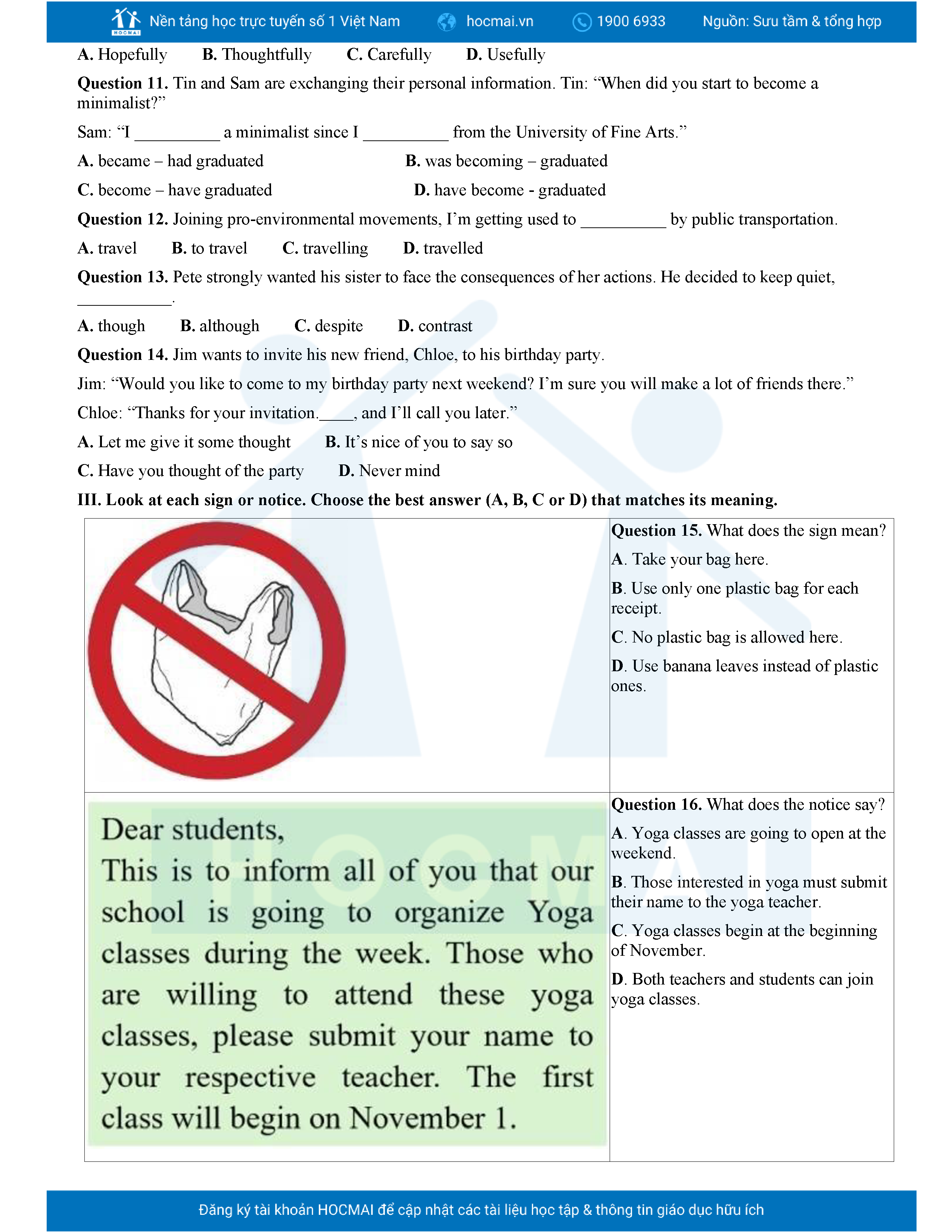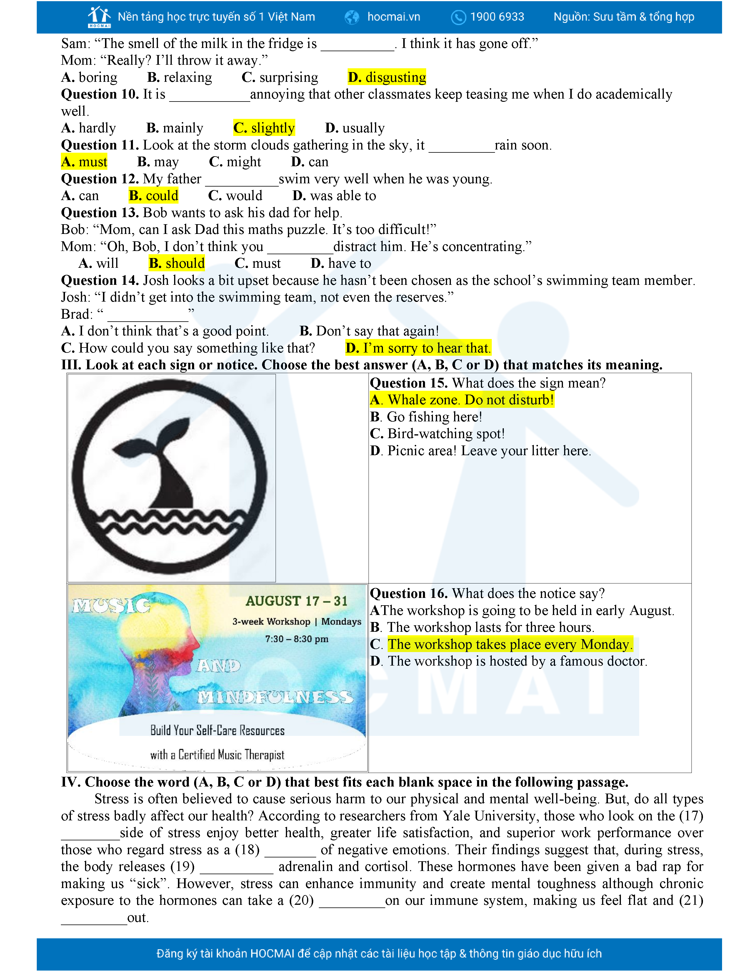 Bộ 10 đề Tiếng Anh ôn thi vào 10 TPHCM