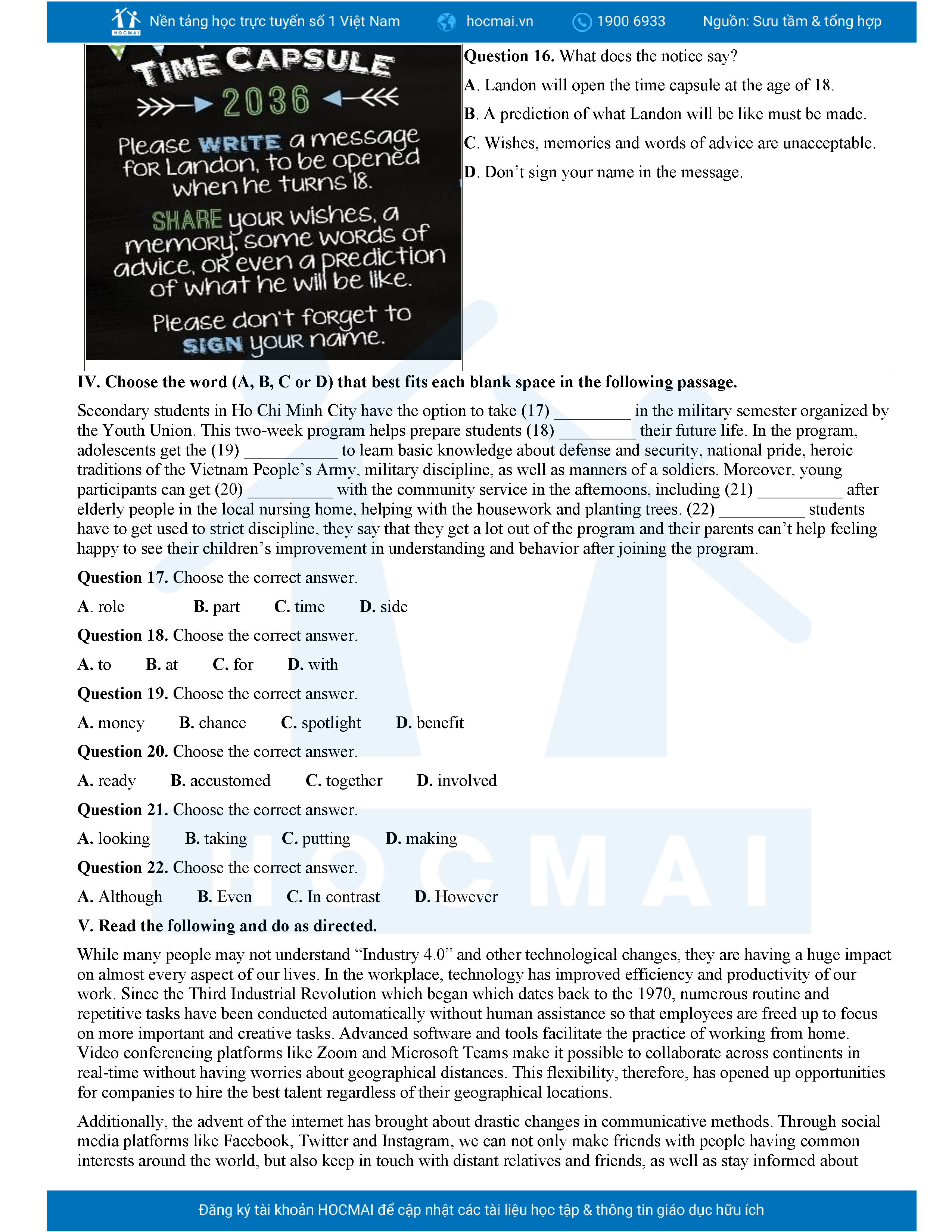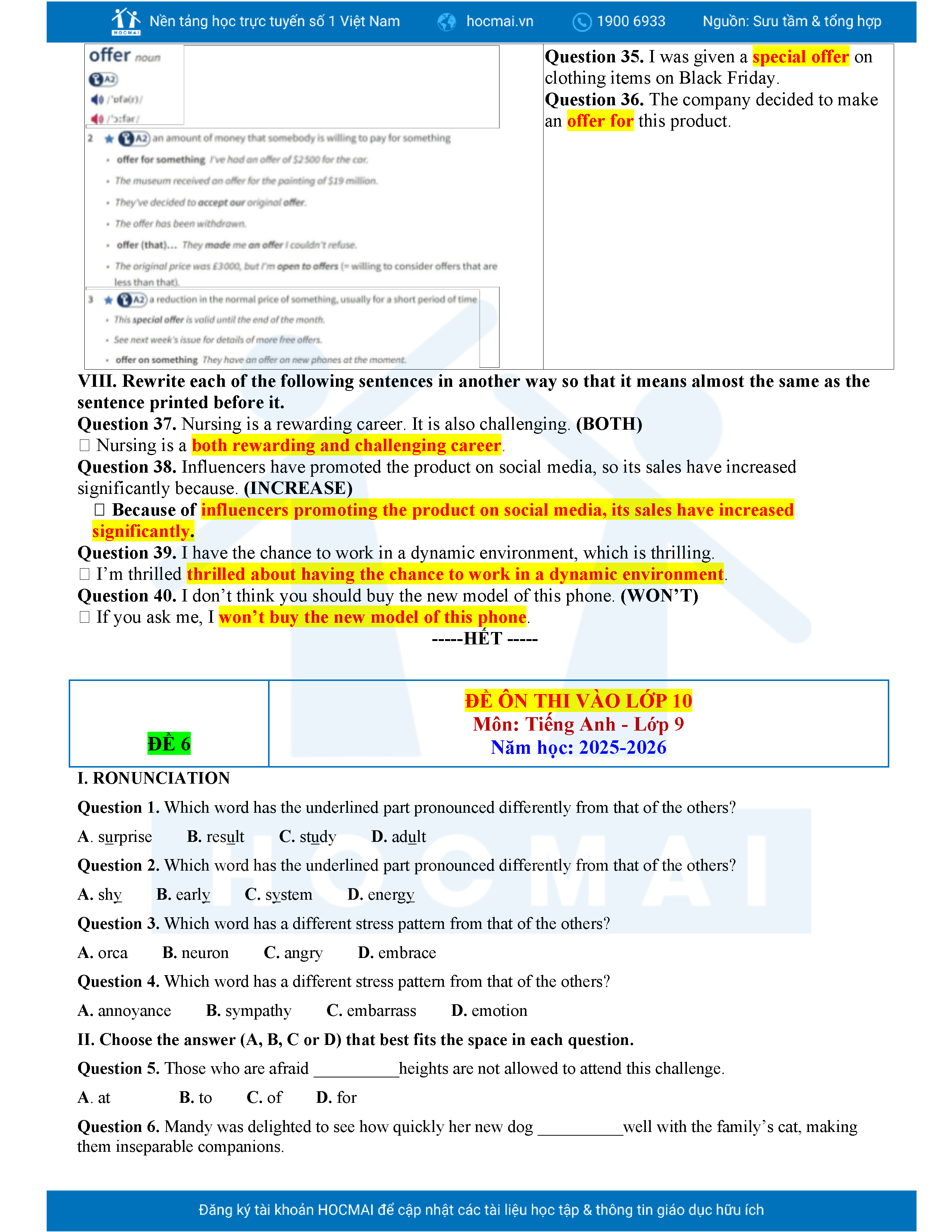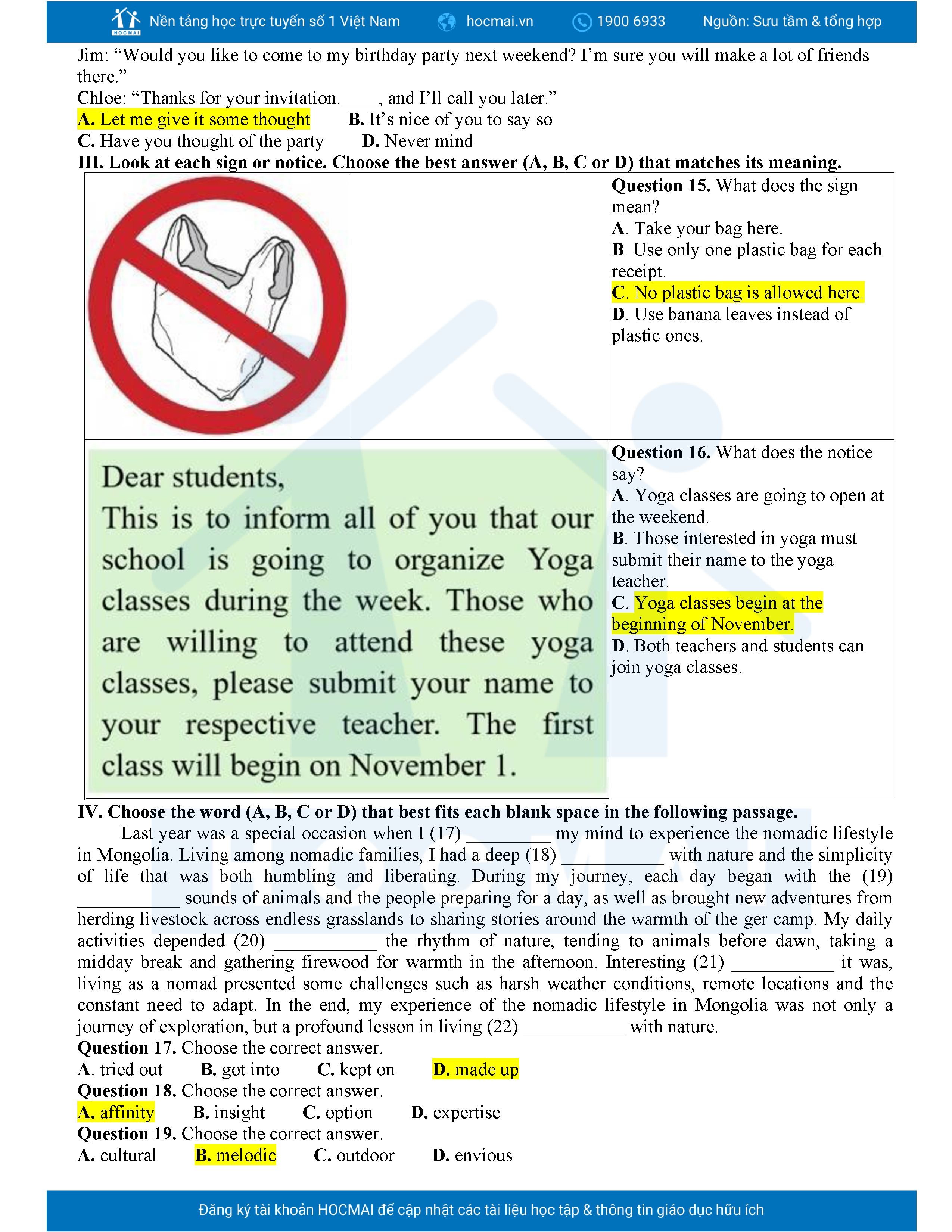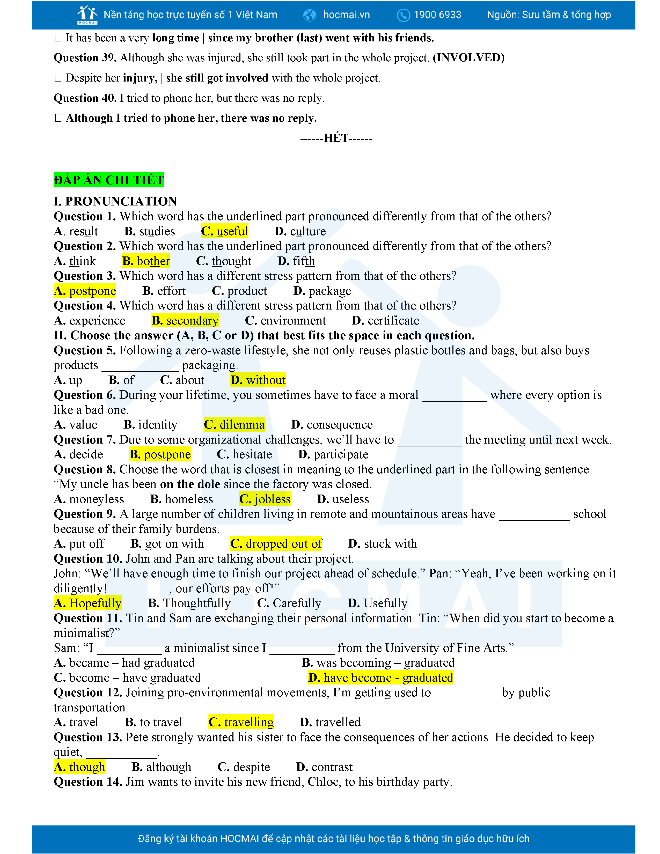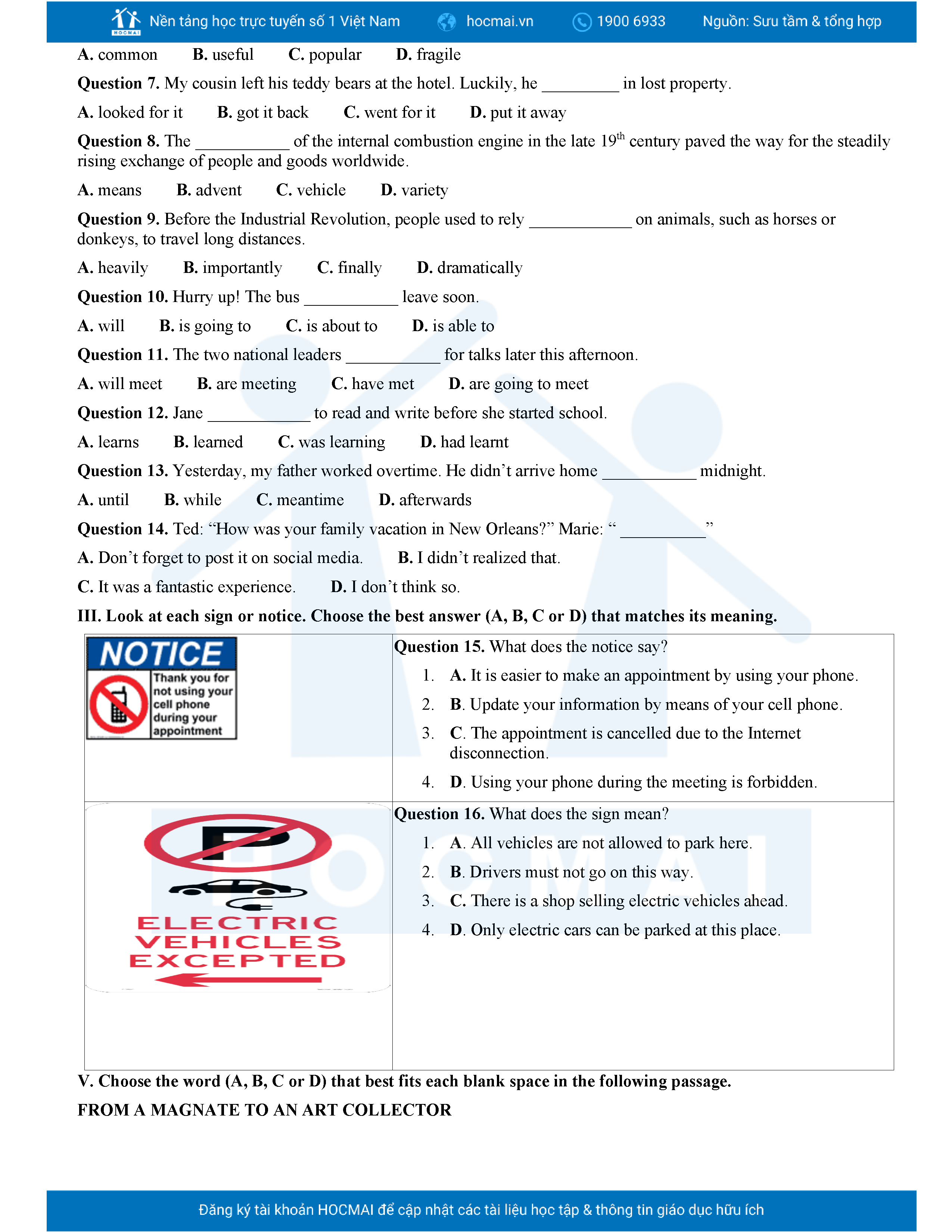 Bộ 10 đề Tiếng Anh ôn thi vào 10 TPHCM
