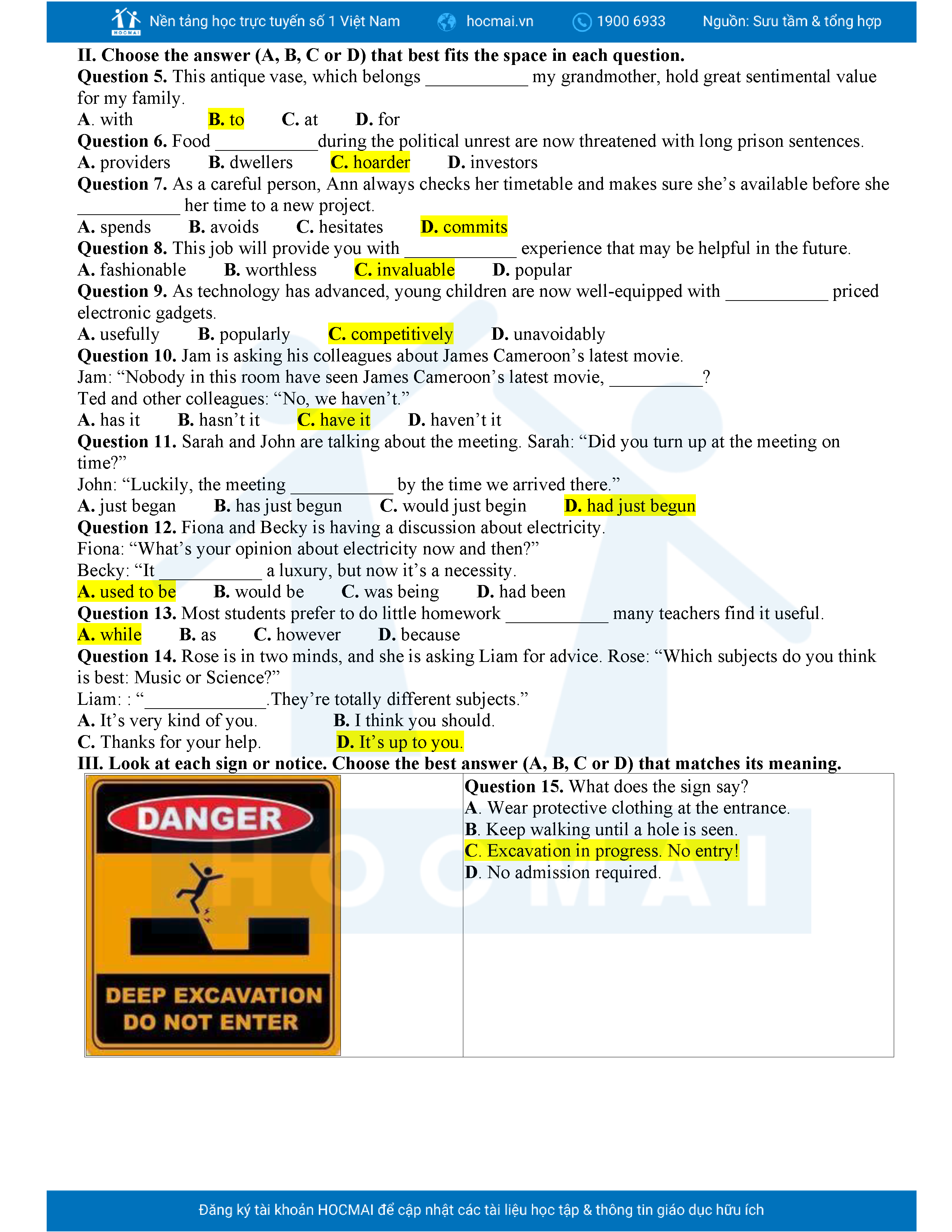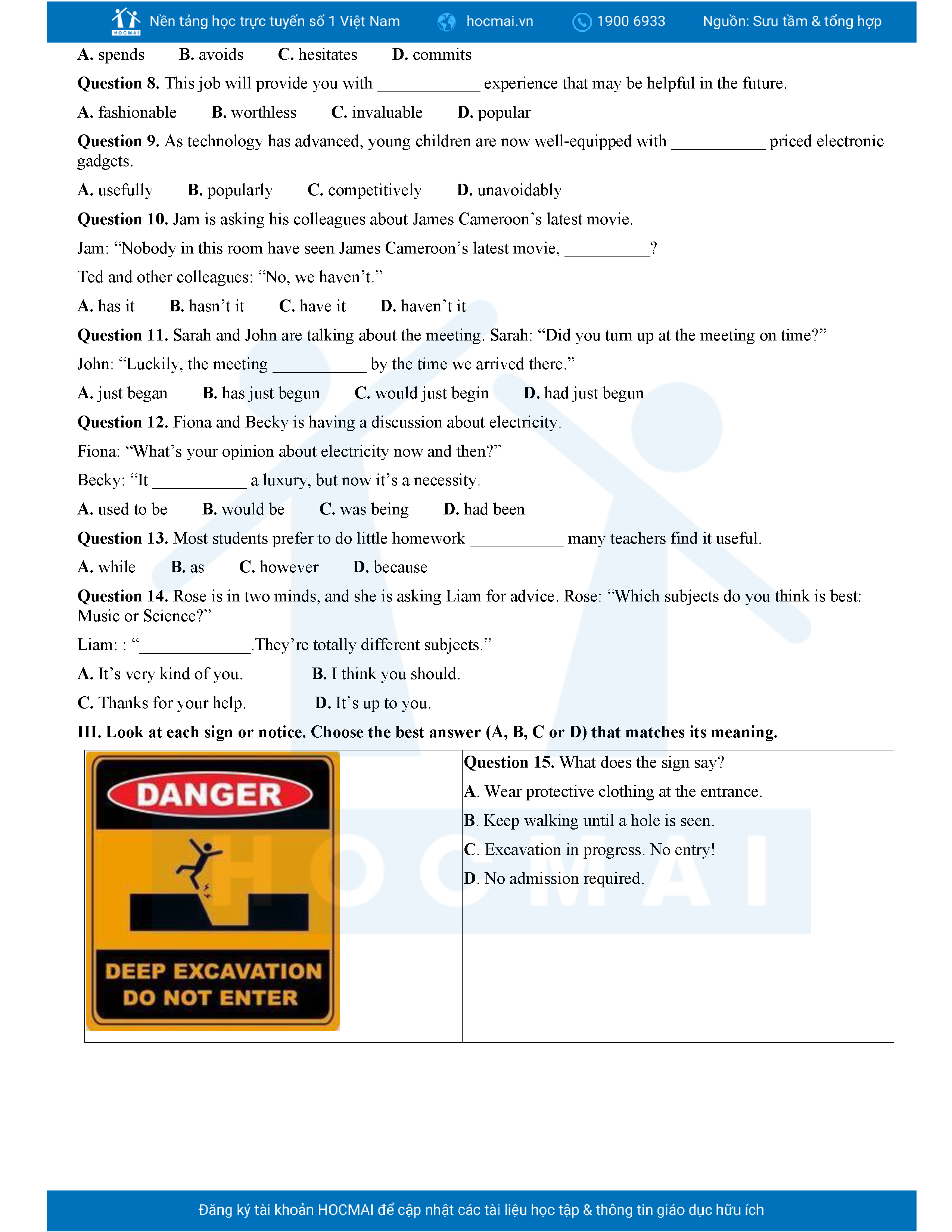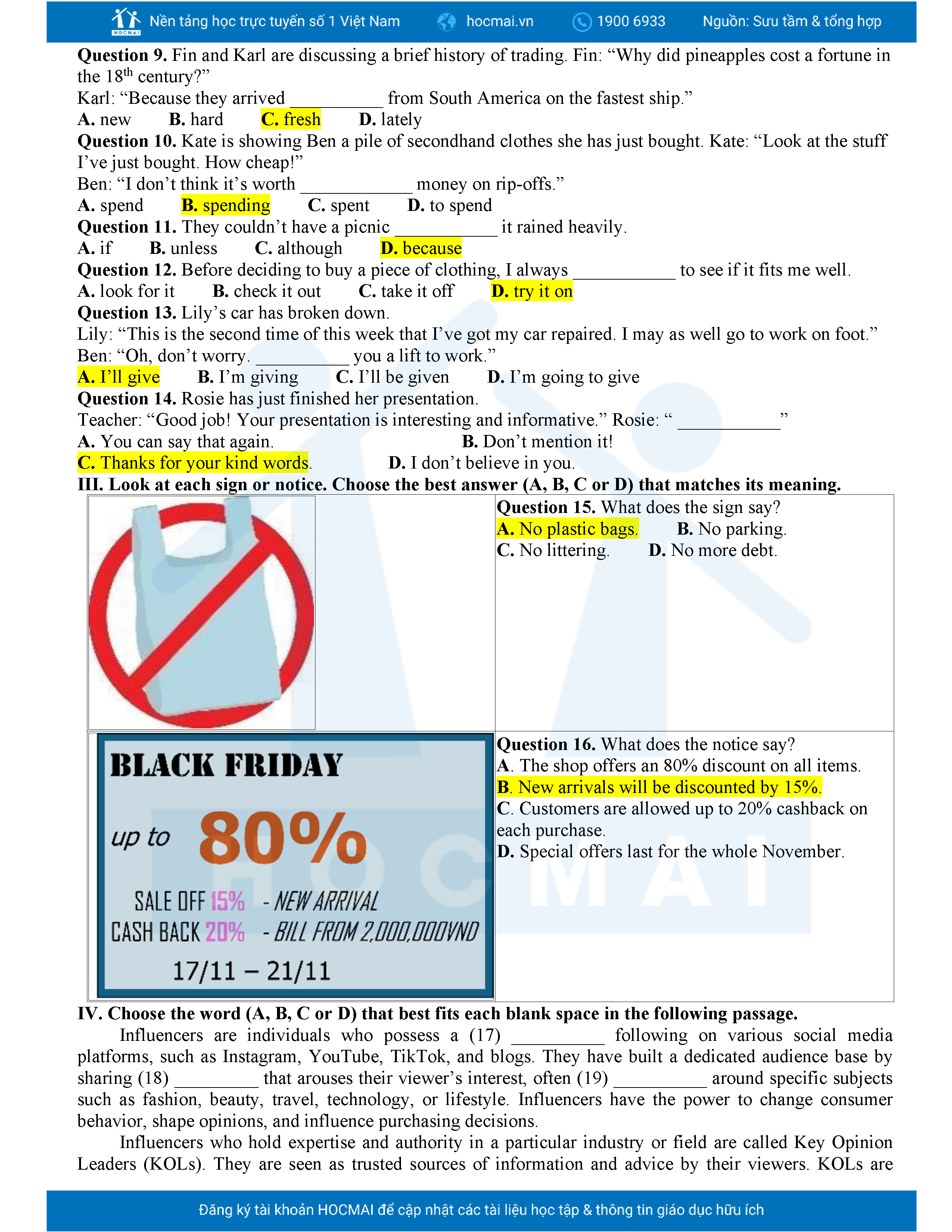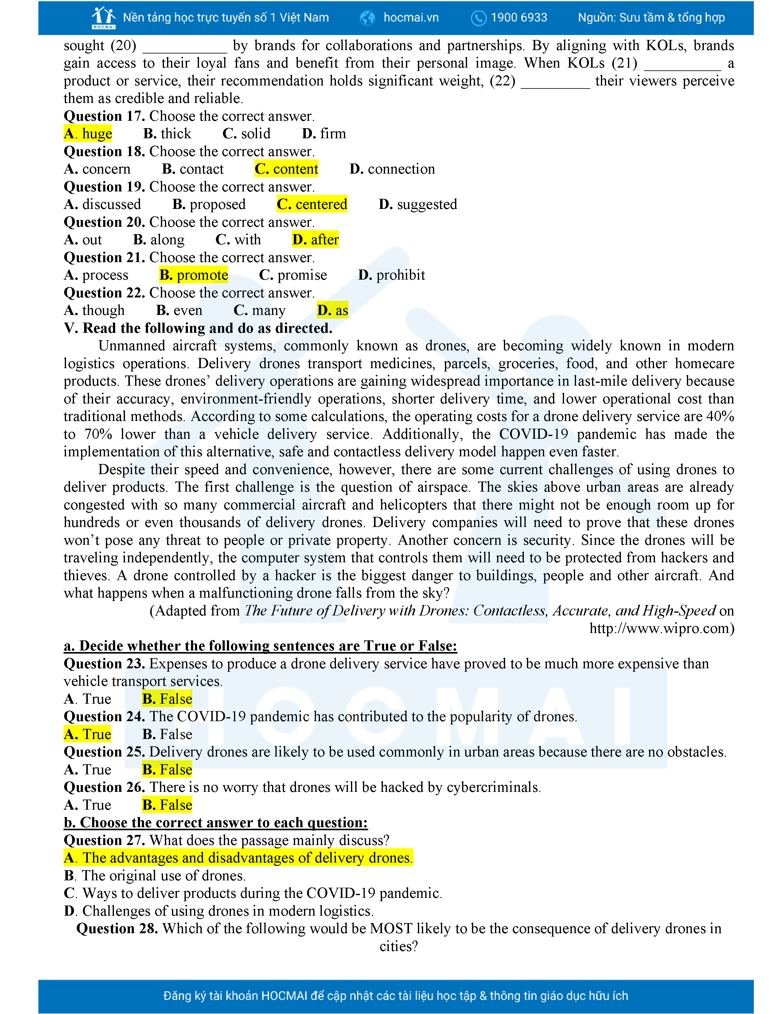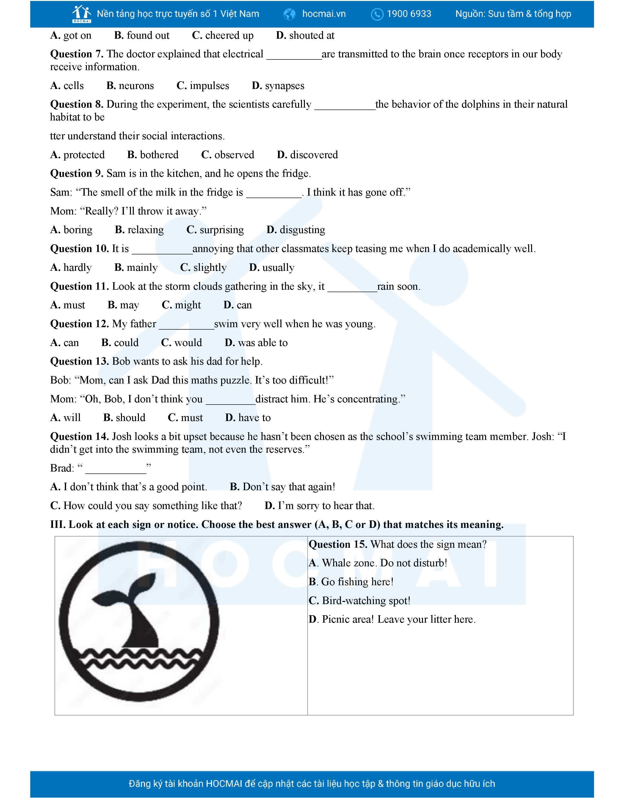 Bộ 10 đề Tiếng Anh ôn thi vào 10 TPHCM