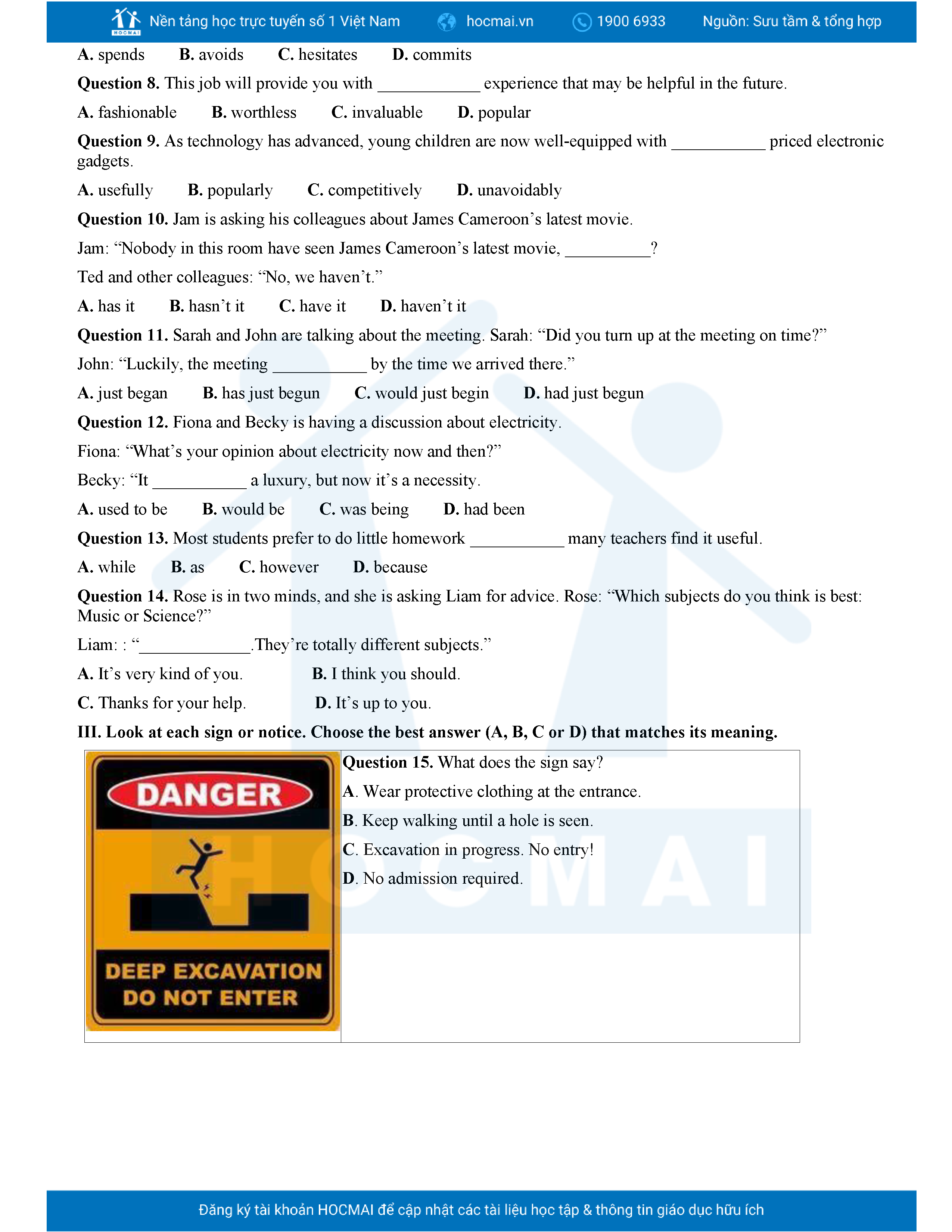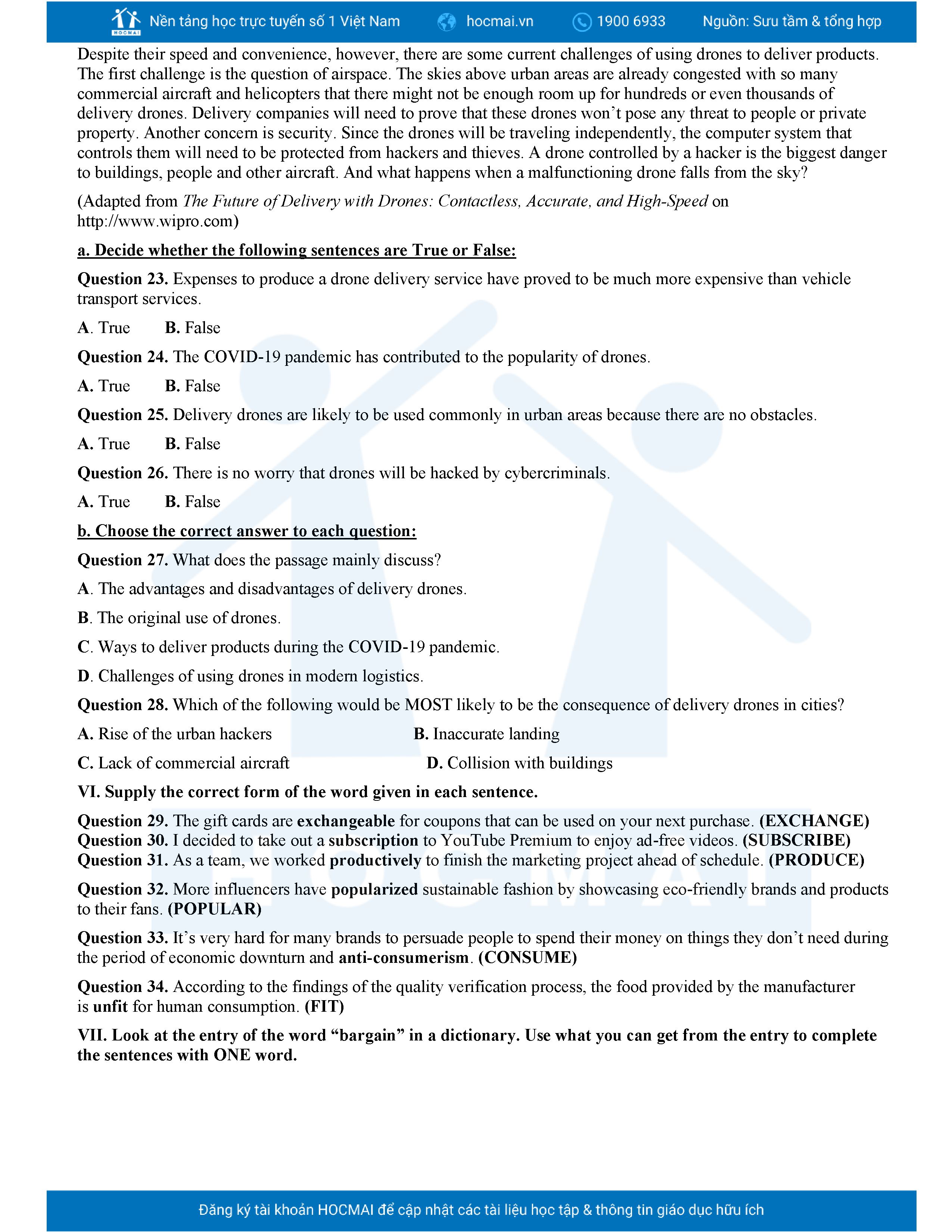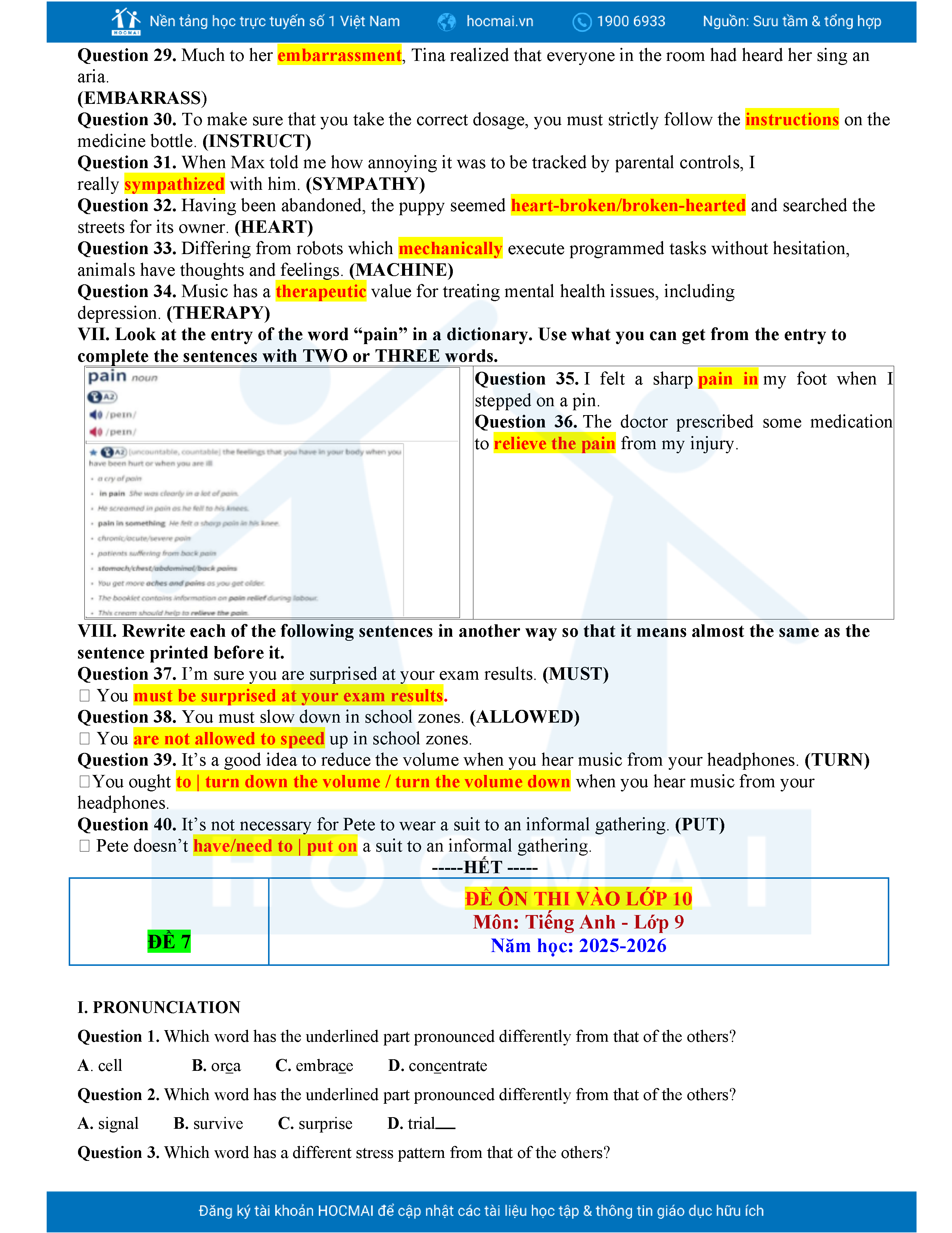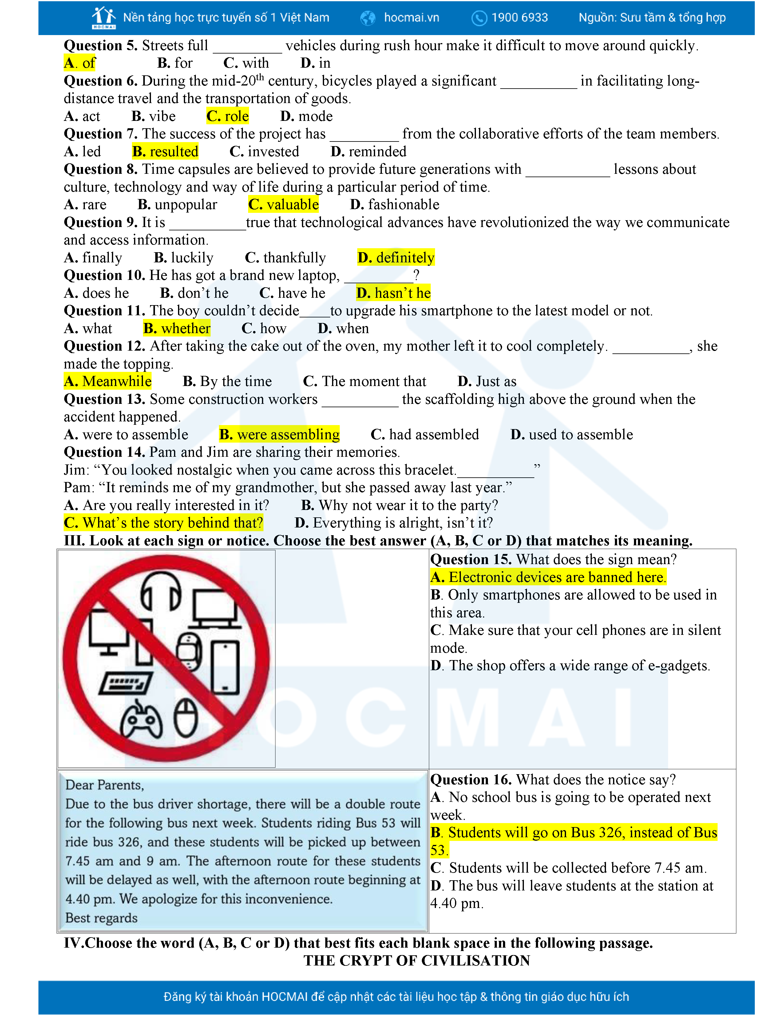Bộ 10 đề Tiếng Anh ôn thi vào 10 TPHCM