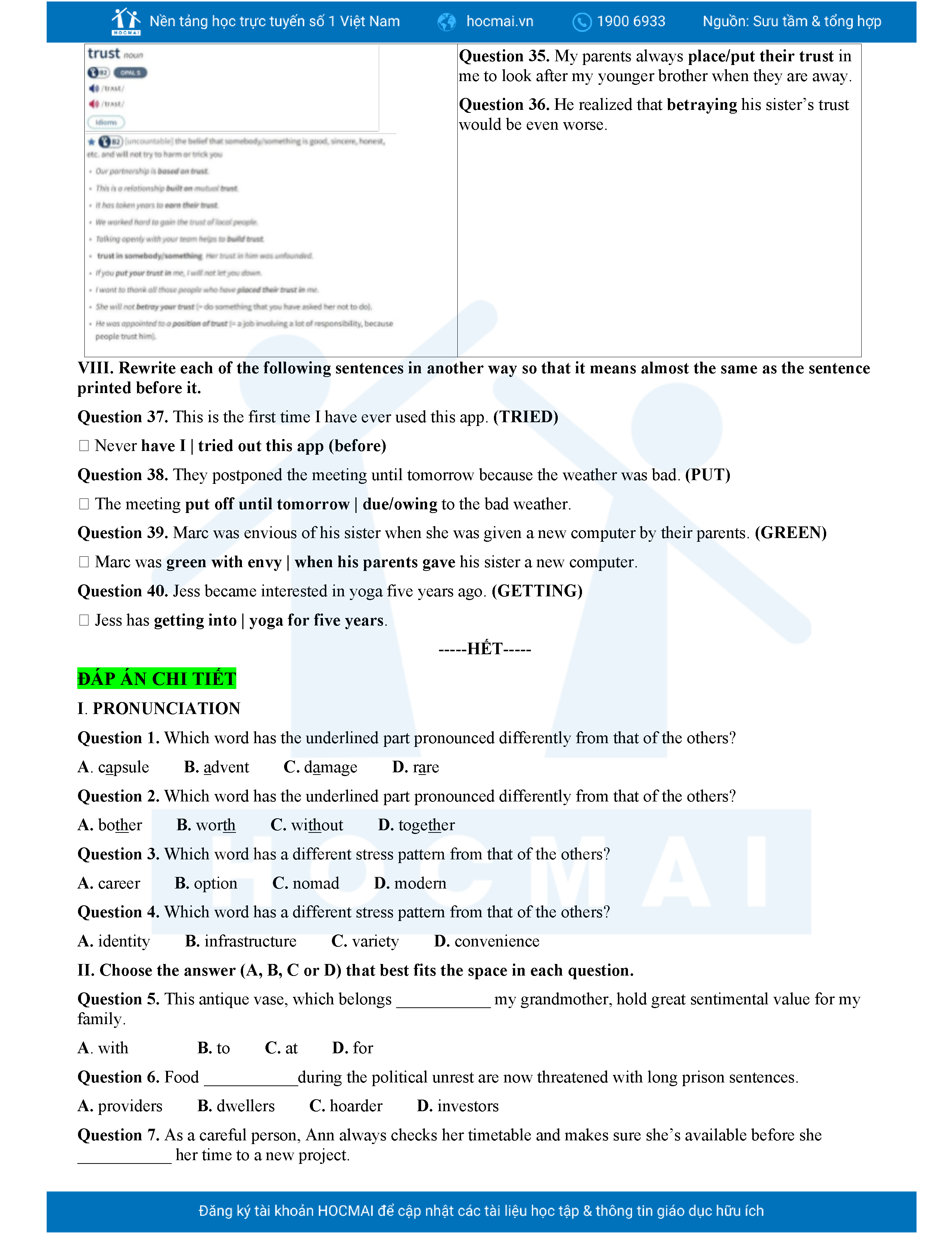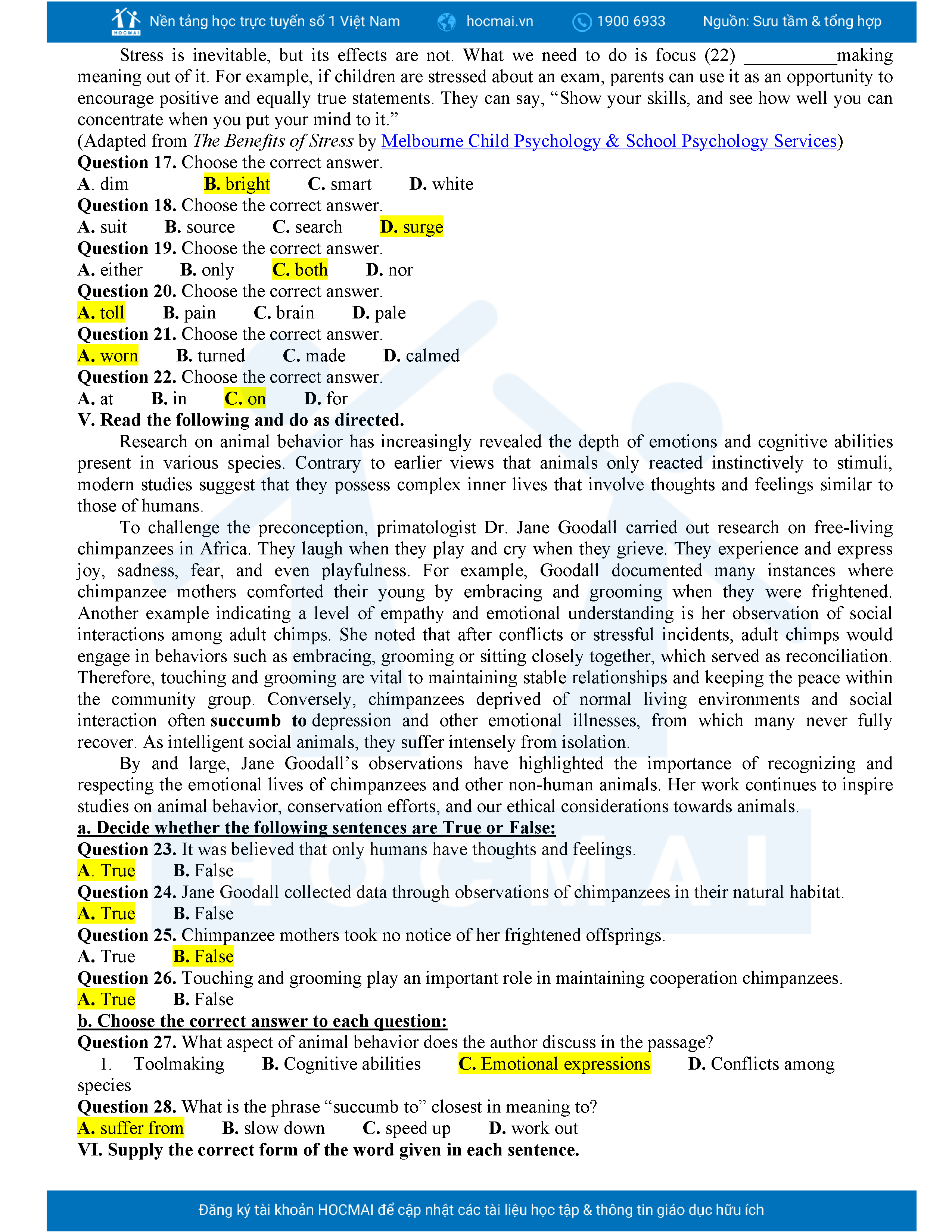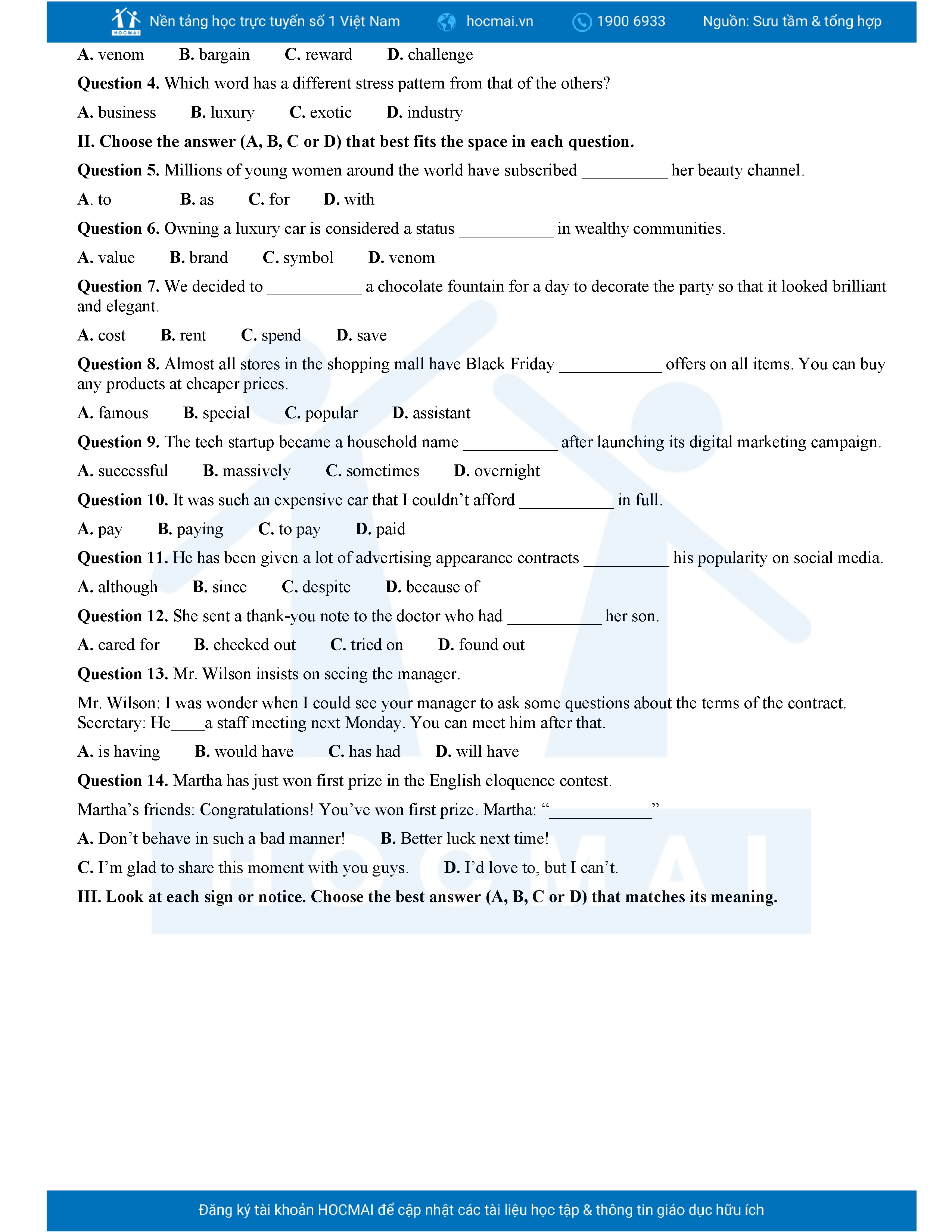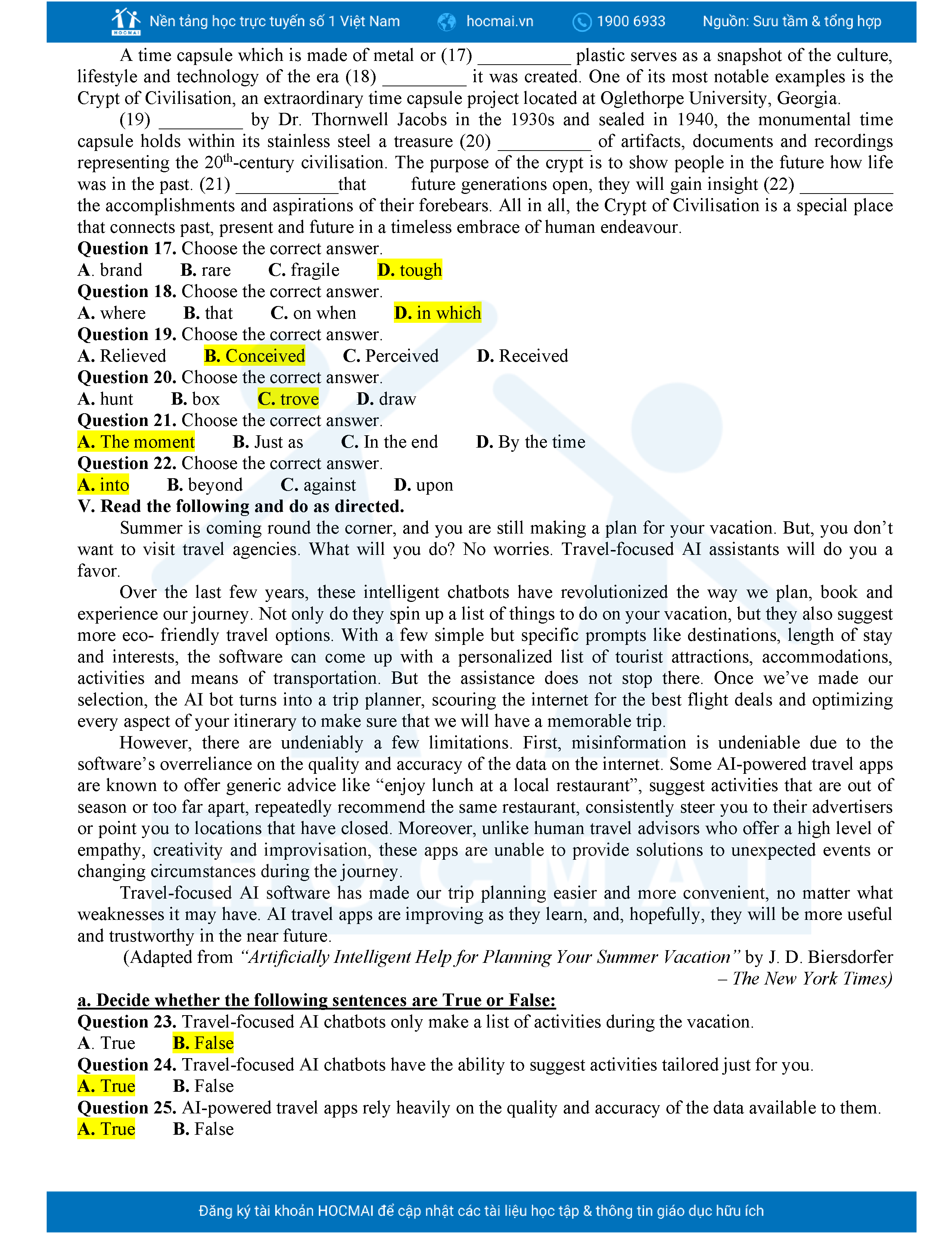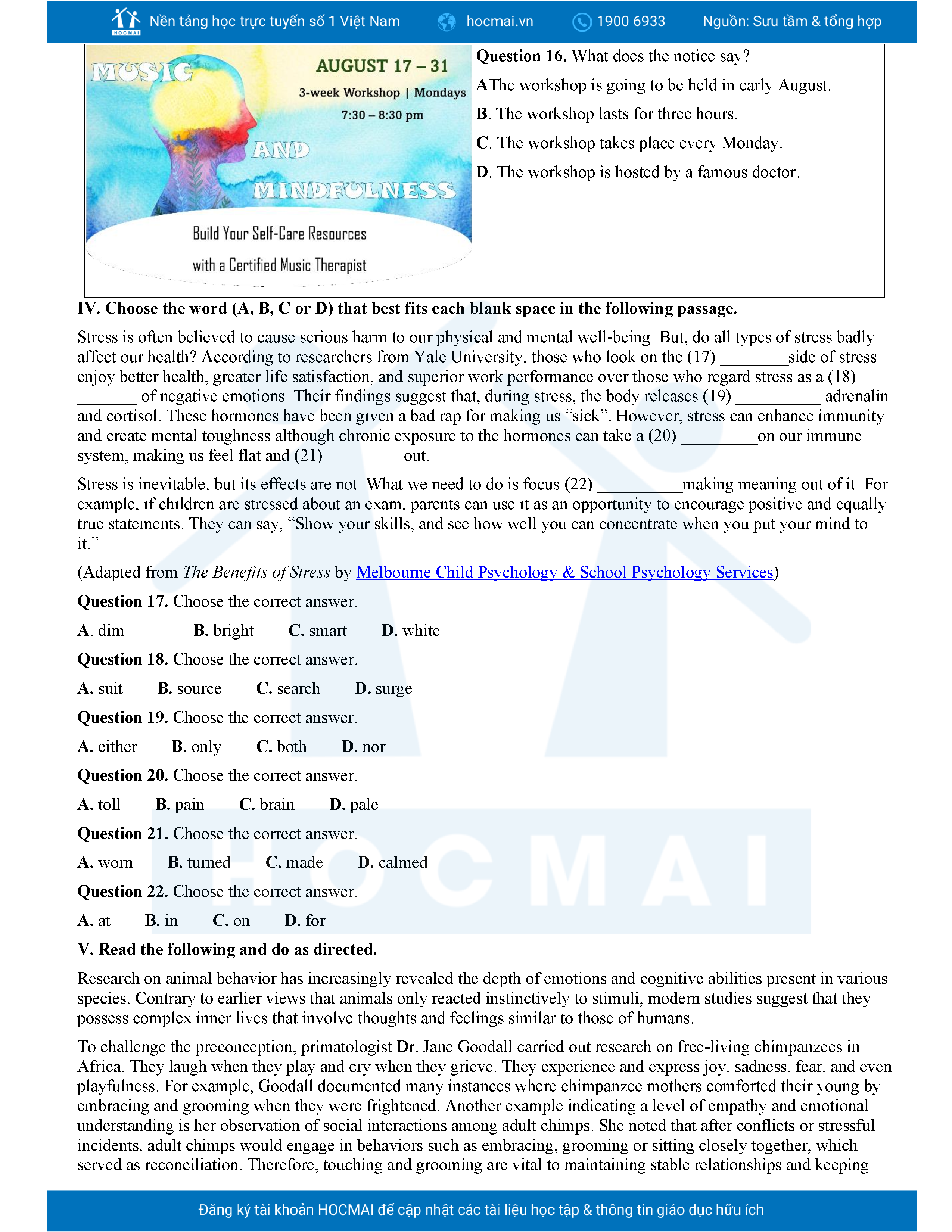Bộ 10 đề Tiếng Anh ôn thi vào 10 TPHCM