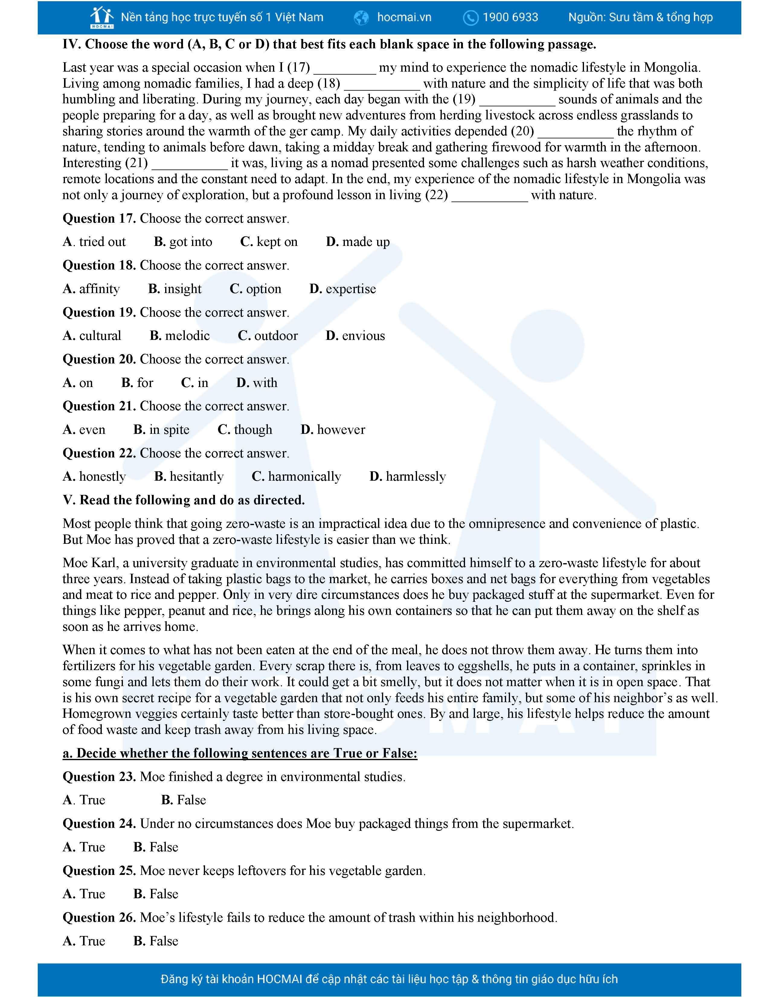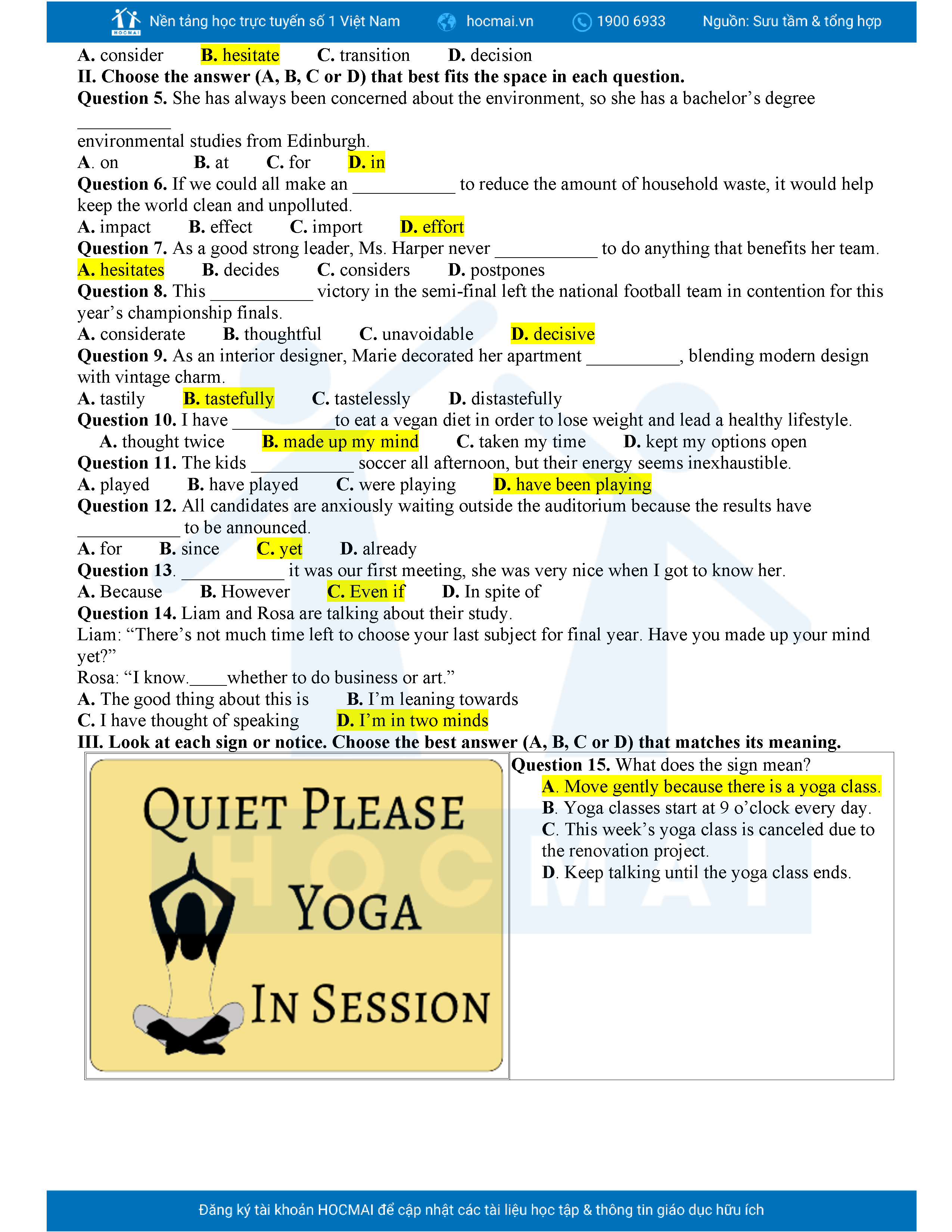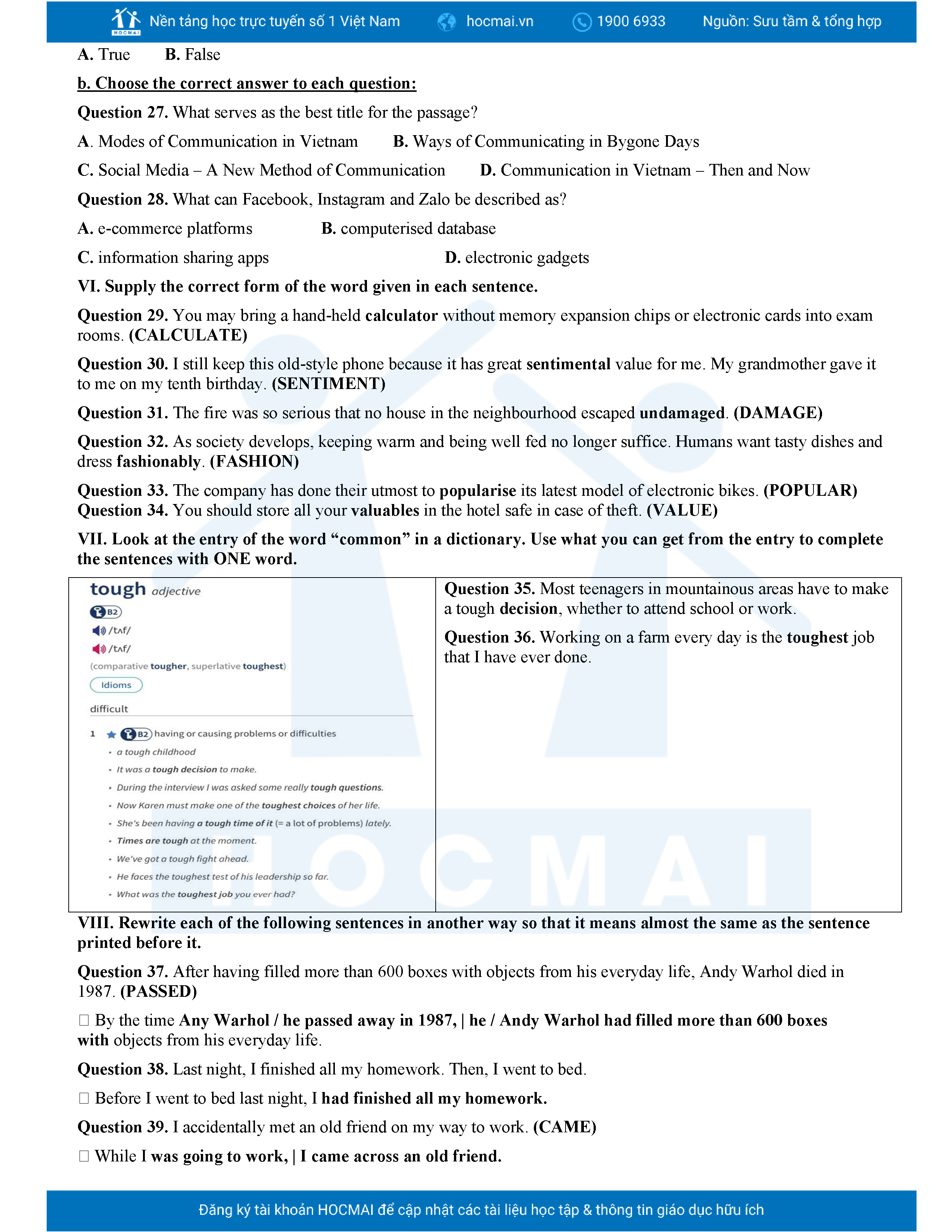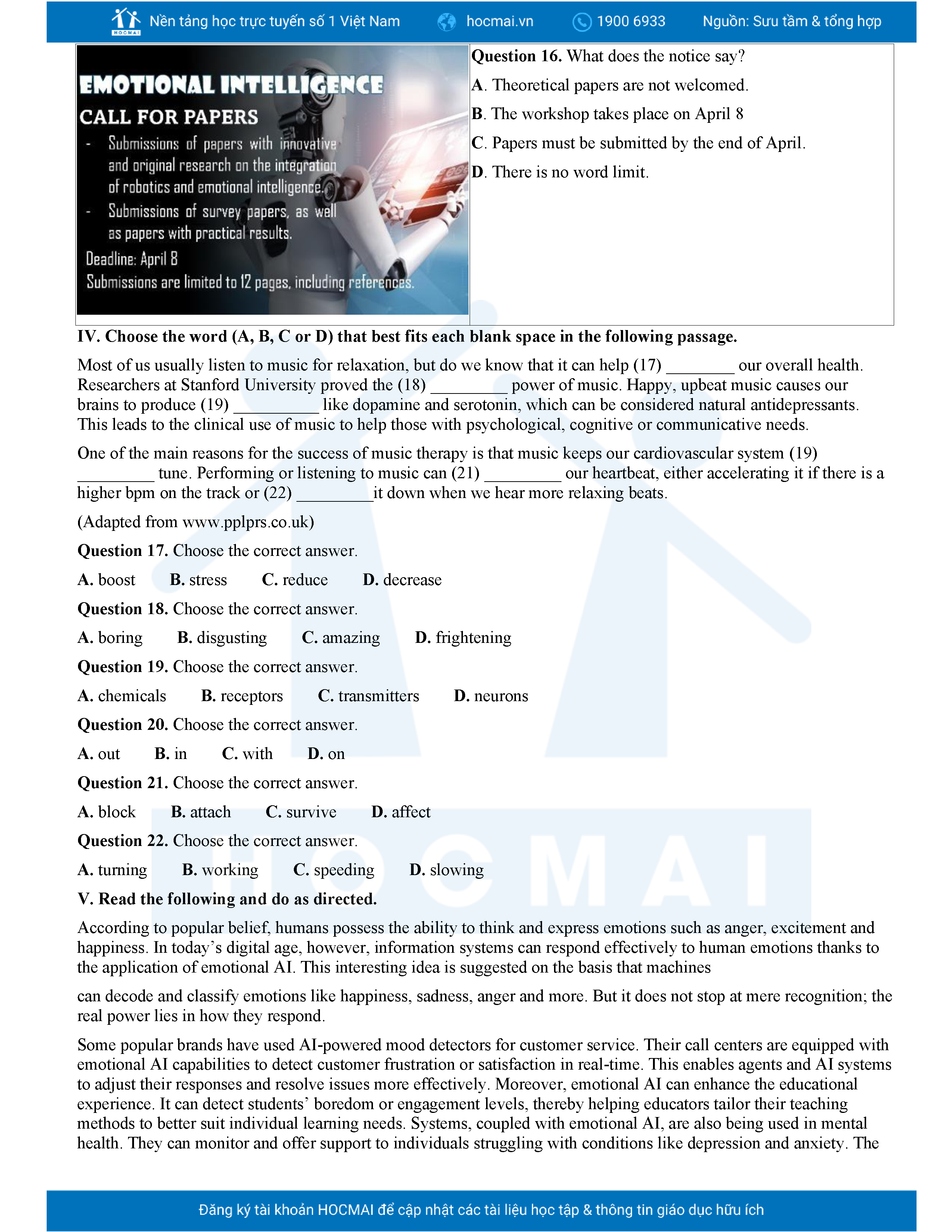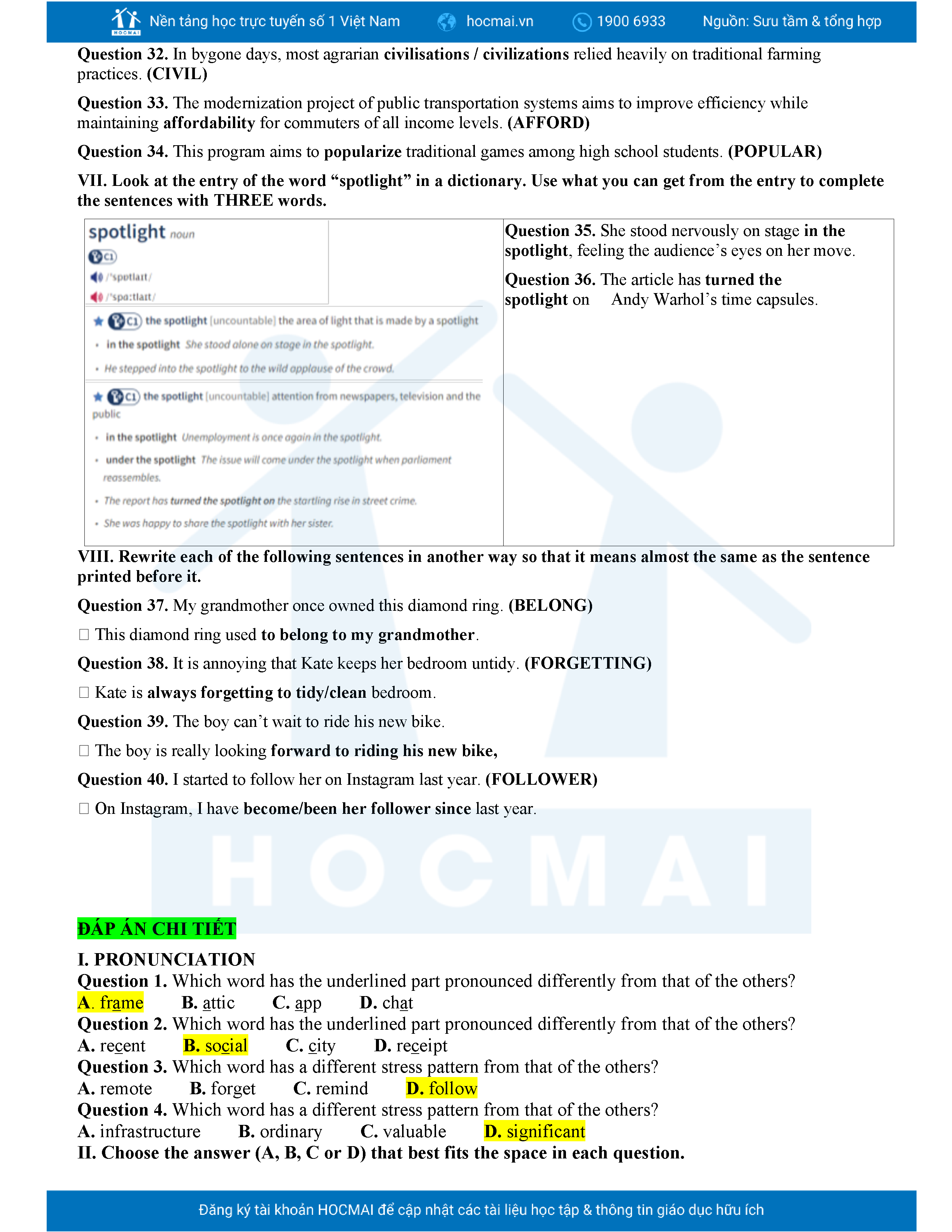 Bộ 10 đề Tiếng Anh ôn thi vào 10 TPHCM