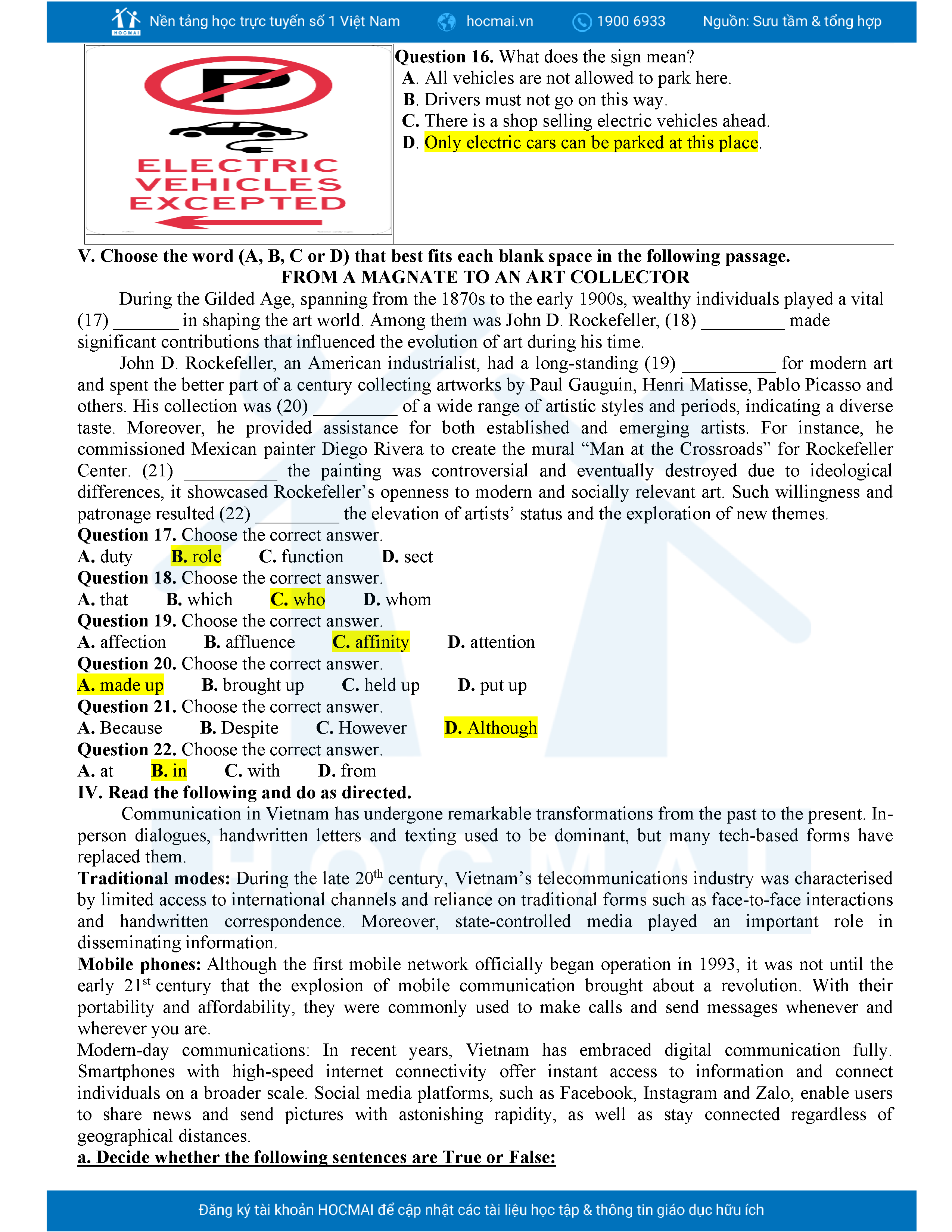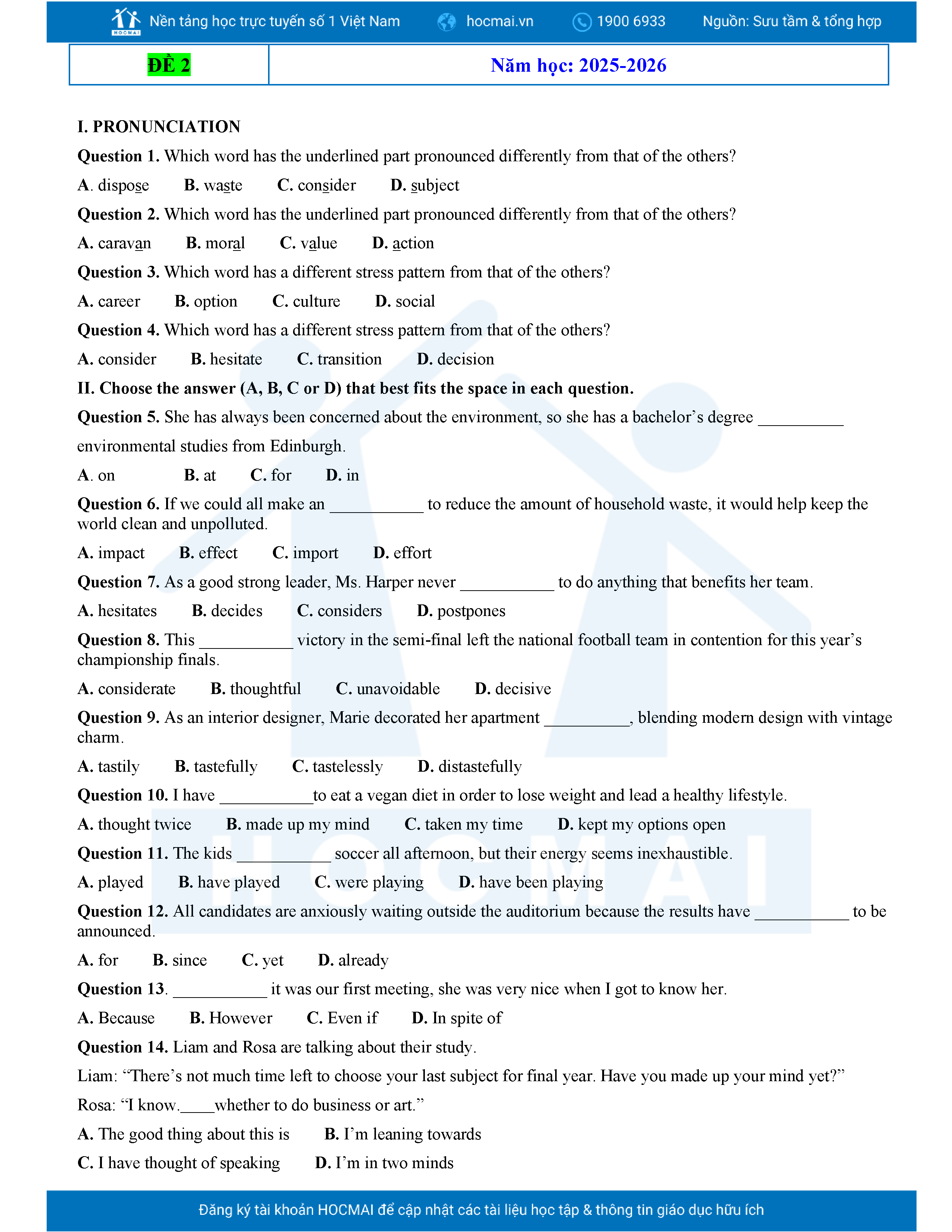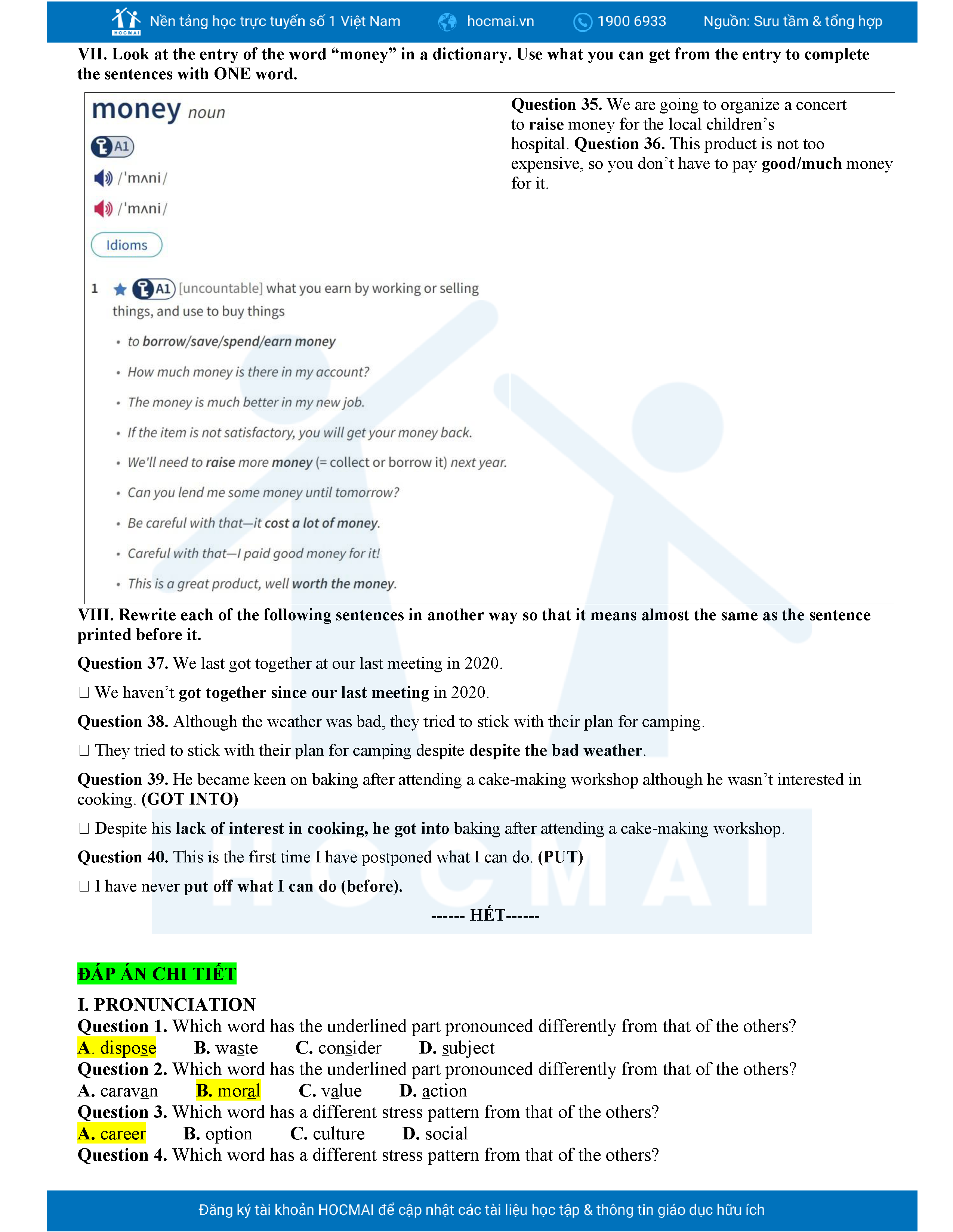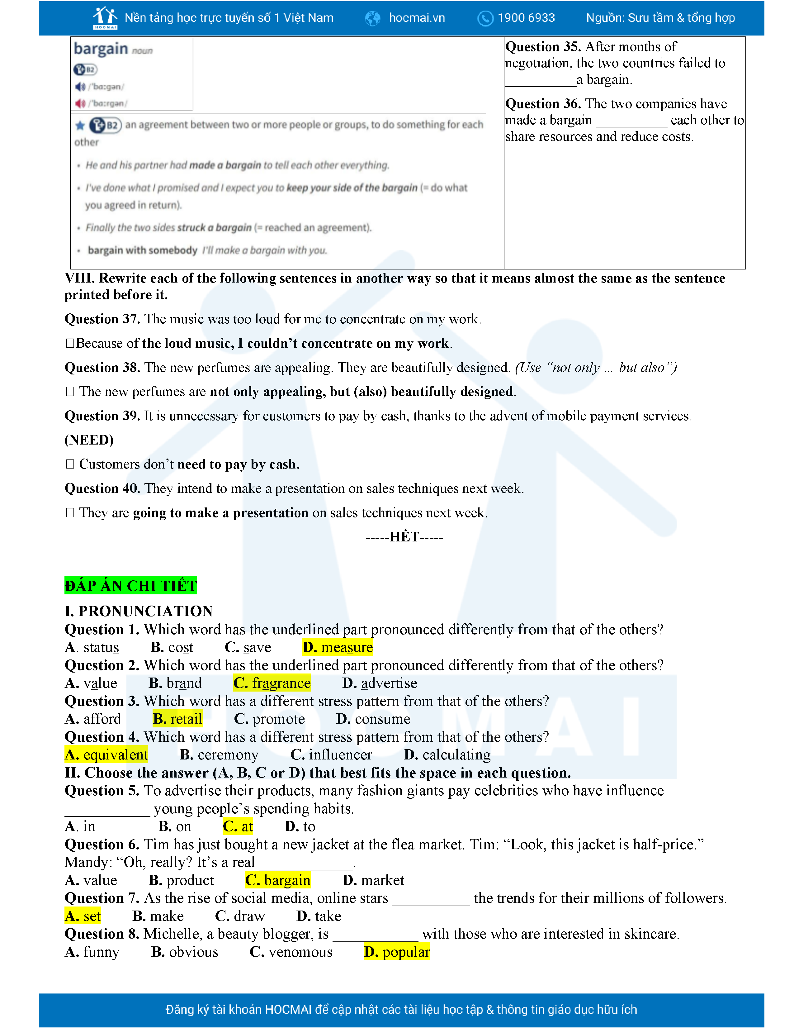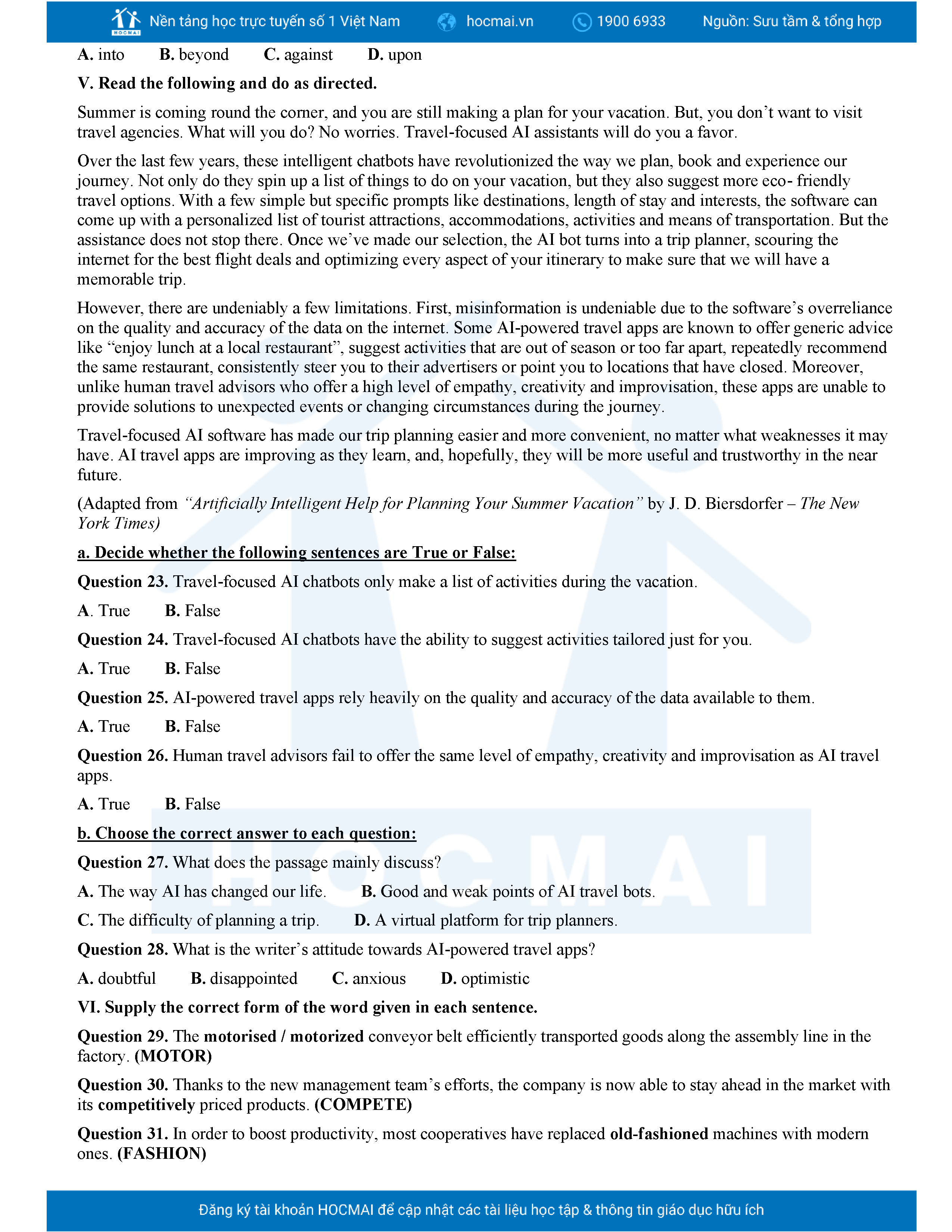 Bộ 10 đề Tiếng Anh ôn thi vào 10 TPHCM
