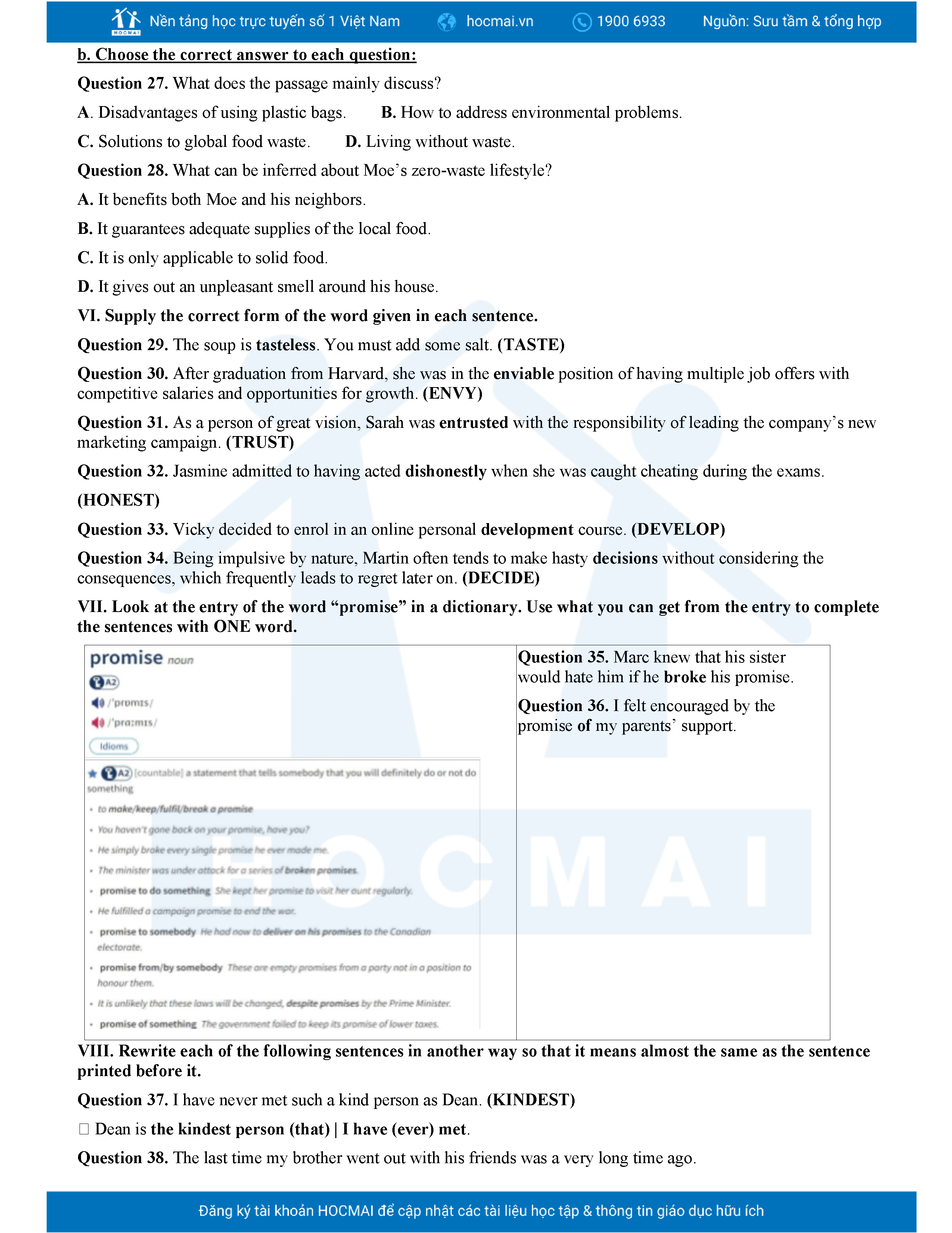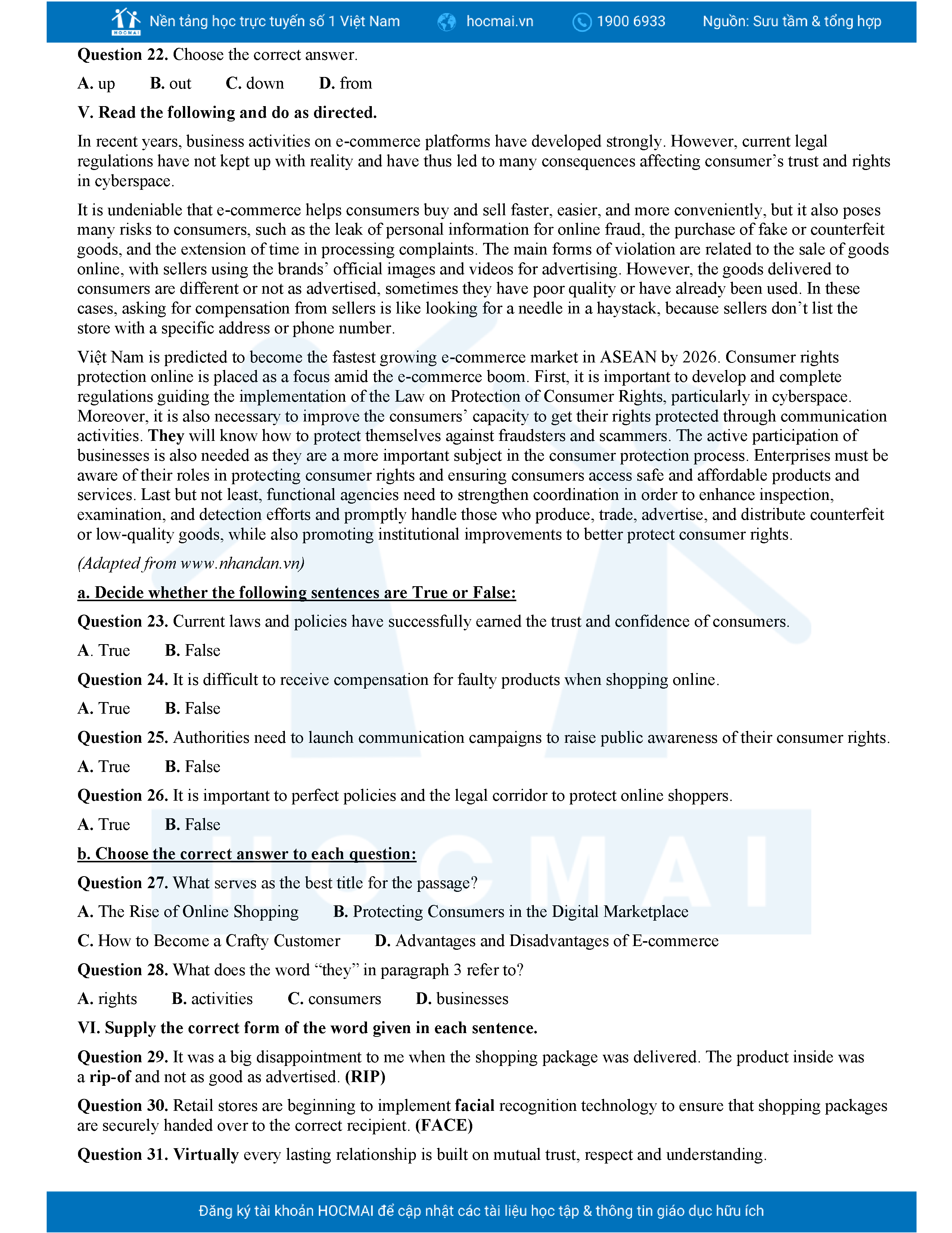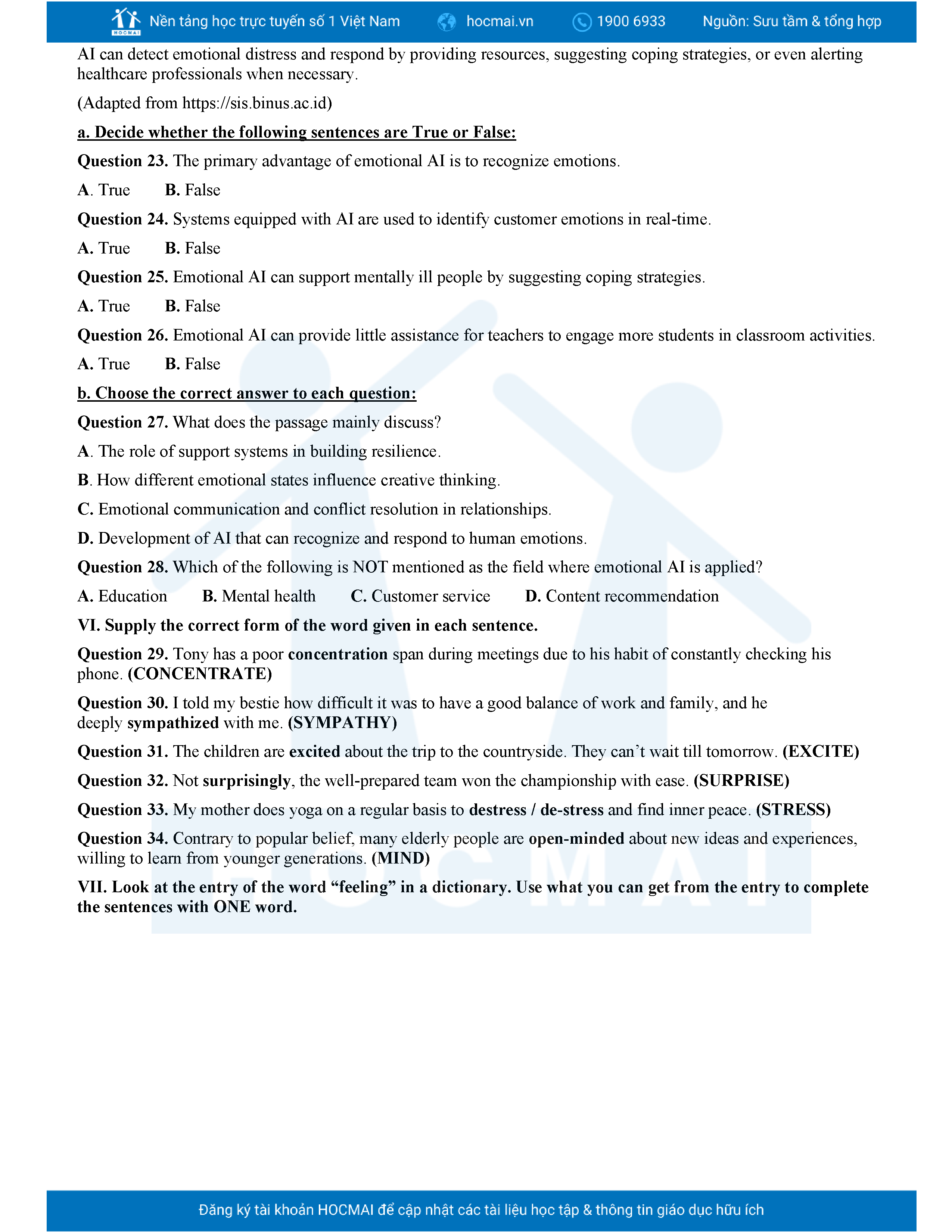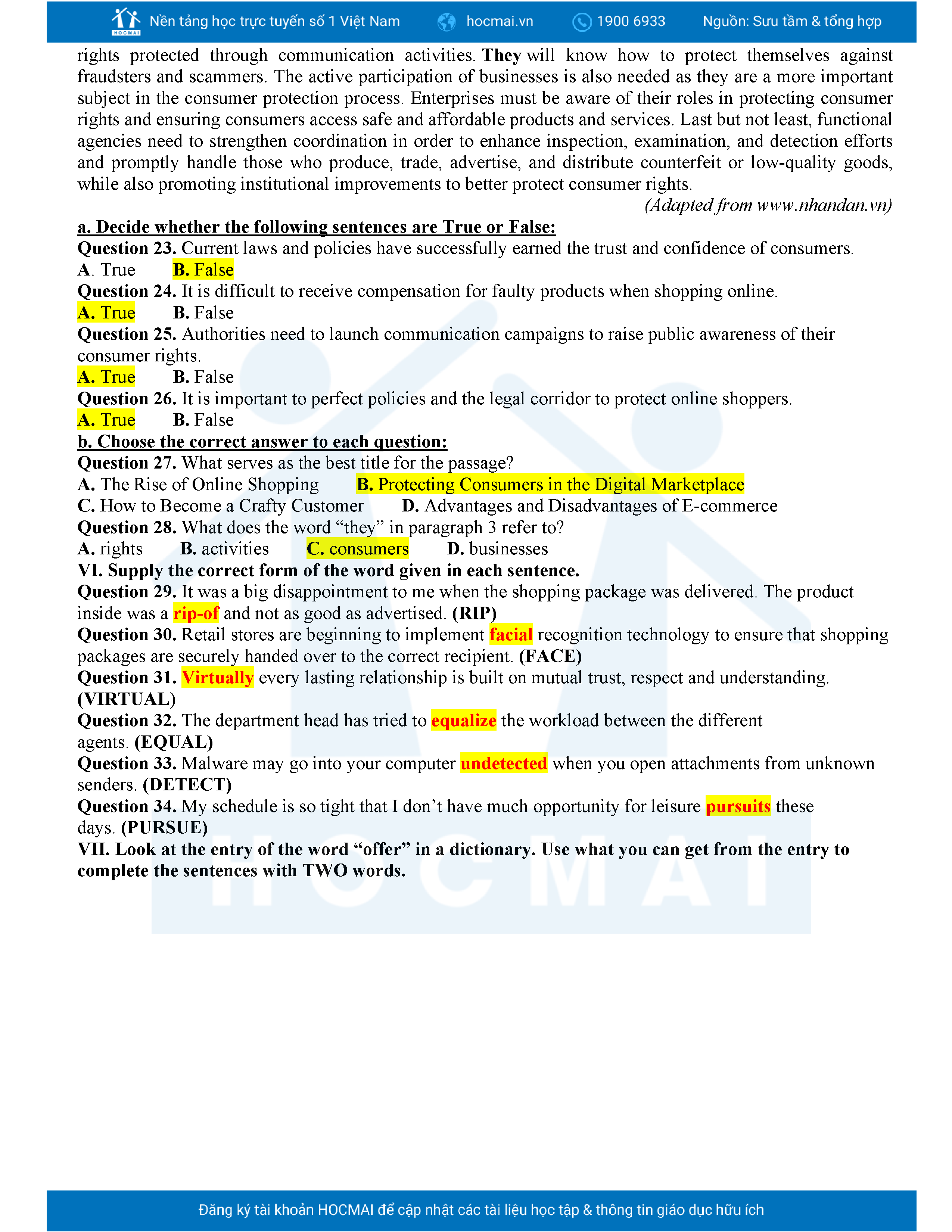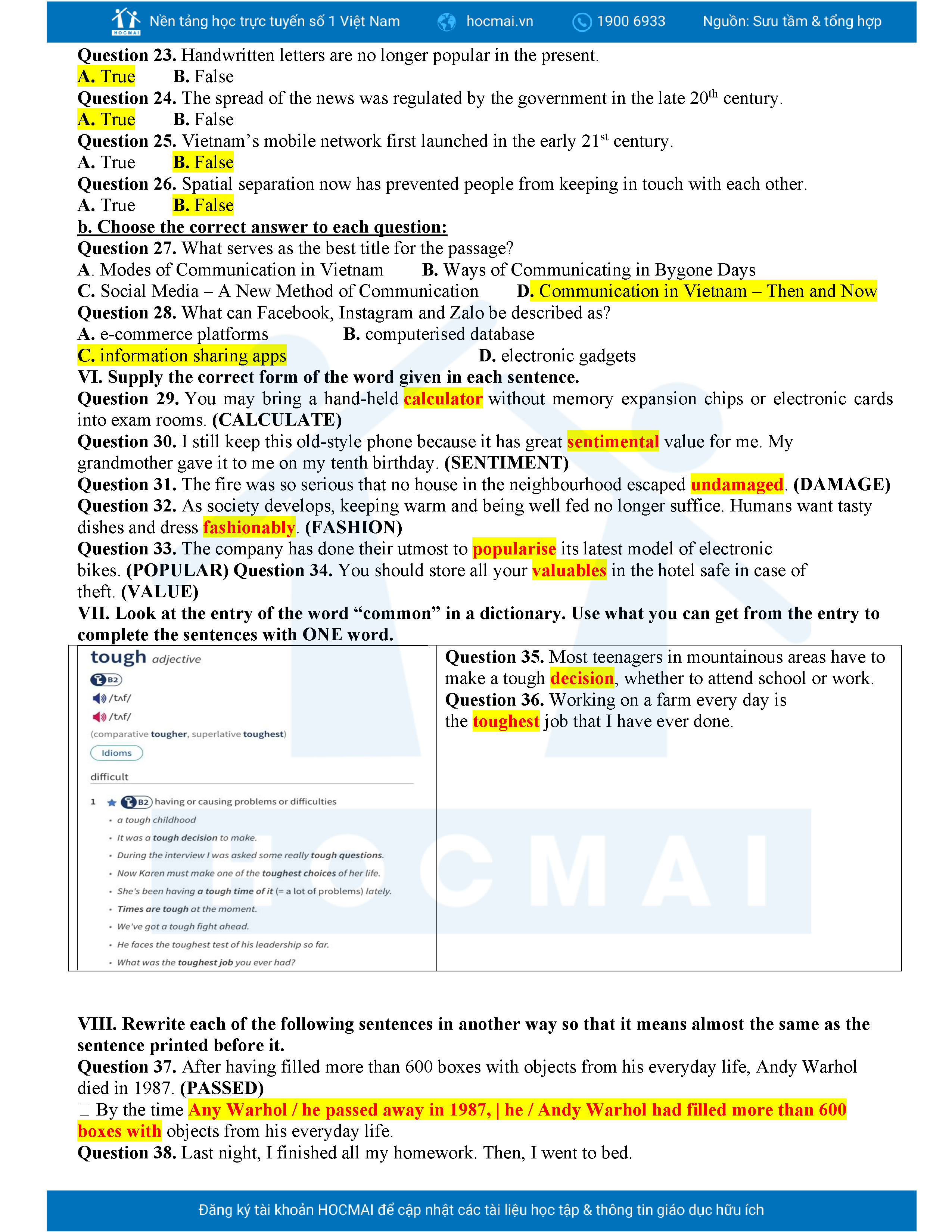 Bộ 10 đề Tiếng Anh ôn thi vào 10 TPHCM