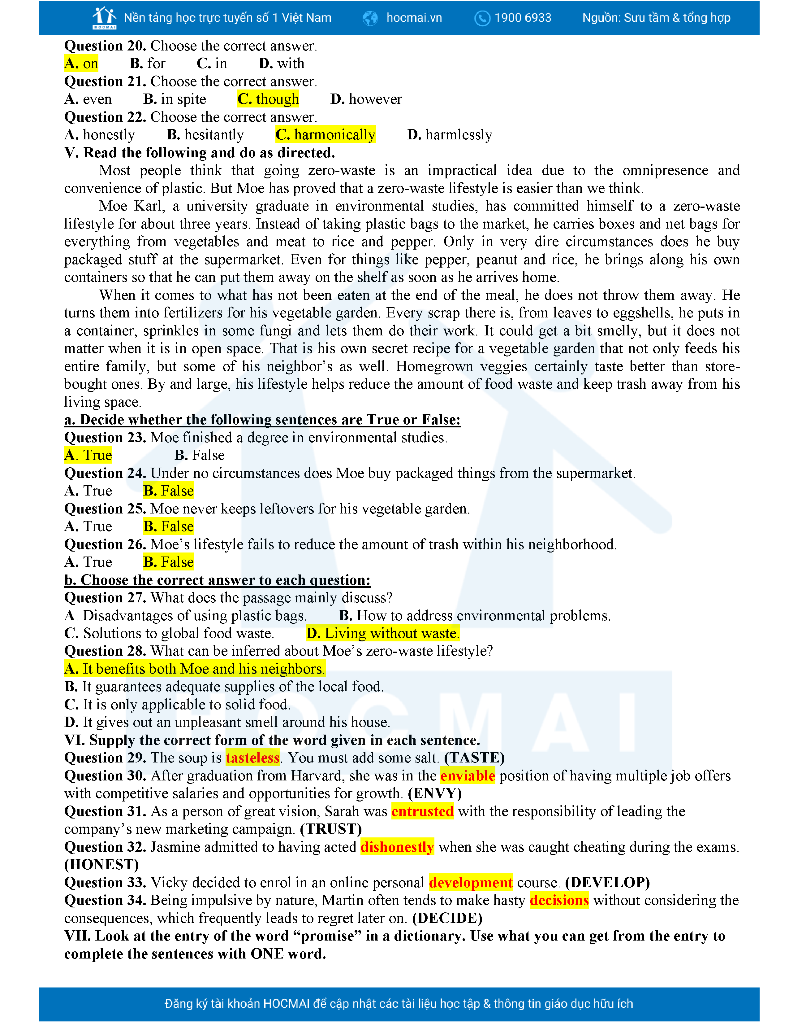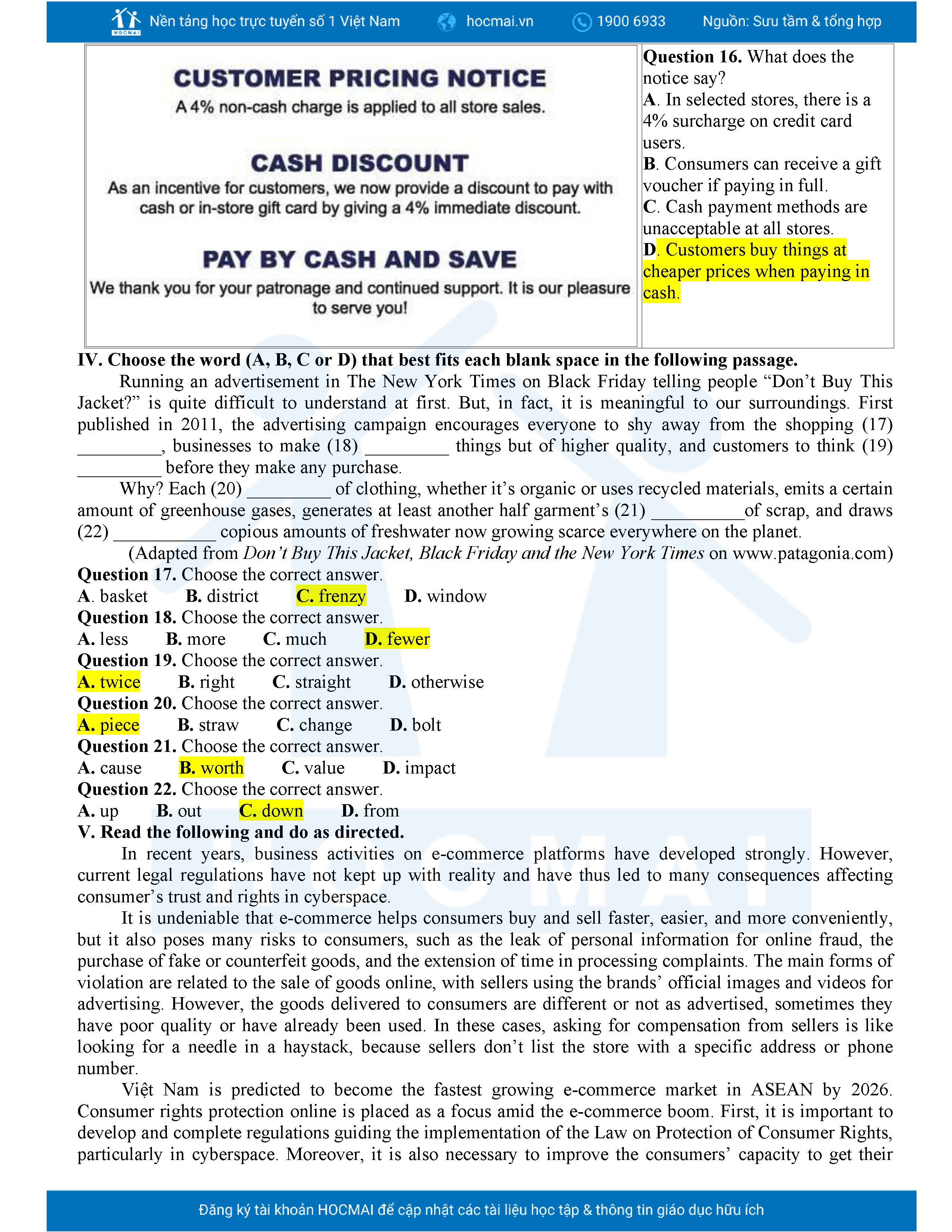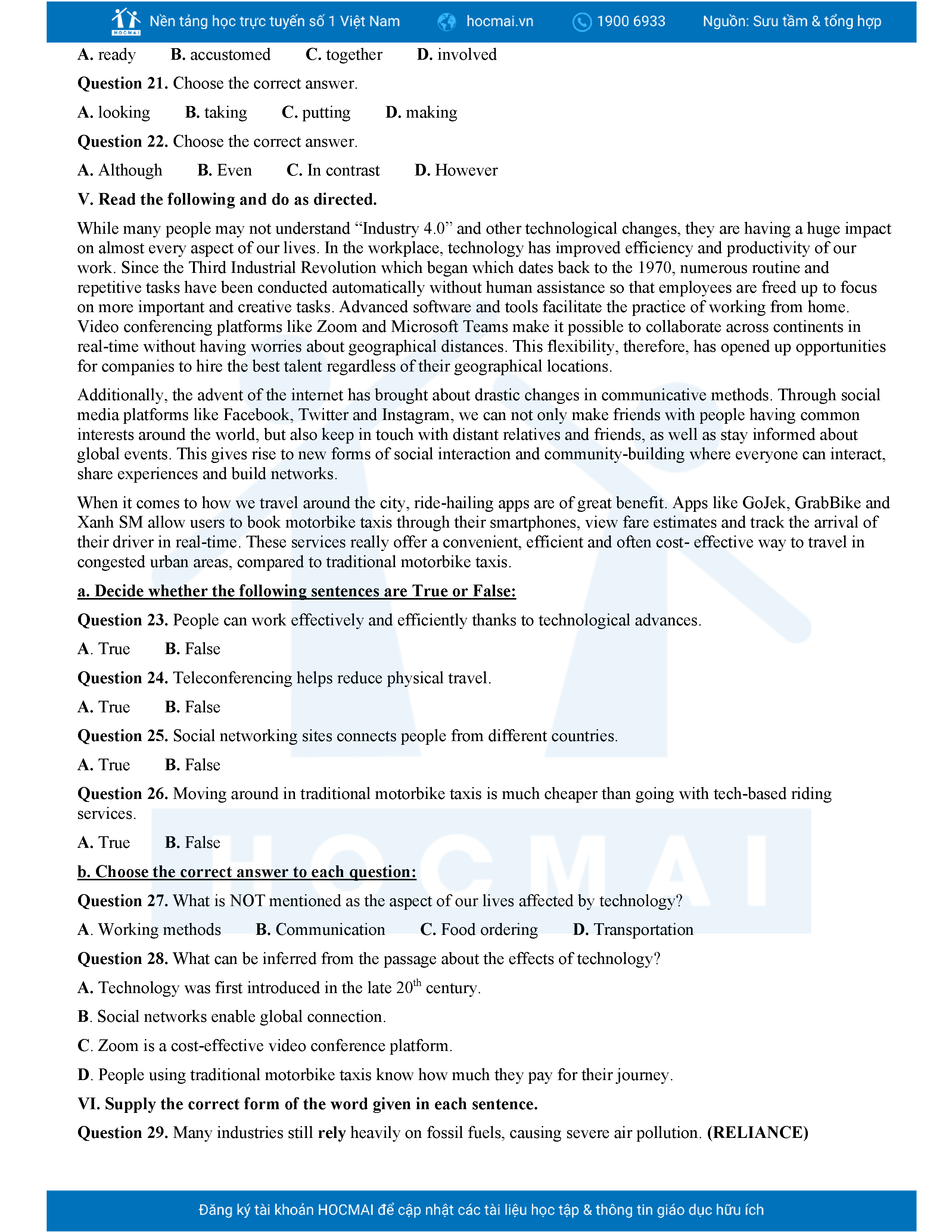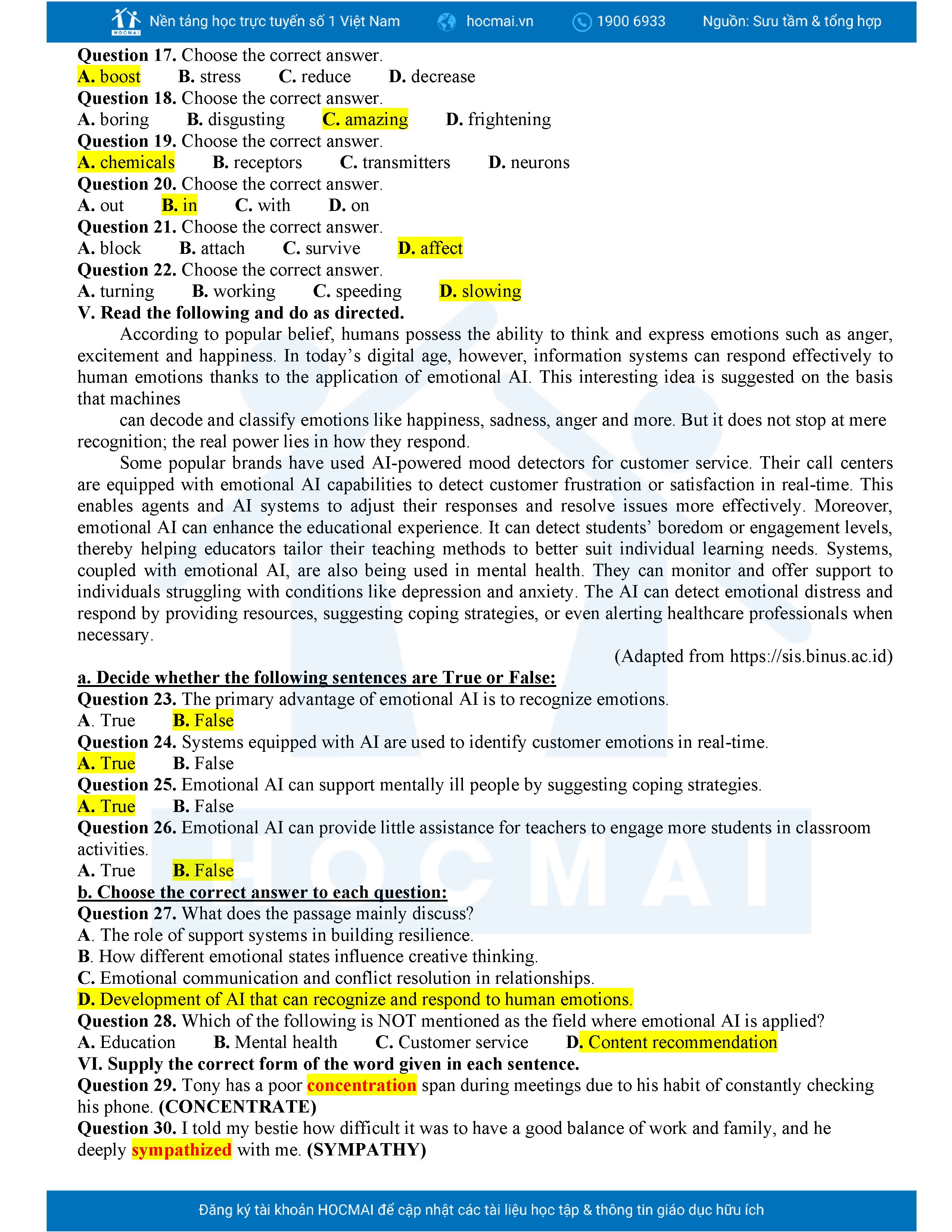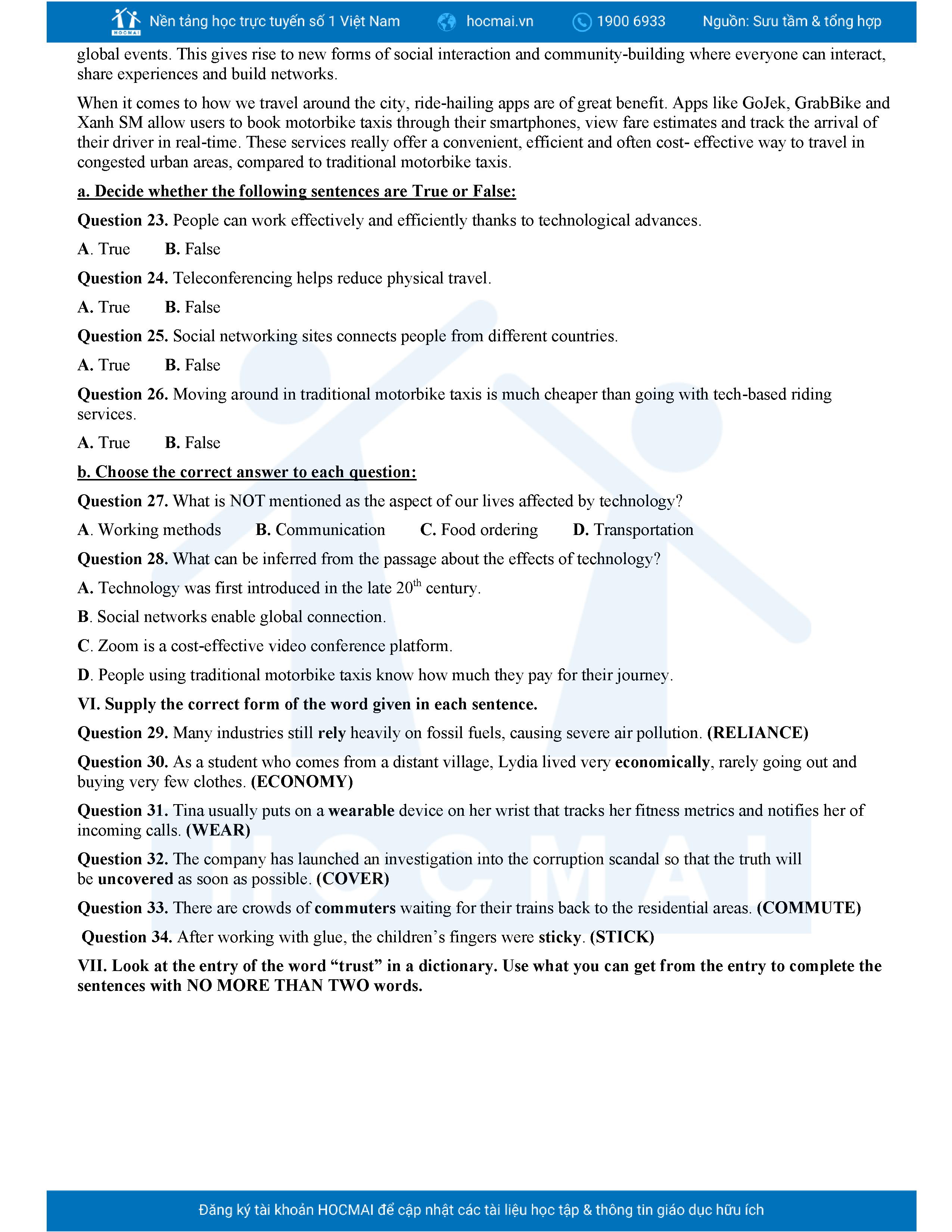 Bộ 10 đề Tiếng Anh ôn thi vào 10 TPHCM