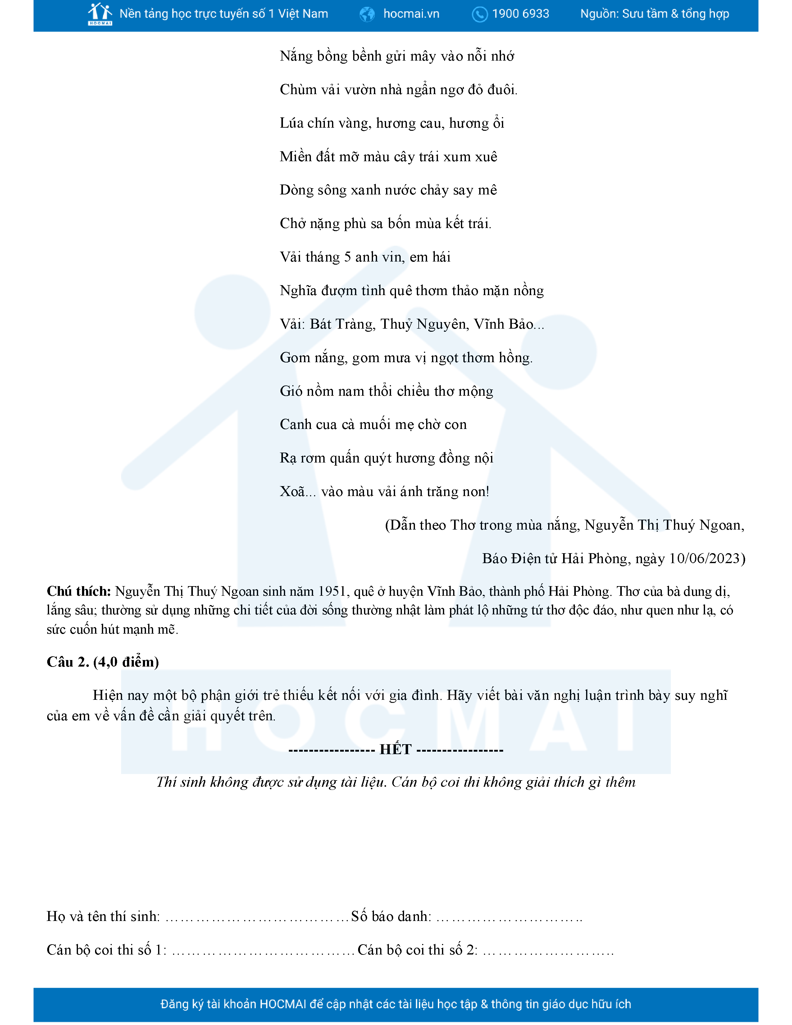 Đề minh họa môn Ngữ Văn vào 10 – Hải Phòng (2025-2026)