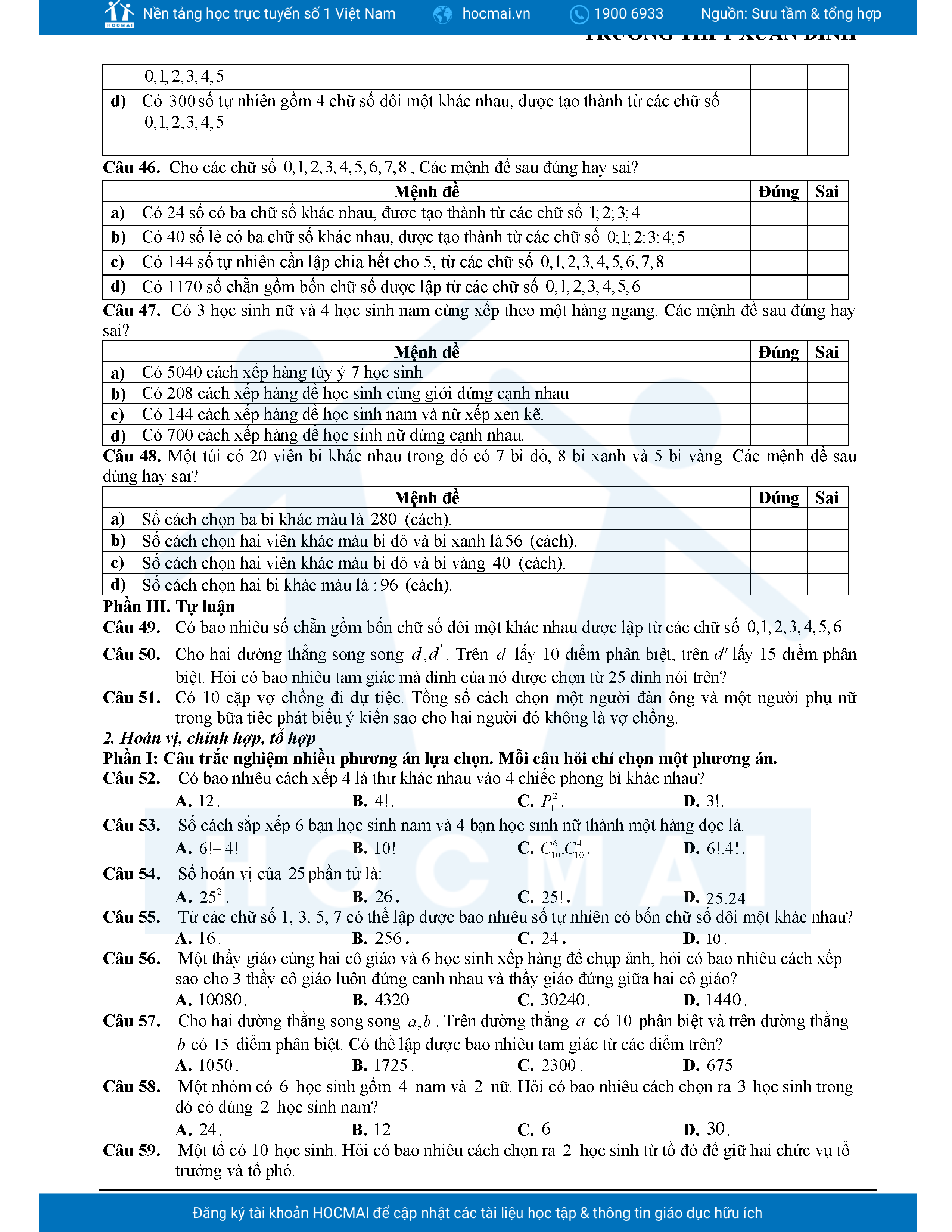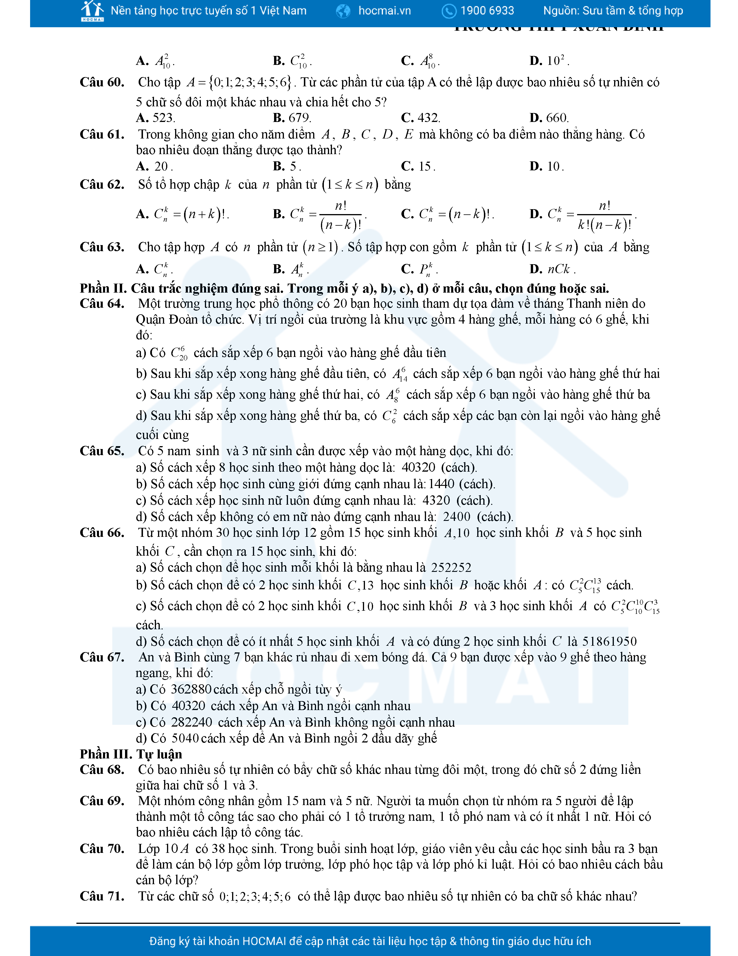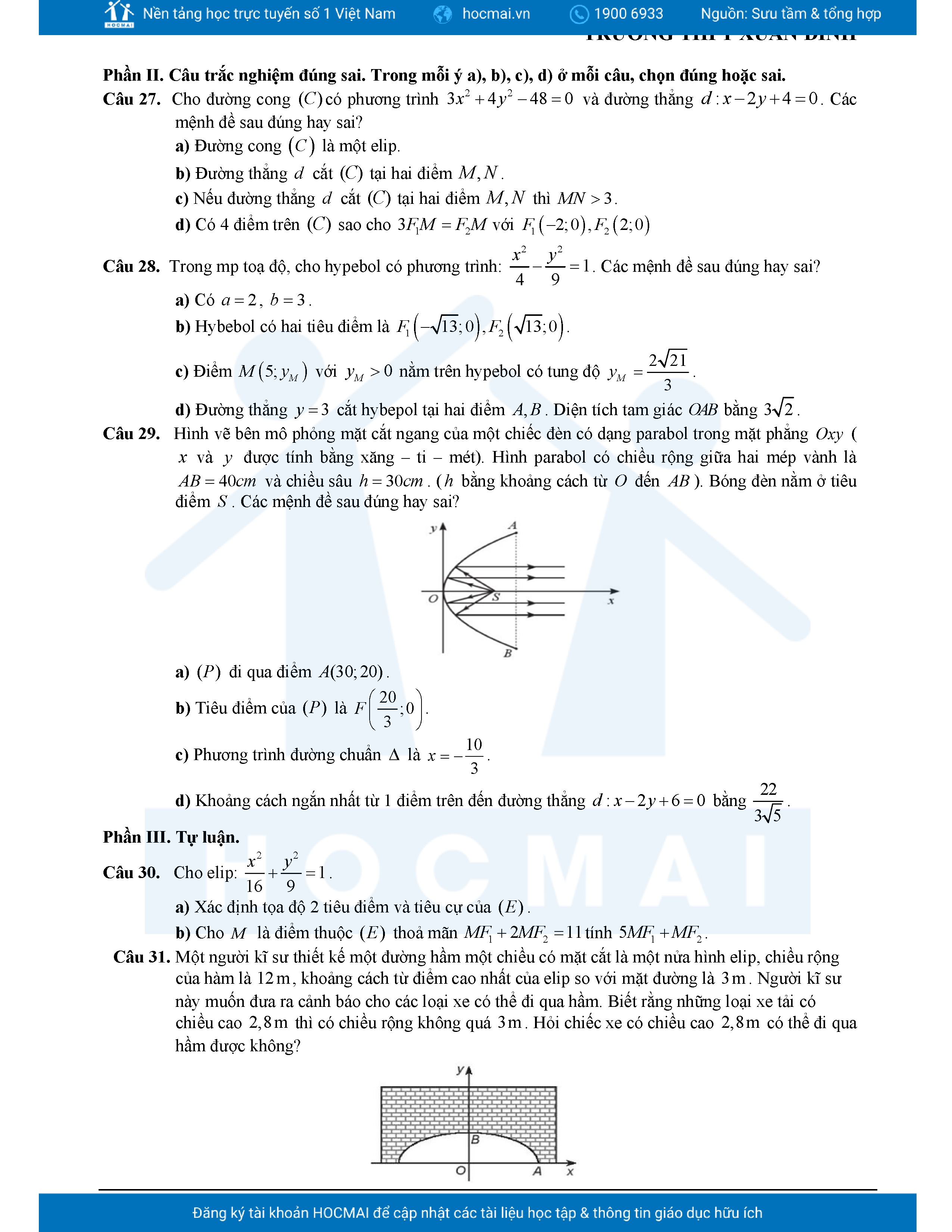 Đề cương học kỳ 2 Toán 10 năm 2024 – 2025 trường THPT Xuân Đỉnh – Hà Nội