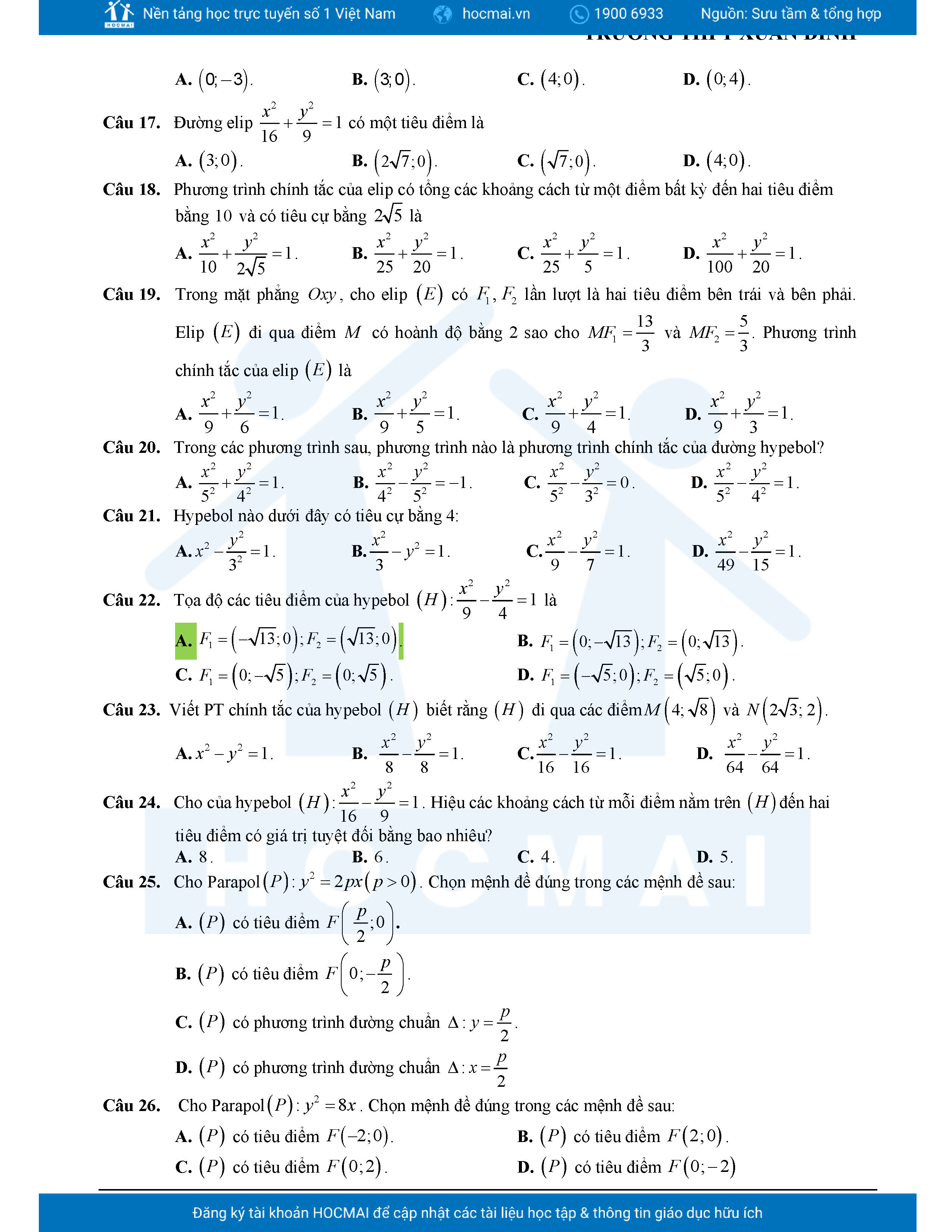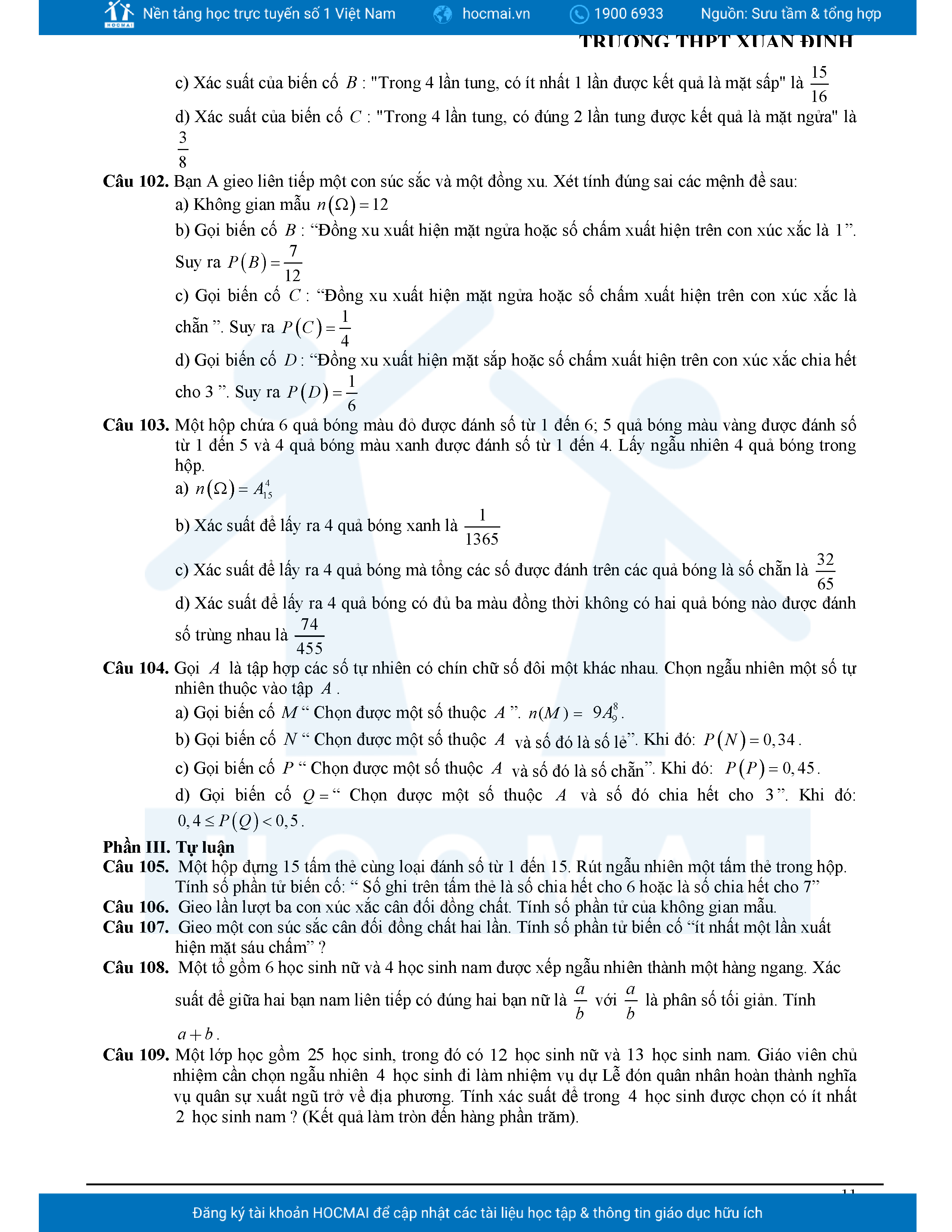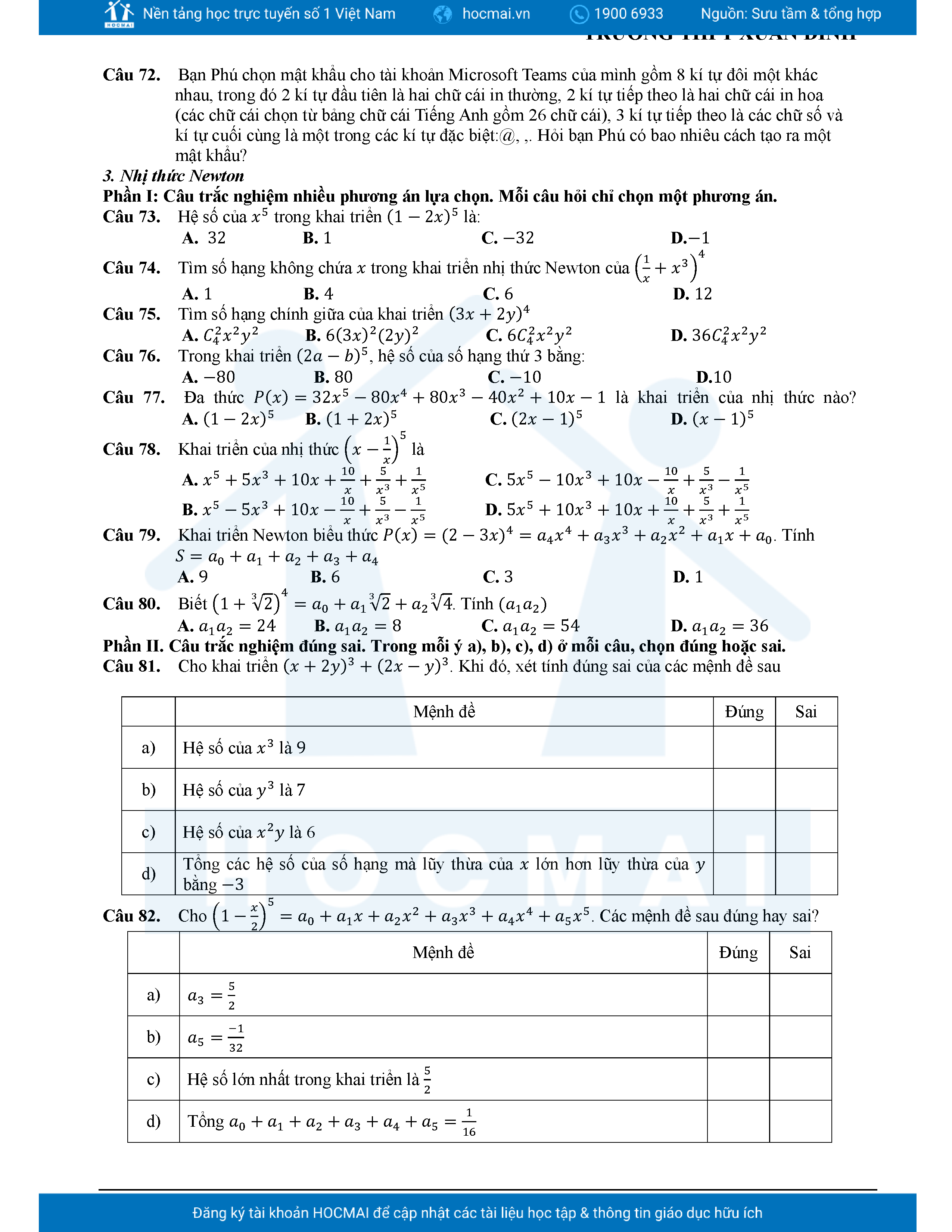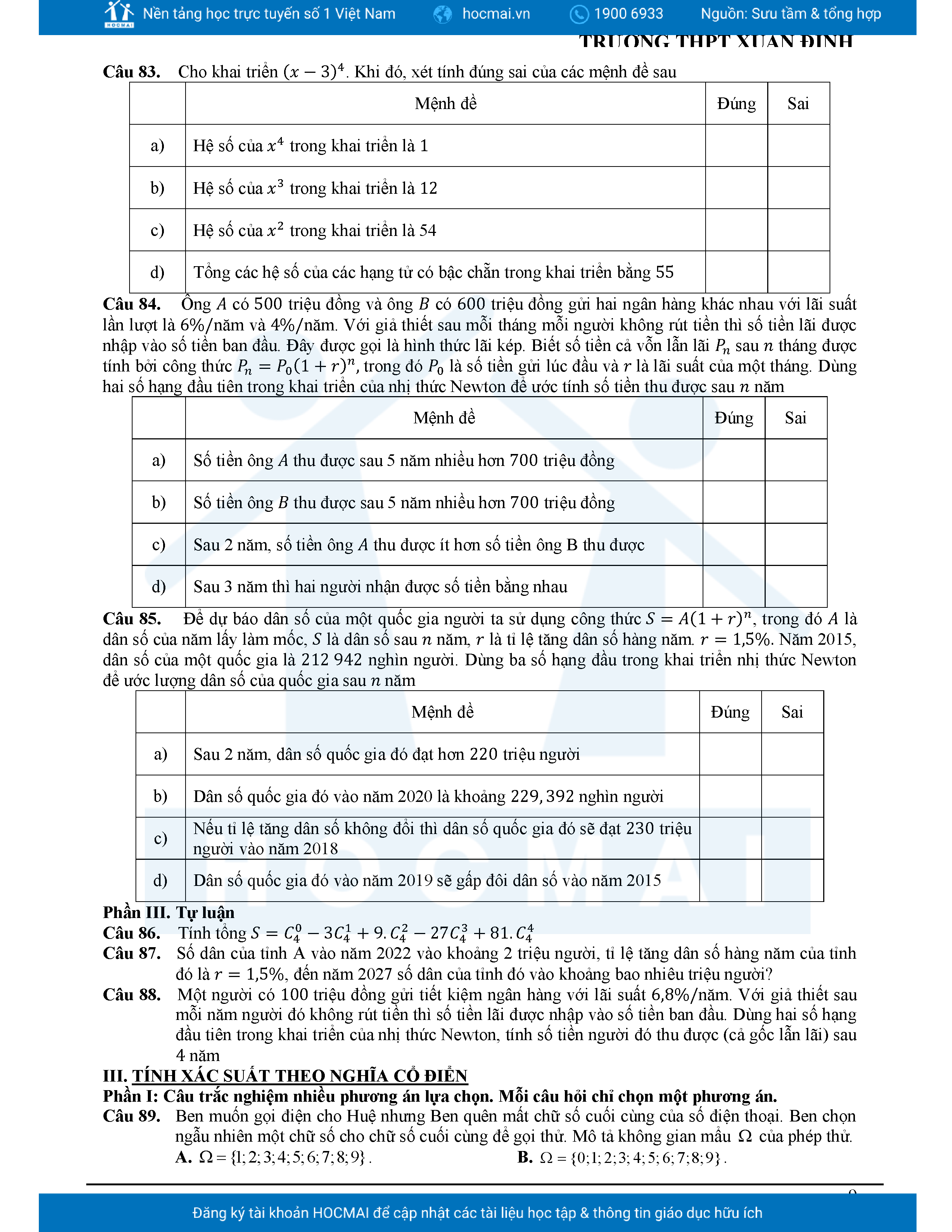 Đề cương học kỳ 2 Toán 10 năm 2024 – 2025 trường THPT Xuân Đỉnh – Hà Nội