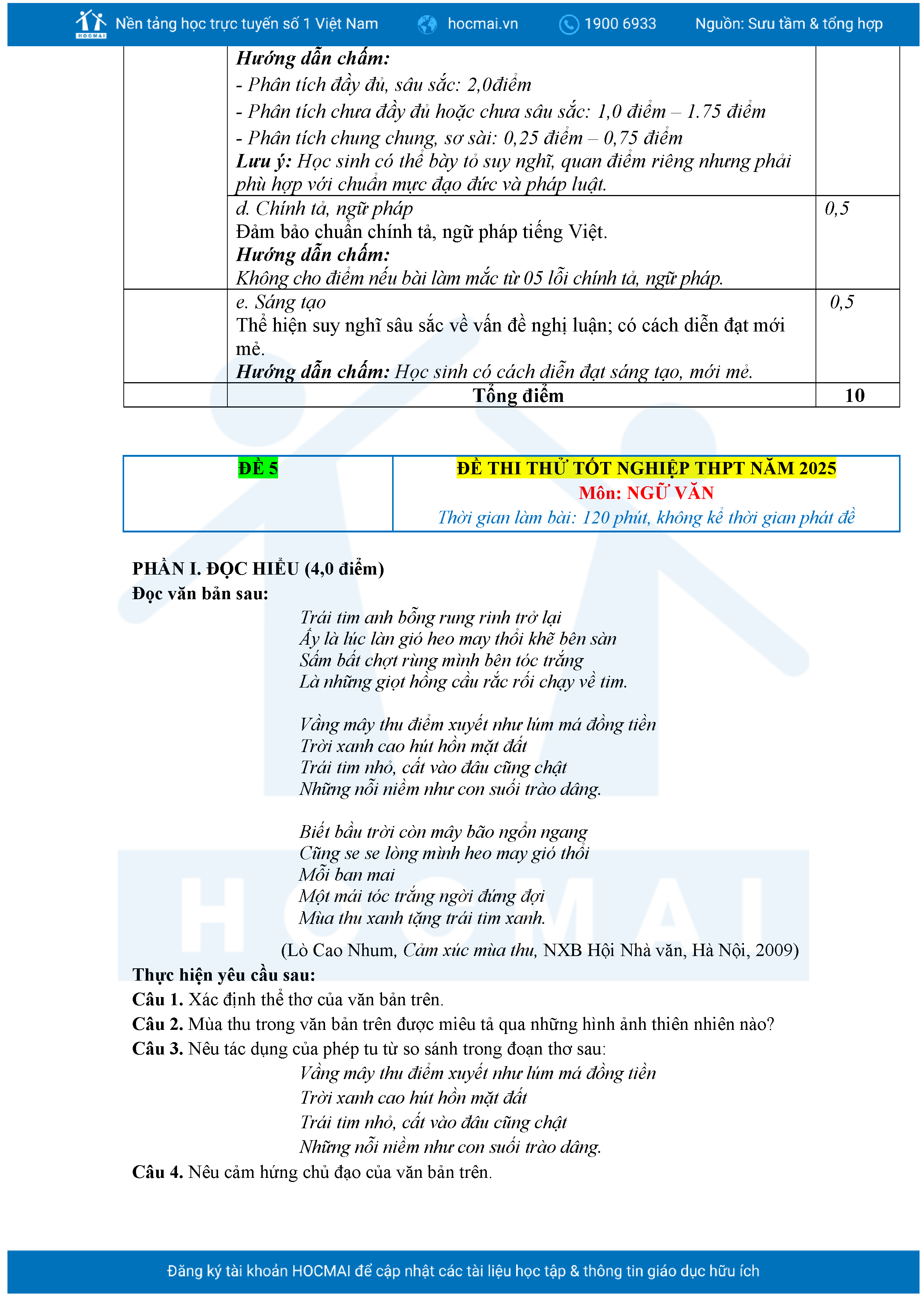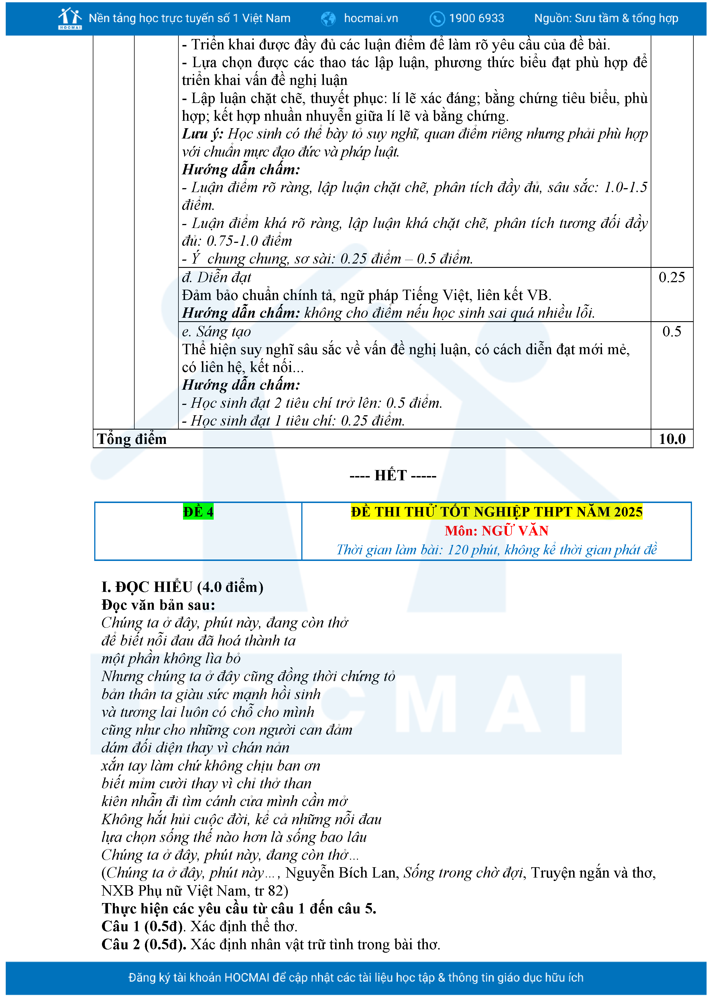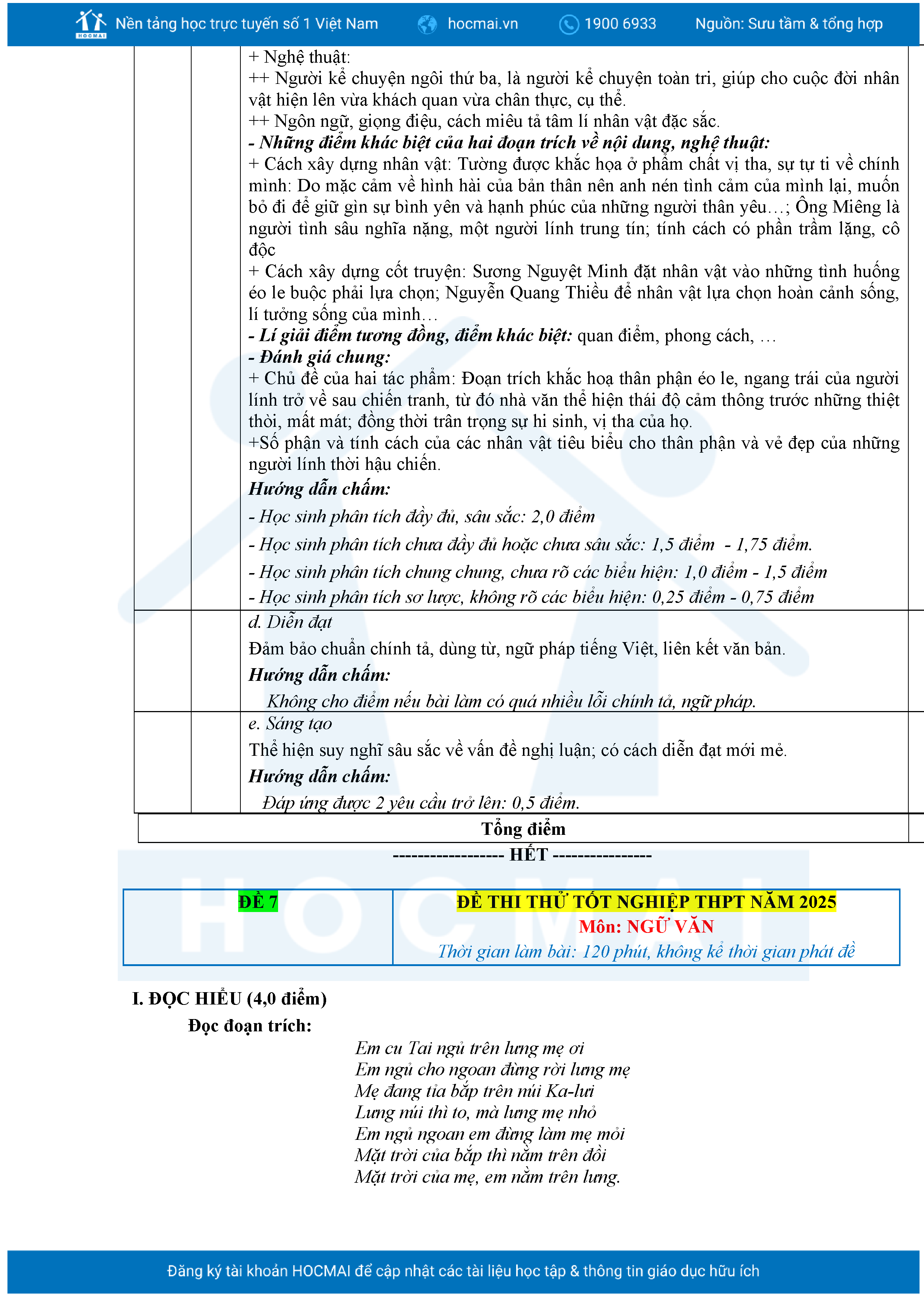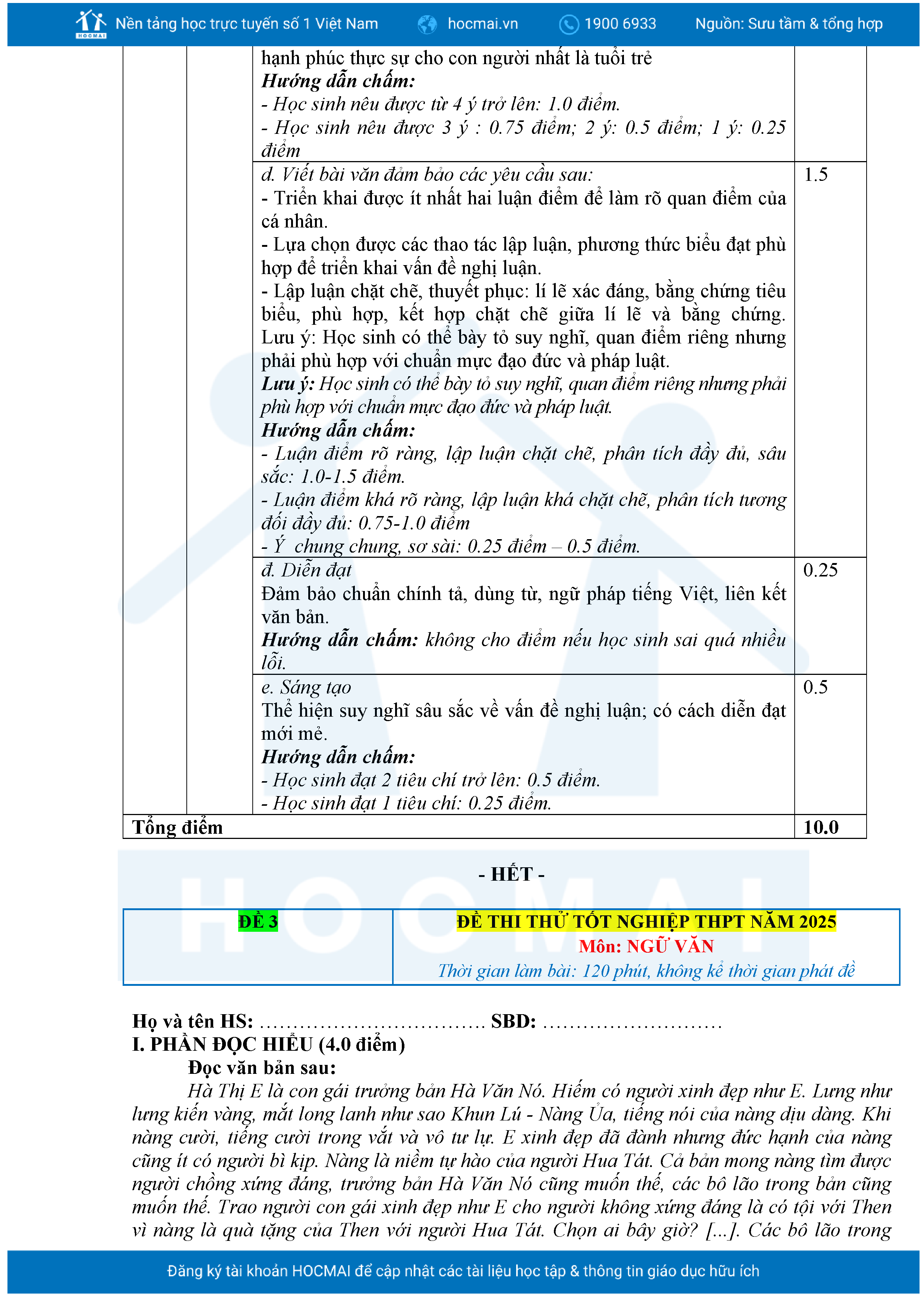 Bộ đề thi thử TN THPT môn Ngữ Văn 2025 kèm hướng dẫn chấm chi tiết.
