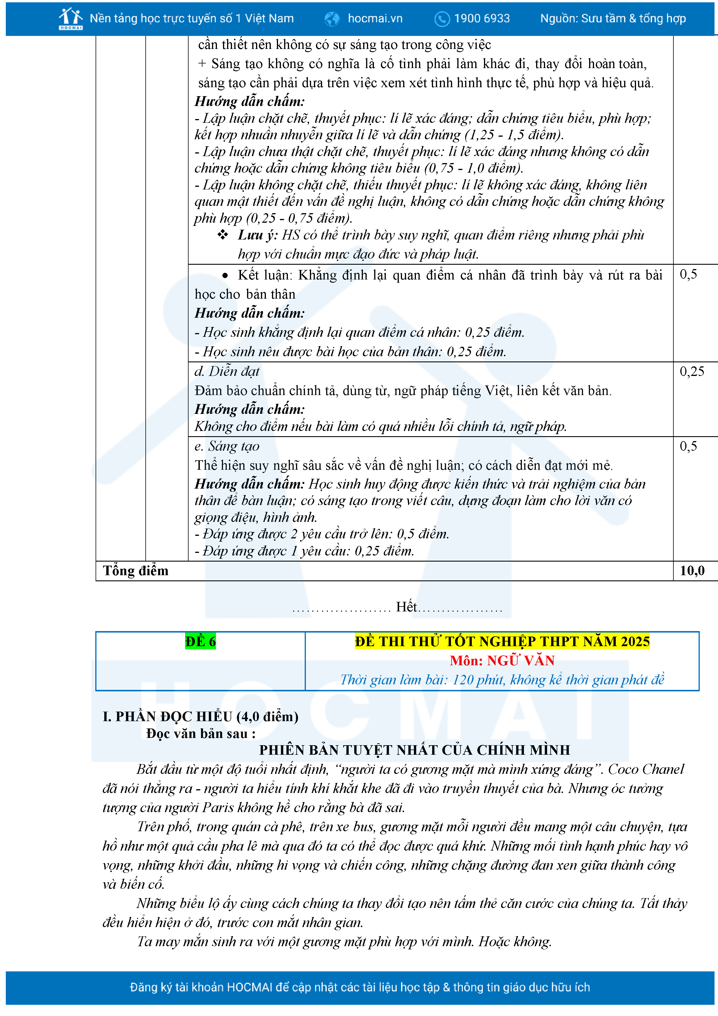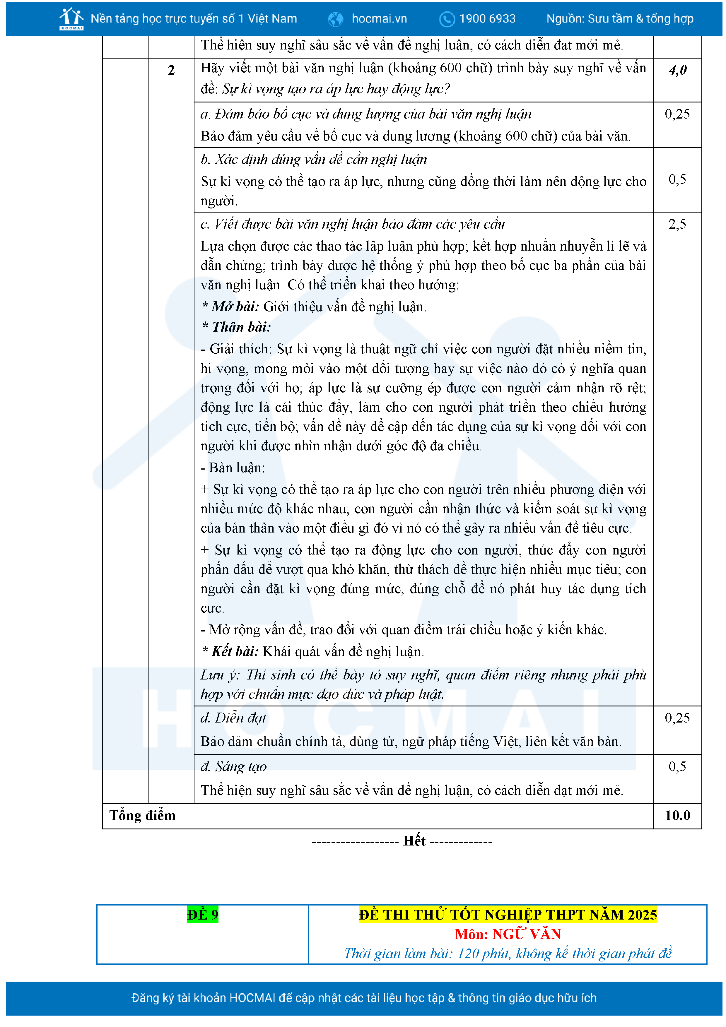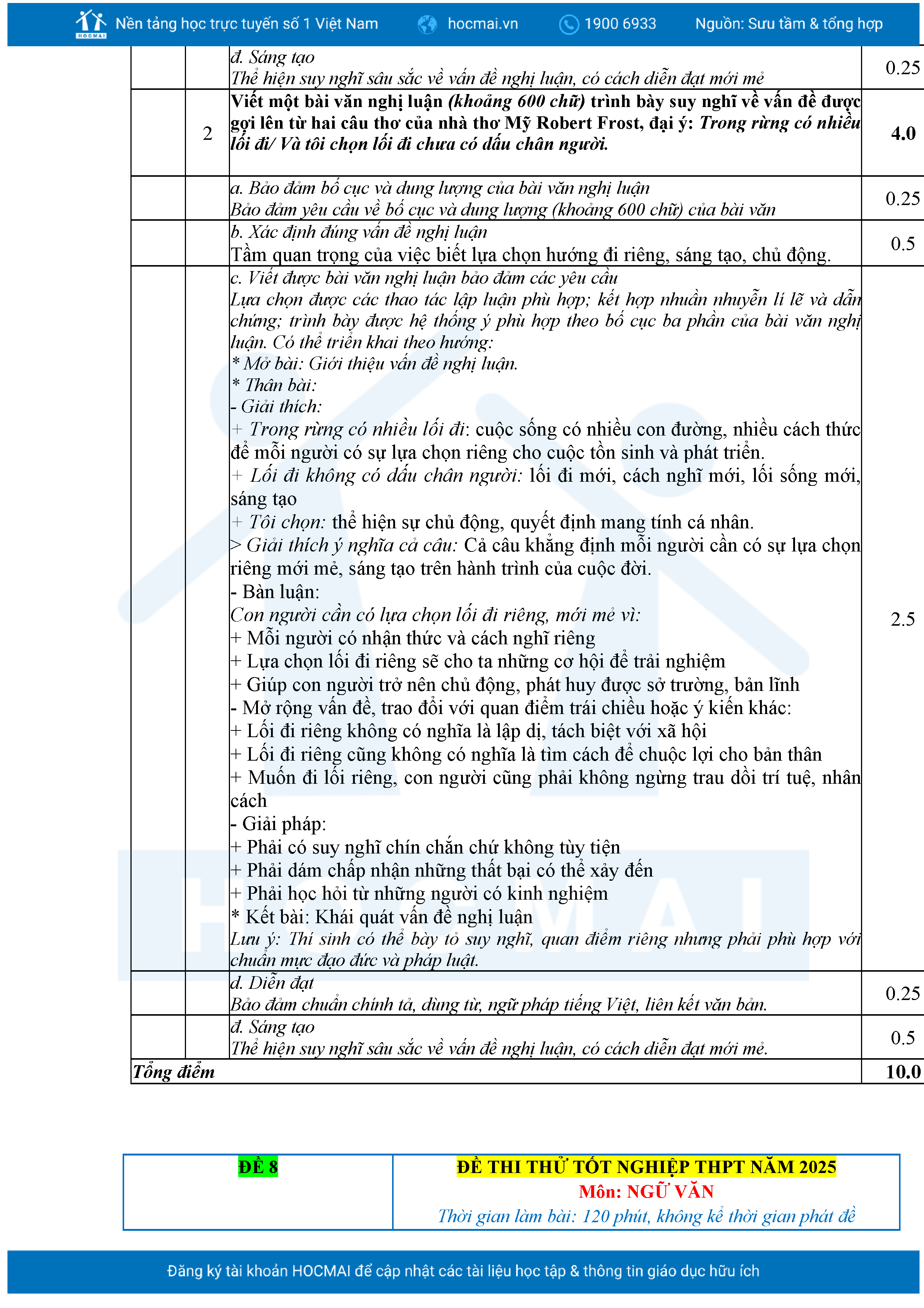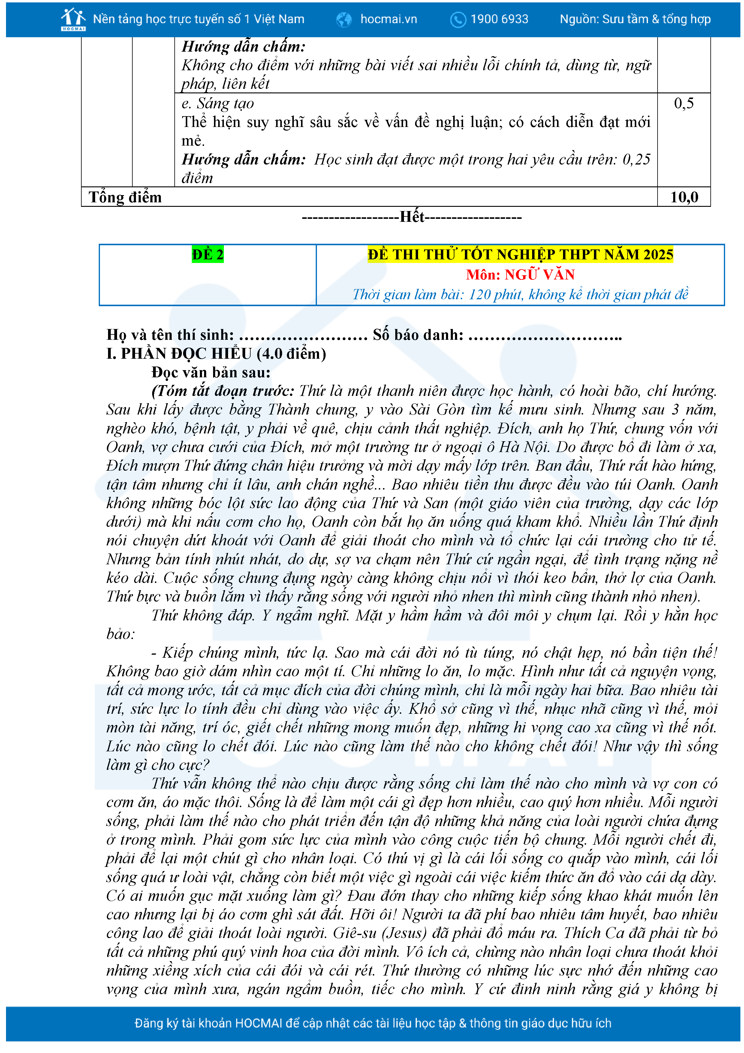 Bộ đề thi thử TN THPT môn Ngữ Văn 2025 kèm hướng dẫn chấm chi tiết.