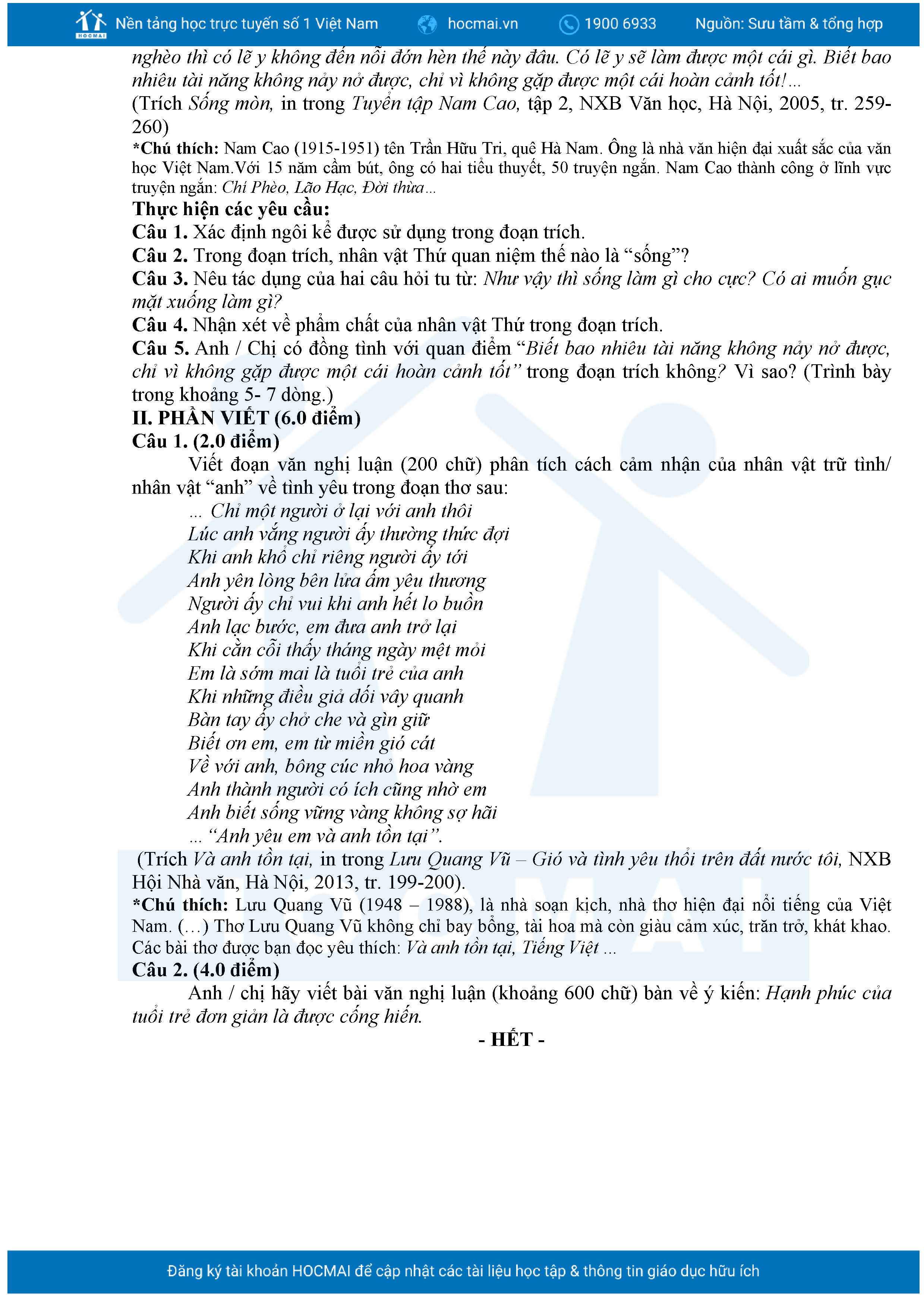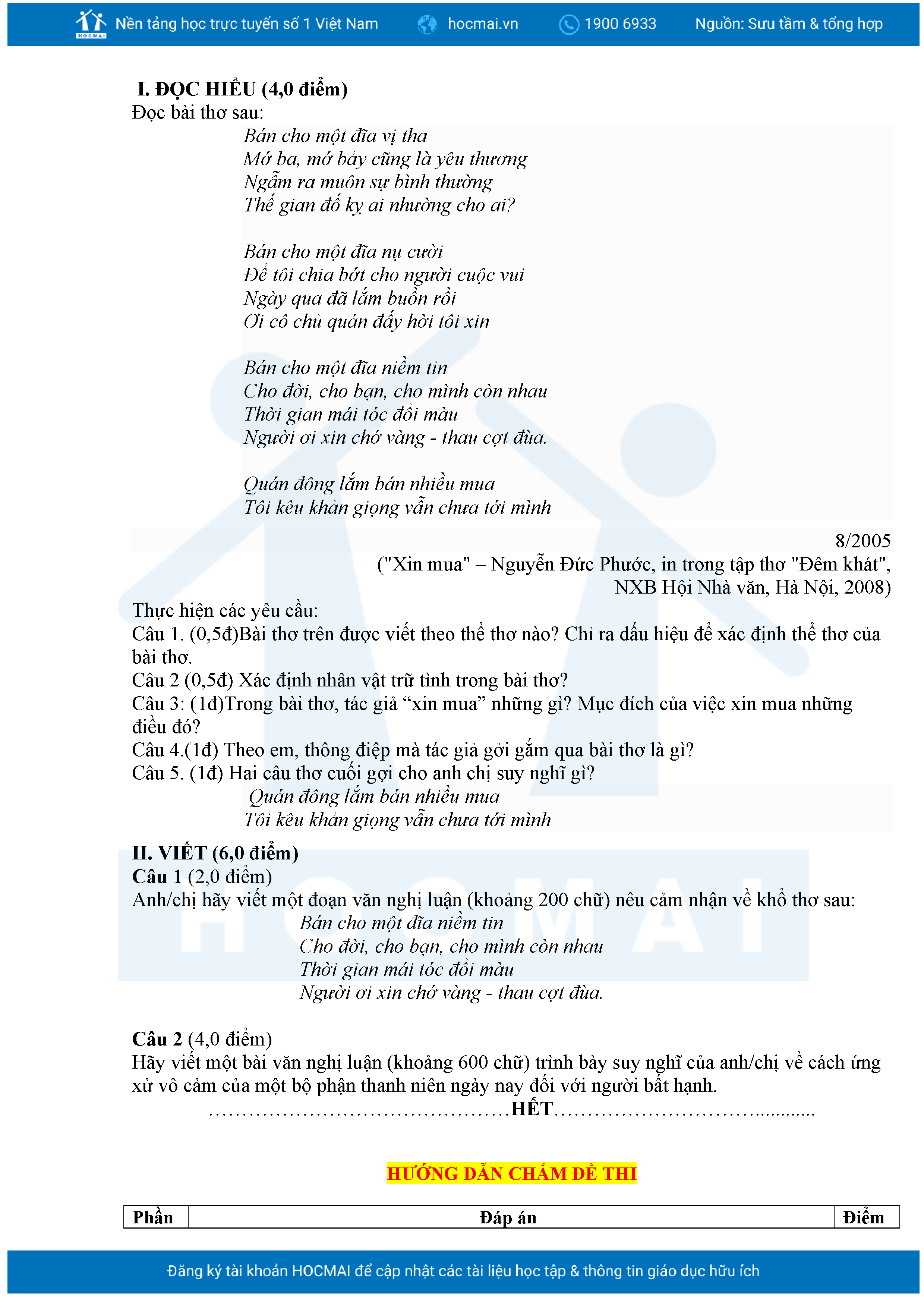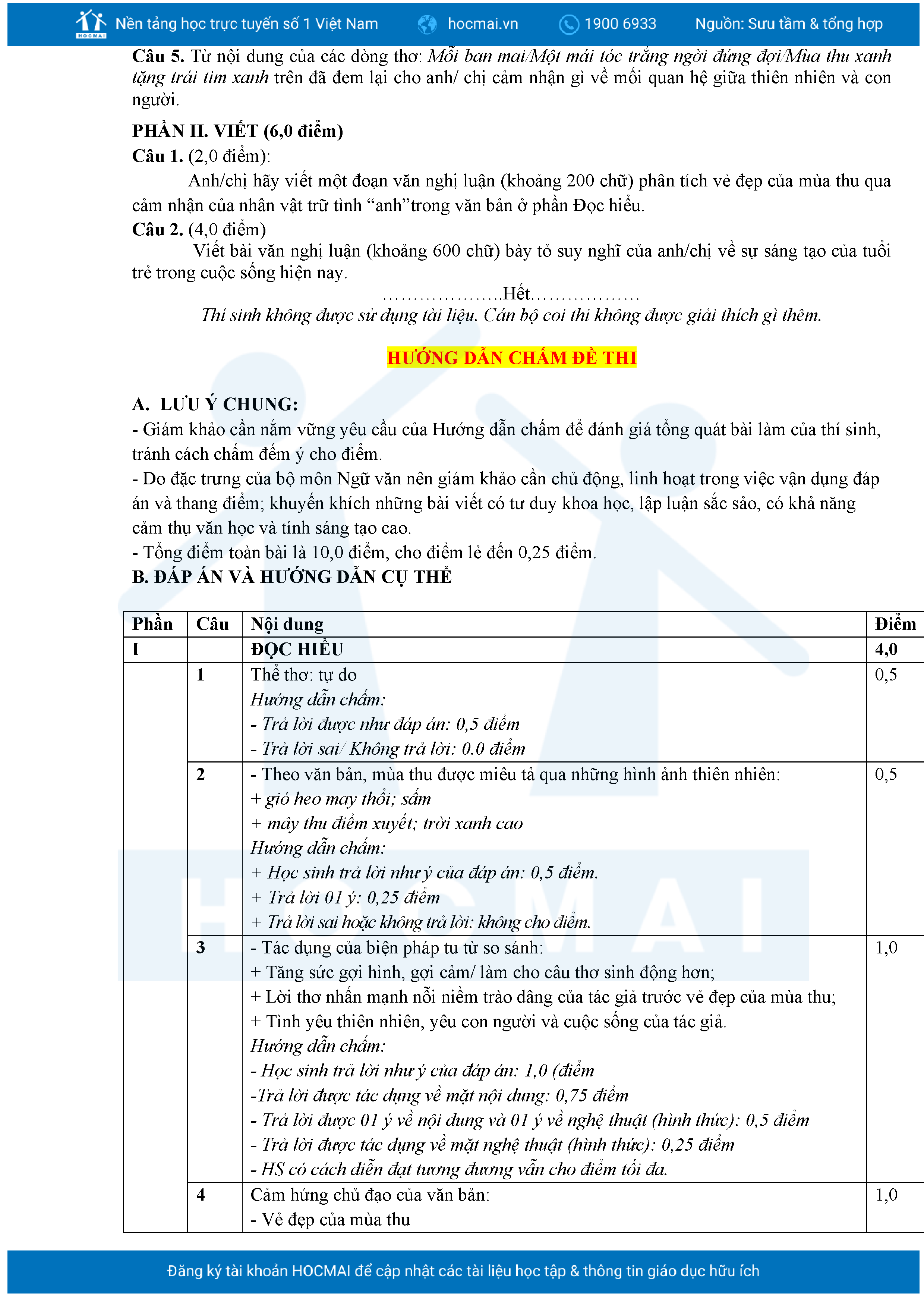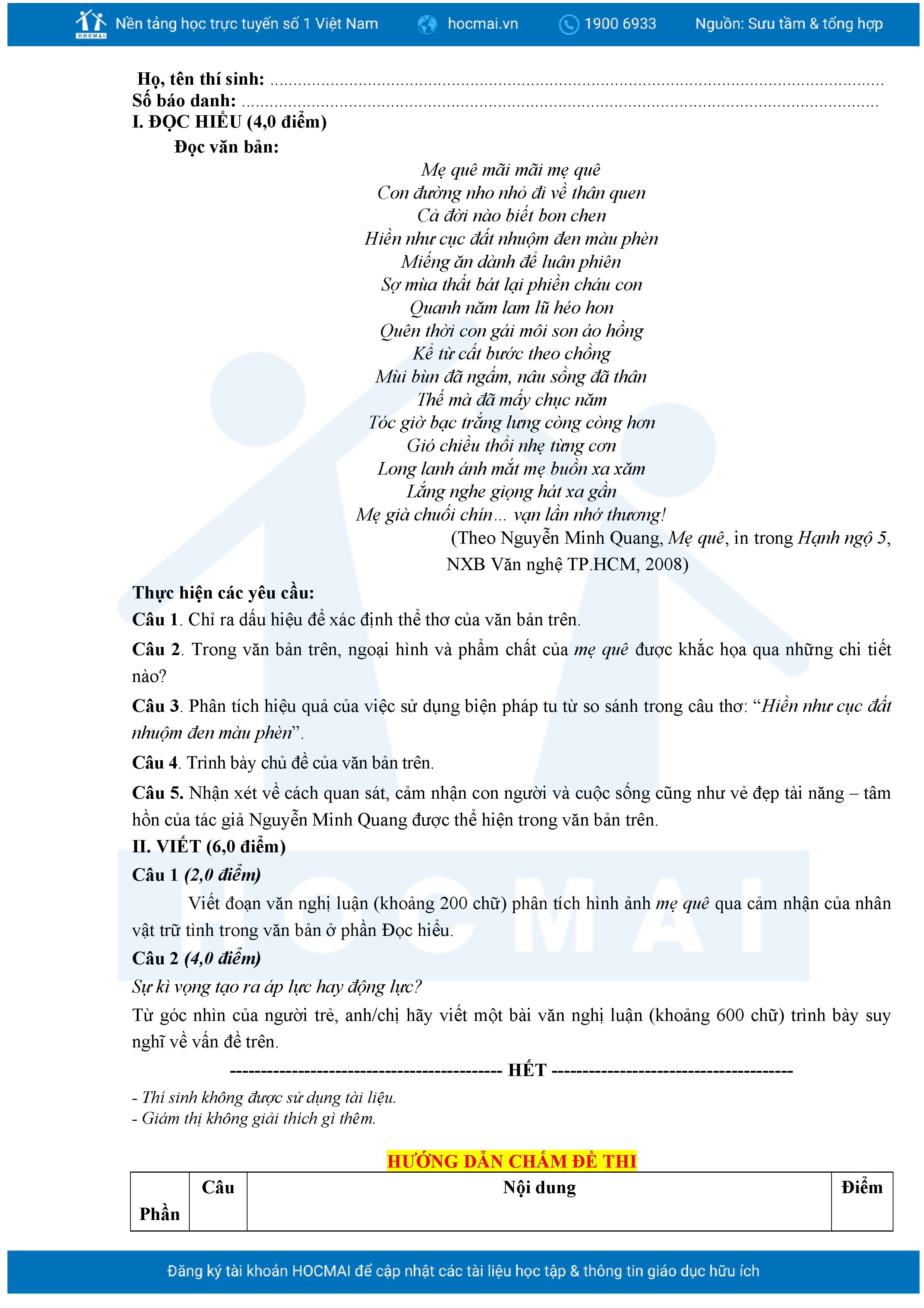 Bộ đề thi thử TN THPT môn Ngữ Văn 2025 kèm hướng dẫn chấm chi tiết.
