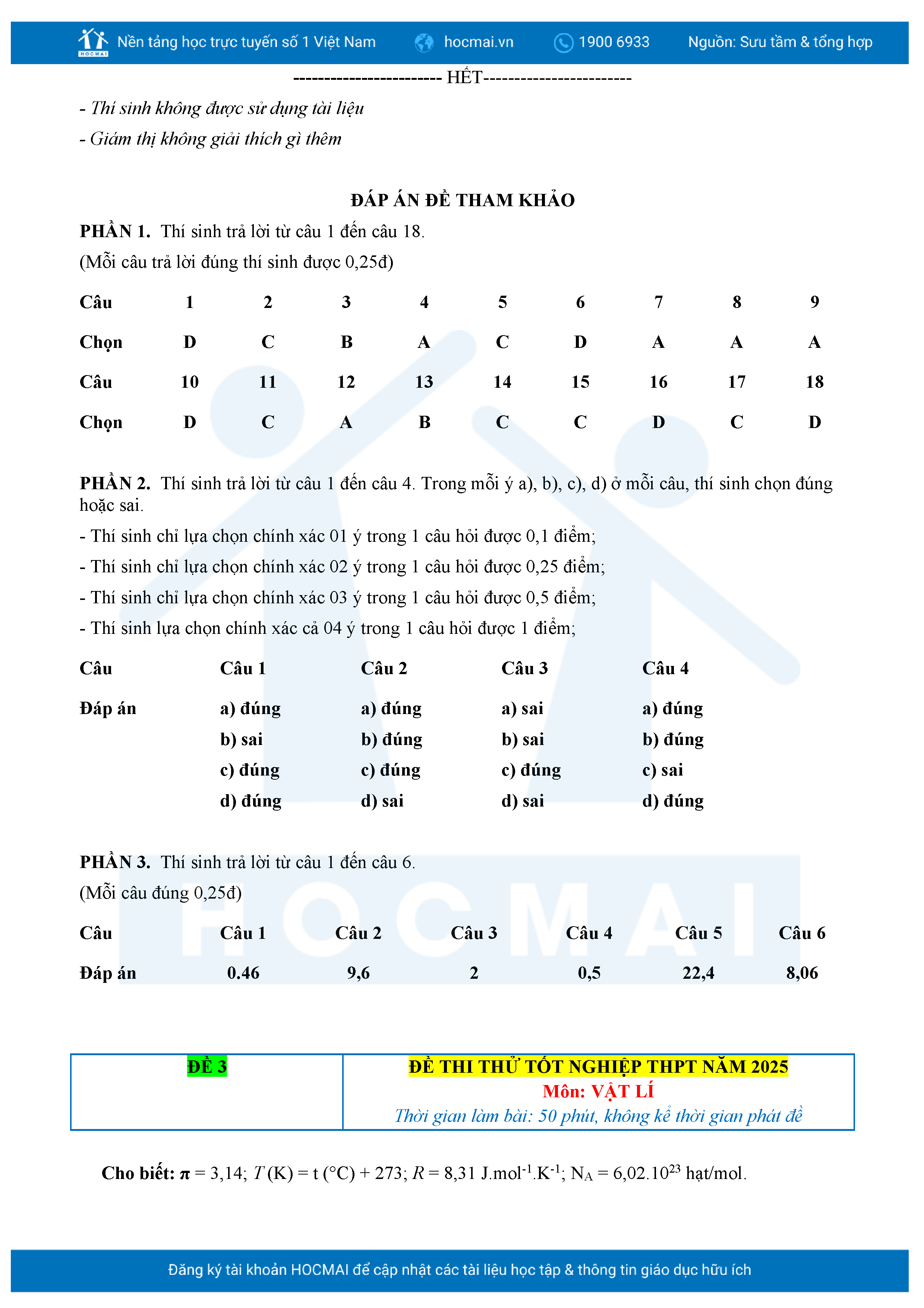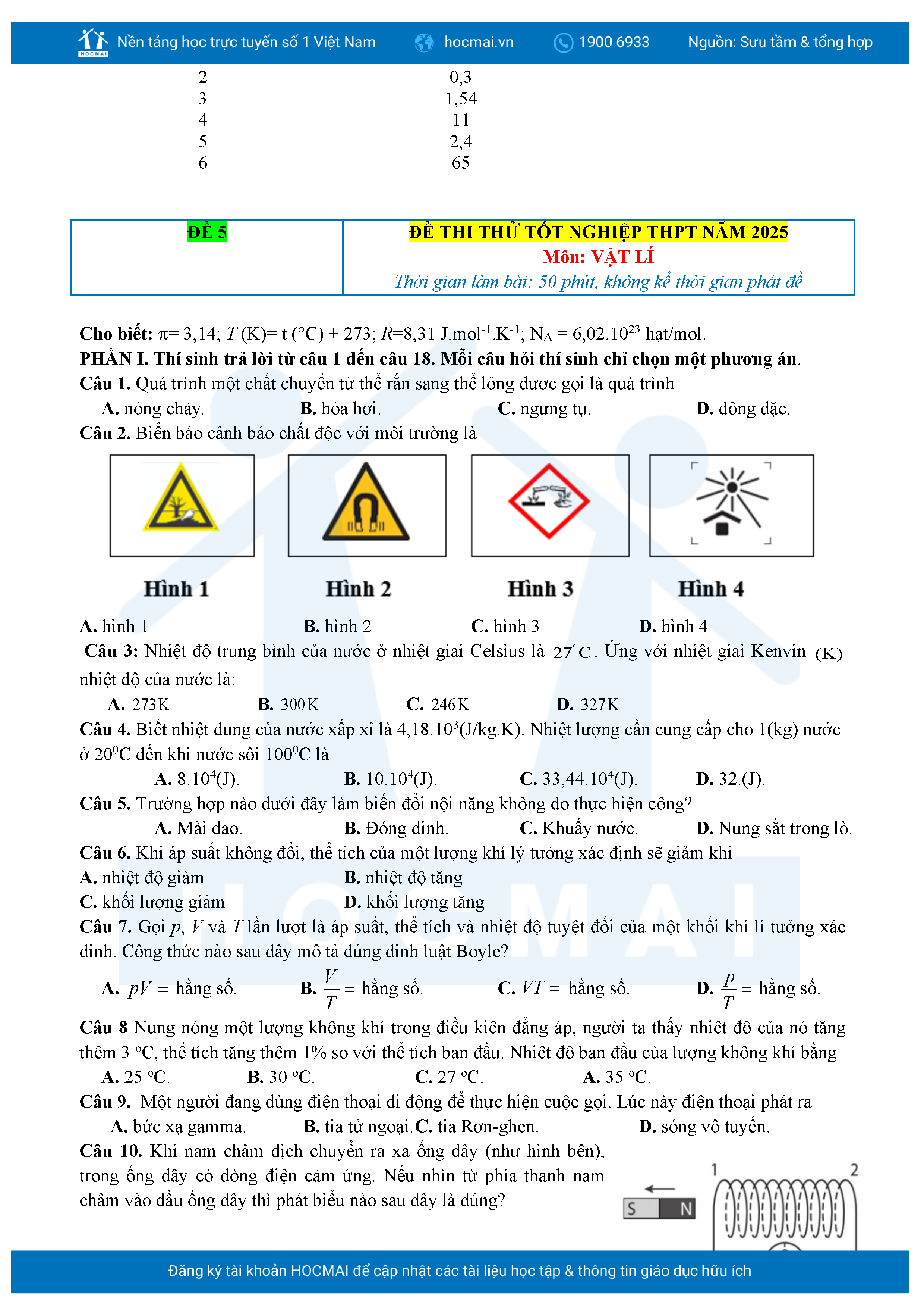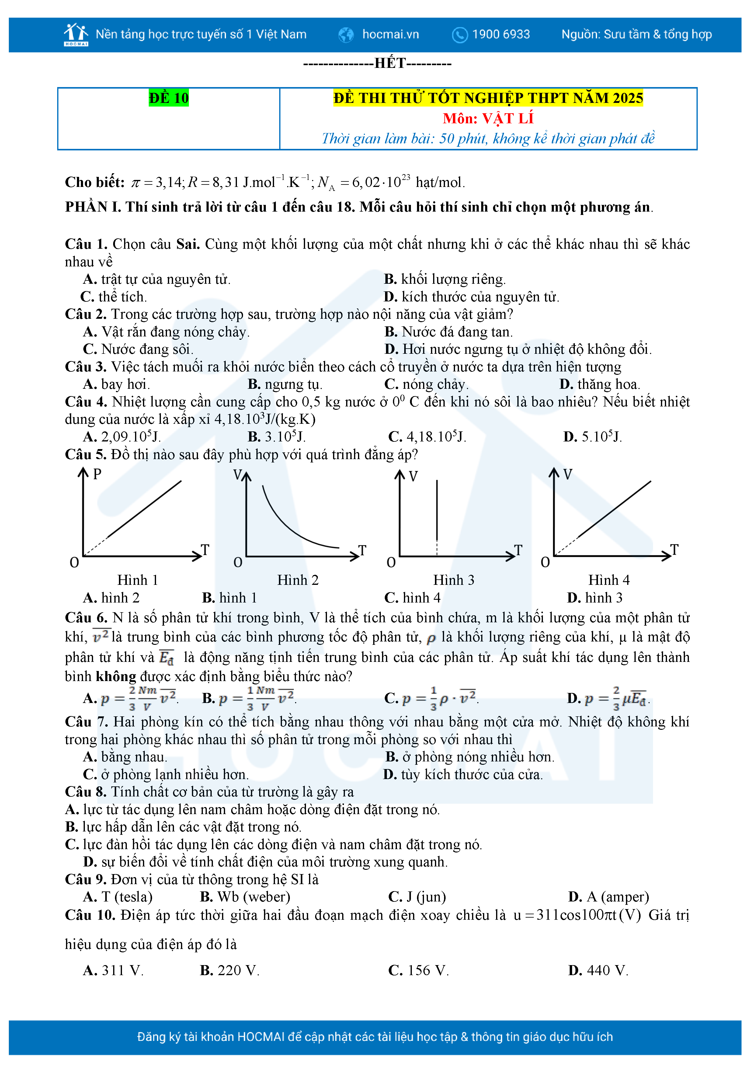 Bộ đề tham khảo thi thử TN THPT môn Vật Lí năm 2025 kèm đáp án
