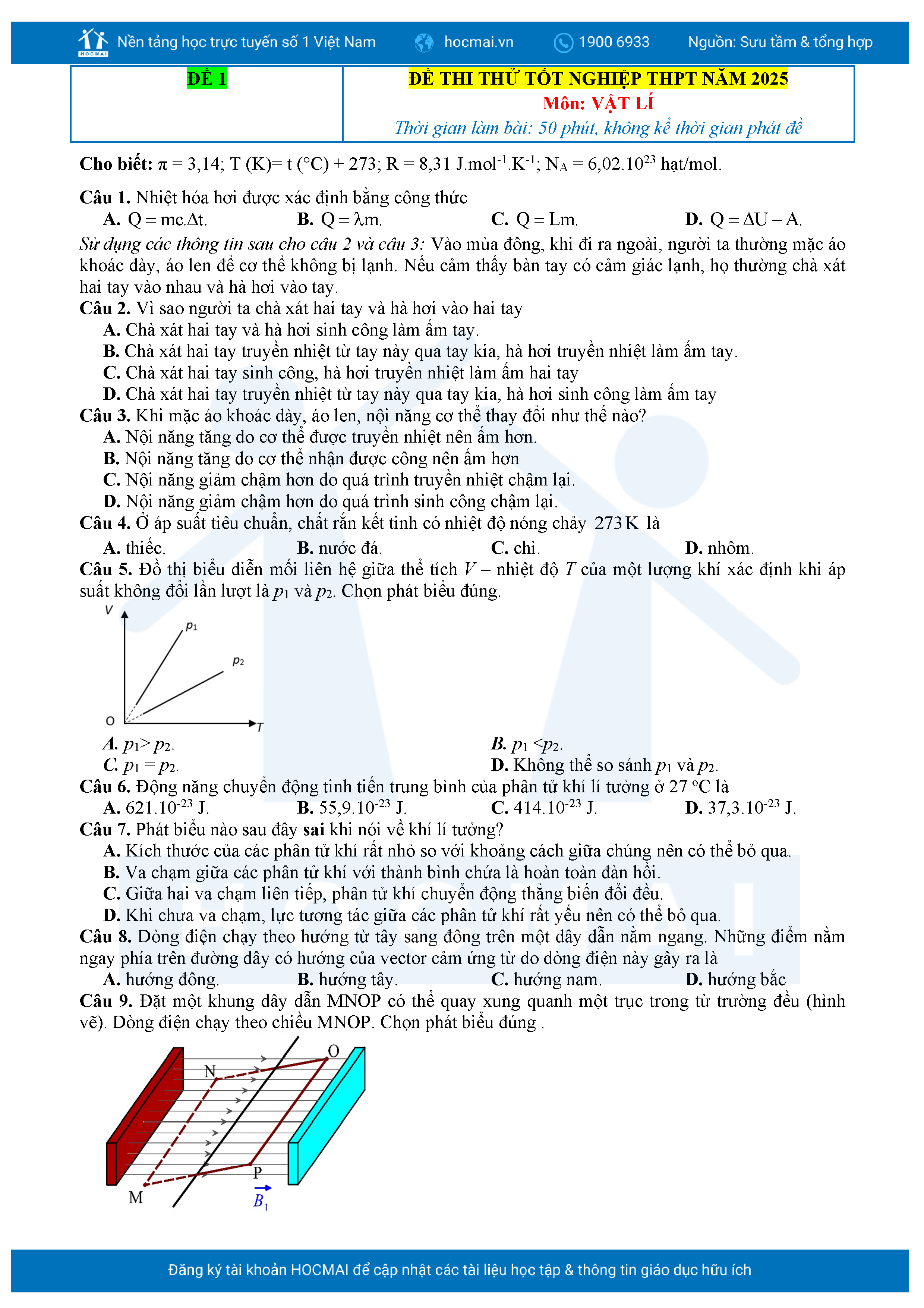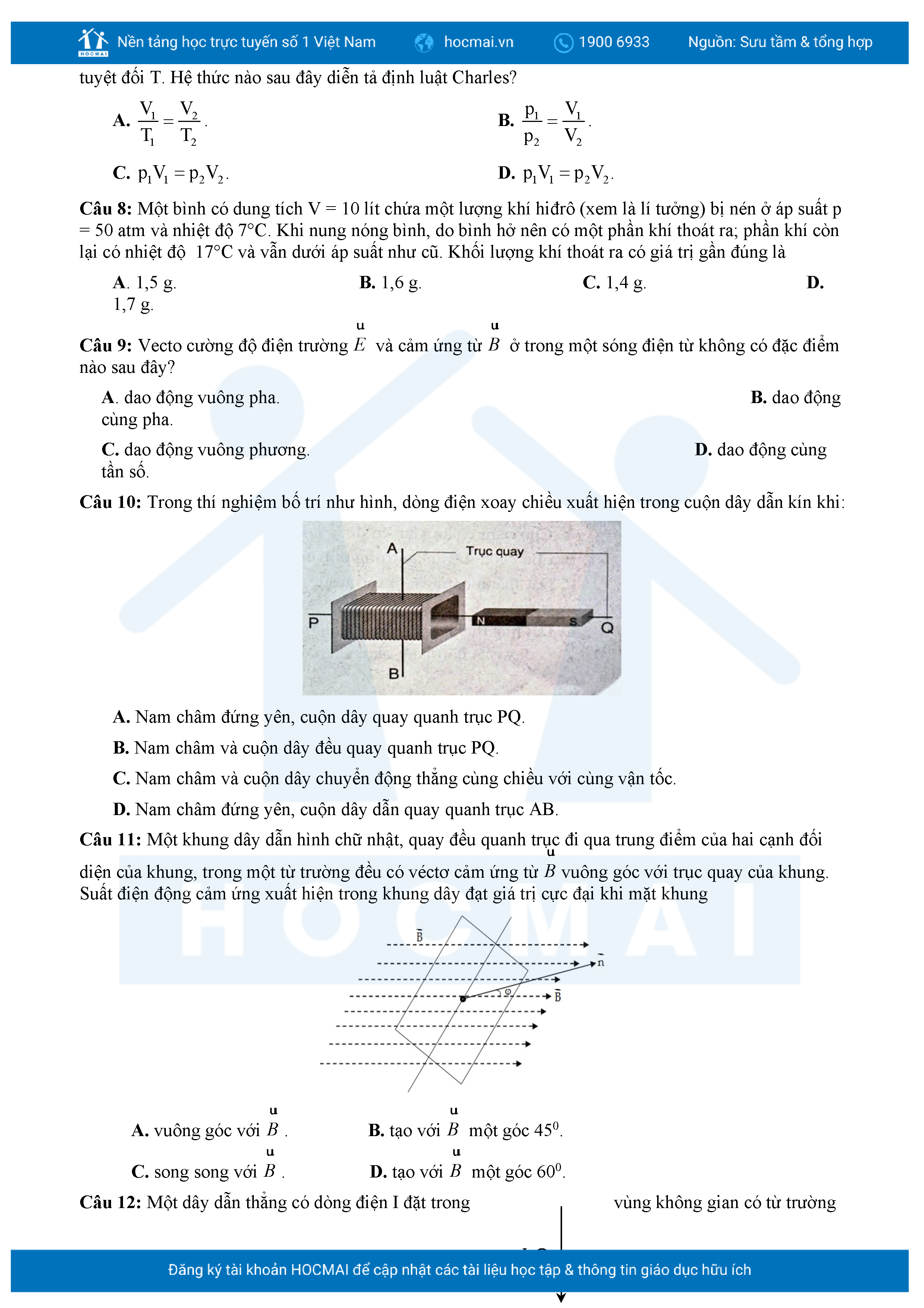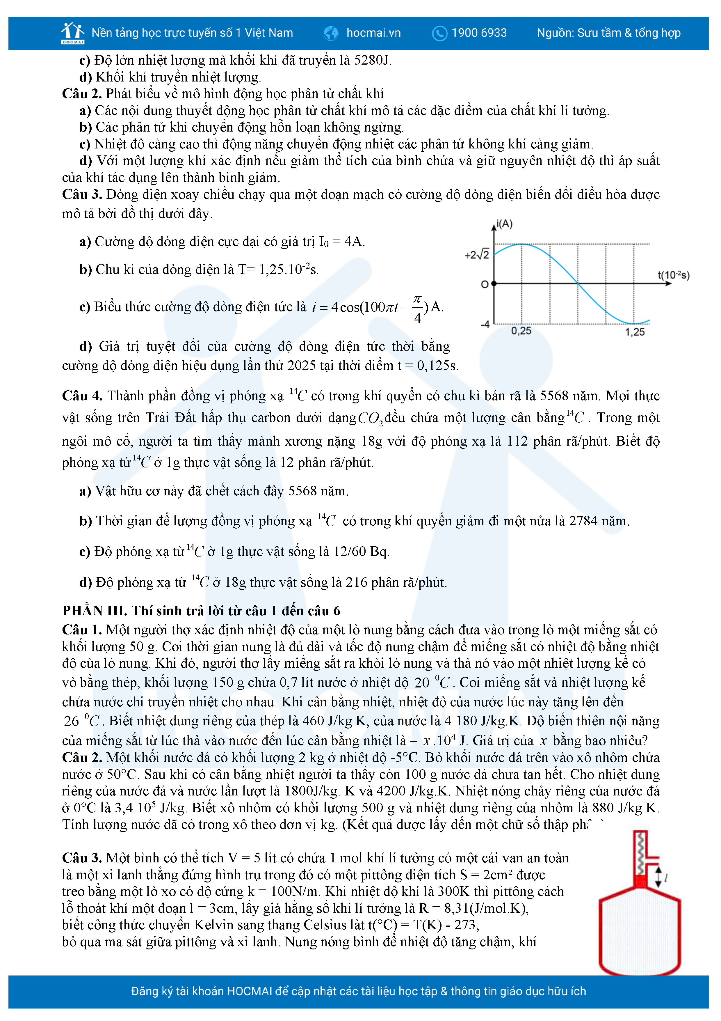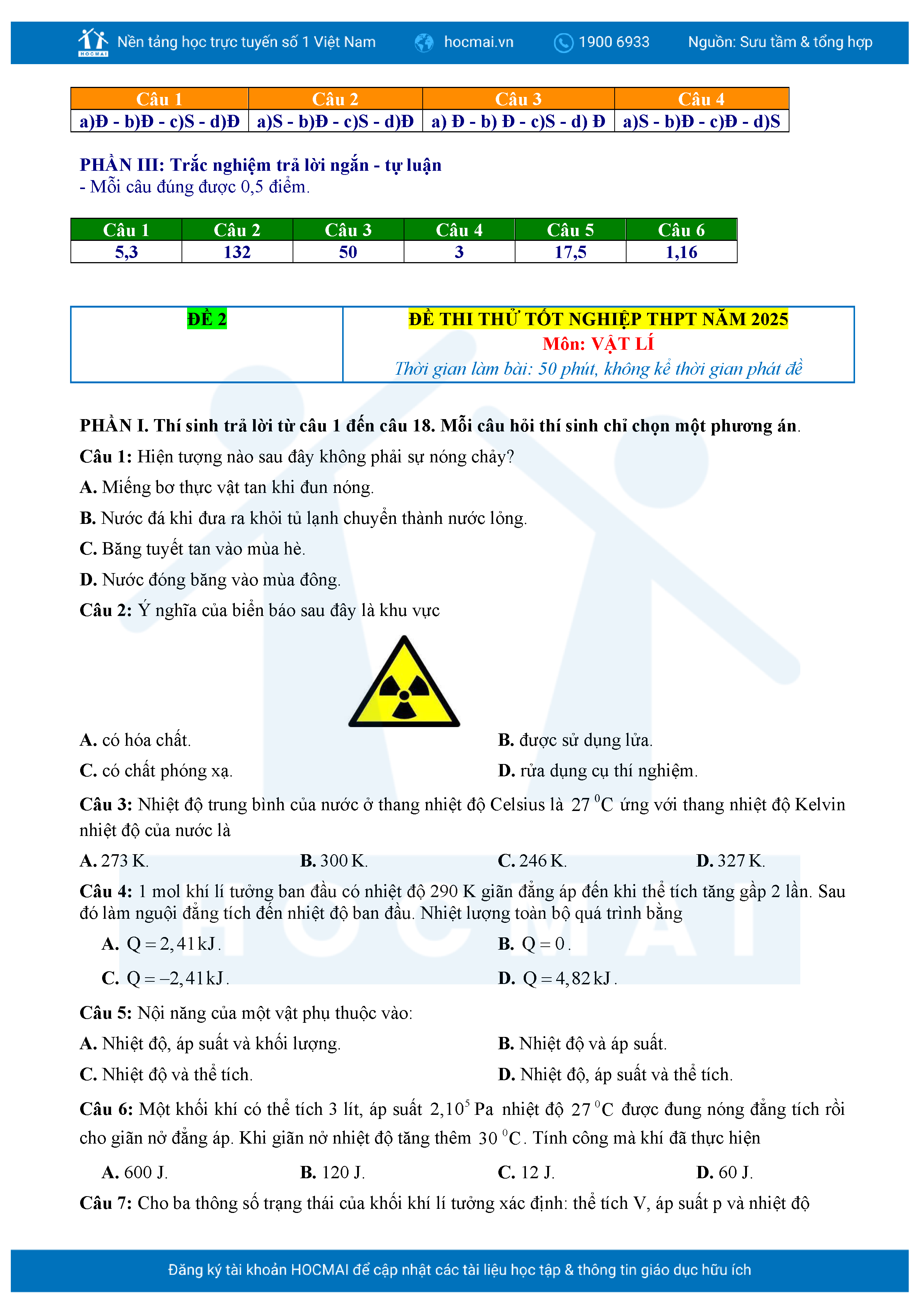 Bộ đề tham khảo thi thử TN THPT môn Vật Lí năm 2025 kèm đáp án