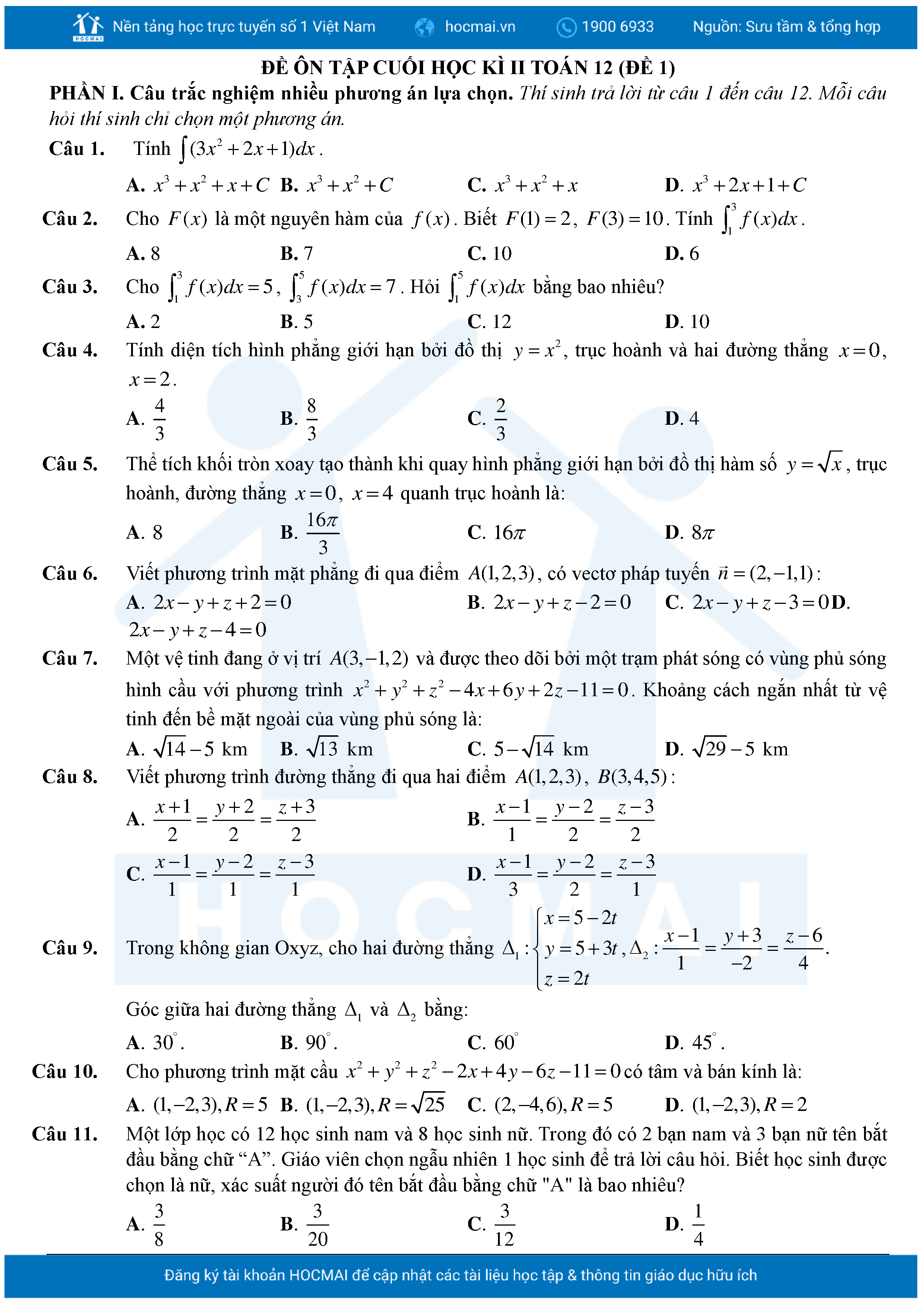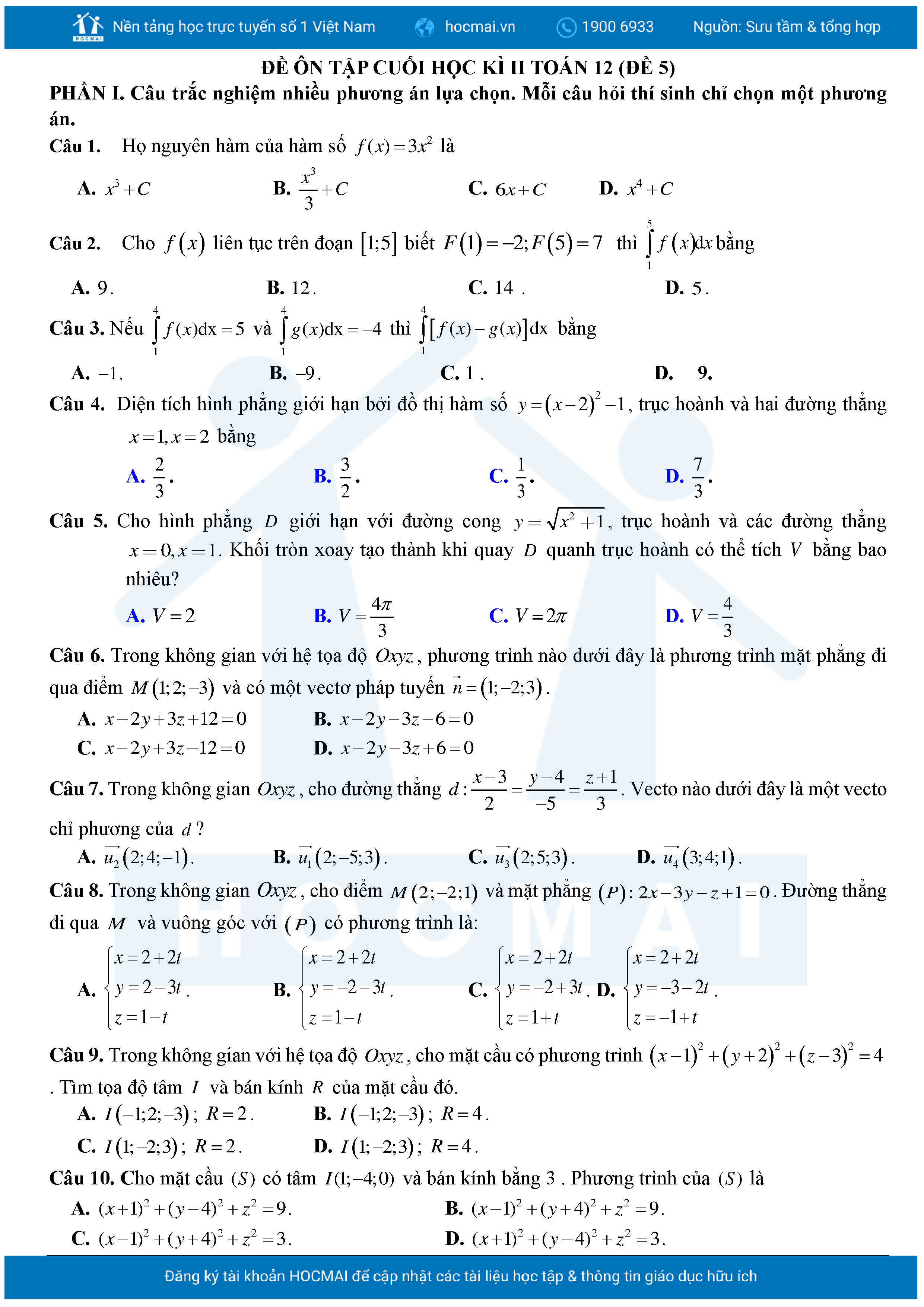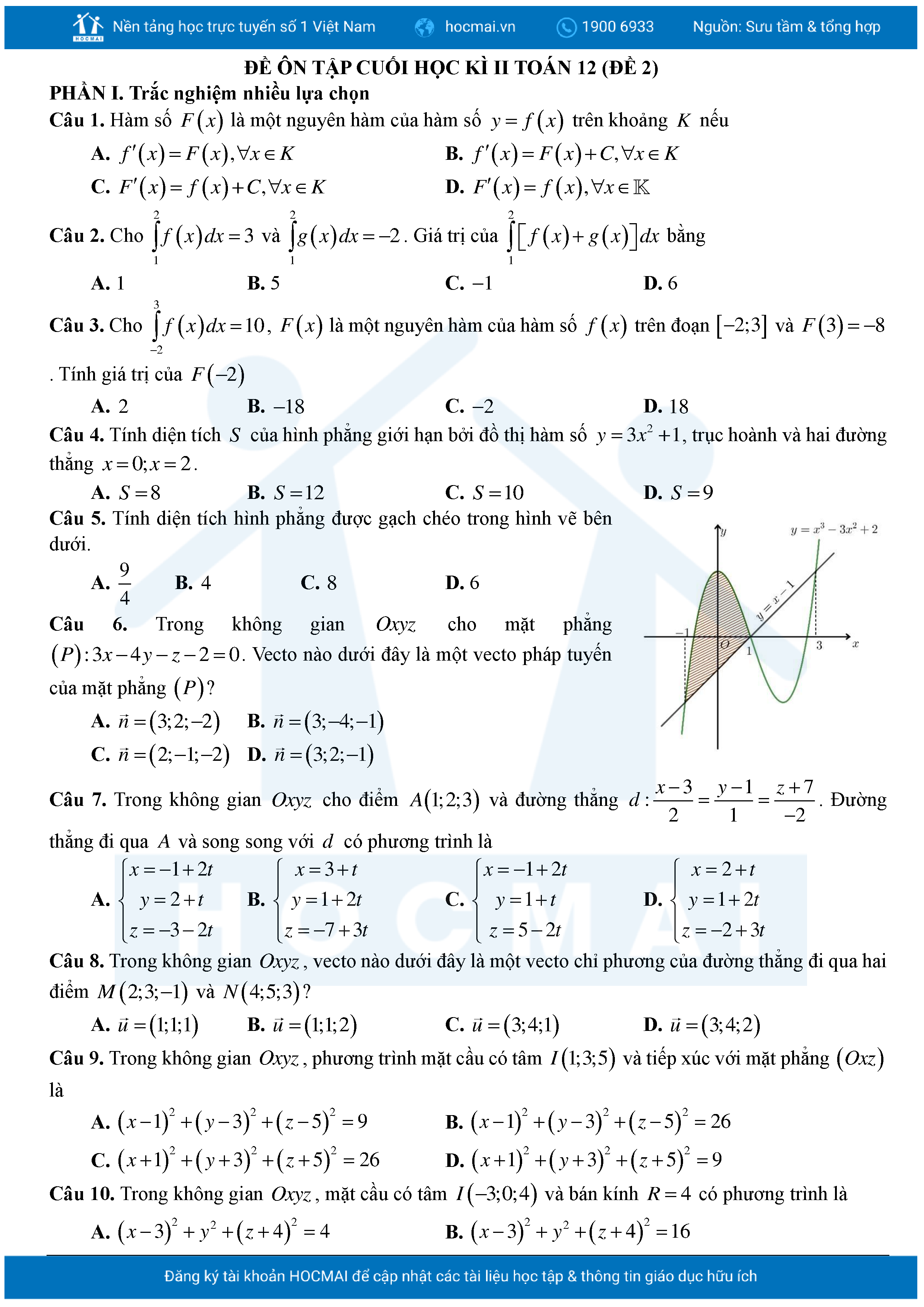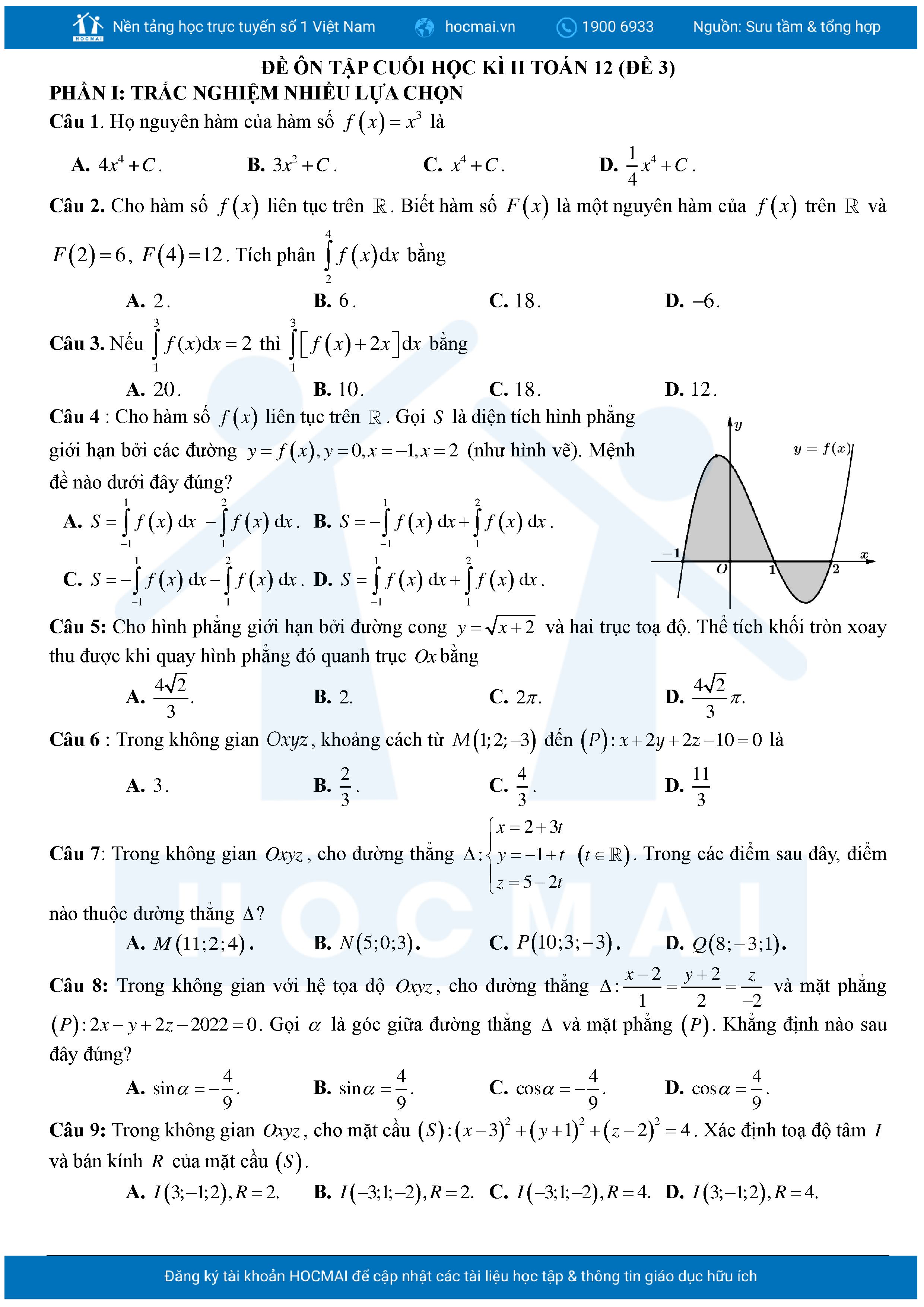 Đề cương ôn tập cuối HKII Toán 12 năm 2025 trường THPT Linh Trung TPHCM.