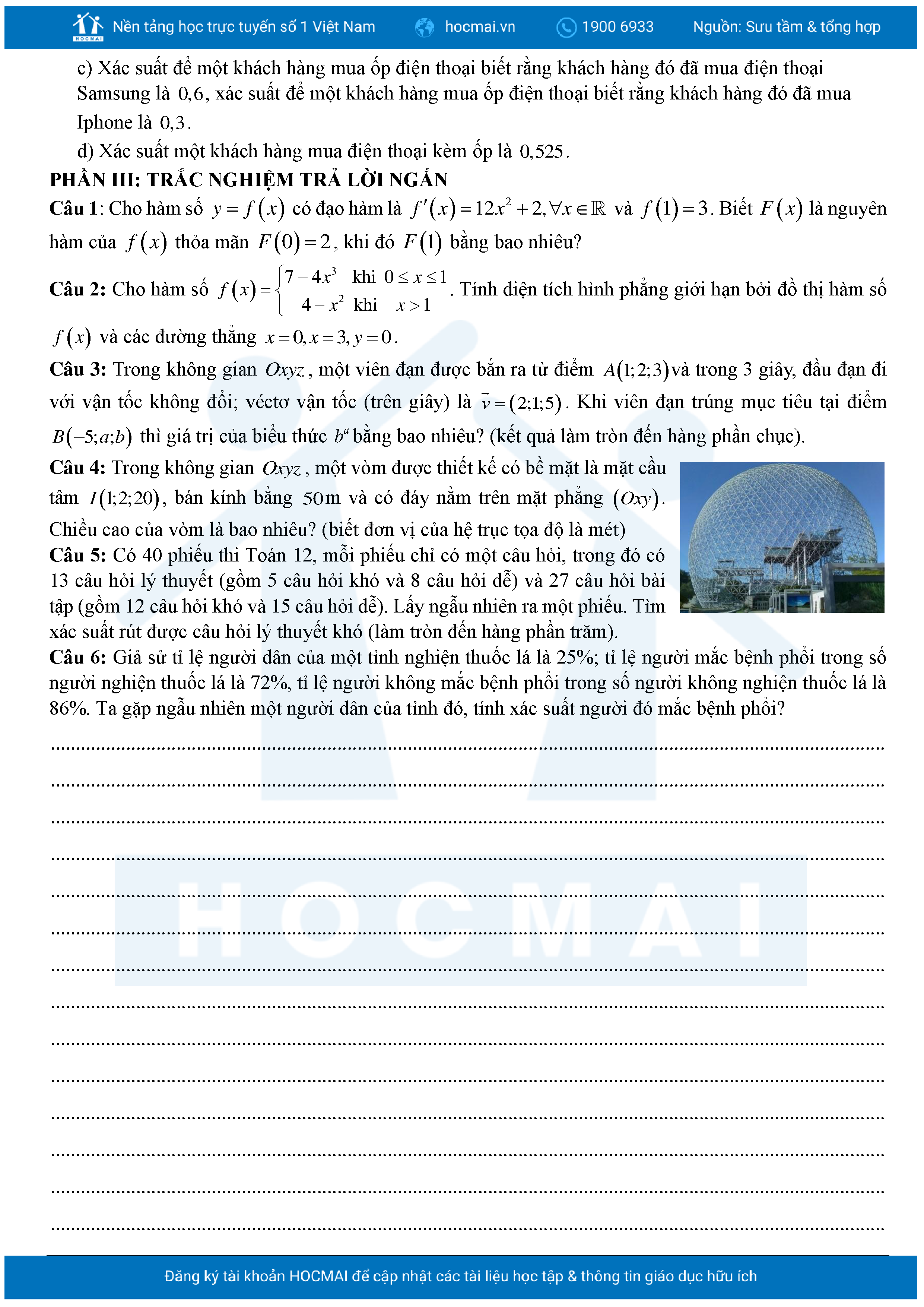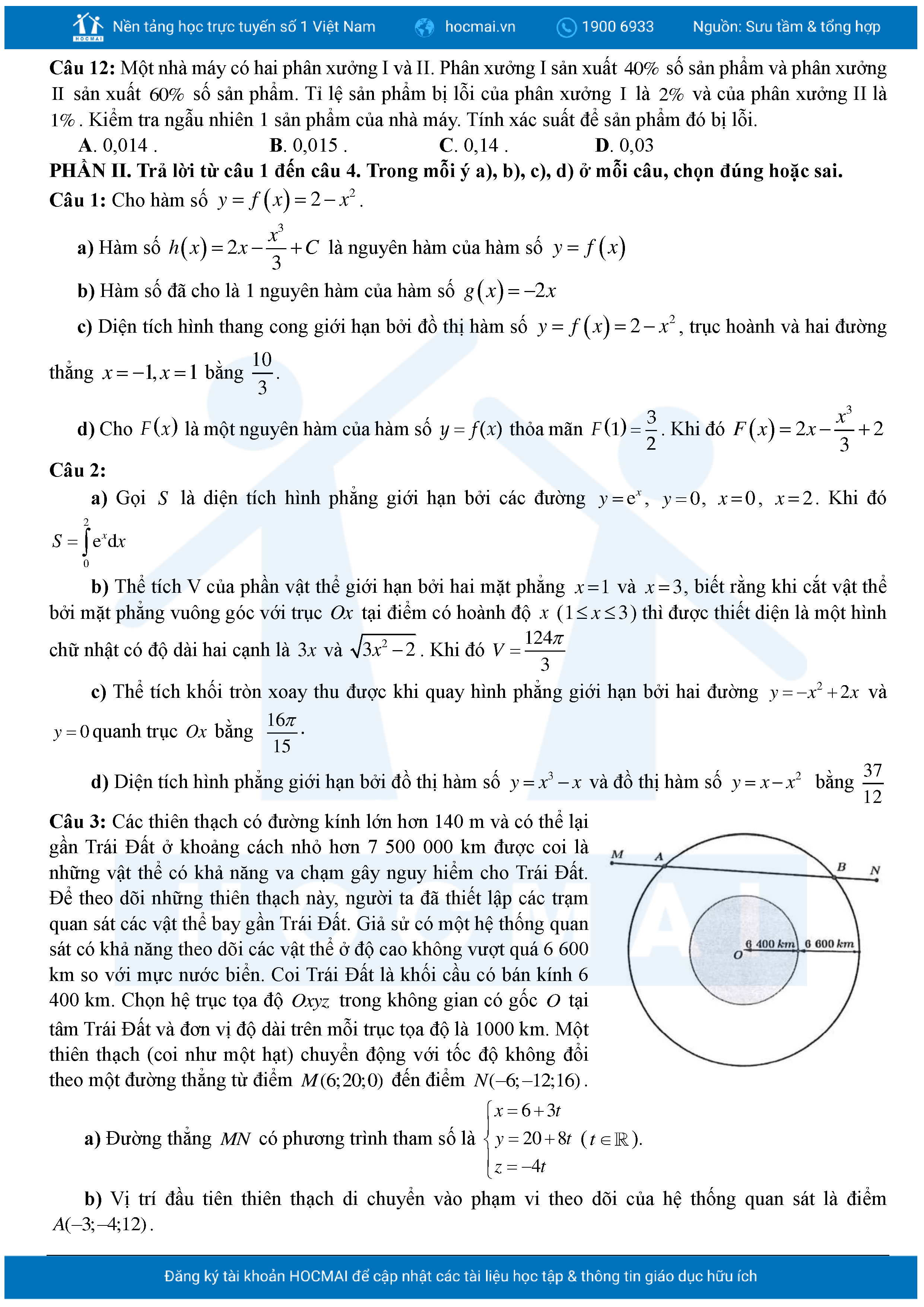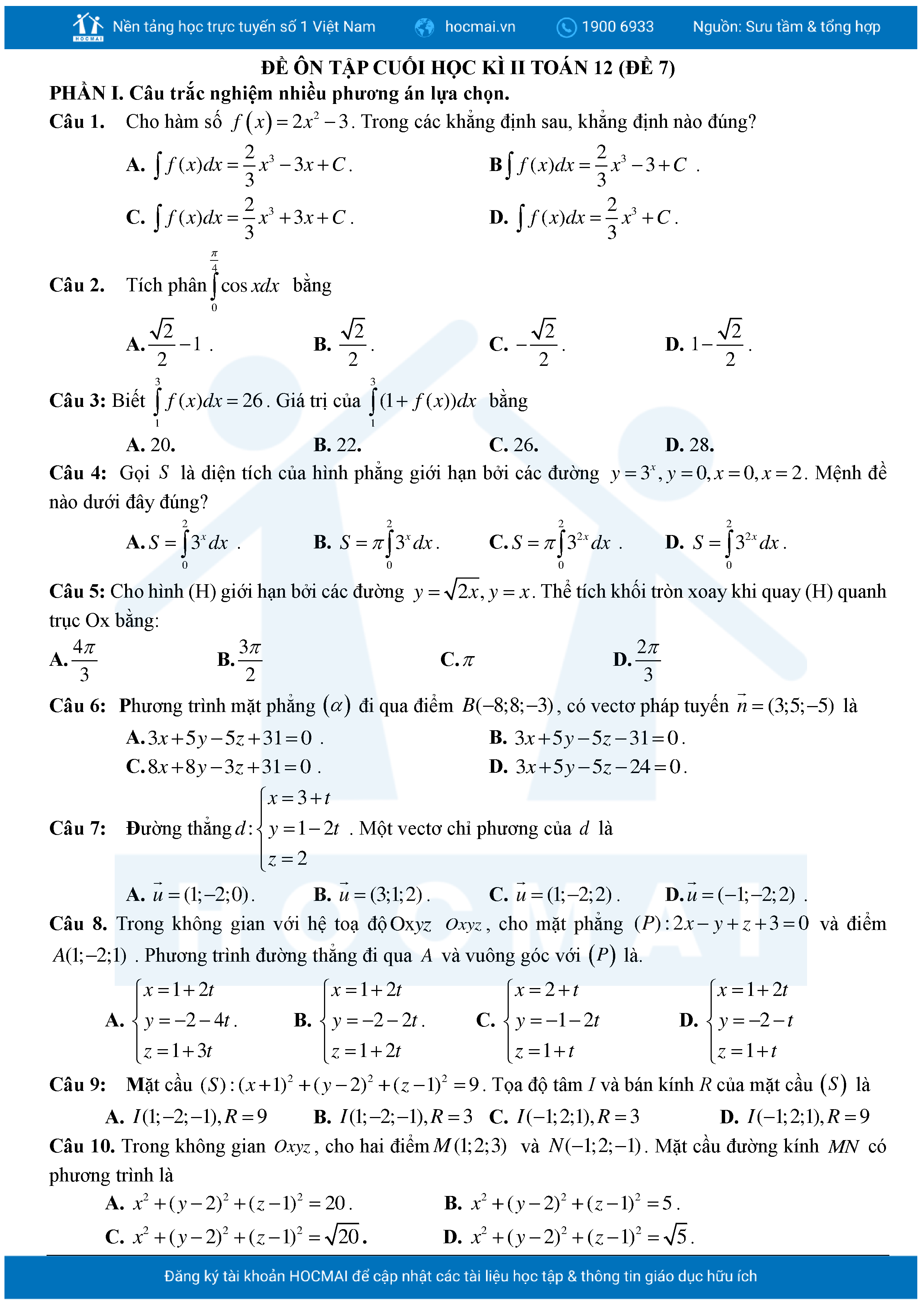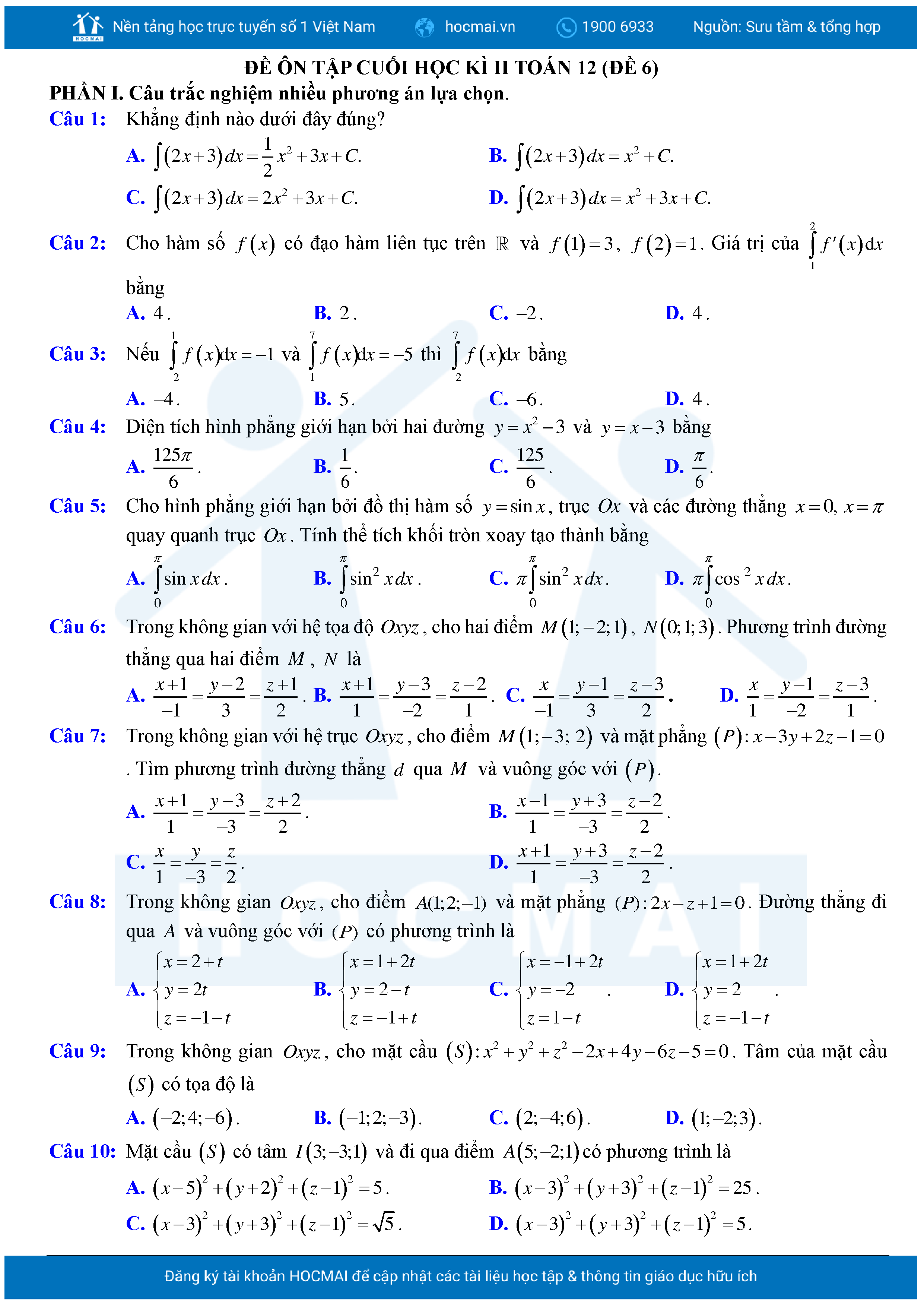 Đề cương ôn tập cuối HKII Toán 12 năm 2025 trường THPT Linh Trung TPHCM.