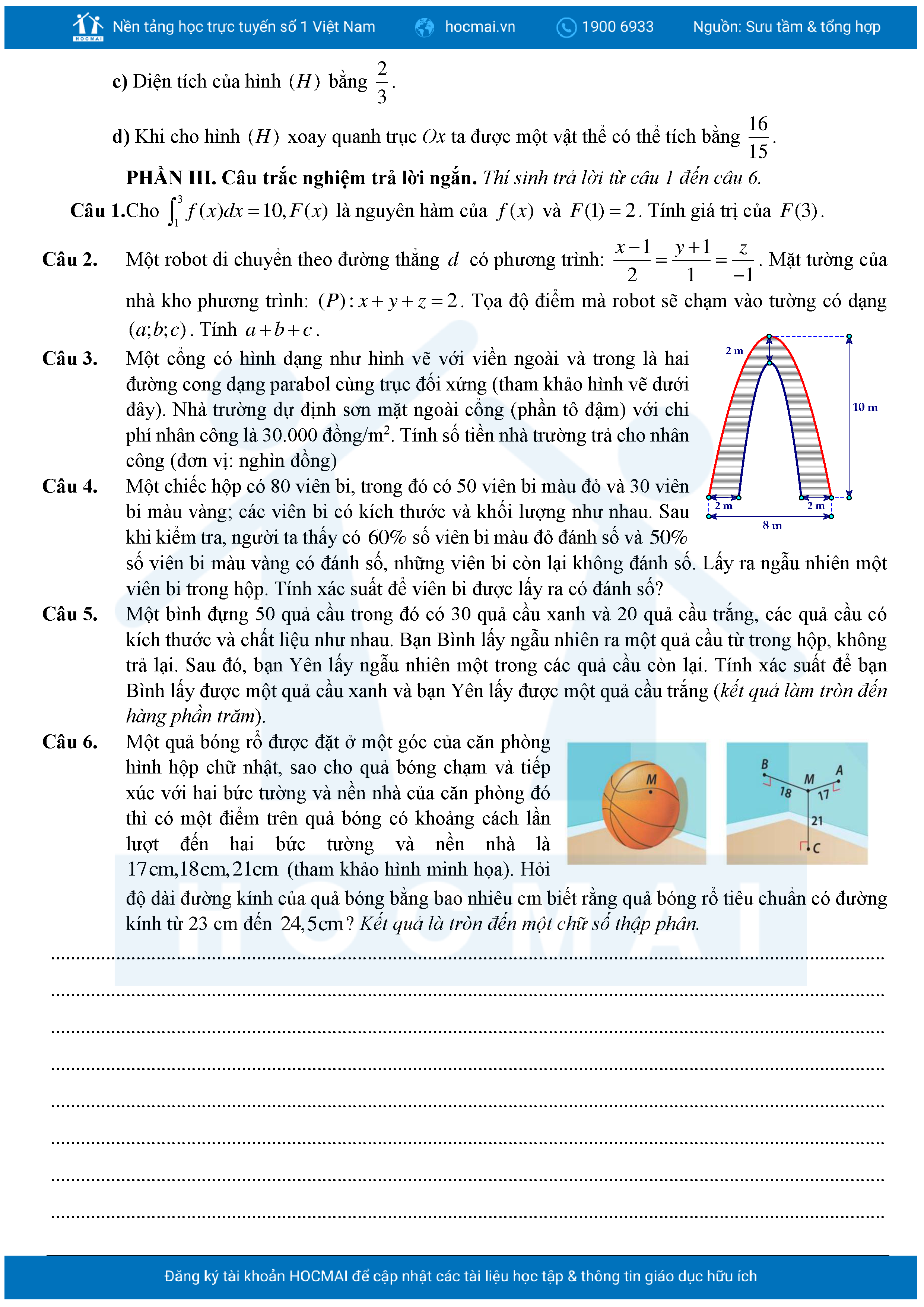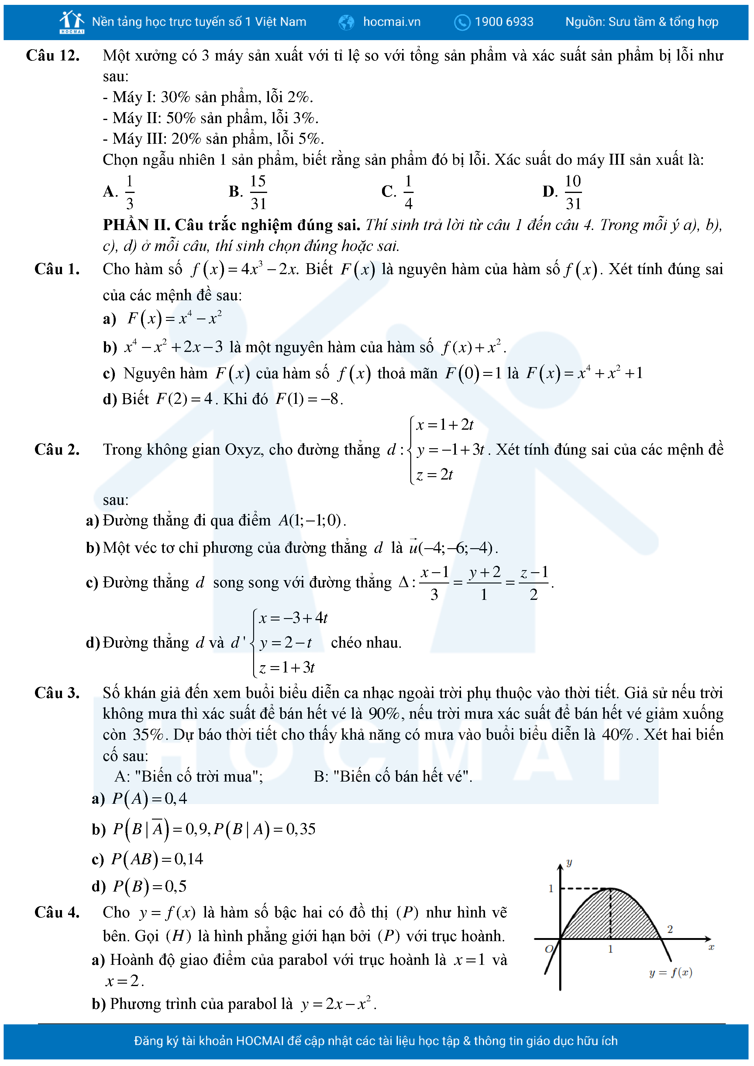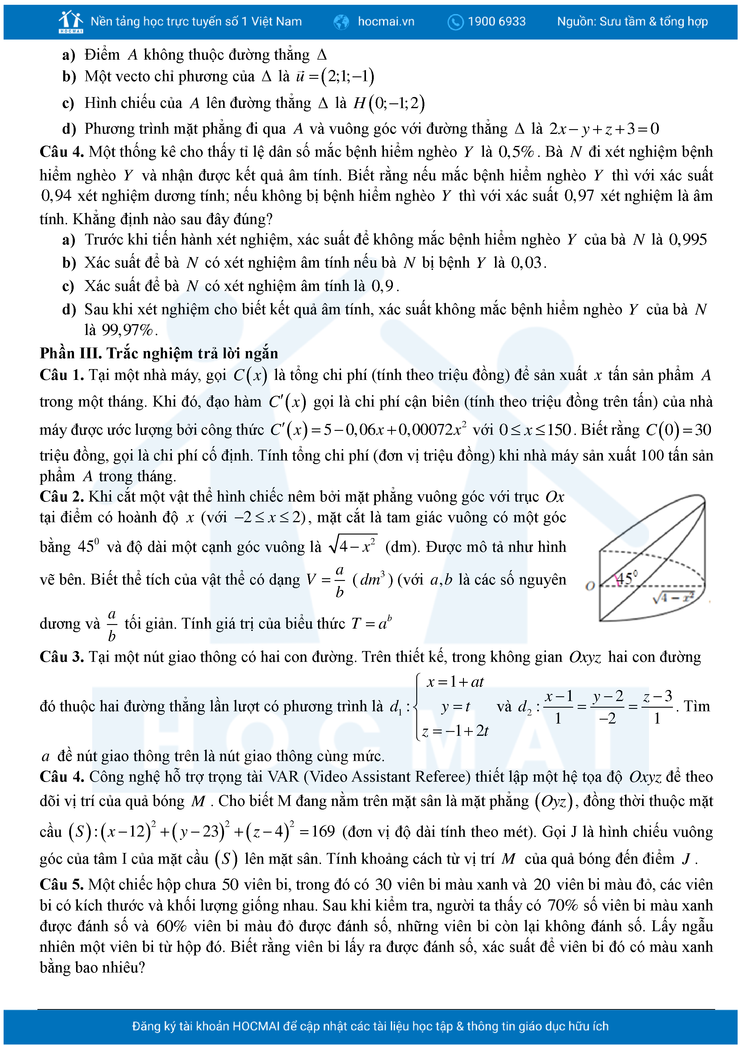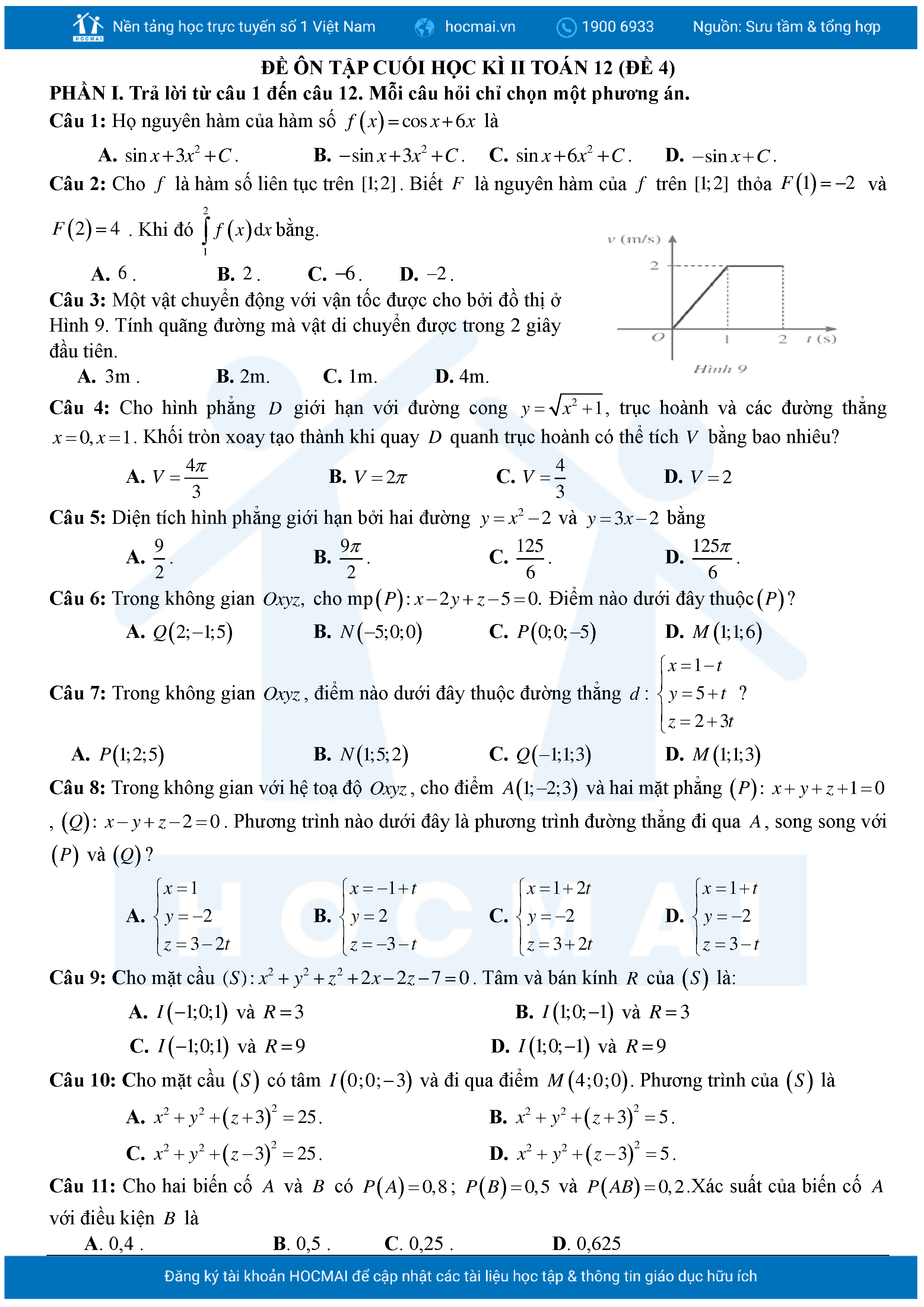 Đề cương ôn tập cuối HKII Toán 12 năm 2025 trường THPT Linh Trung TPHCM.