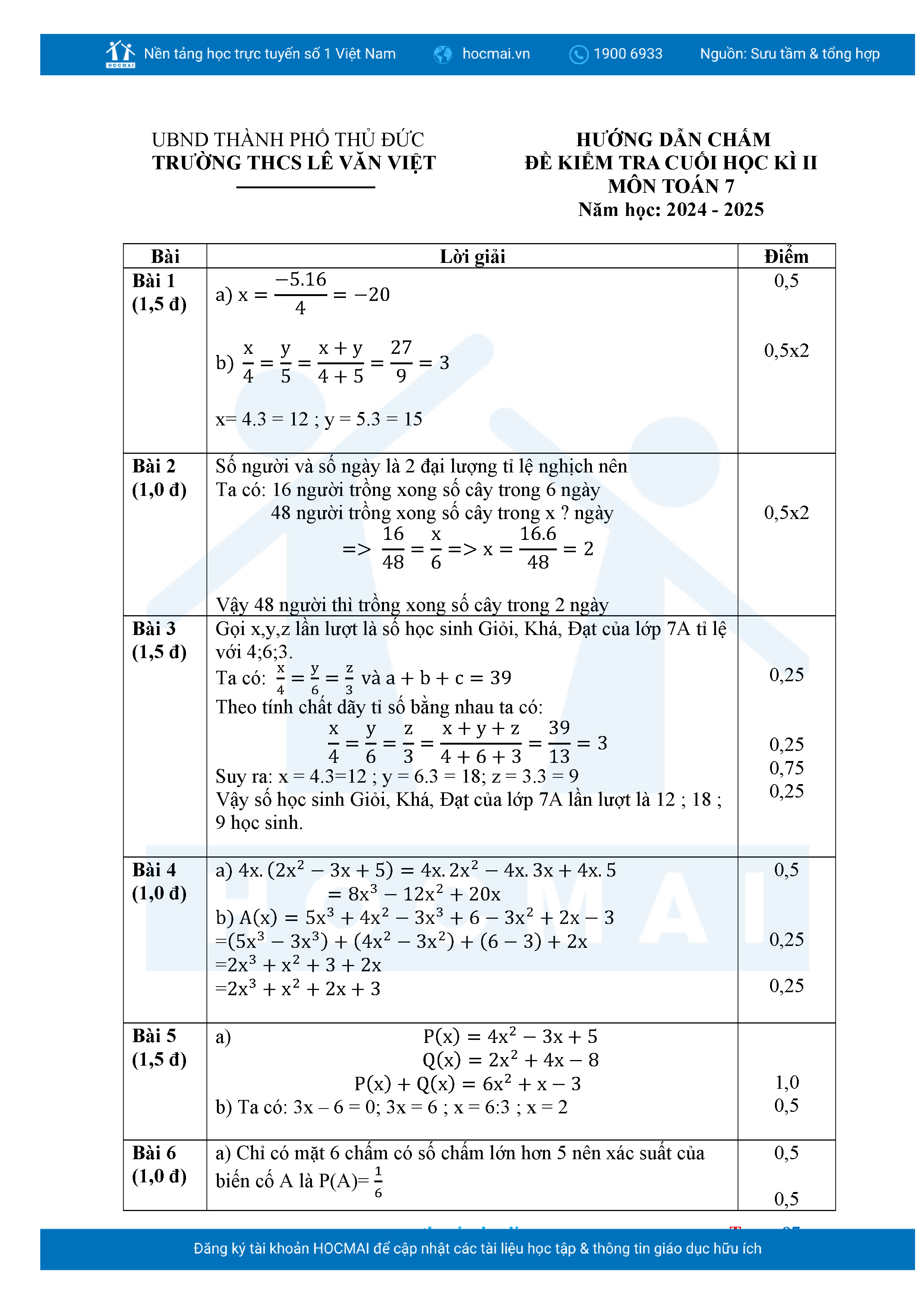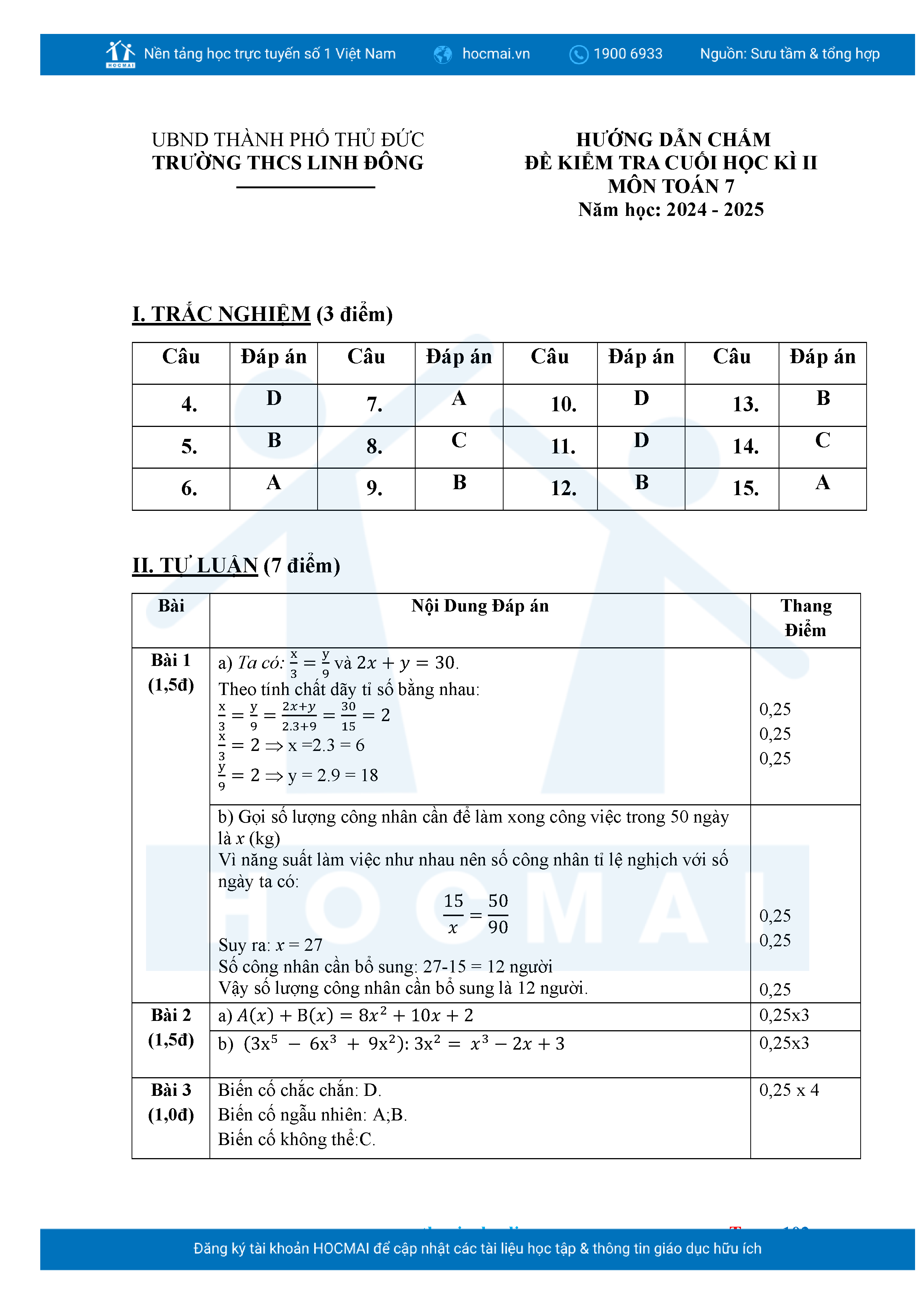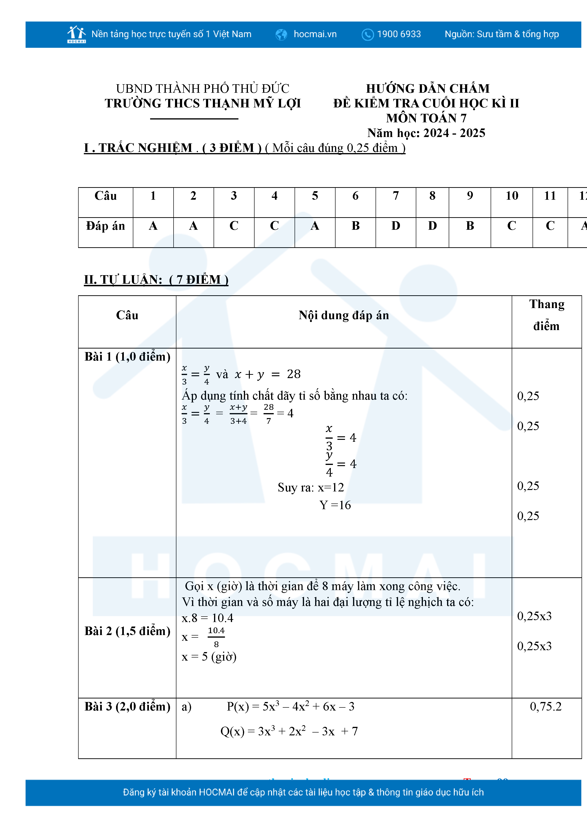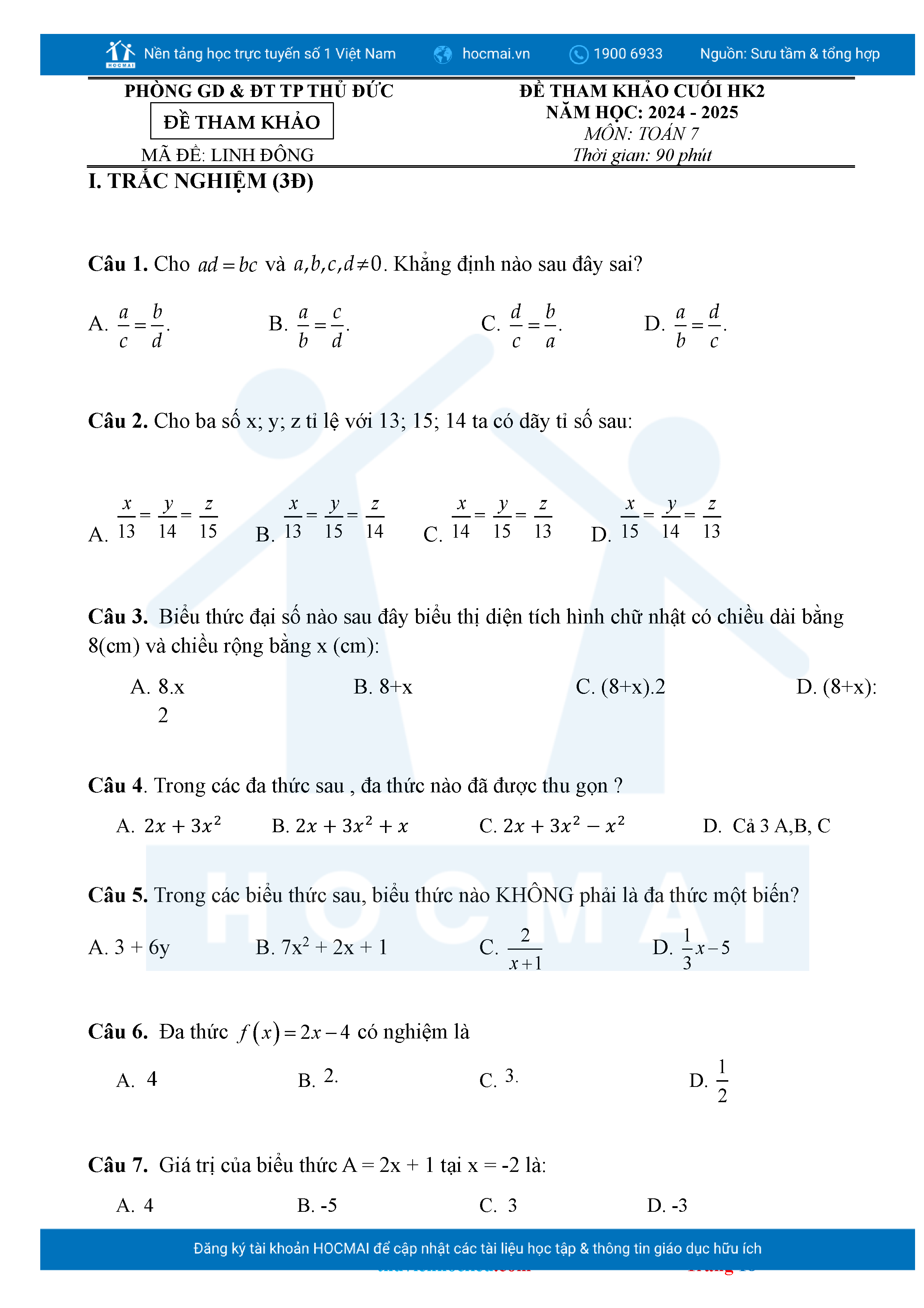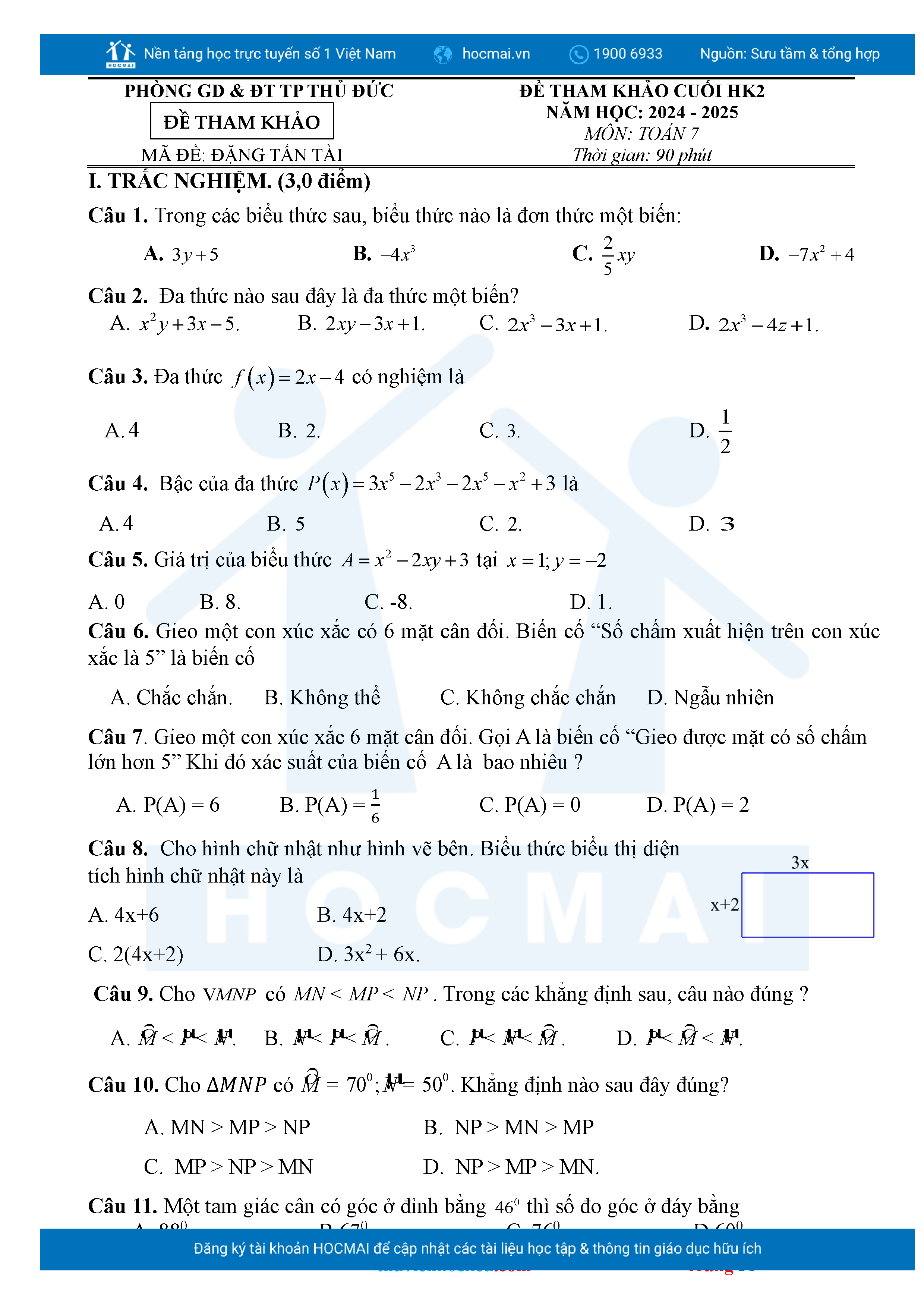 Bộ đề ôn thi môn Toán 7 HKII từ các trường ở TP Thủ Đức thuộc TPHCM kèm đáp án chi tiết.