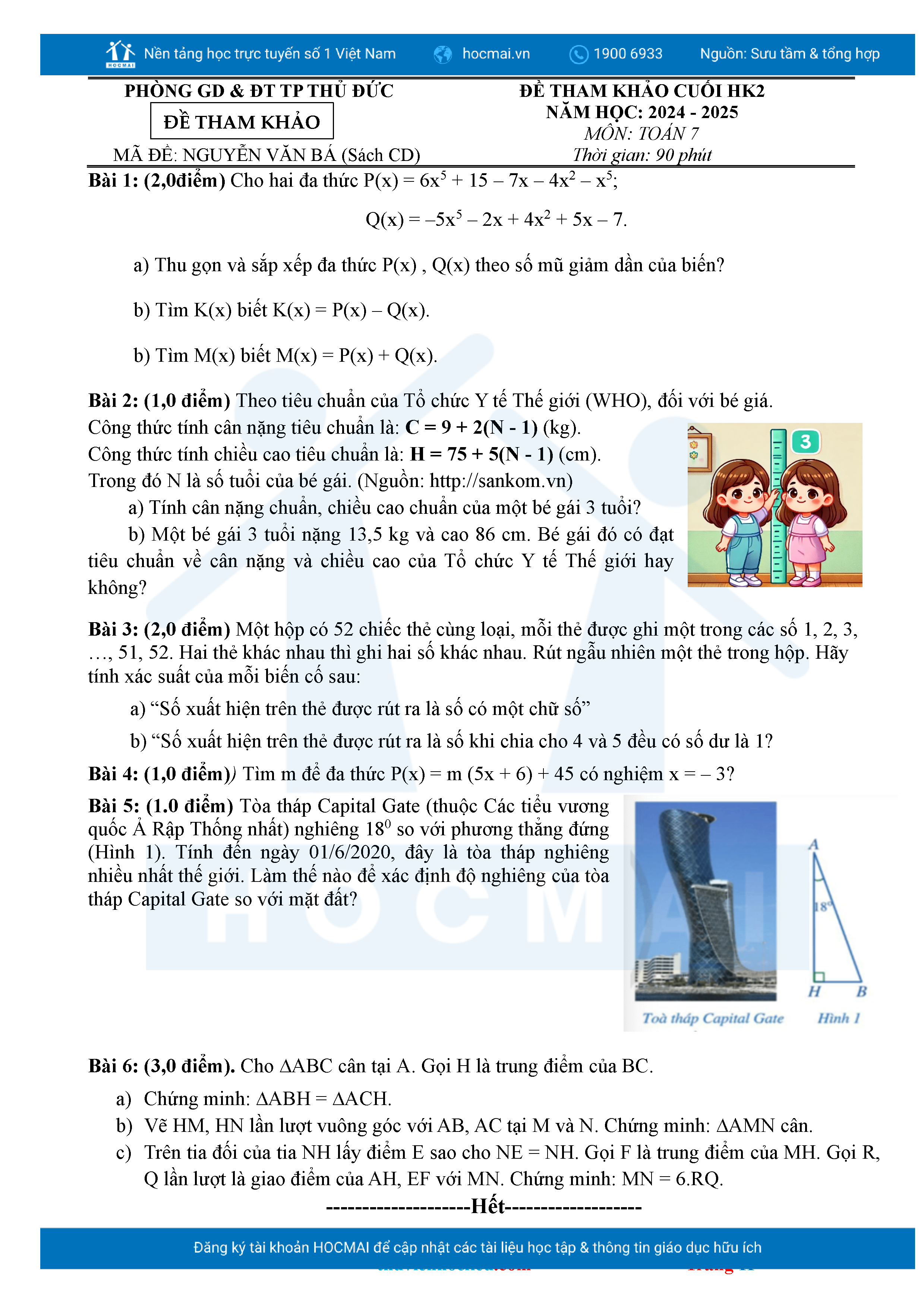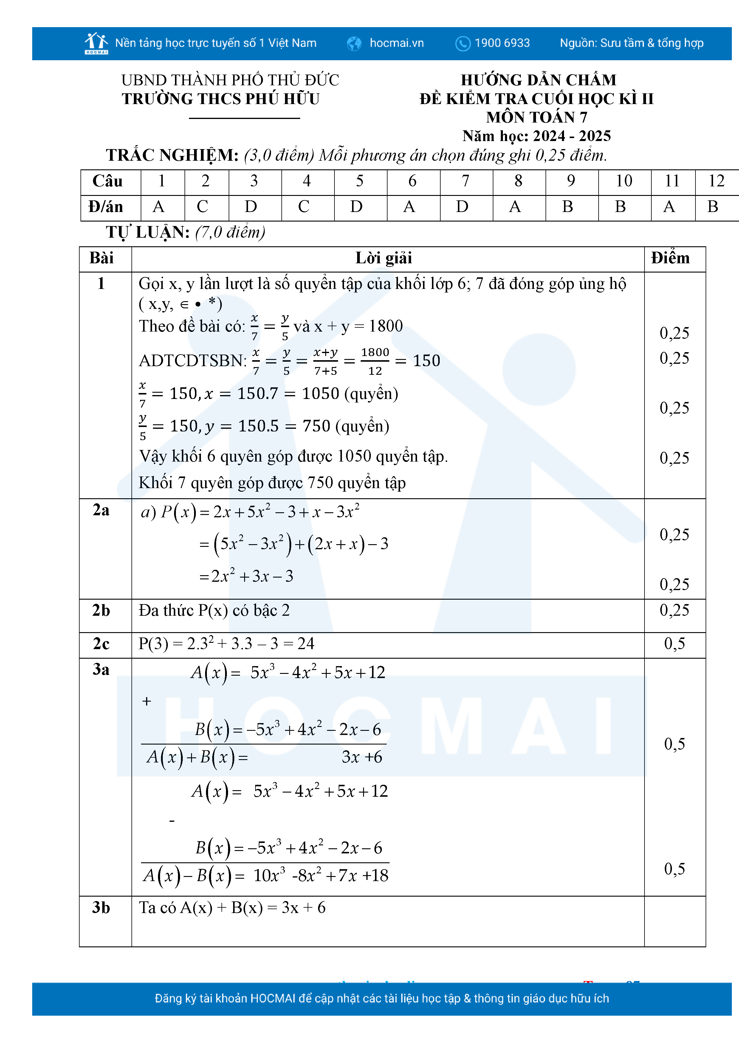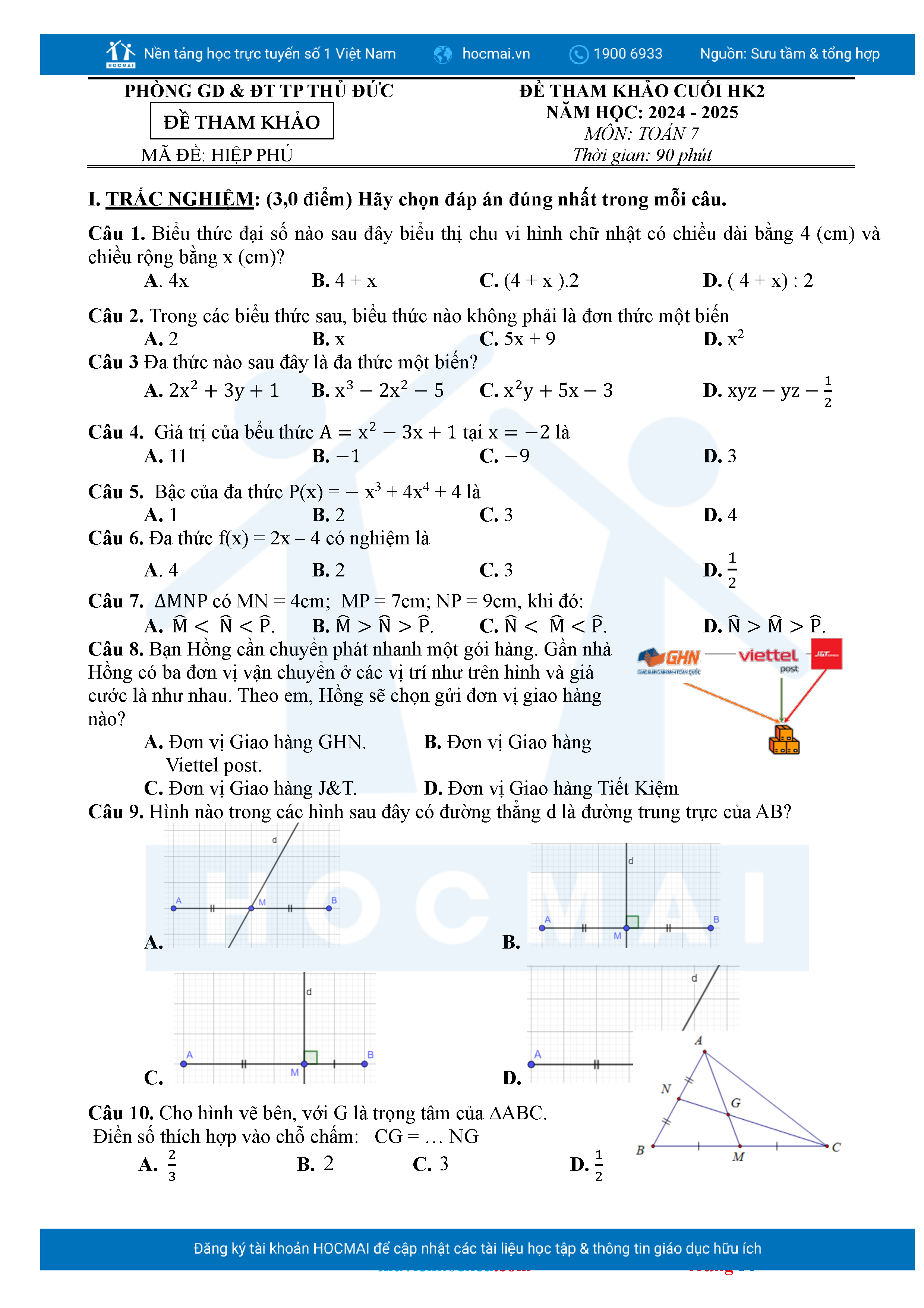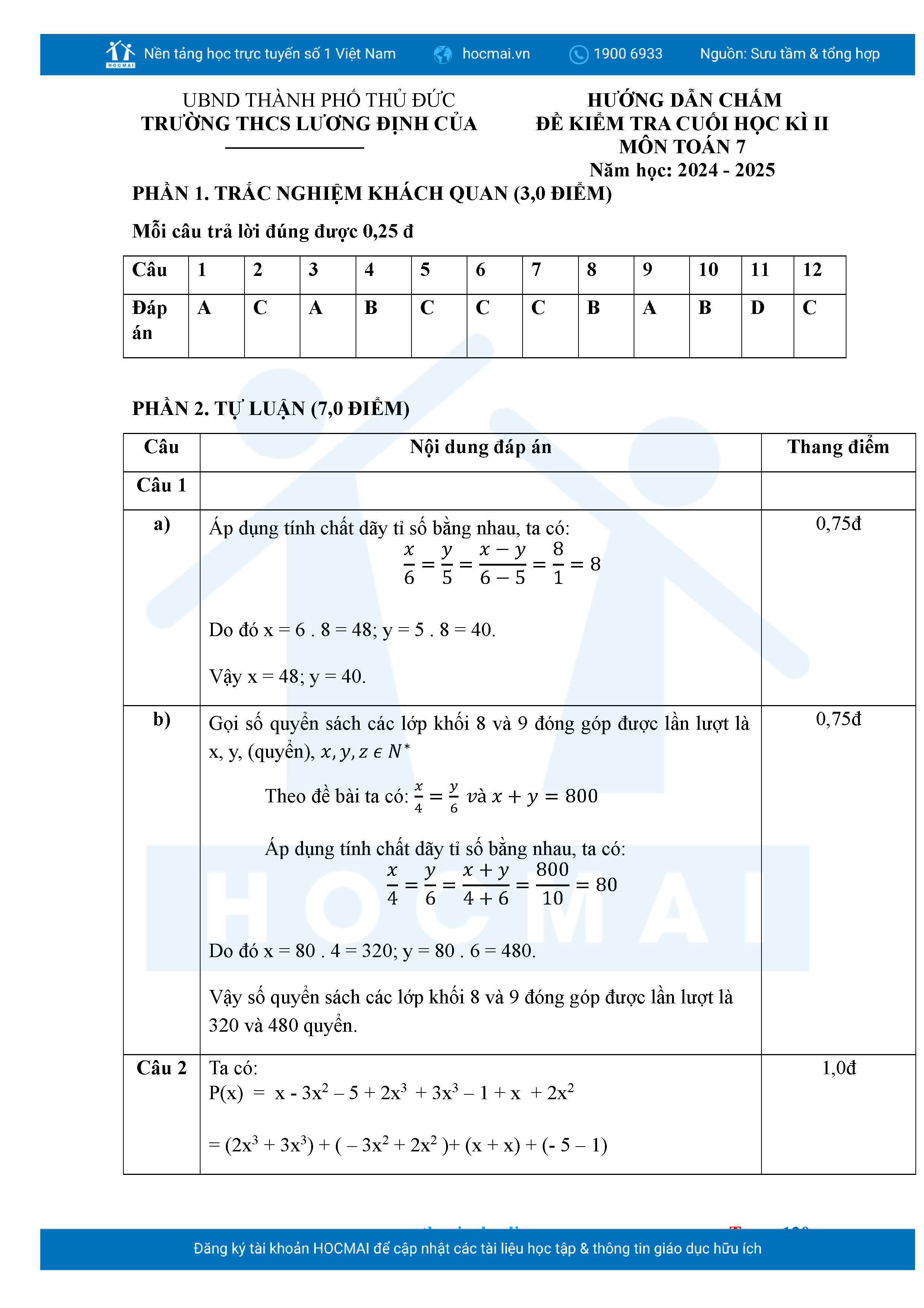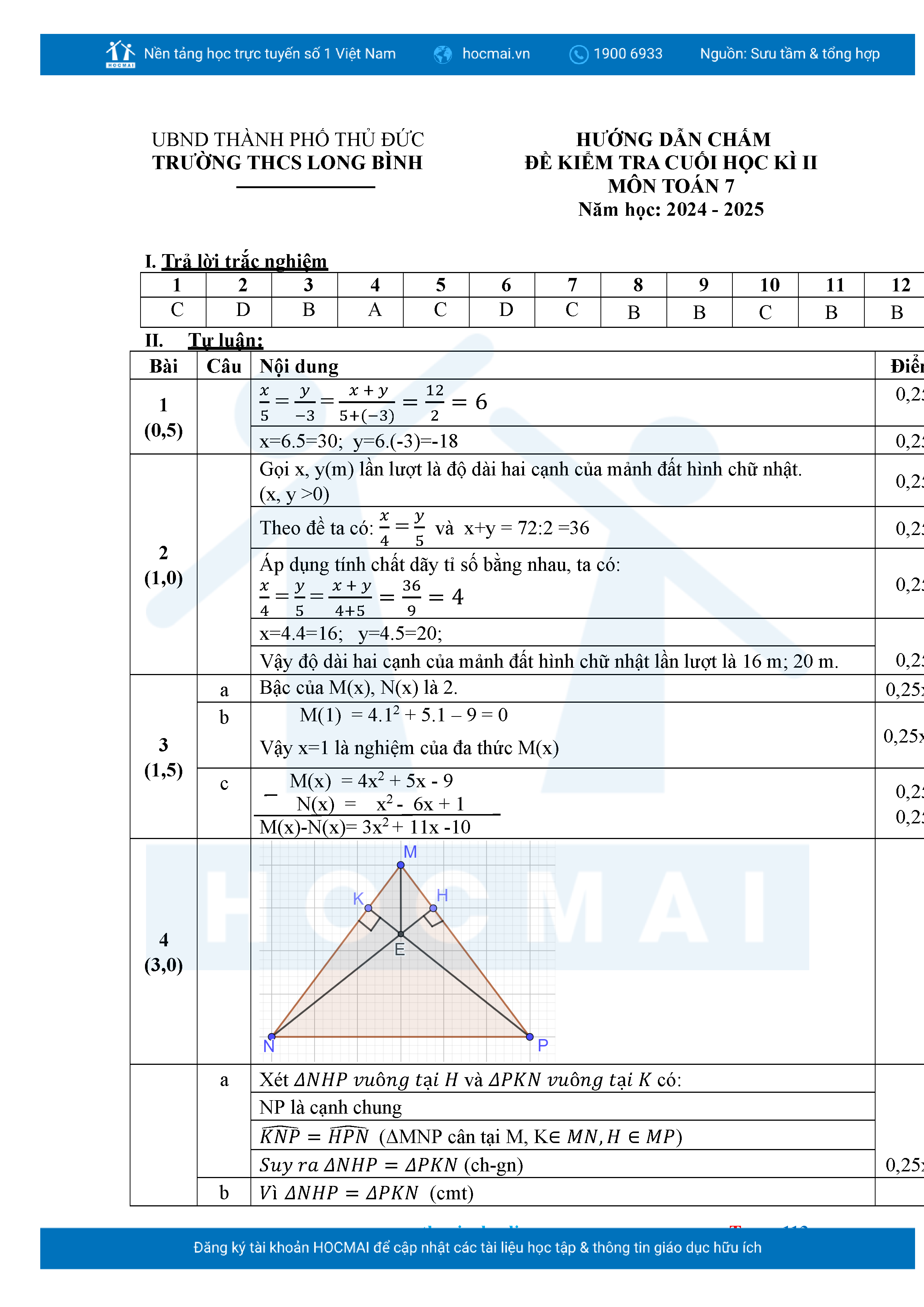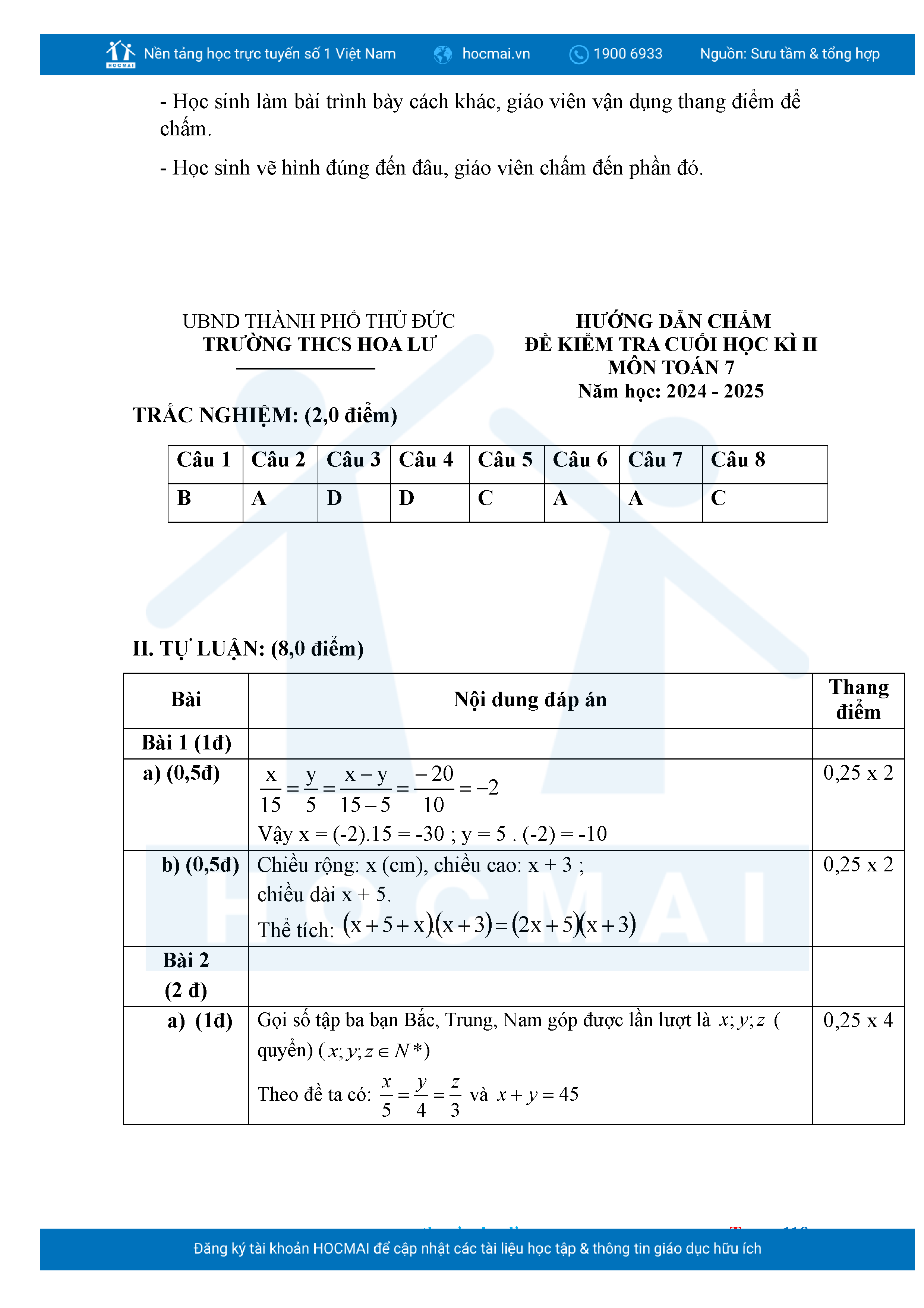 Bộ đề ôn thi môn Toán 7 HKII từ các trường ở TP Thủ Đức thuộc TPHCM kèm đáp án chi tiết.