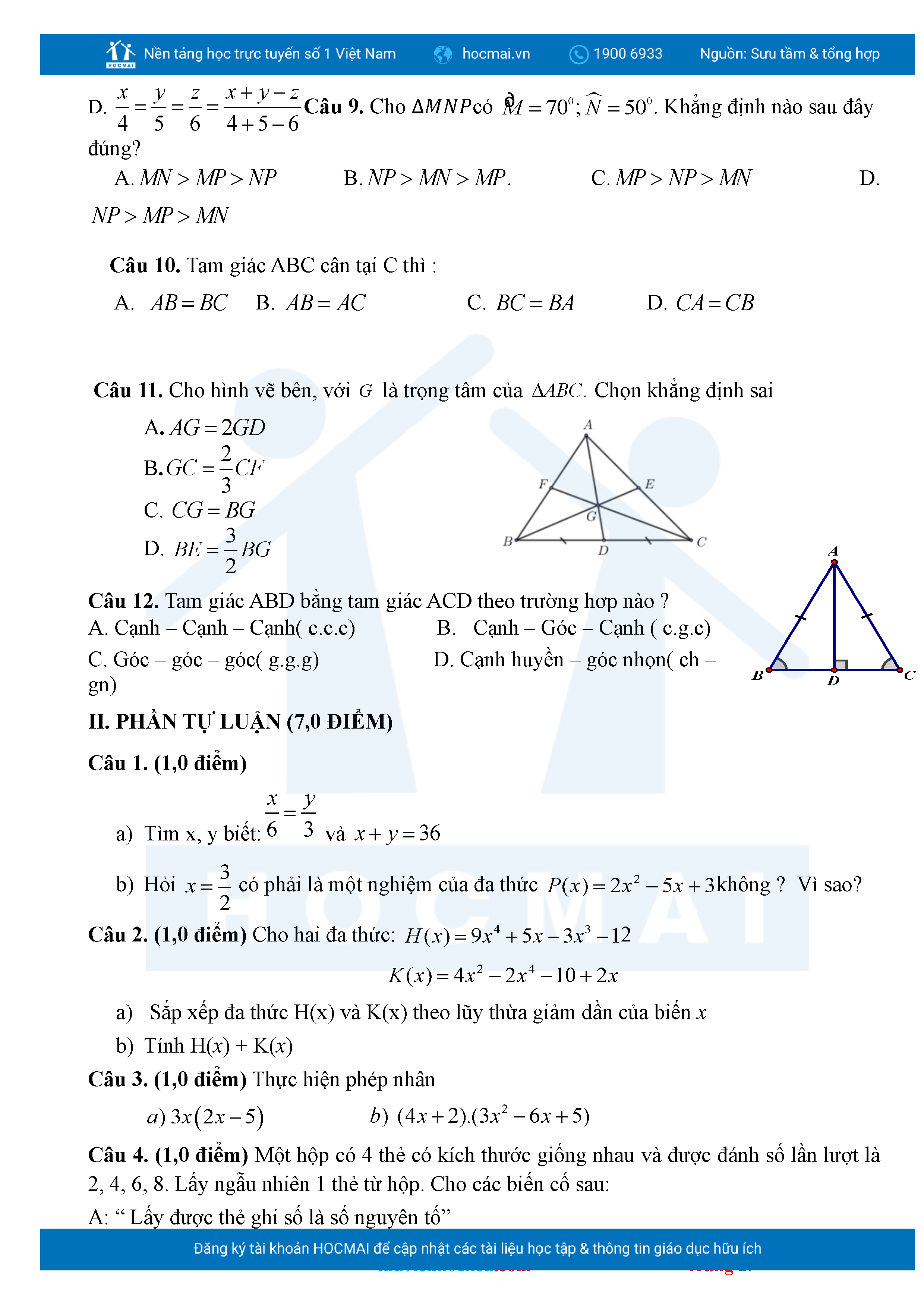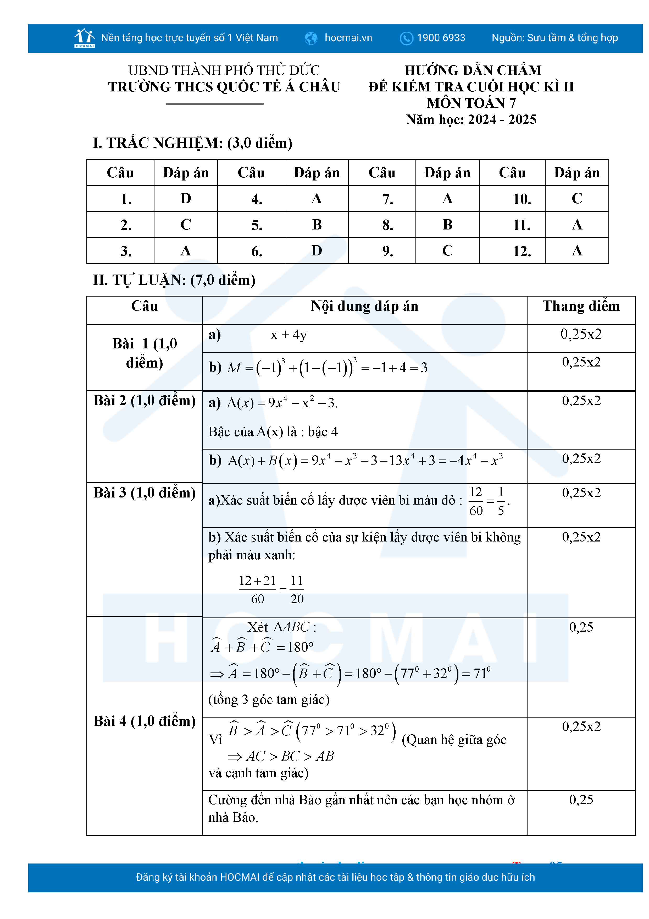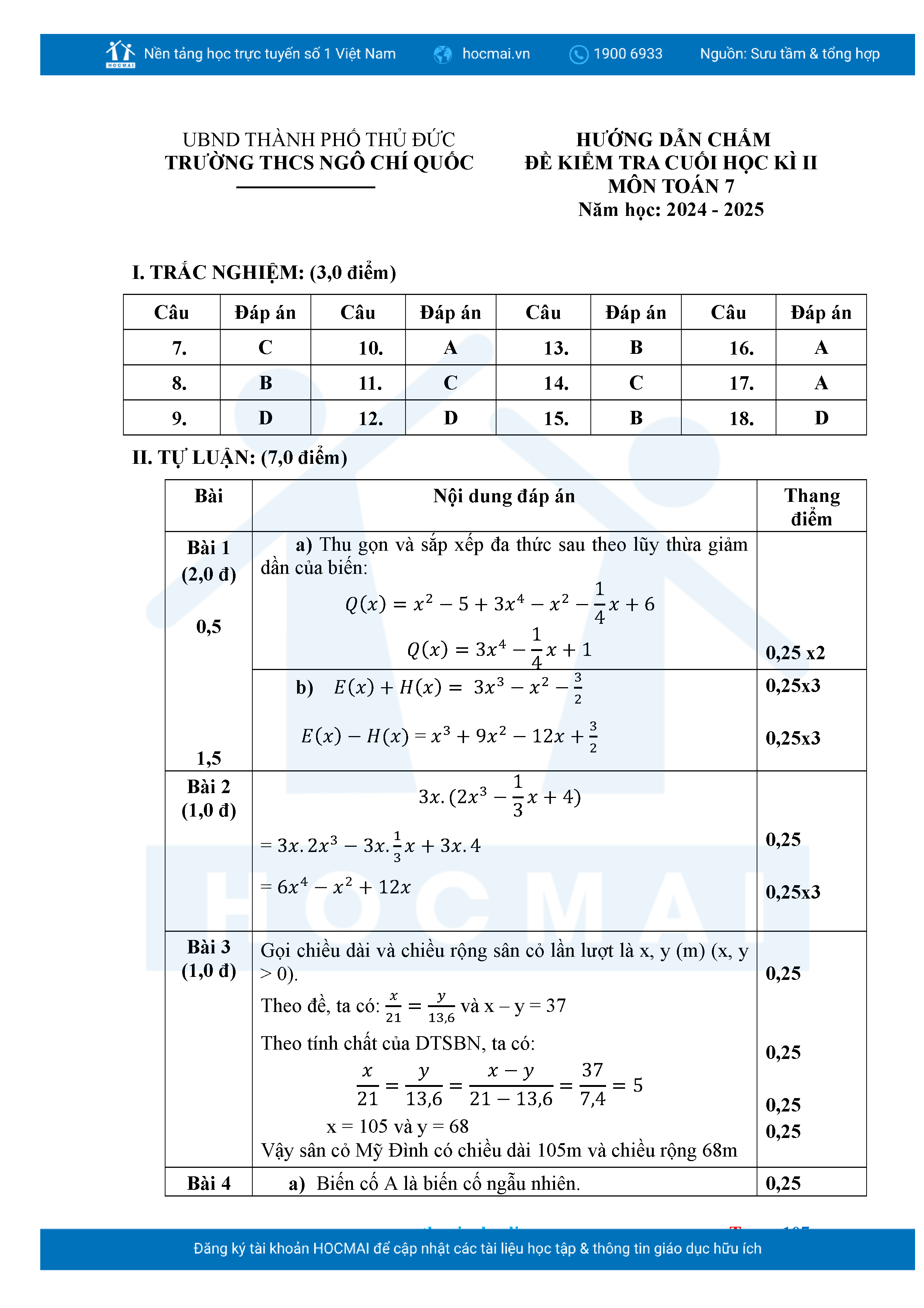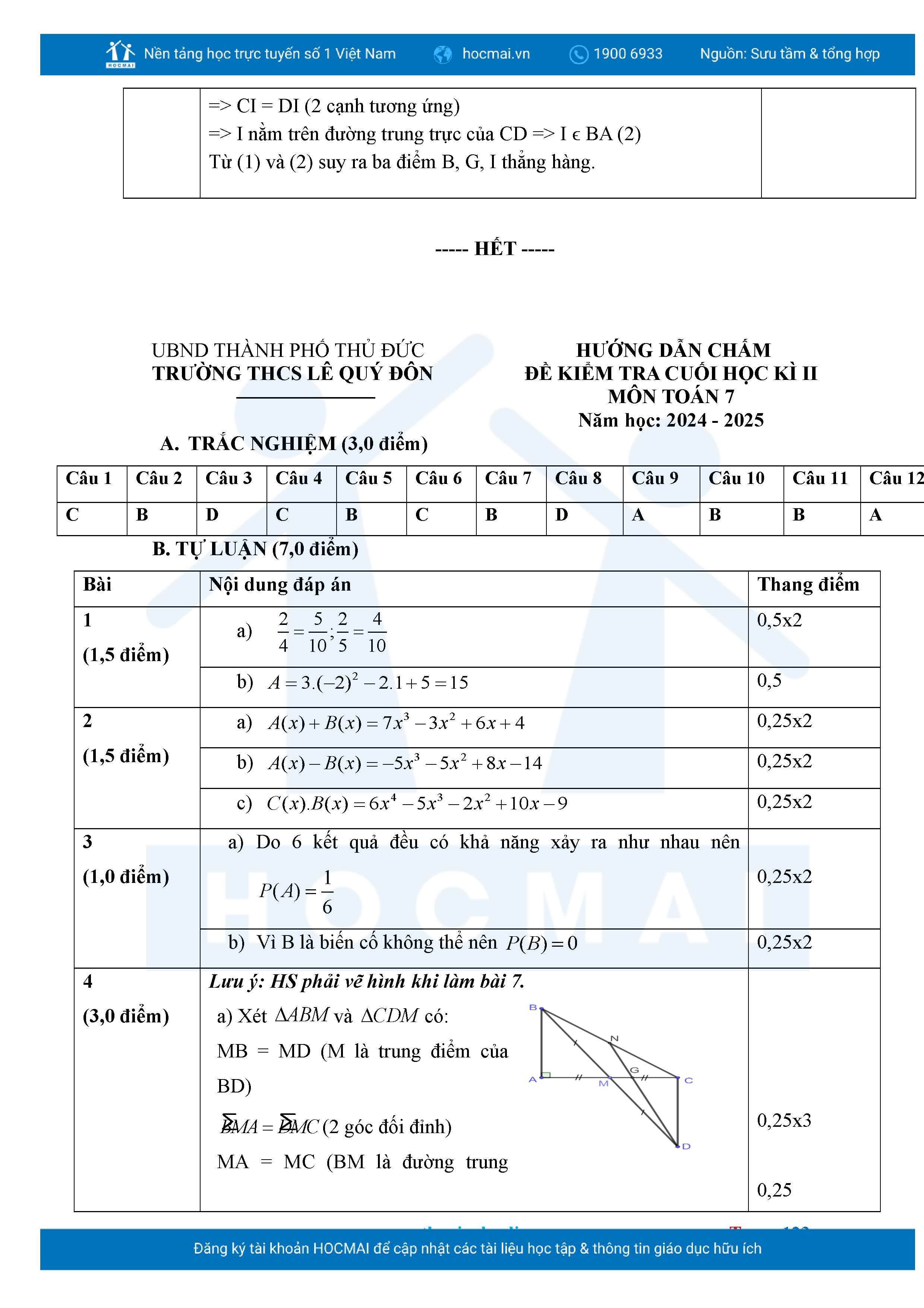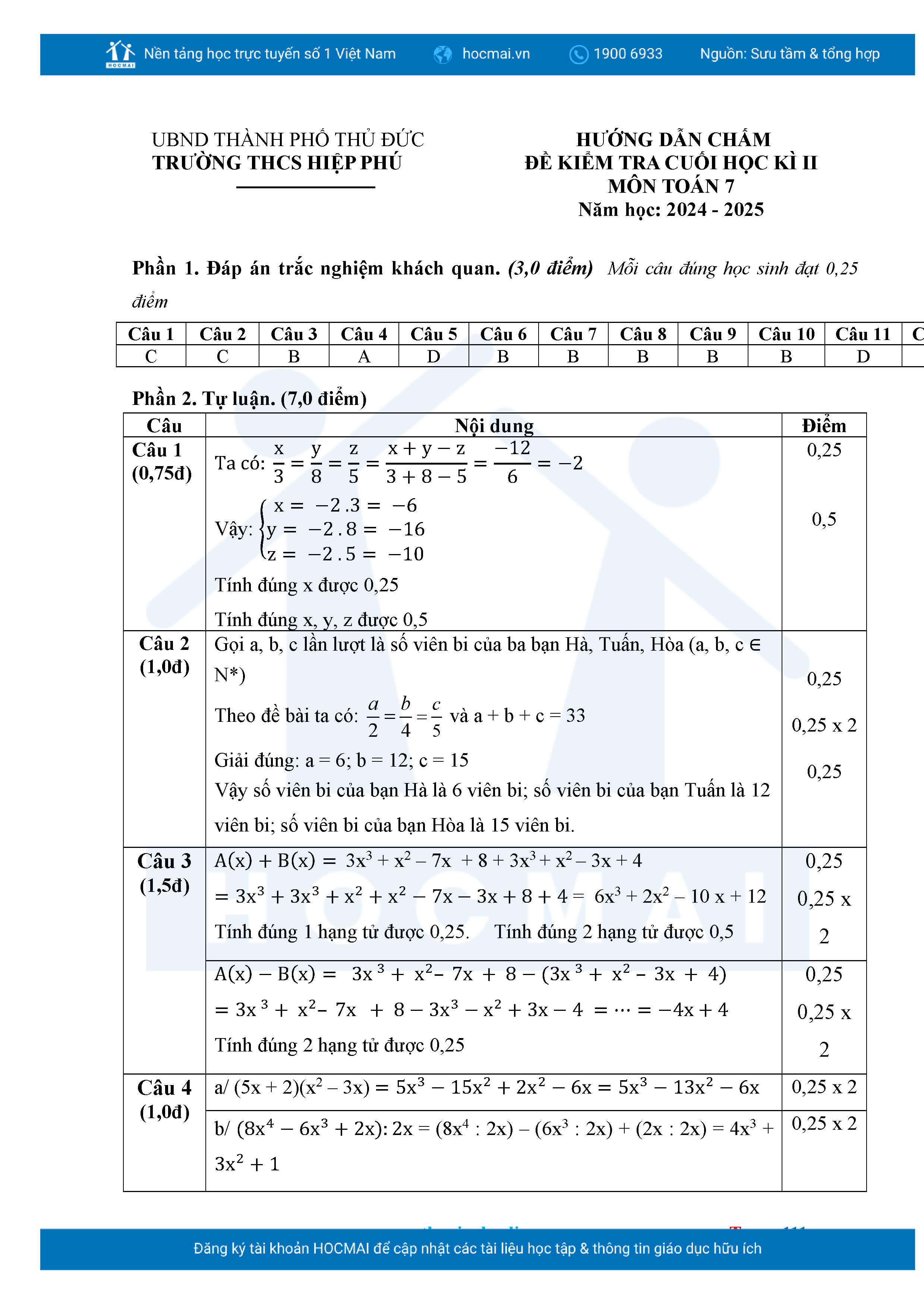 Bộ đề ôn thi môn Toán 7 HKII từ các trường ở TP Thủ Đức thuộc TPHCM kèm đáp án chi tiết.