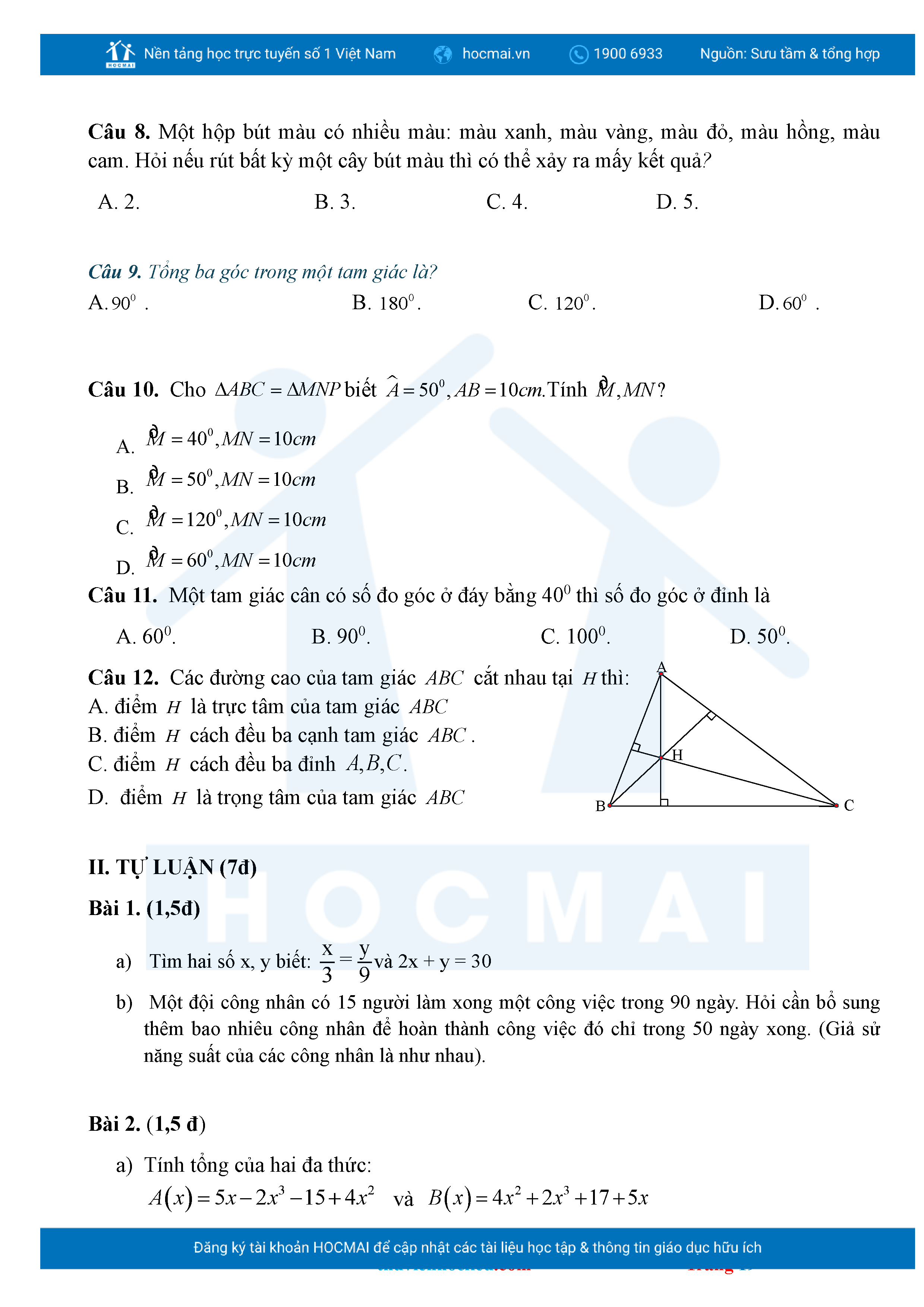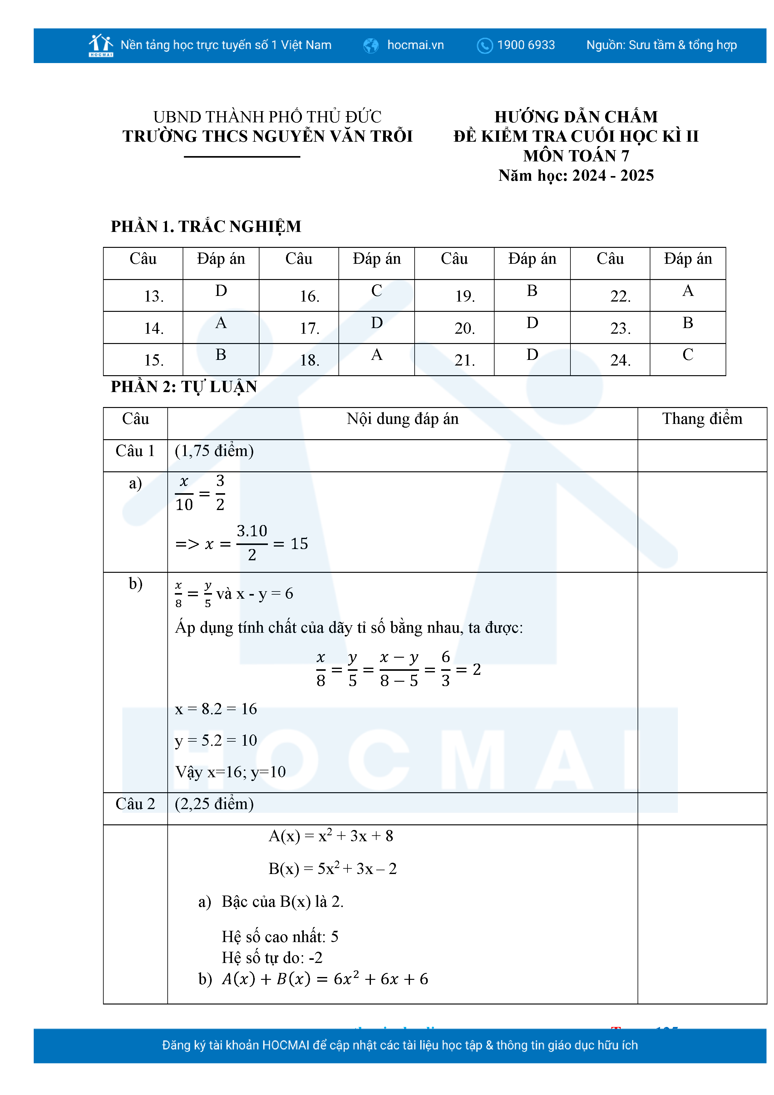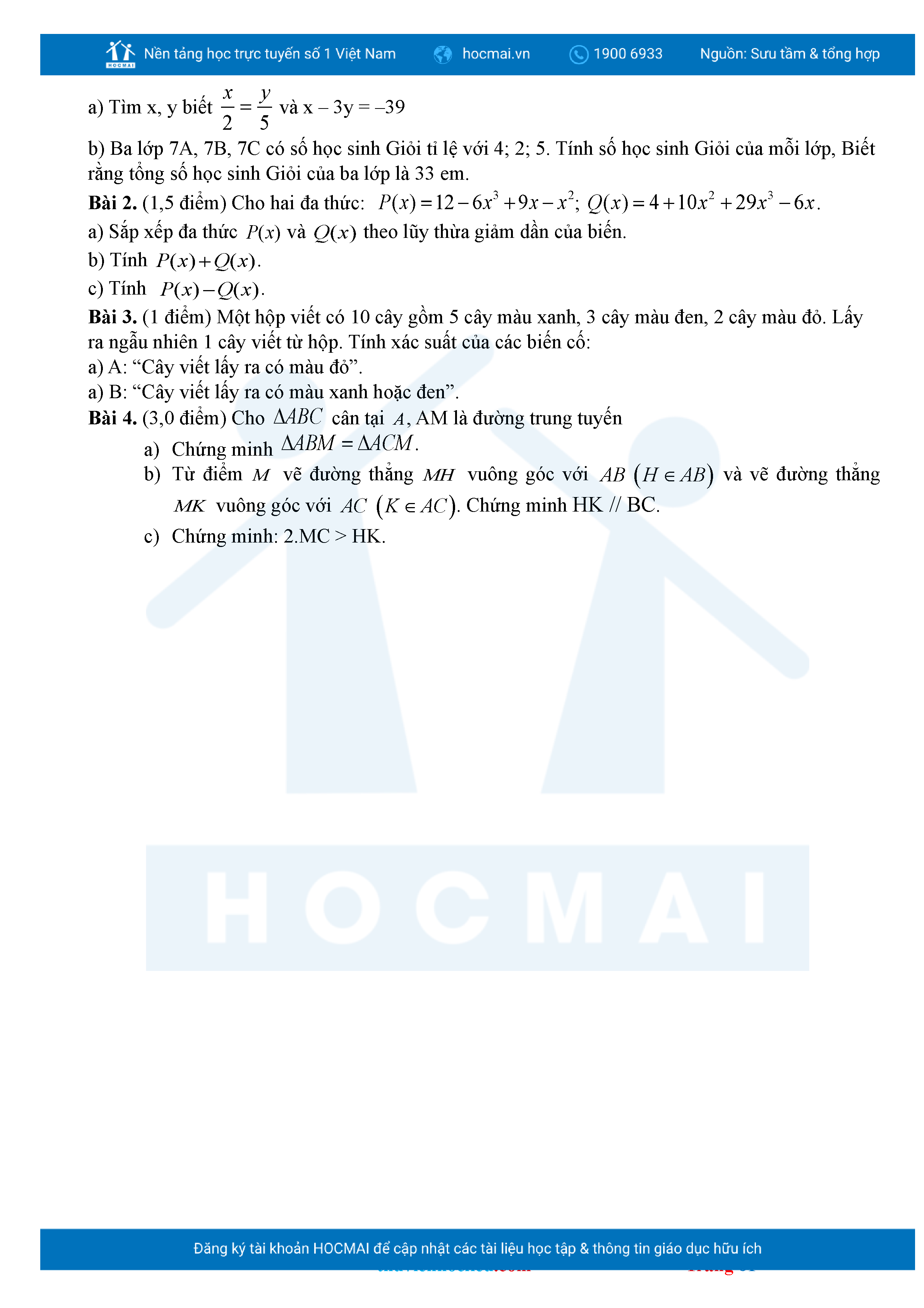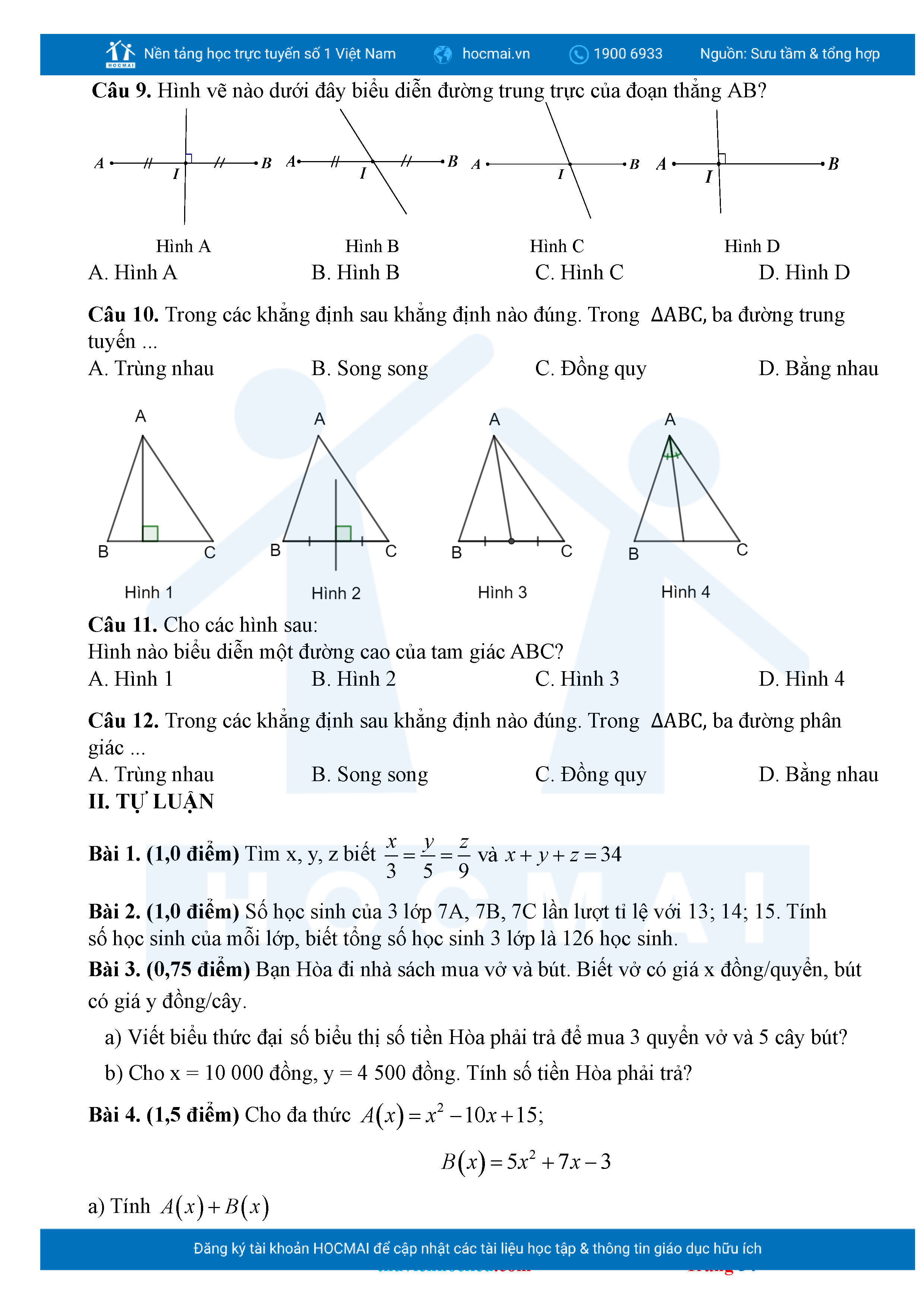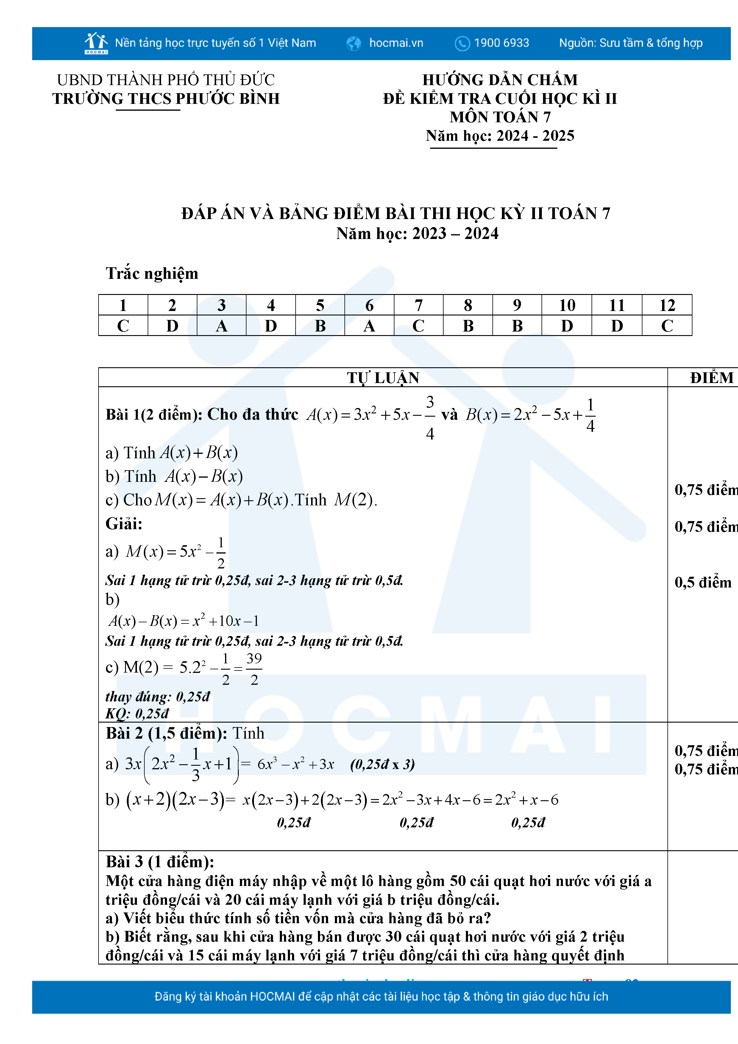 Bộ đề ôn thi môn Toán 7 HKII từ các trường ở TP Thủ Đức thuộc TPHCM kèm đáp án chi tiết.