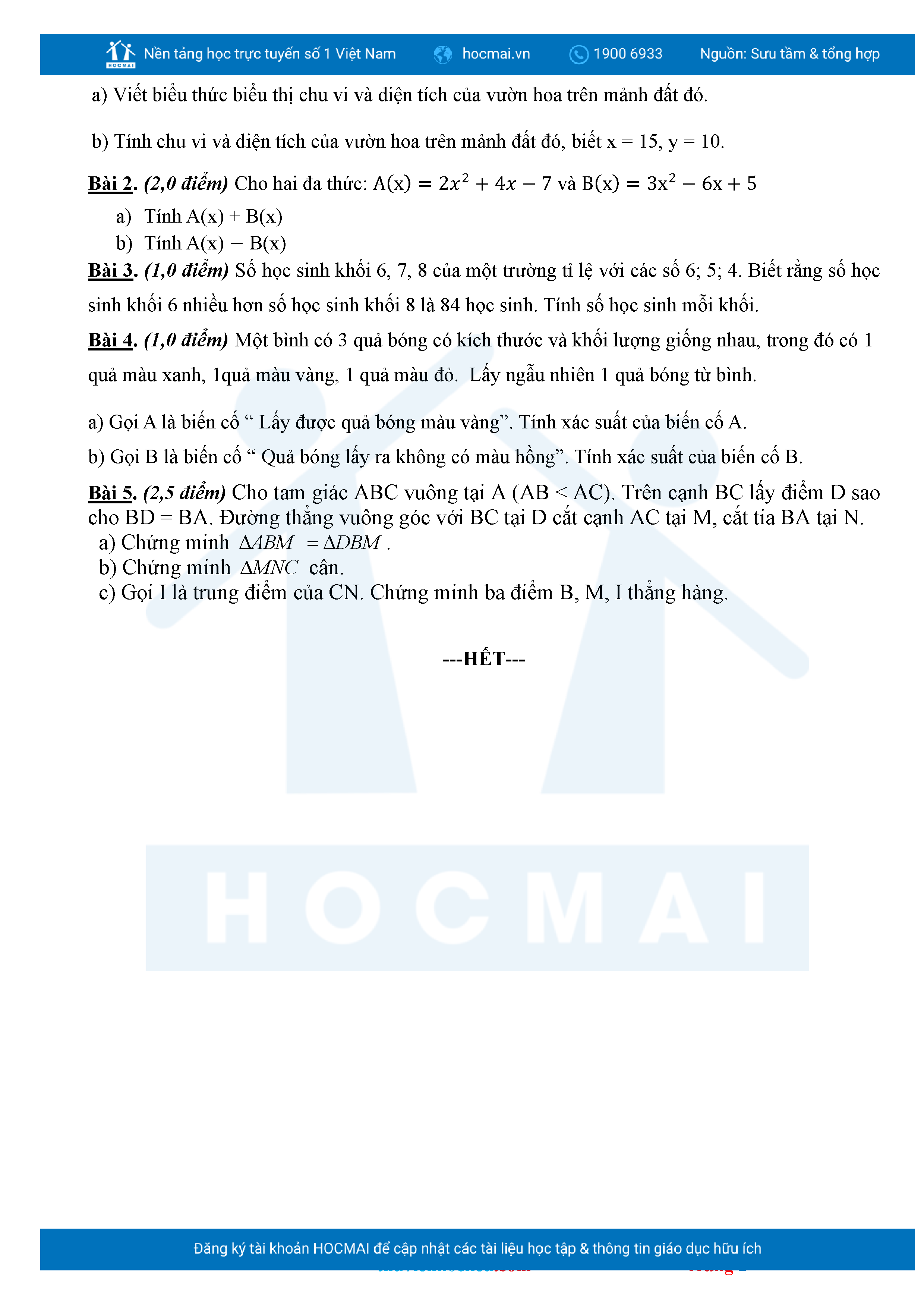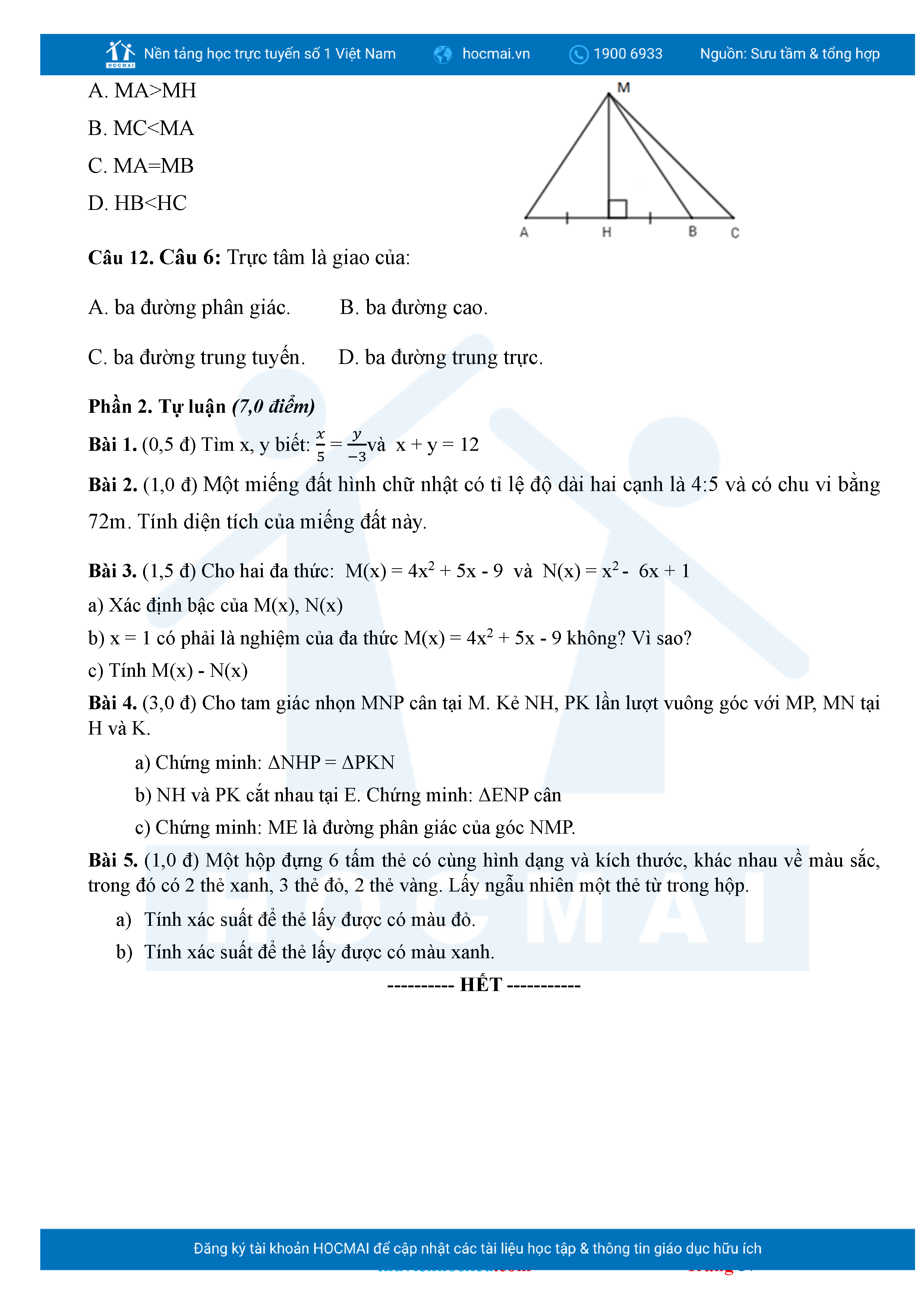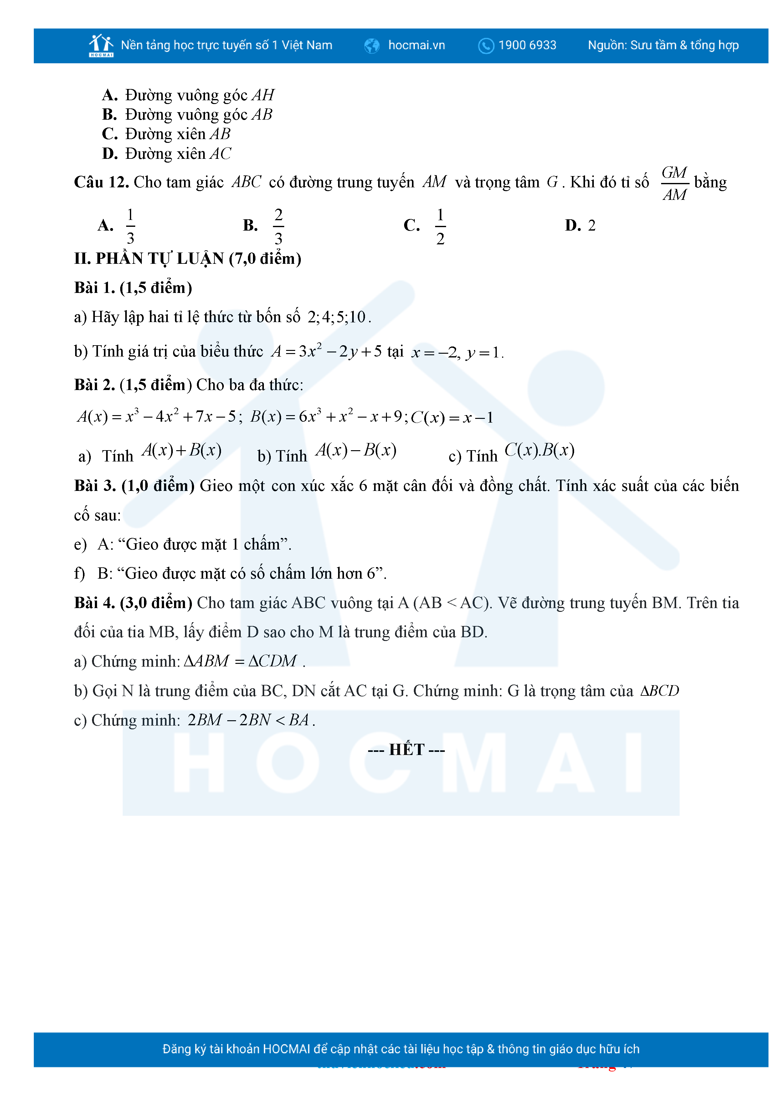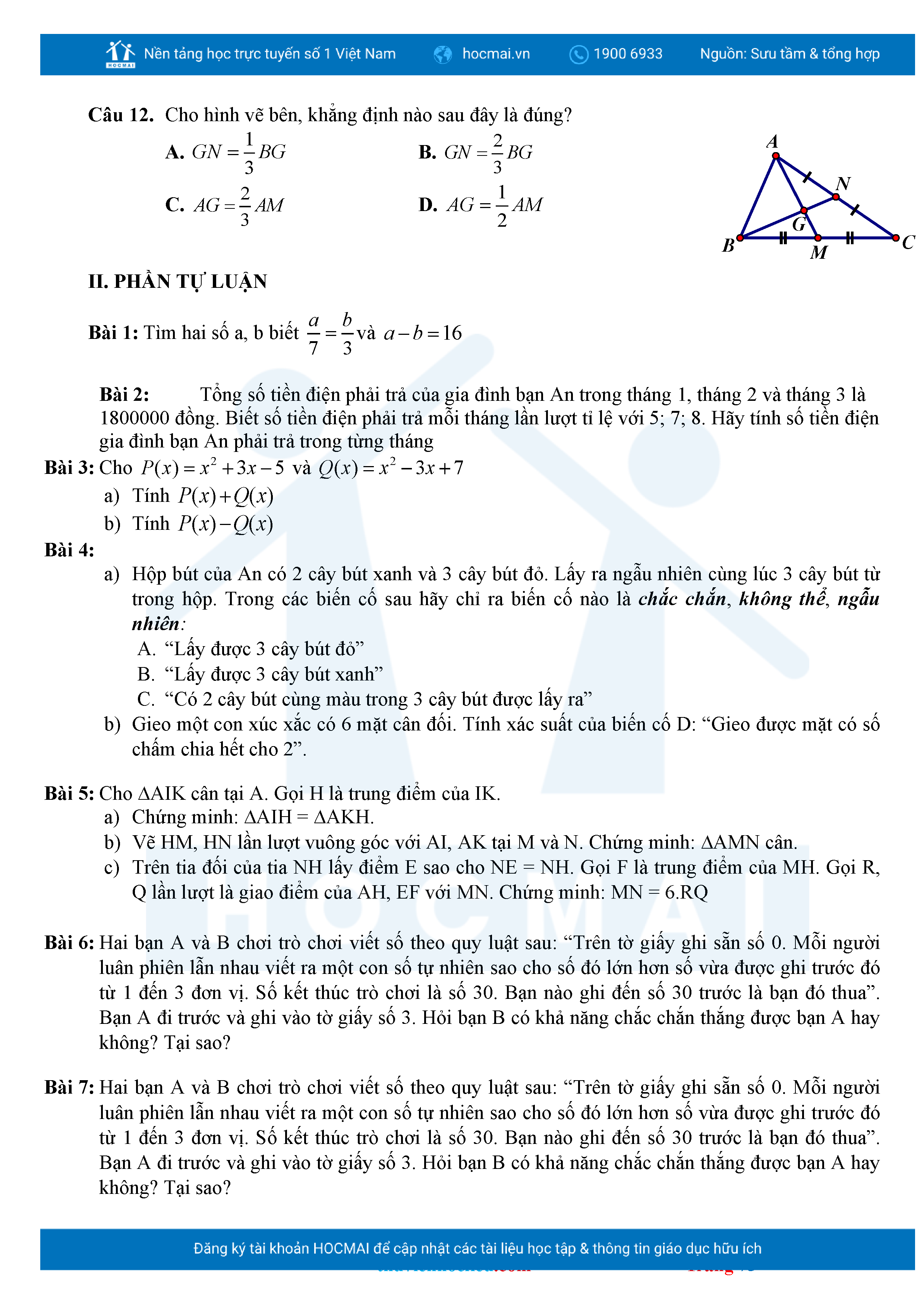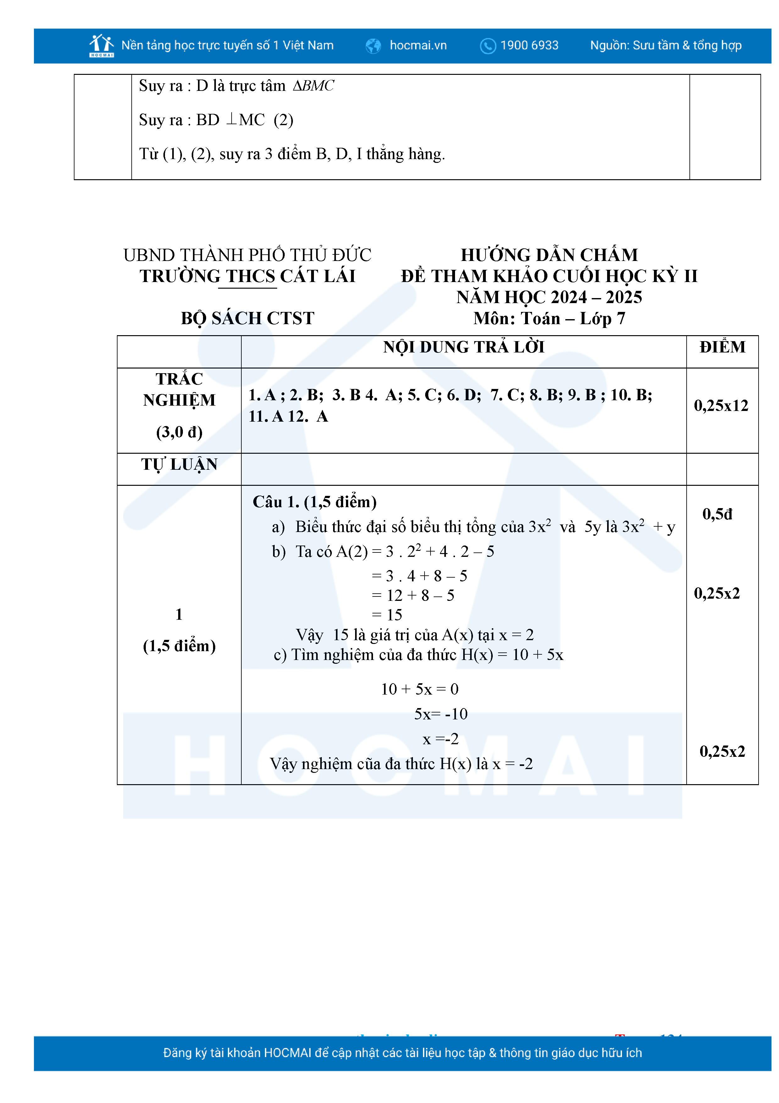 Bộ đề ôn thi môn Toán 7 HKII từ các trường ở TP Thủ Đức thuộc TPHCM kèm đáp án chi tiết.