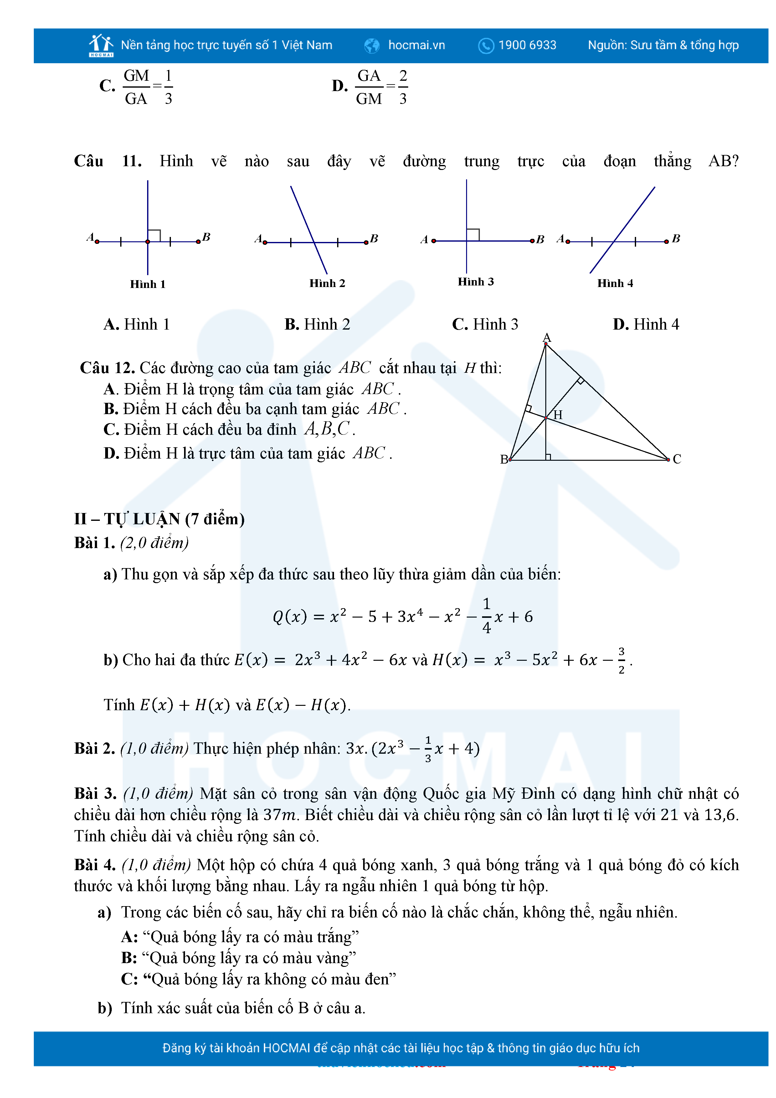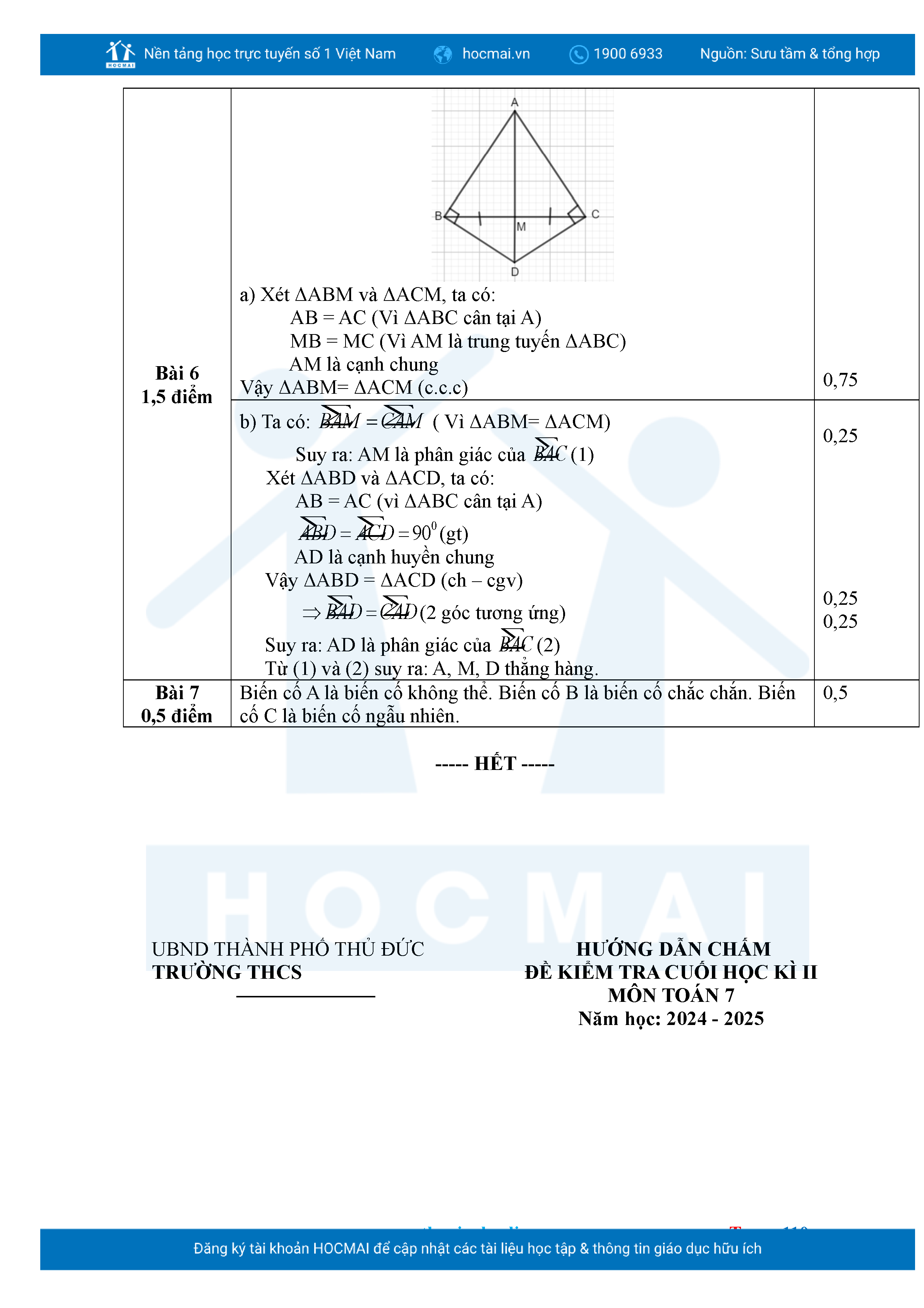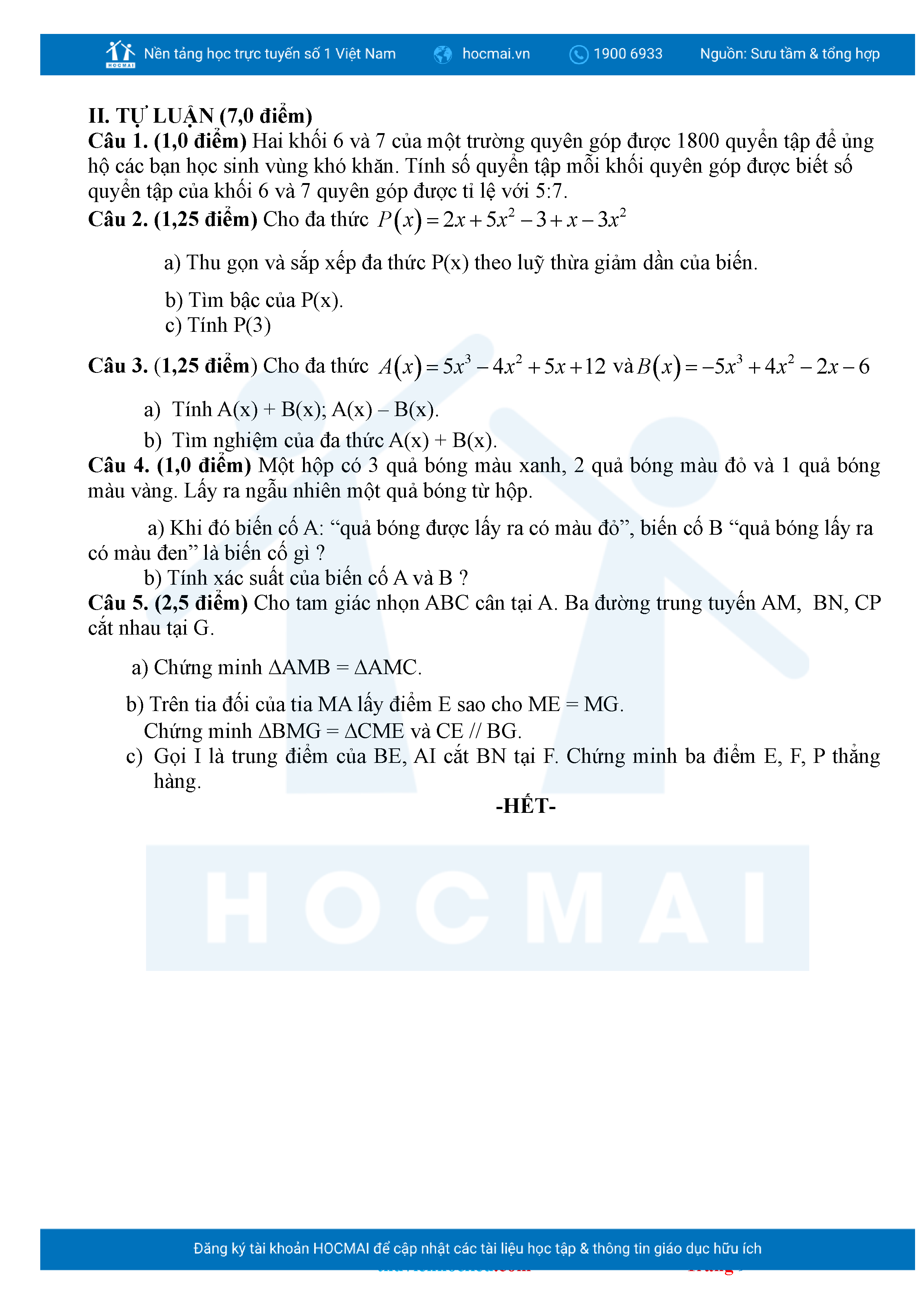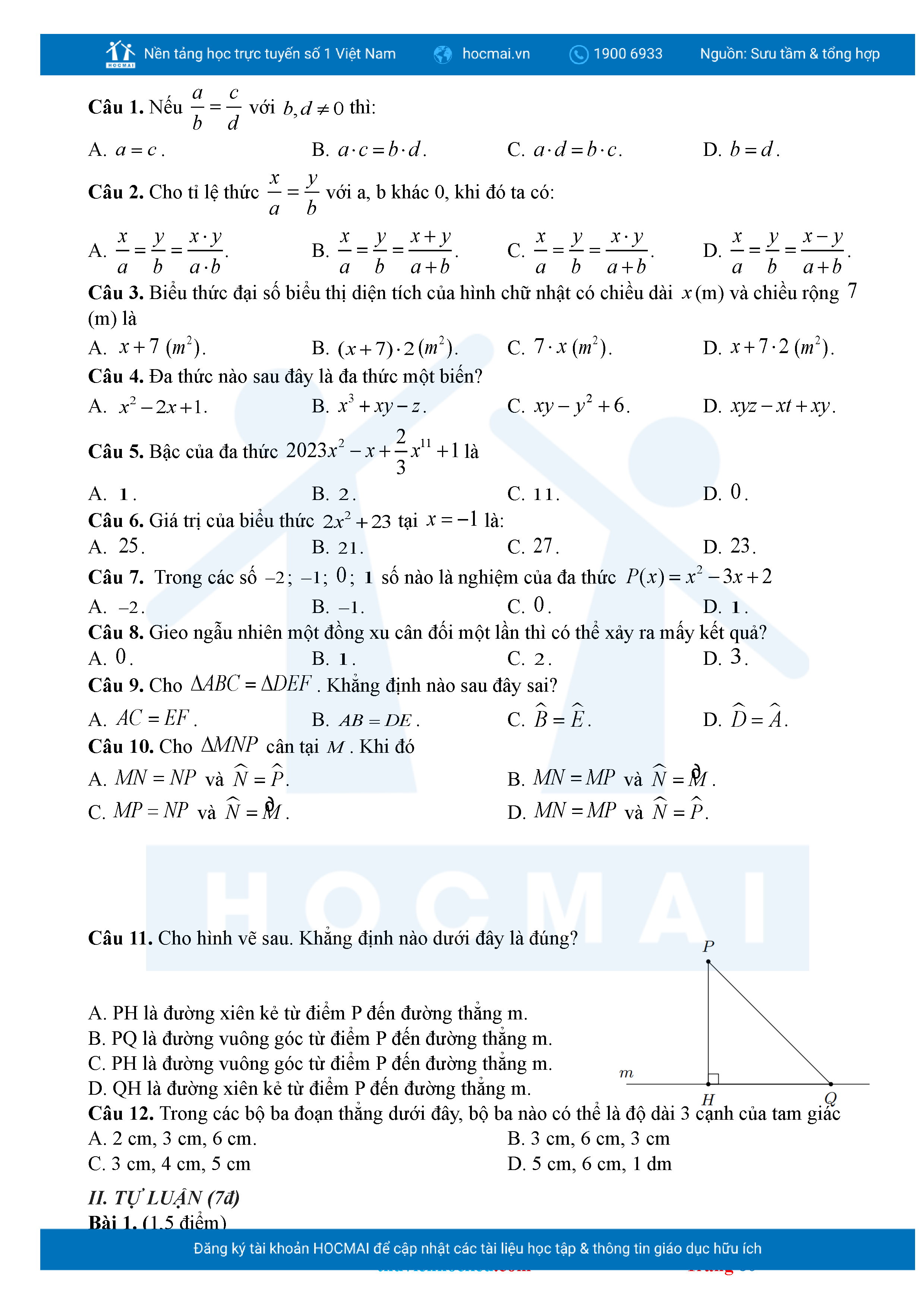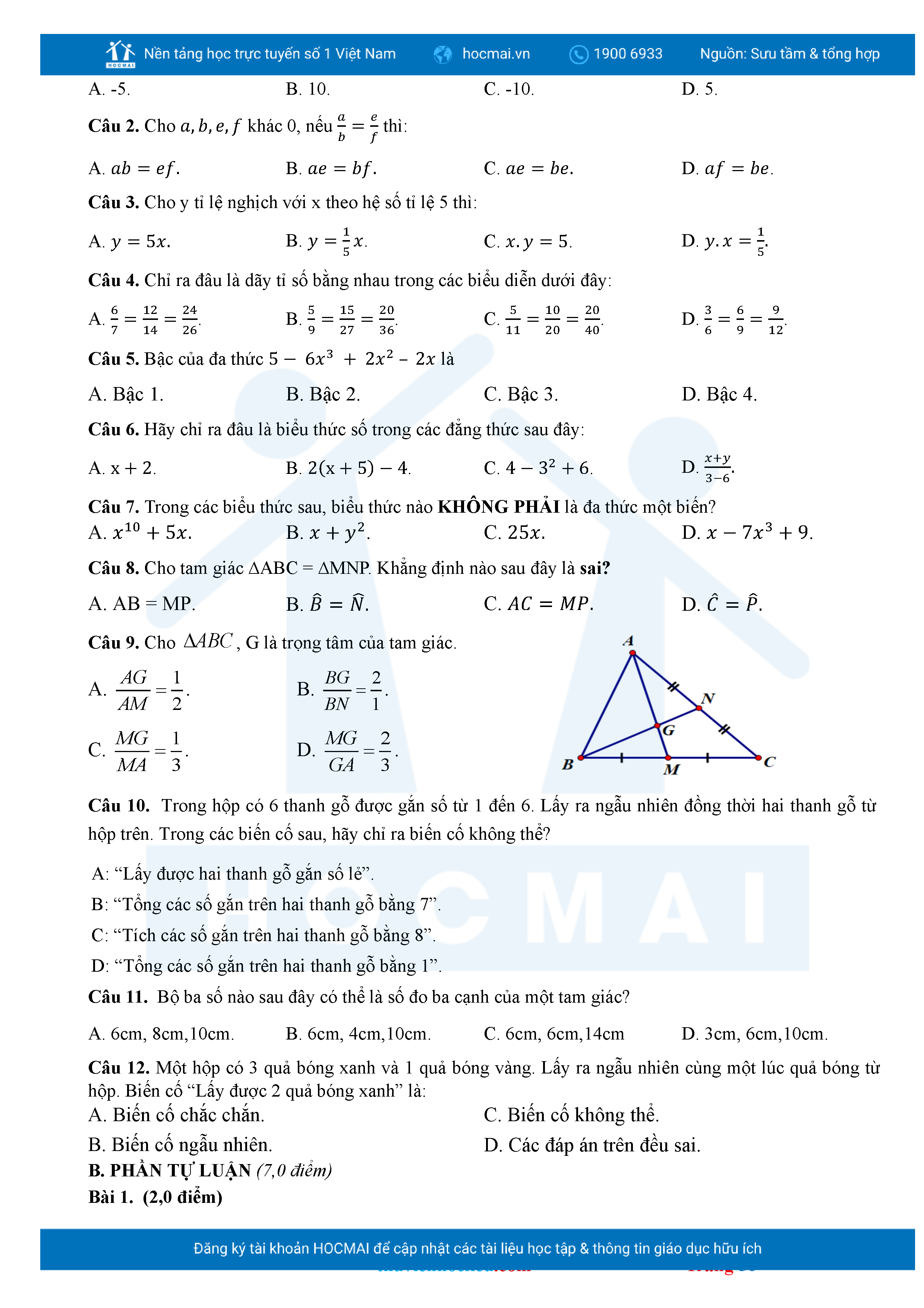 Bộ đề ôn thi môn Toán 7 HKII từ các trường ở TP Thủ Đức thuộc TPHCM kèm đáp án chi tiết.