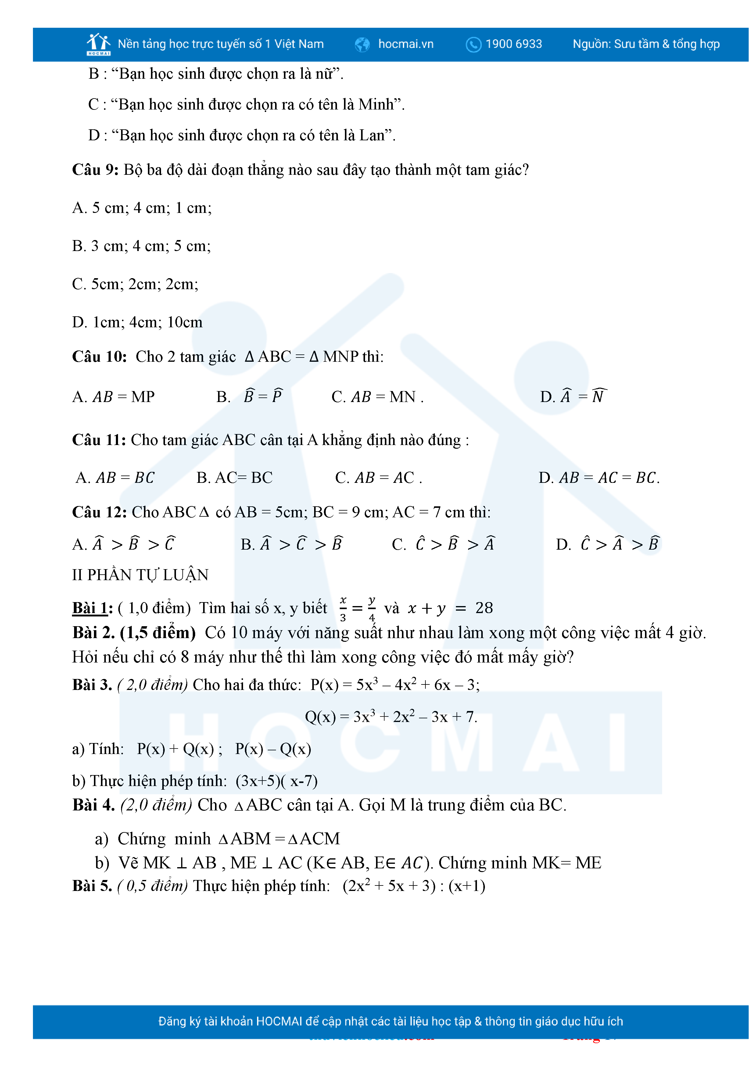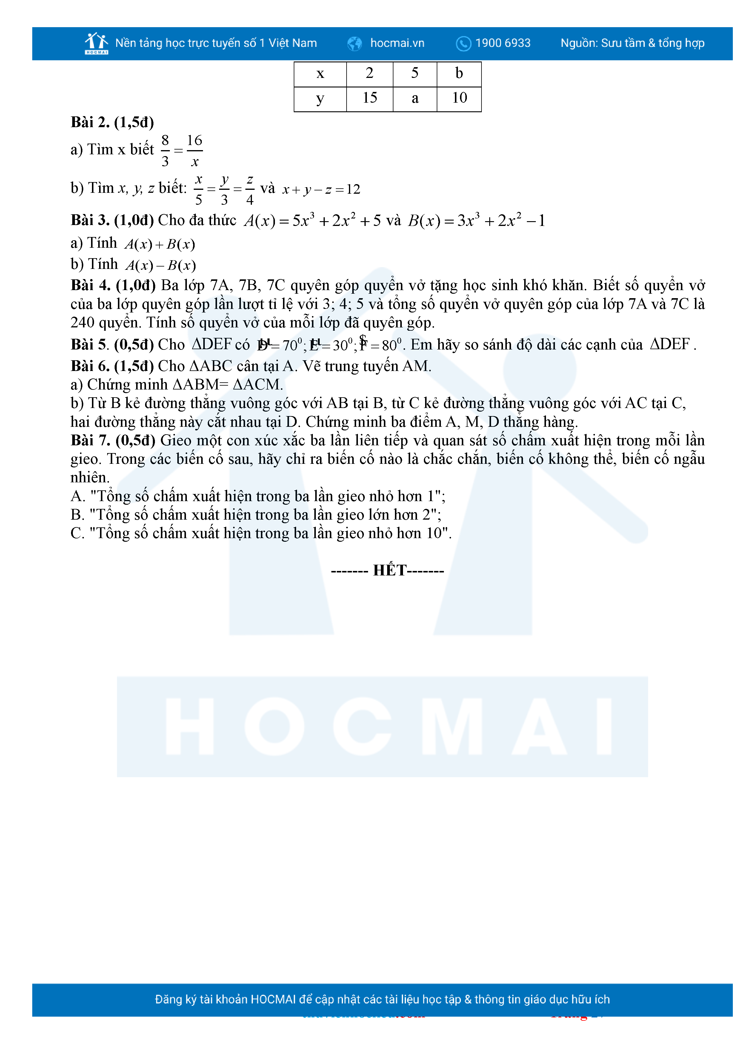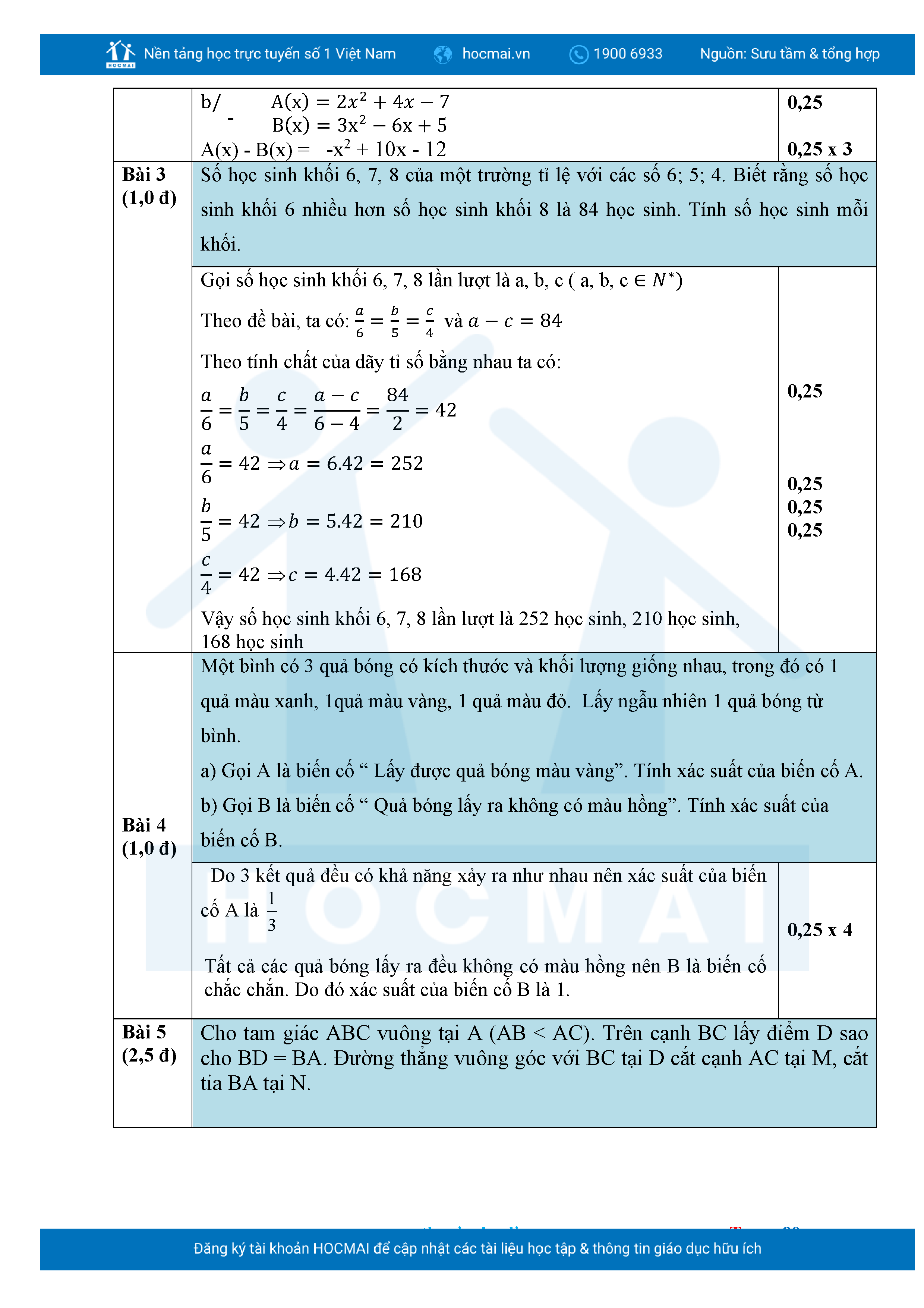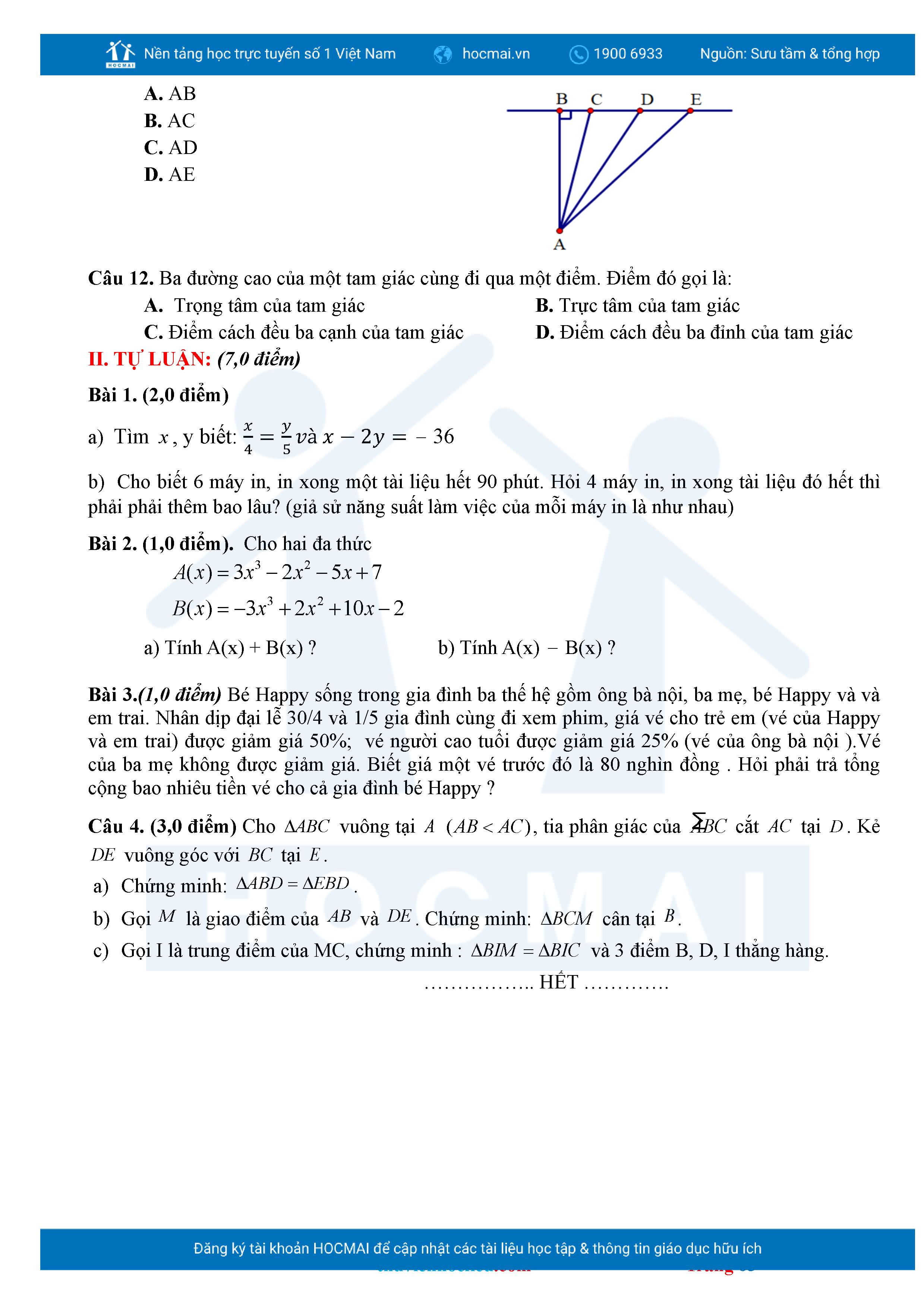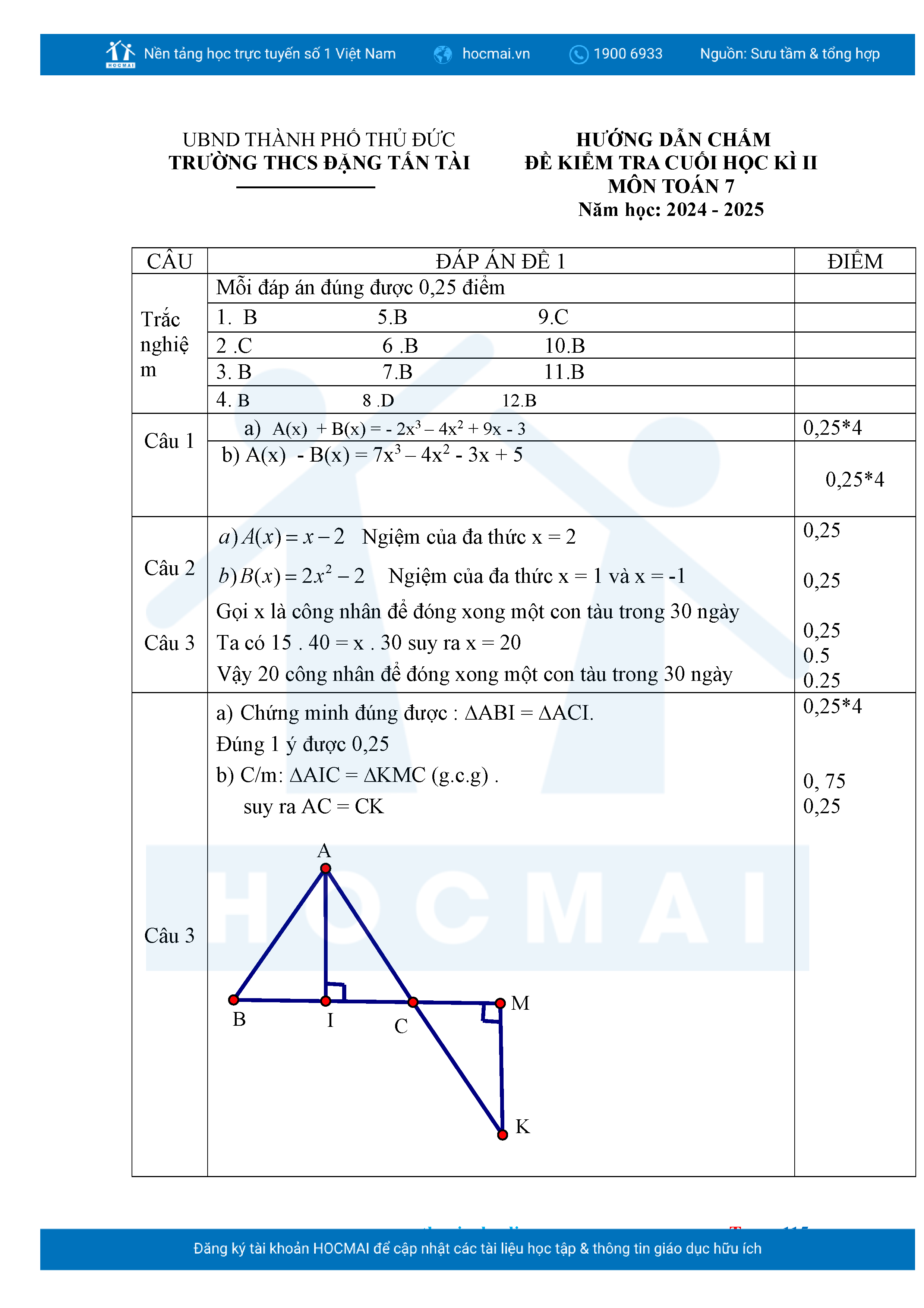 Bộ đề ôn thi môn Toán 7 HKII từ các trường ở TP Thủ Đức thuộc TPHCM kèm đáp án chi tiết.
