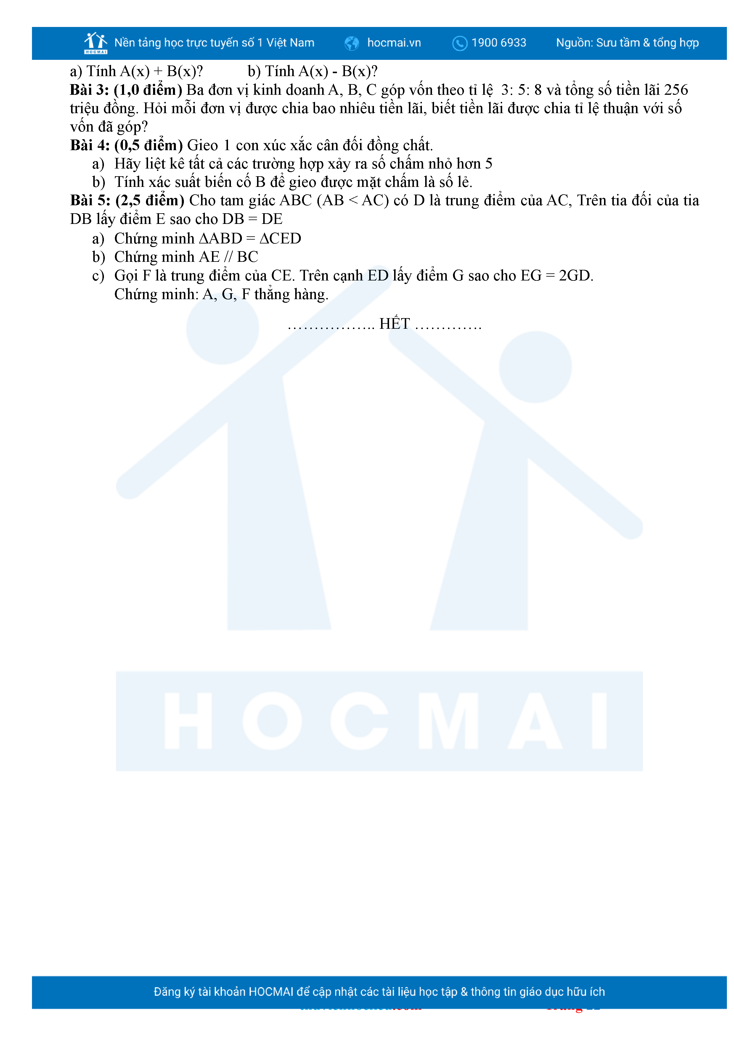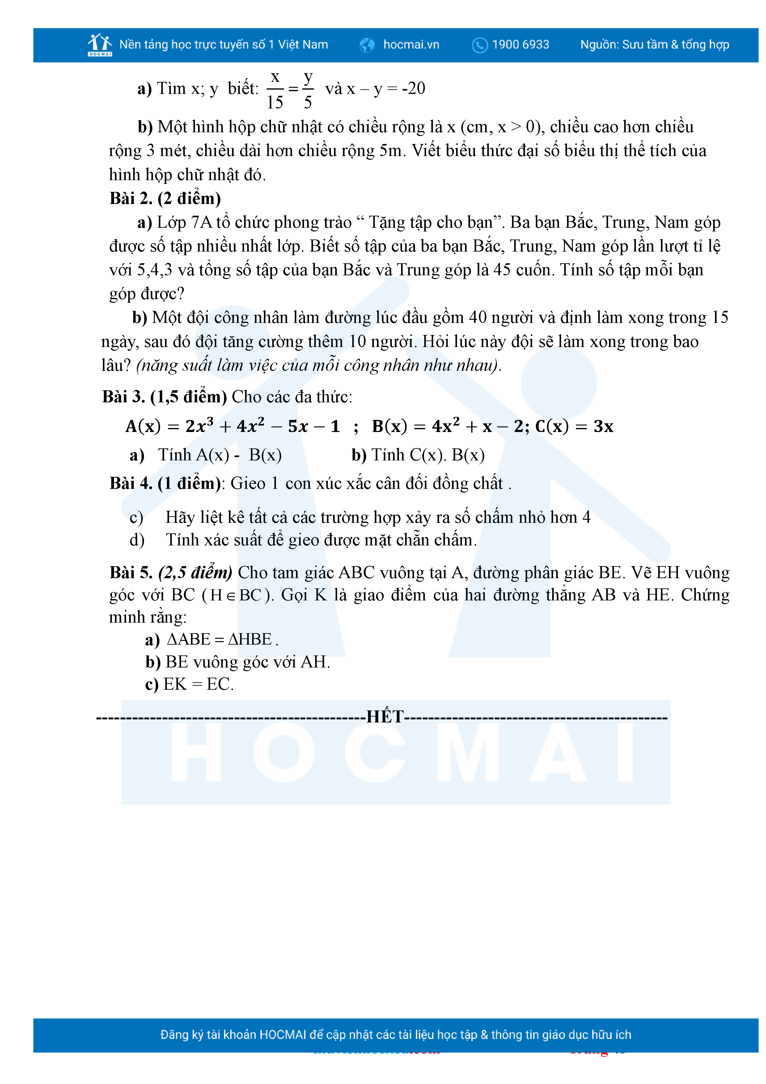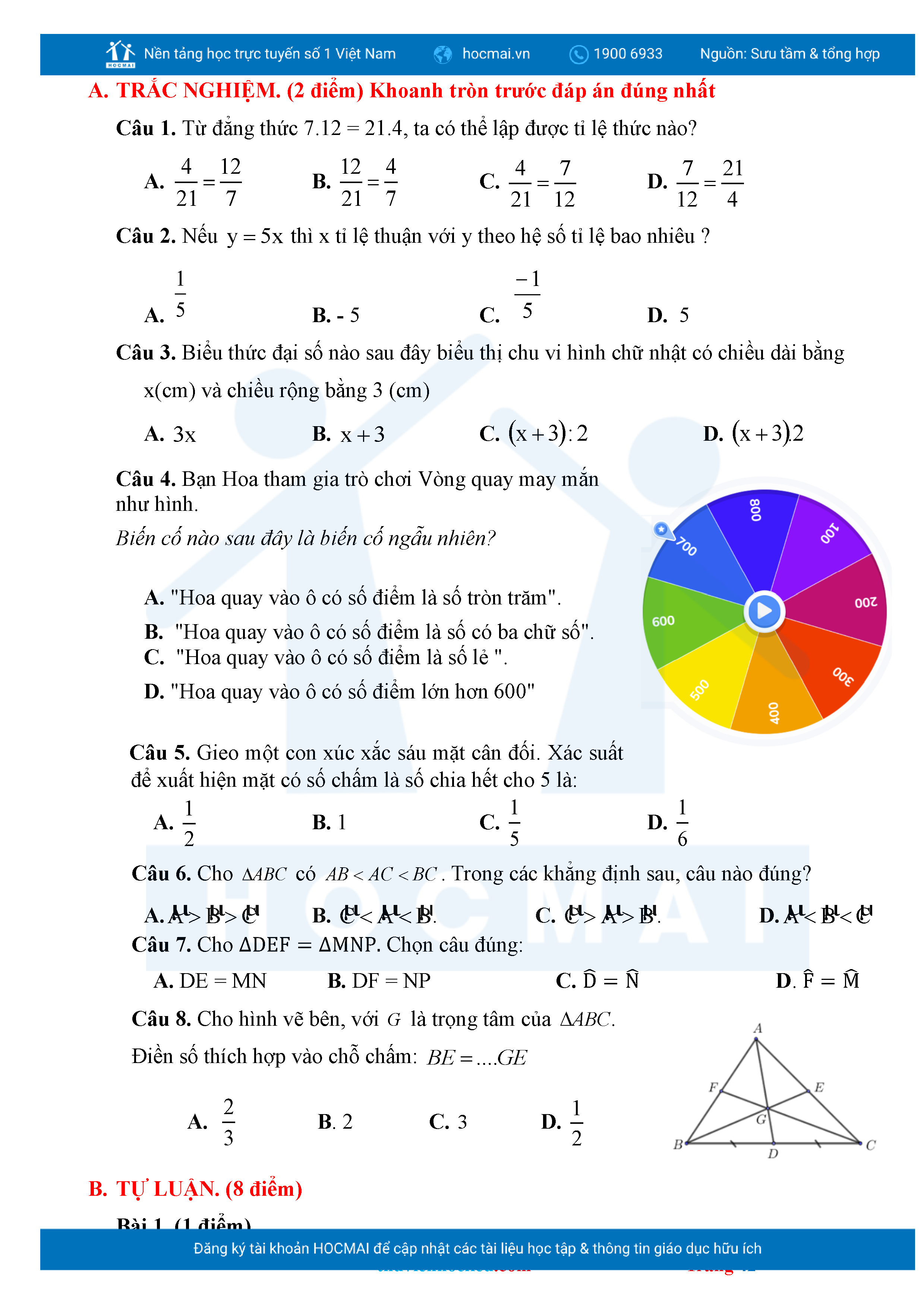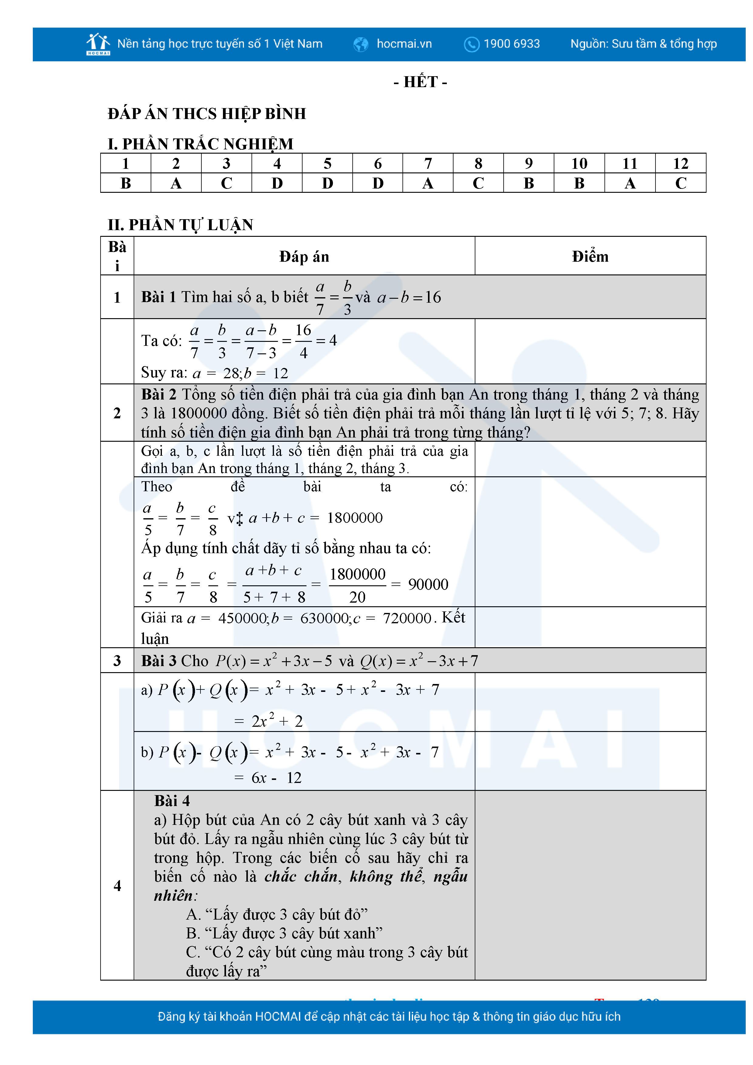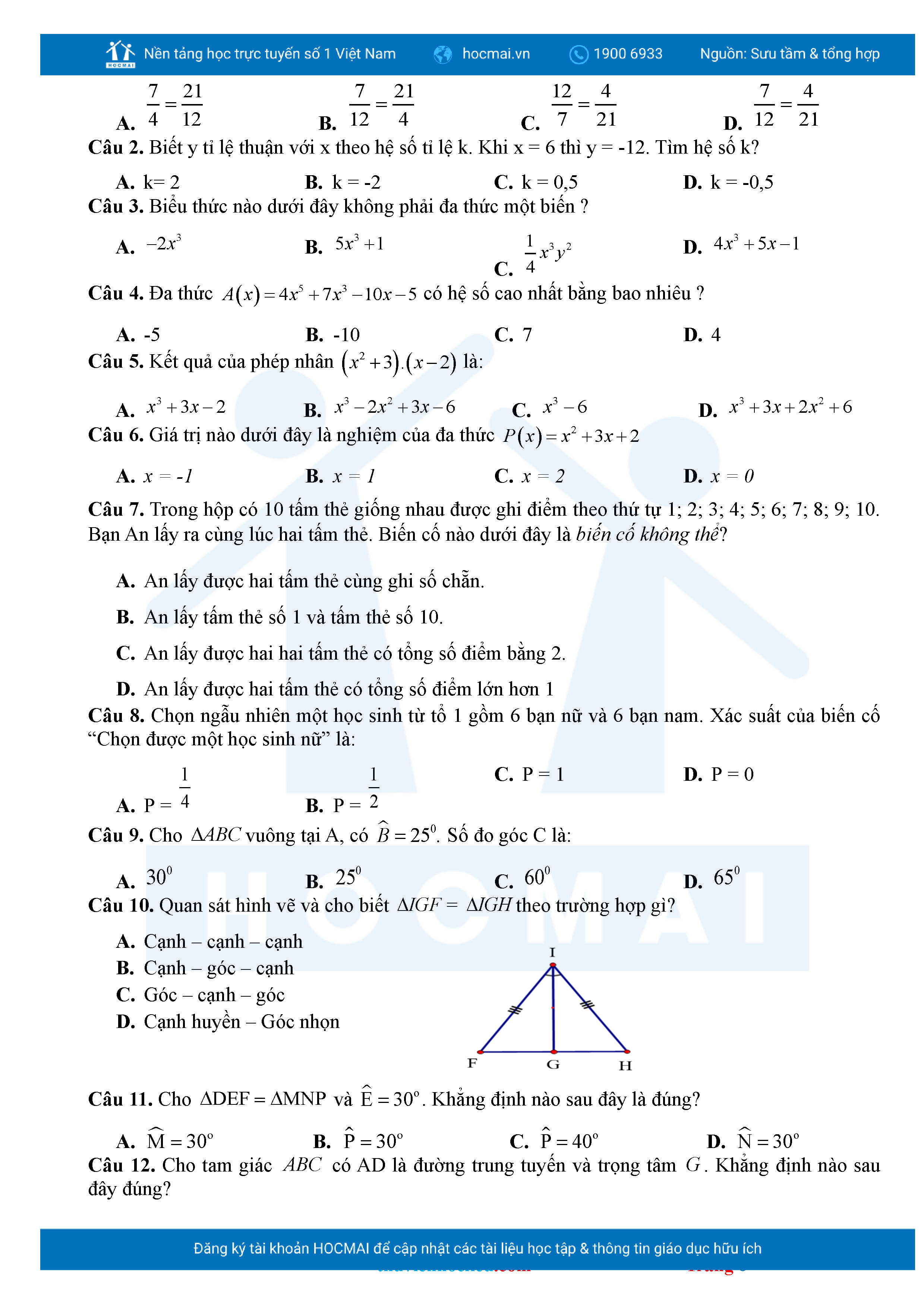 Bộ đề ôn thi môn Toán 7 HKII từ các trường ở TP Thủ Đức thuộc TPHCM kèm đáp án chi tiết.