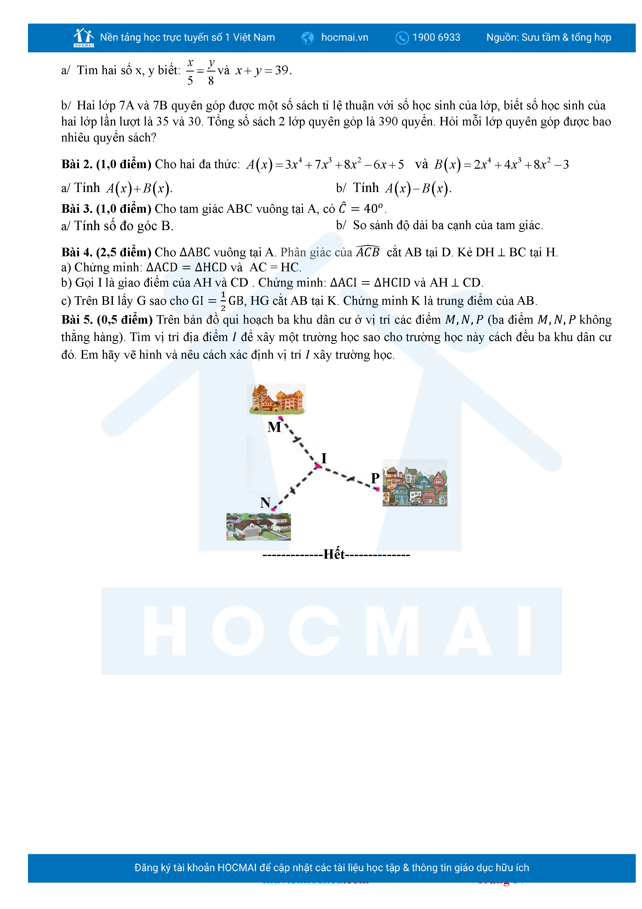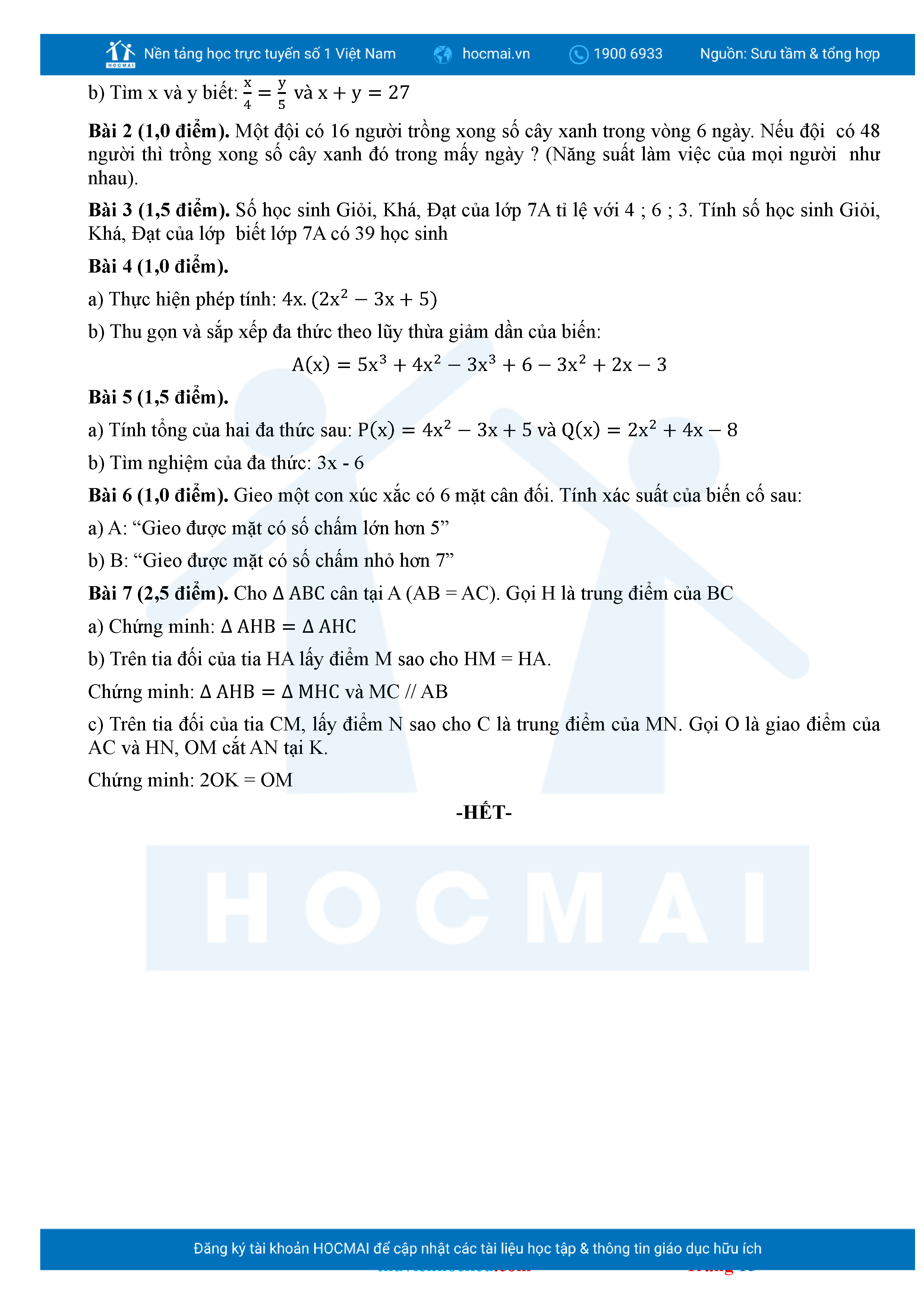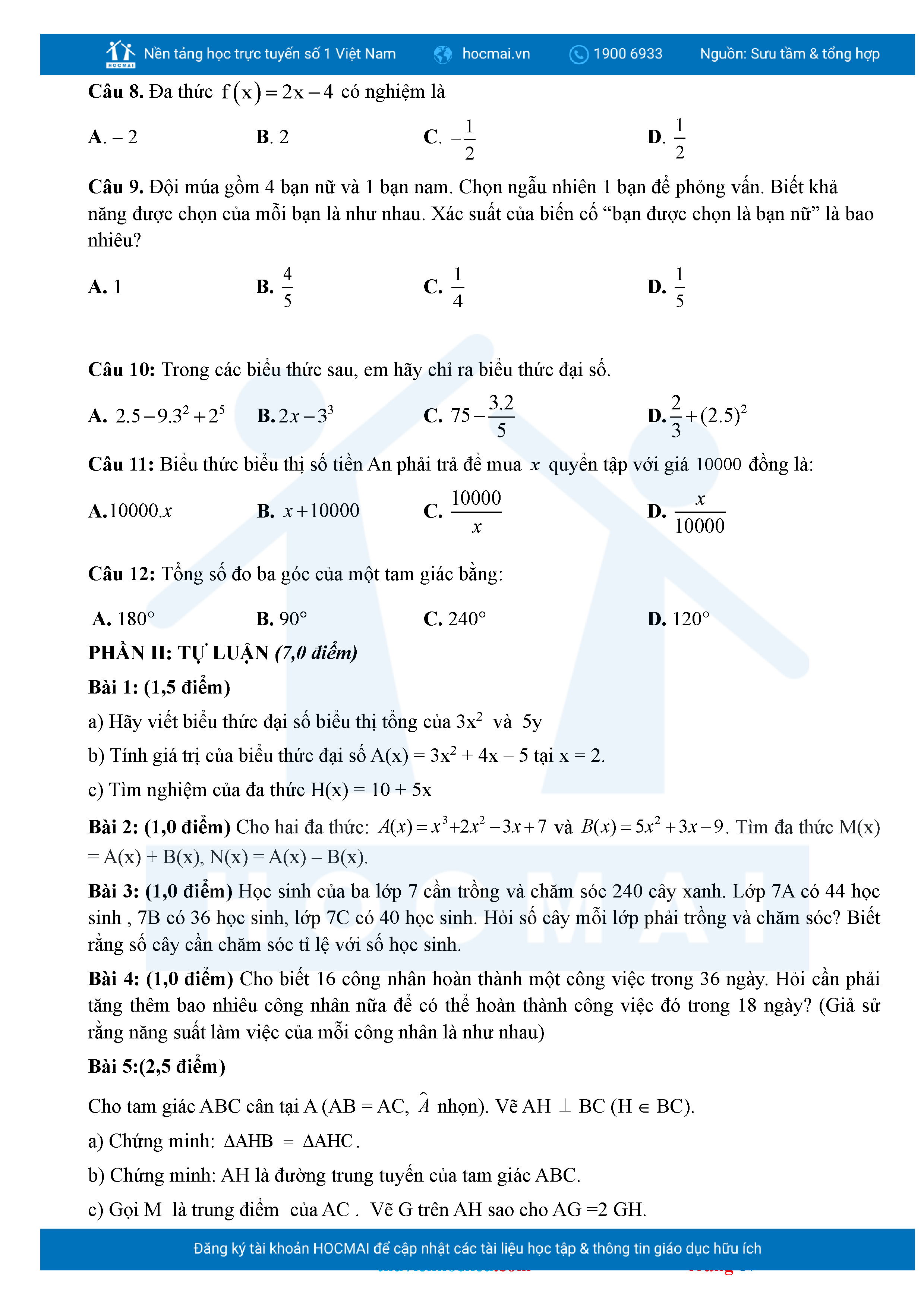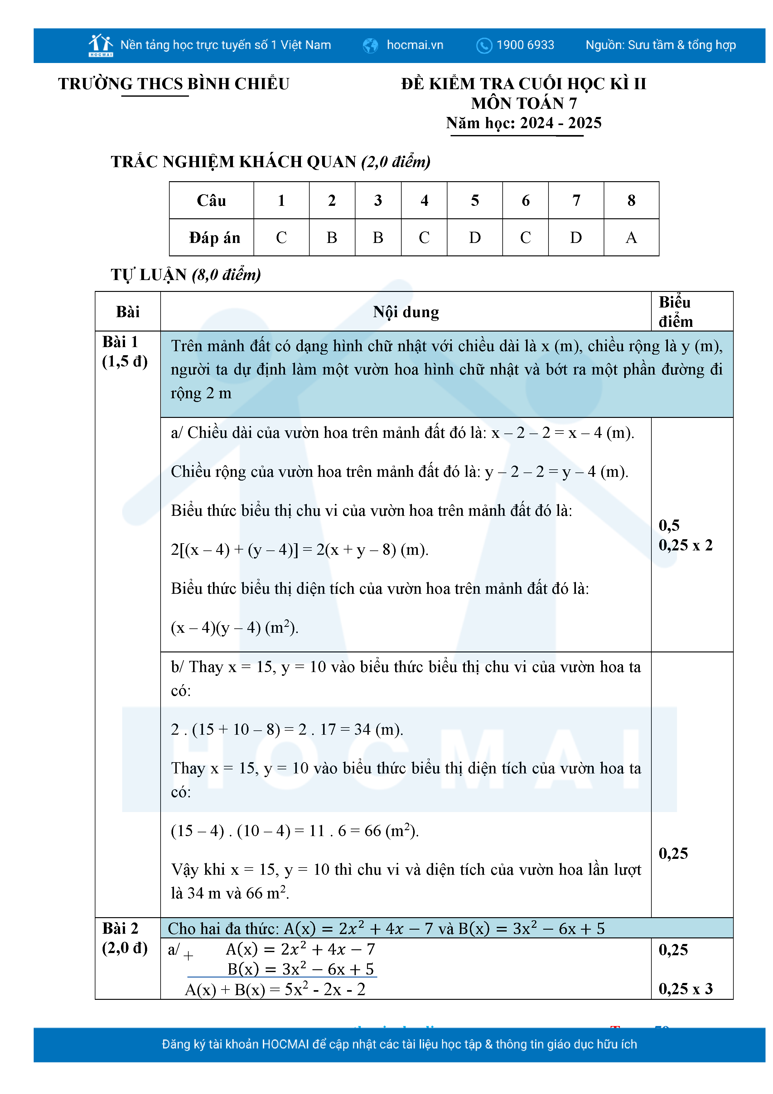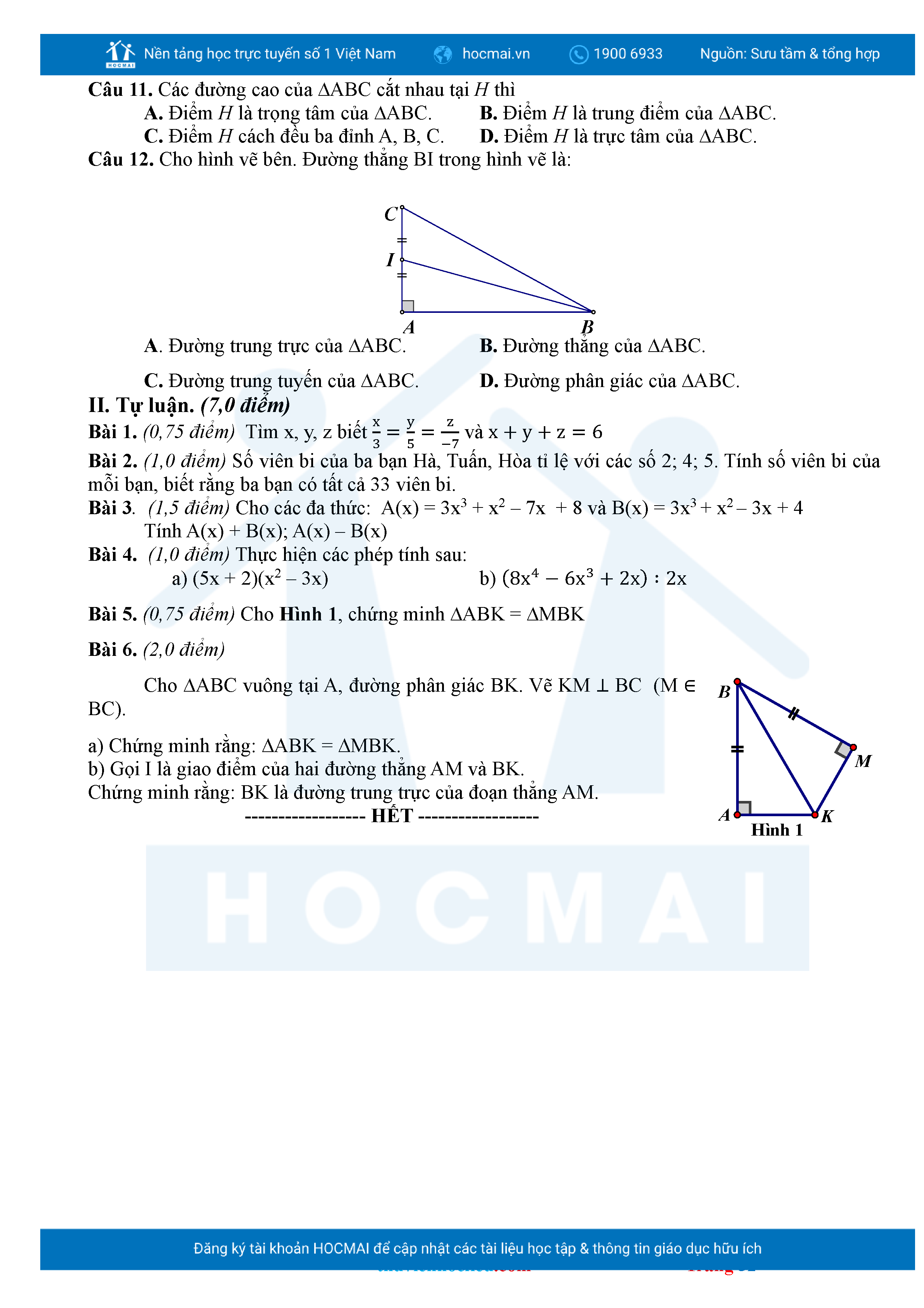 Bộ đề ôn thi môn Toán 7 HKII từ các trường ở TP Thủ Đức thuộc TPHCM kèm đáp án chi tiết.