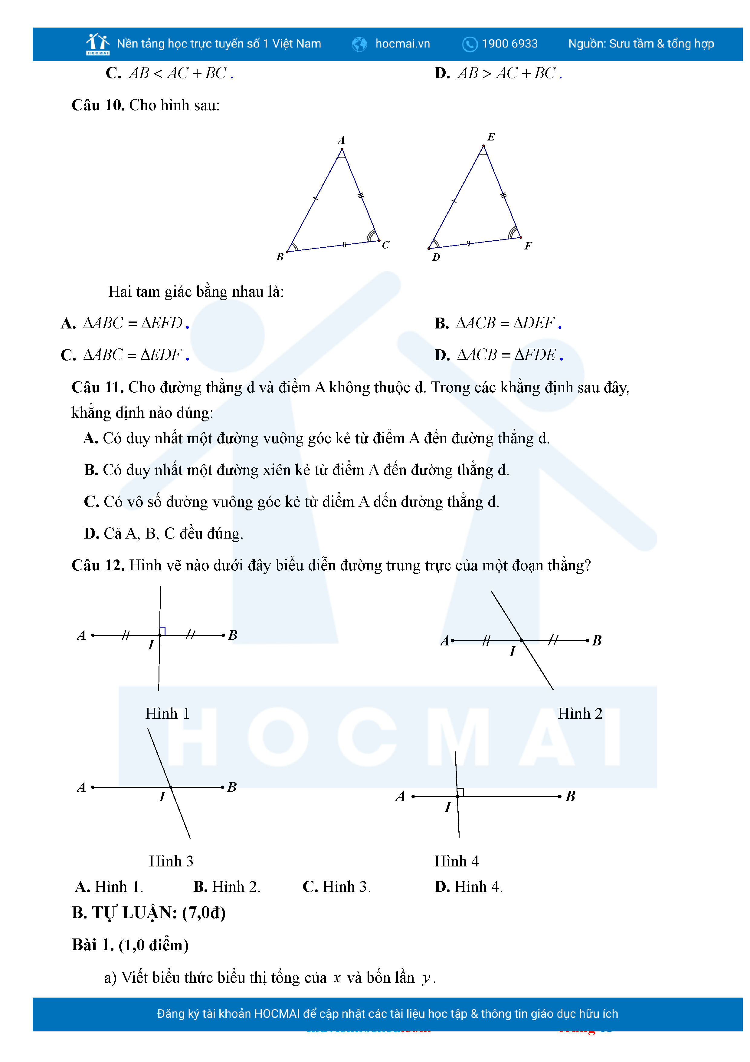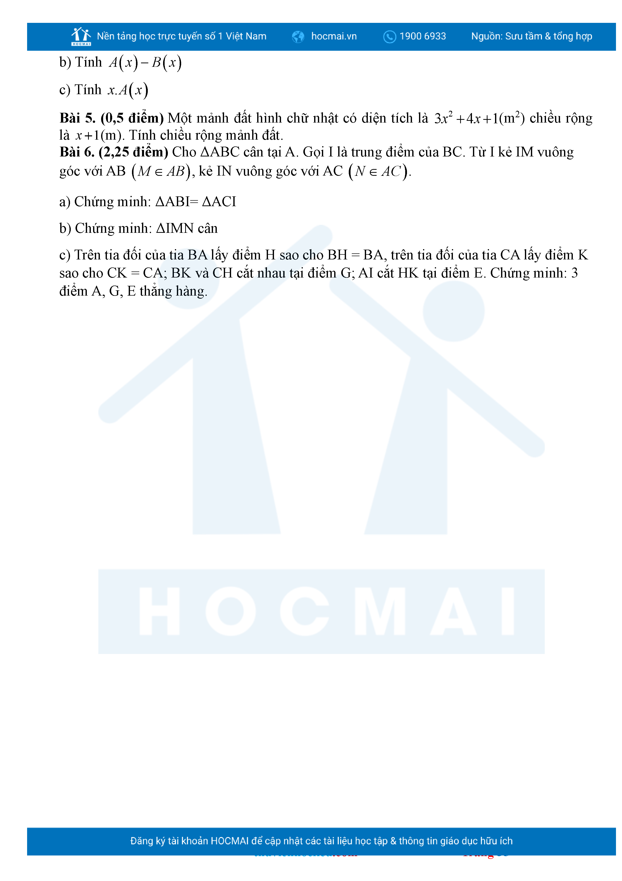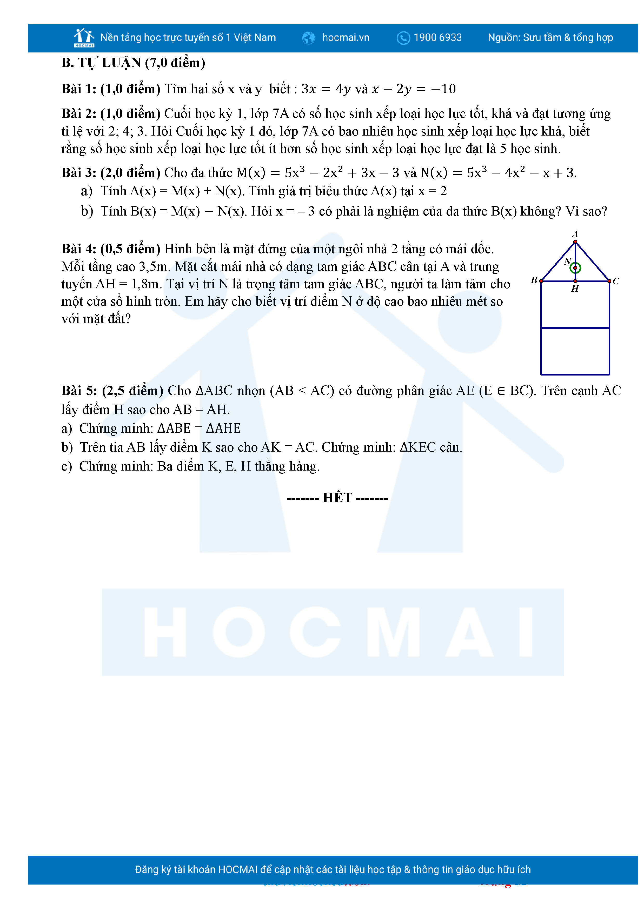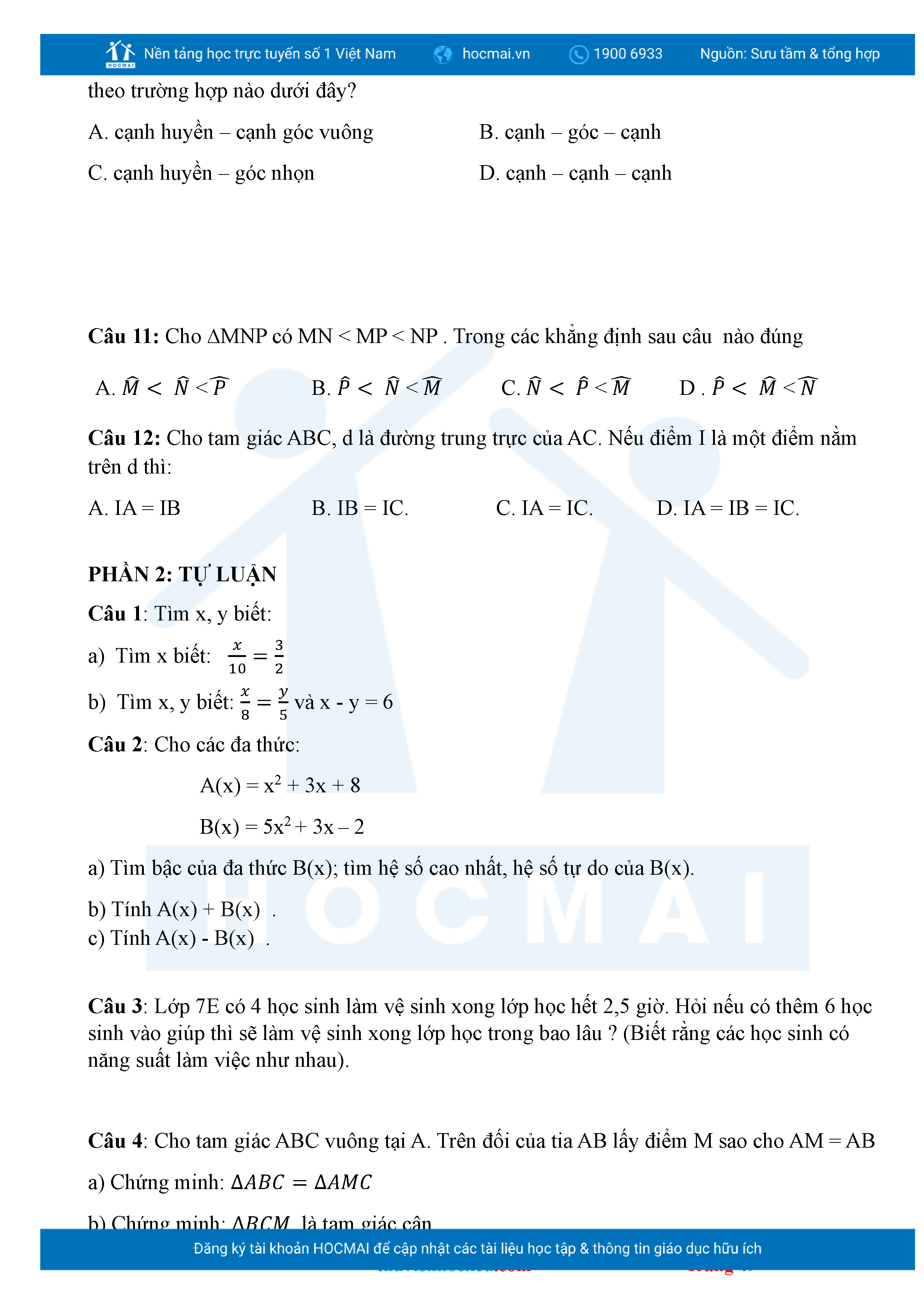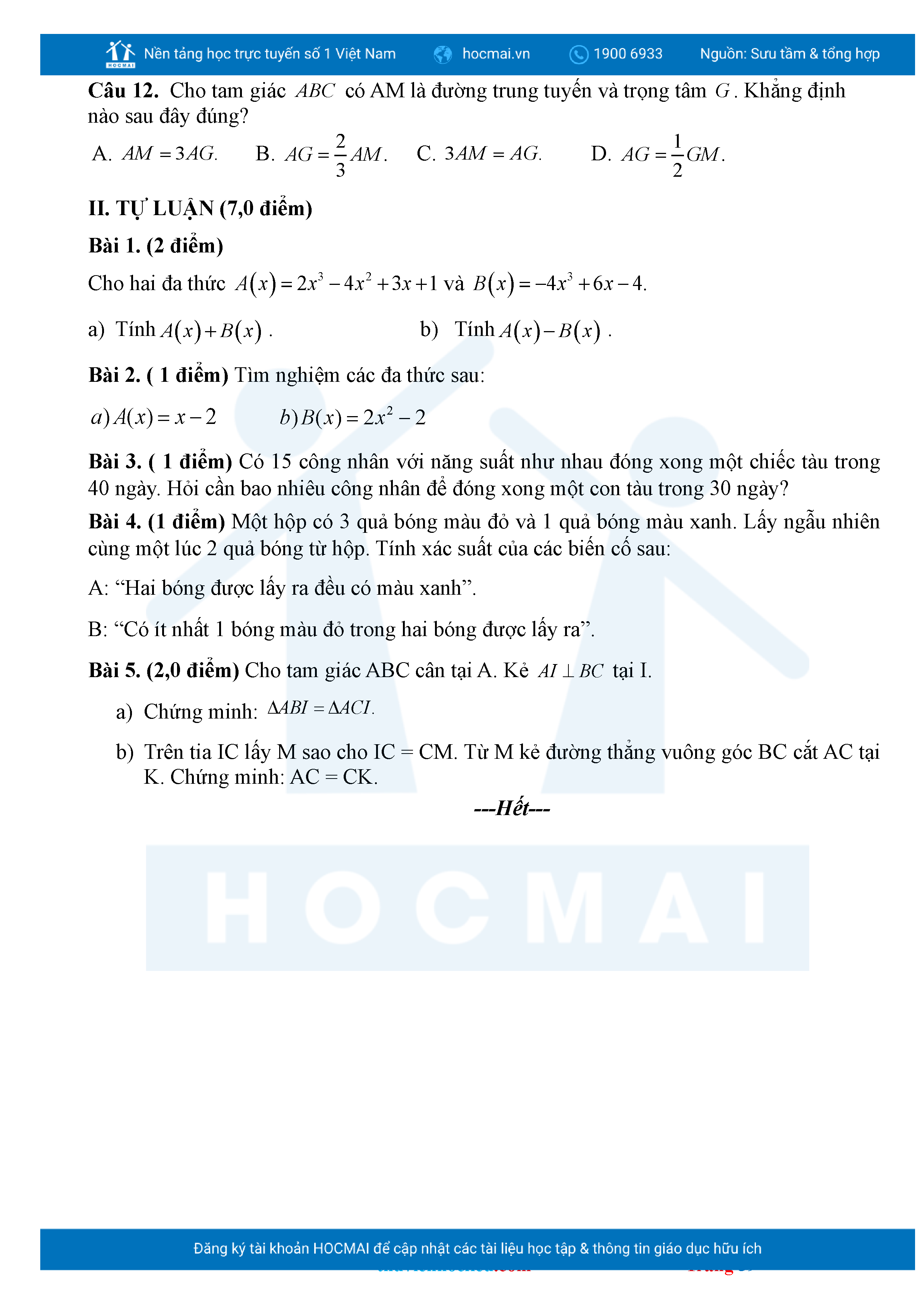 Bộ đề ôn thi môn Toán 7 HKII từ các trường ở TP Thủ Đức thuộc TPHCM kèm đáp án chi tiết.