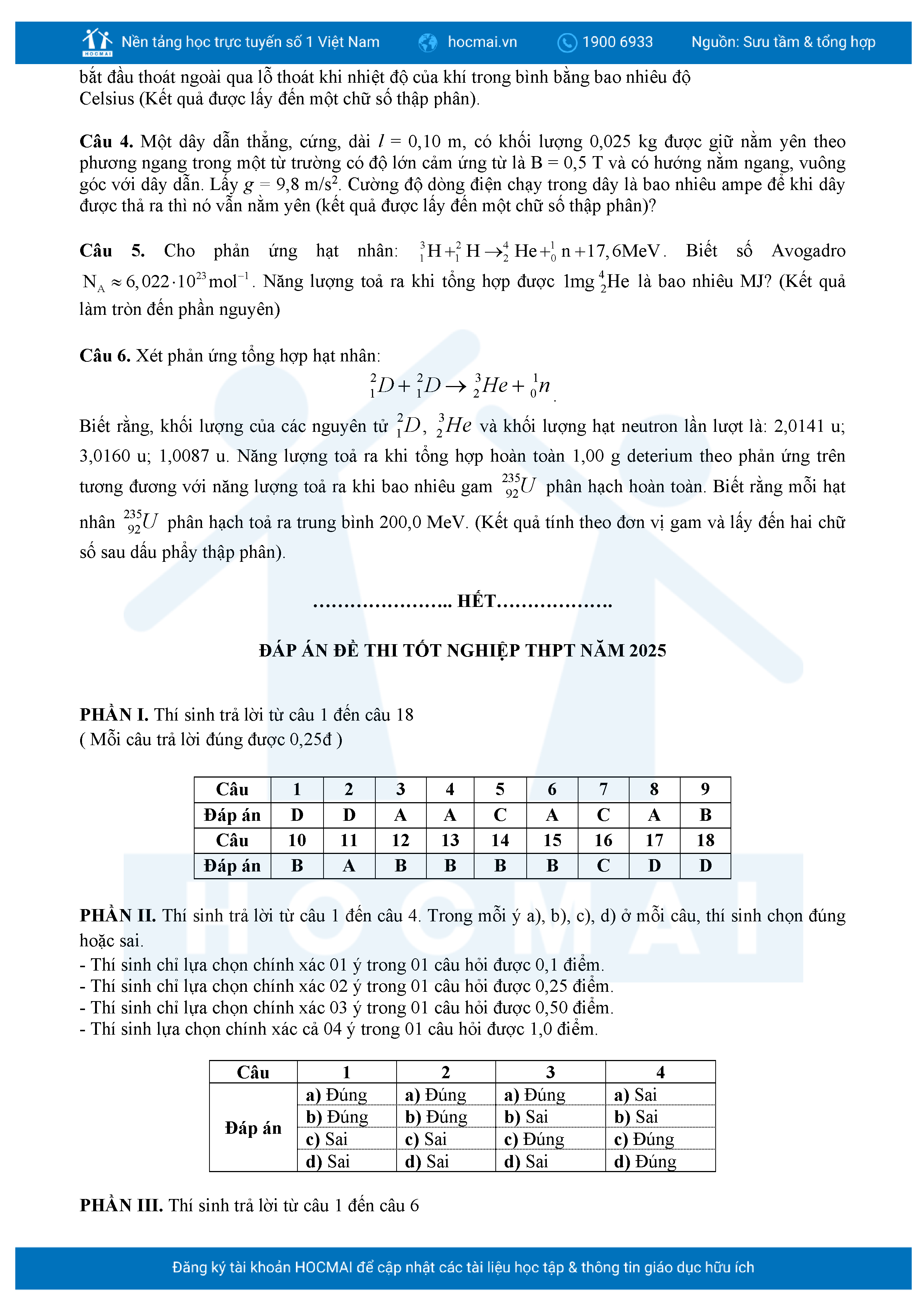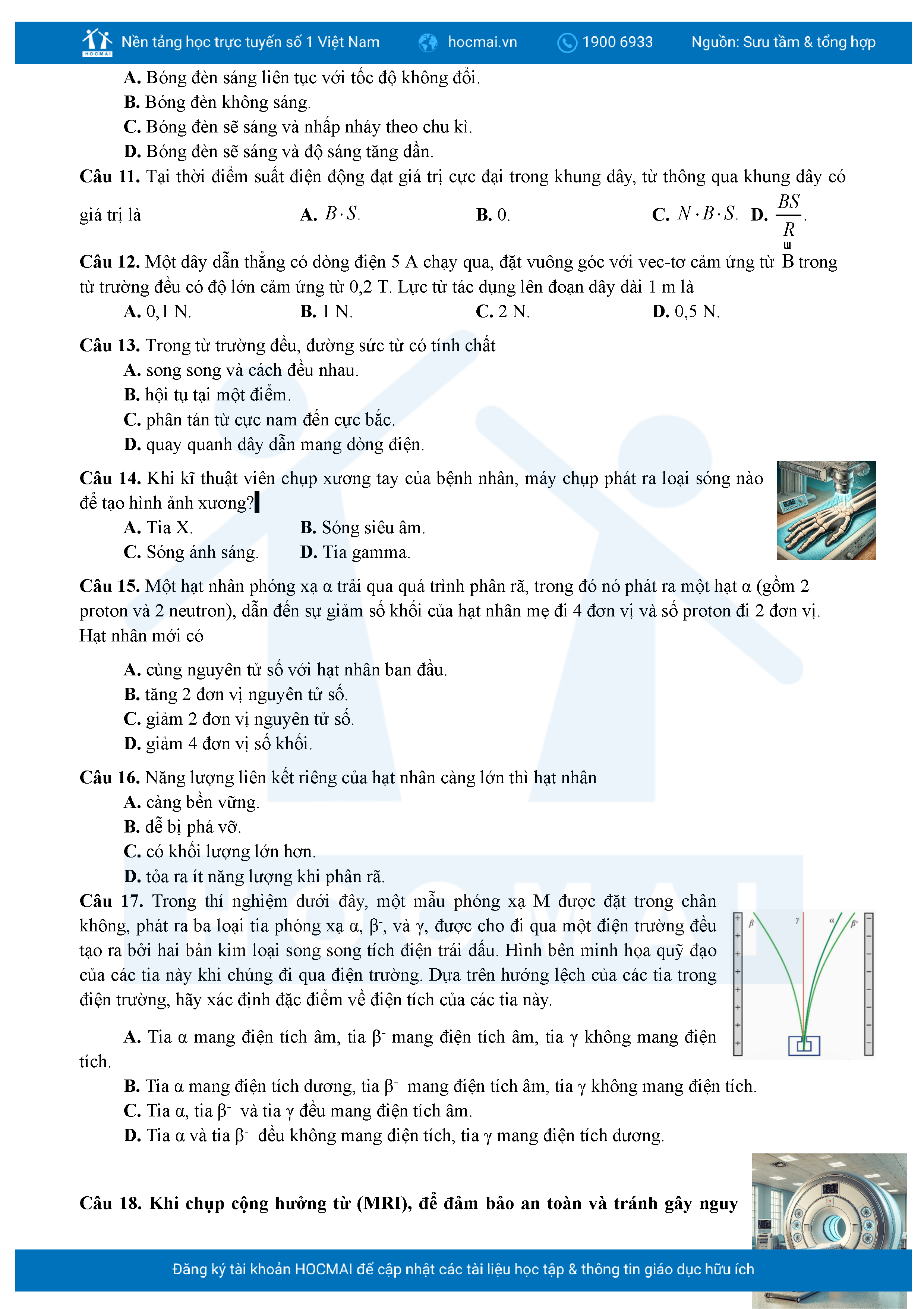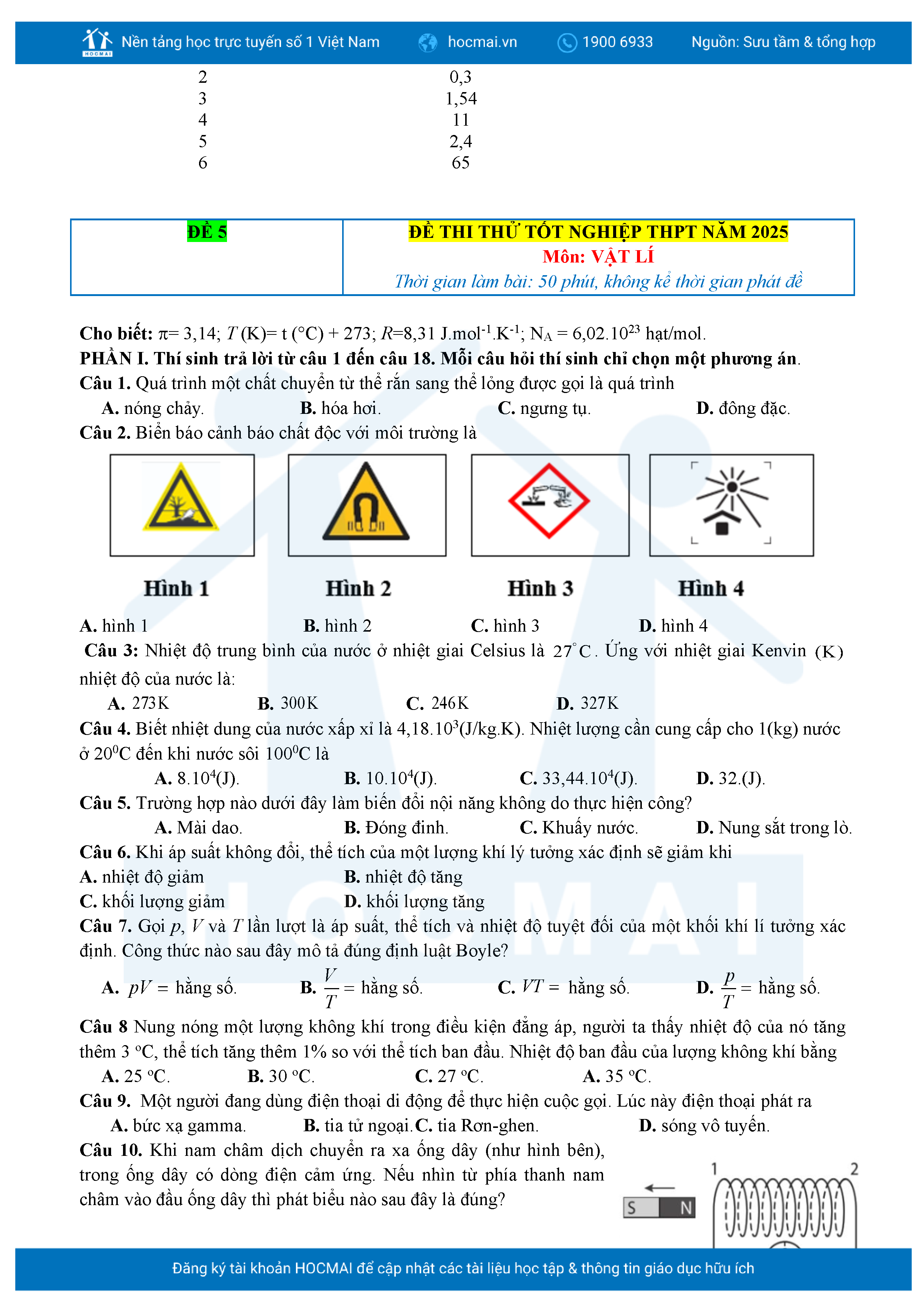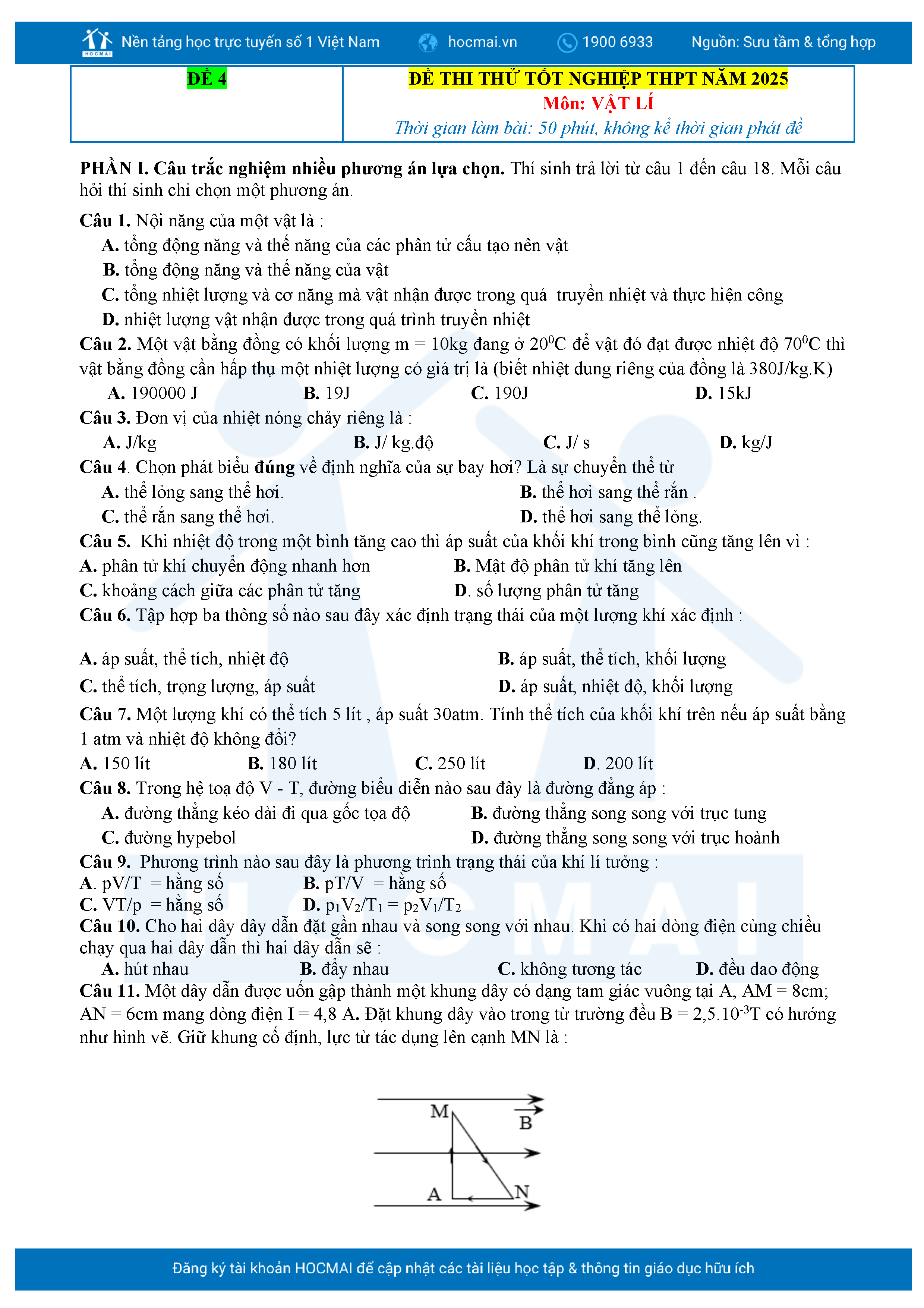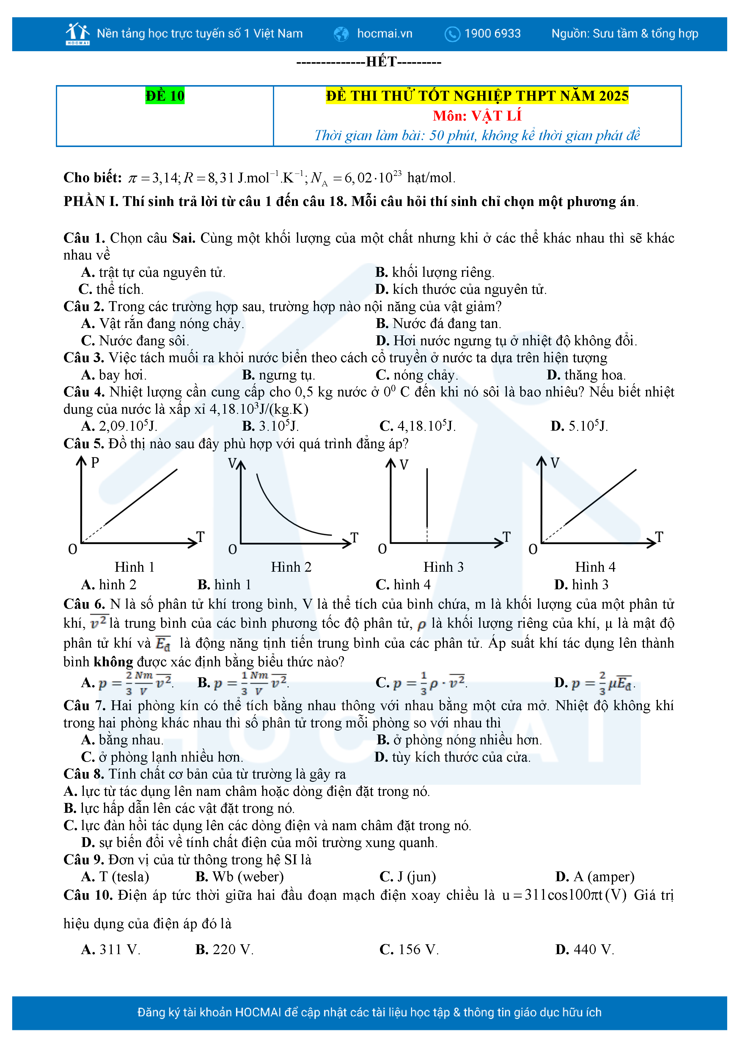 Bộ 10 đề luyện thi tốt nghiệp THPT môn Vật lí 2025 có đáp án