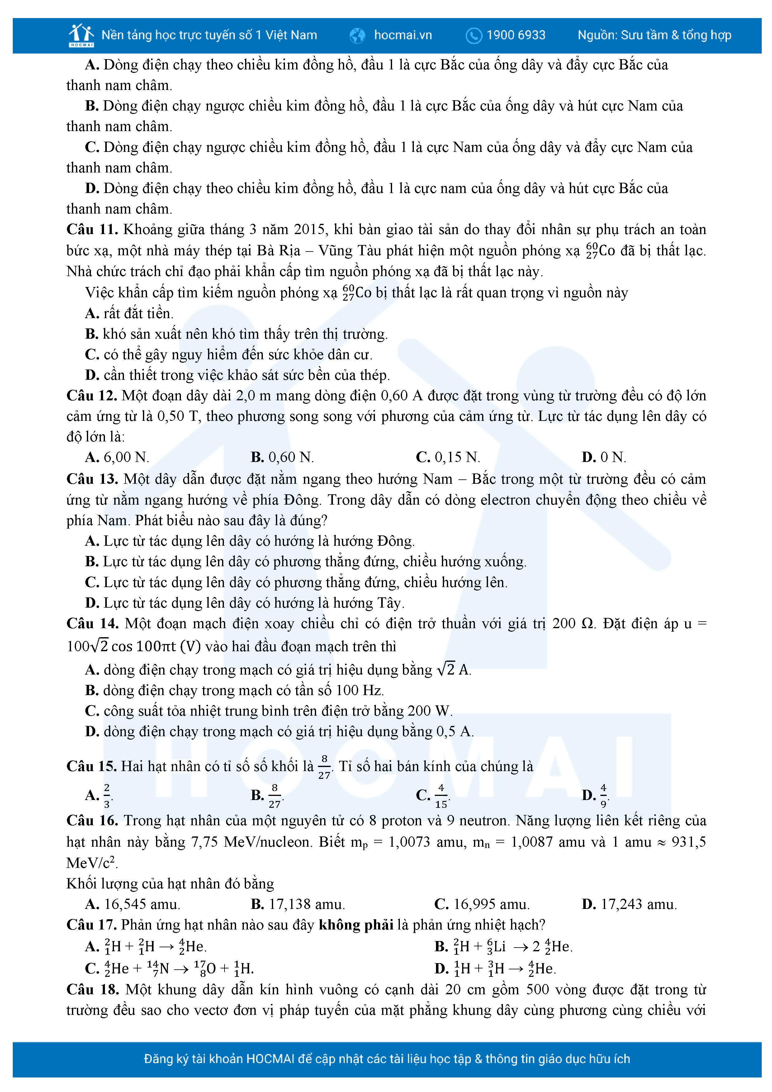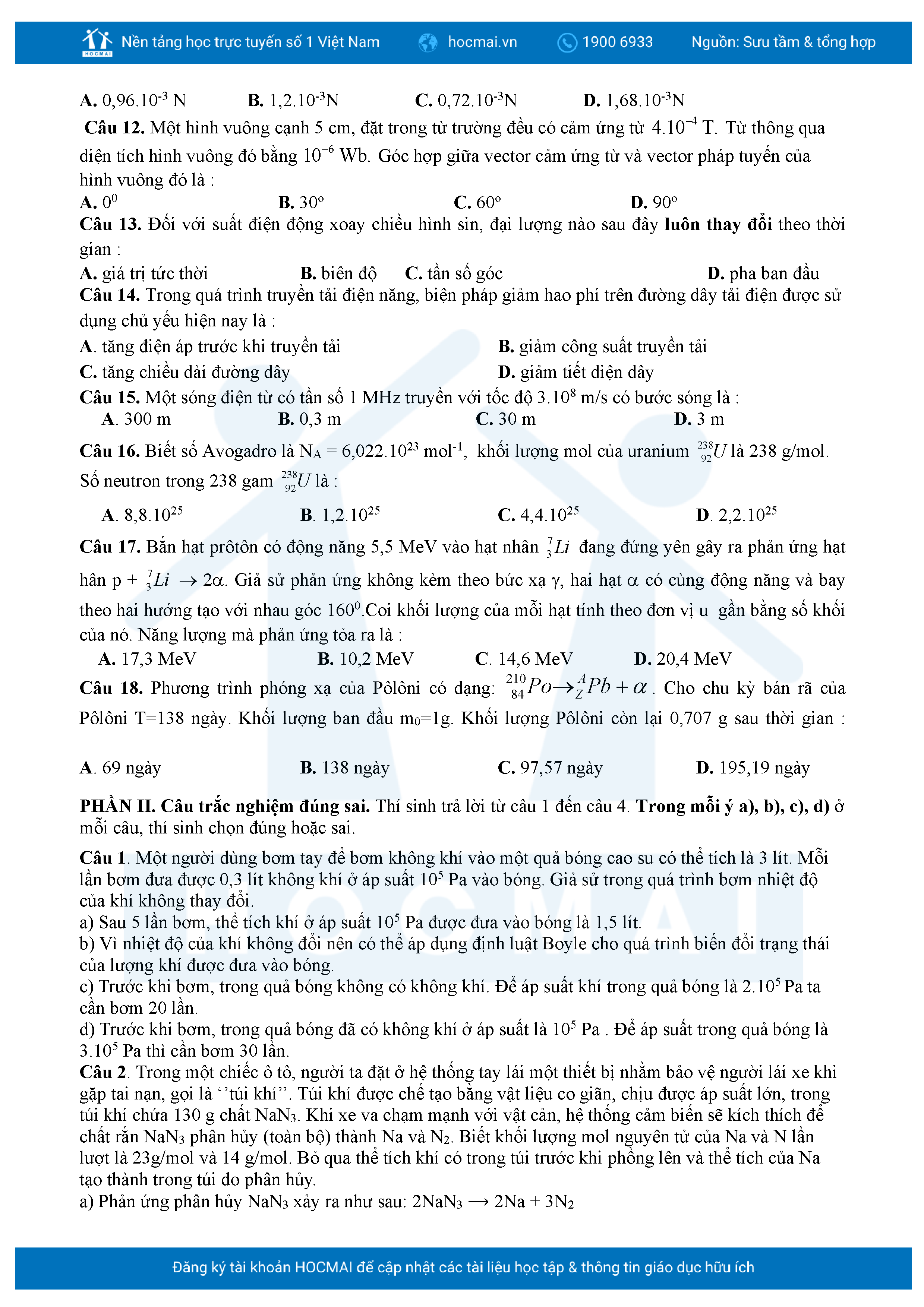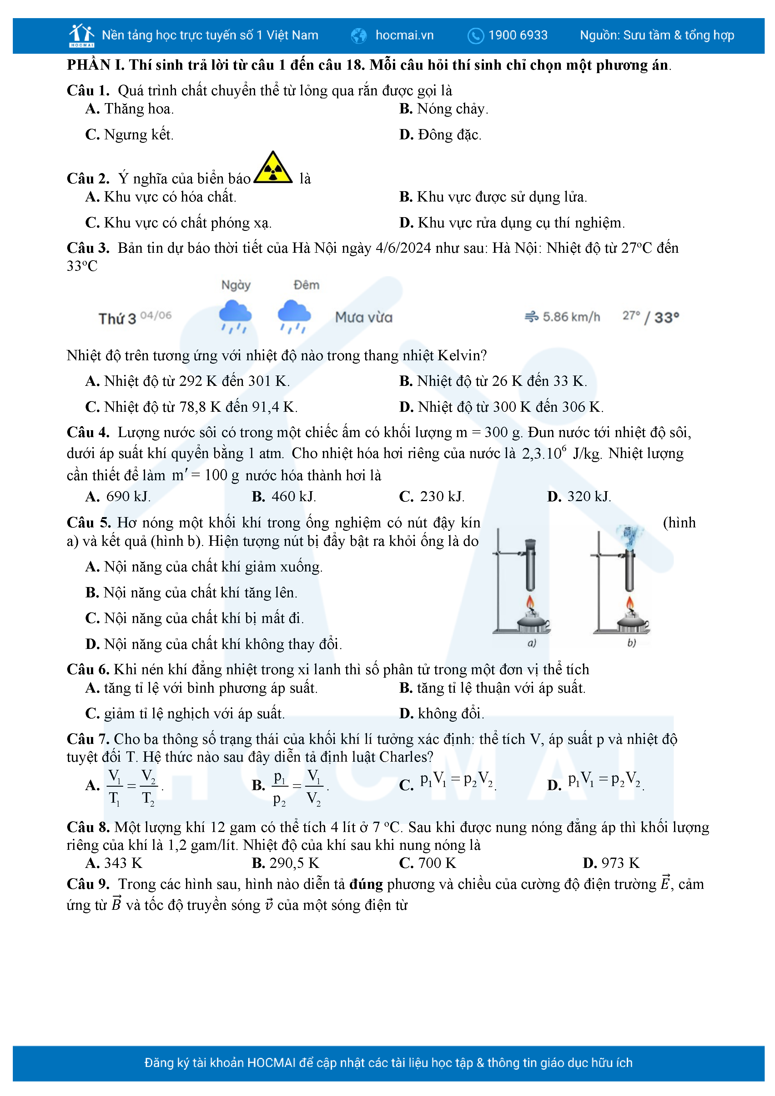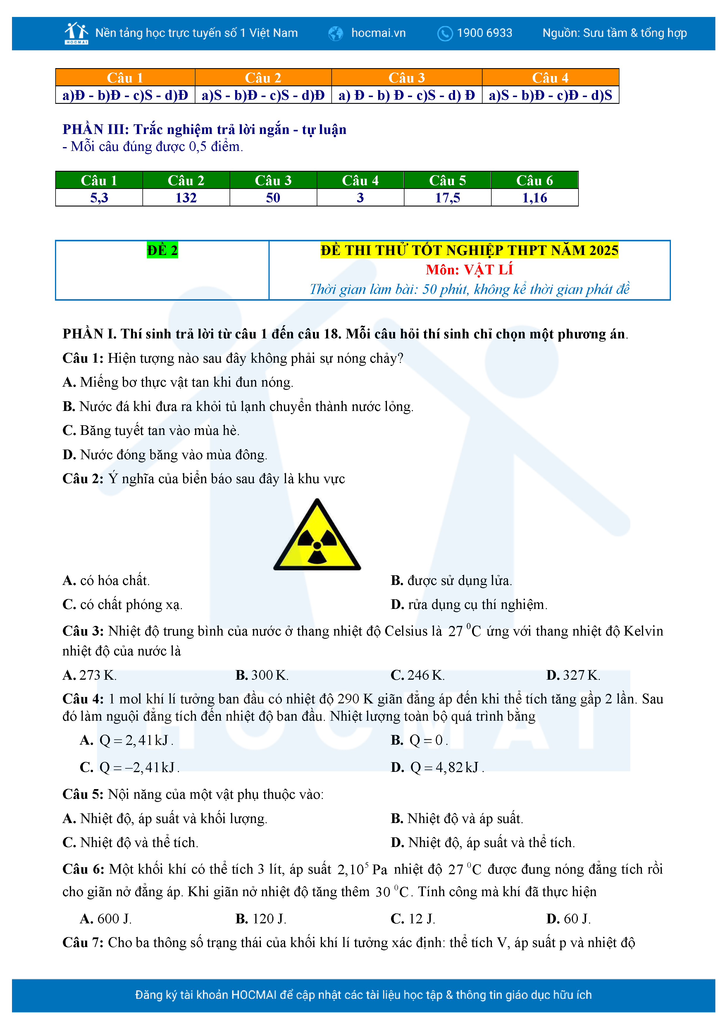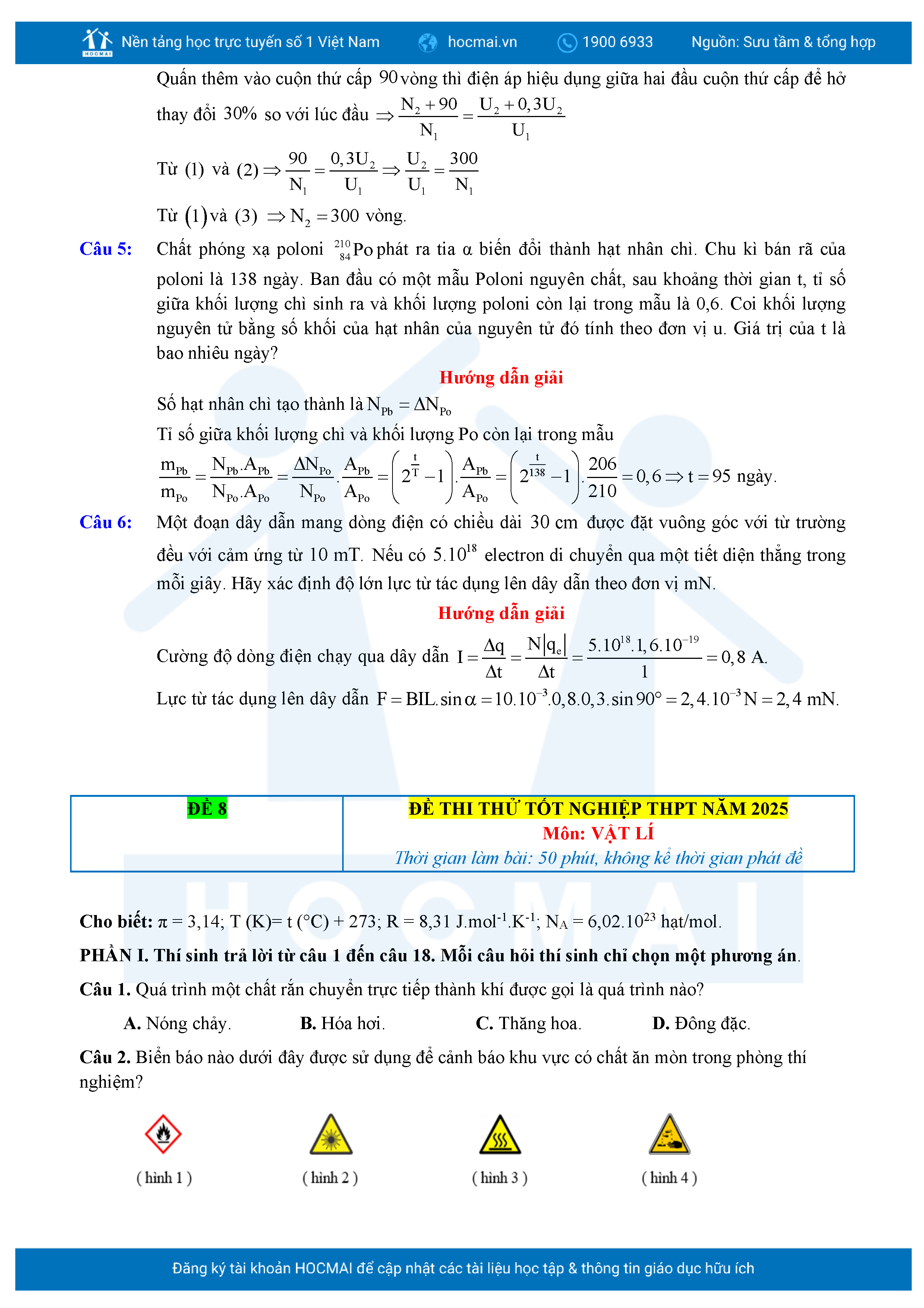 Bộ 10 đề luyện thi tốt nghiệp THPT môn Vật lí 2025 có đáp án