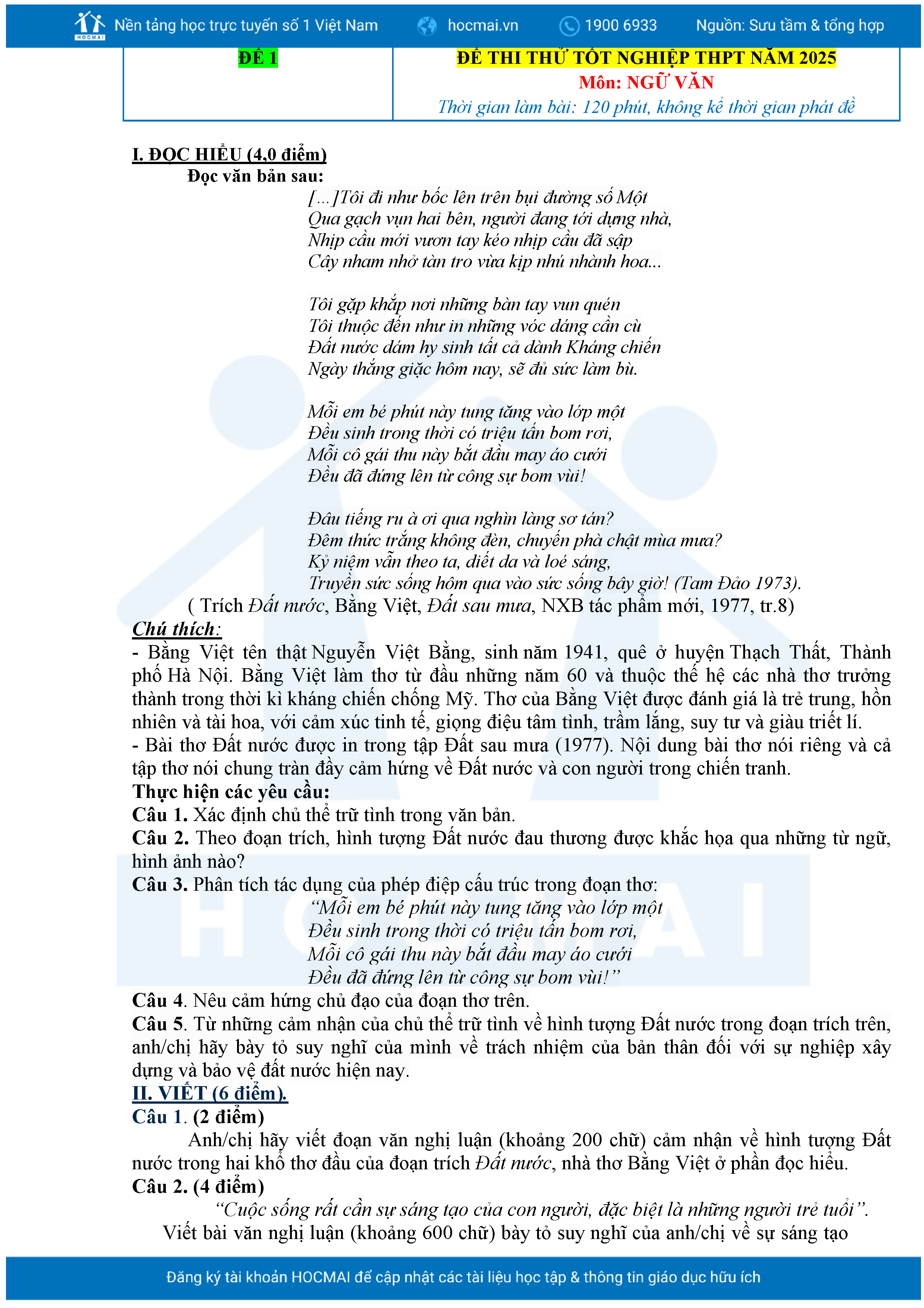 Bộ 10 đề thi thử tốt nghiệp THPT môn Ngữ văn 2025 có đáp án