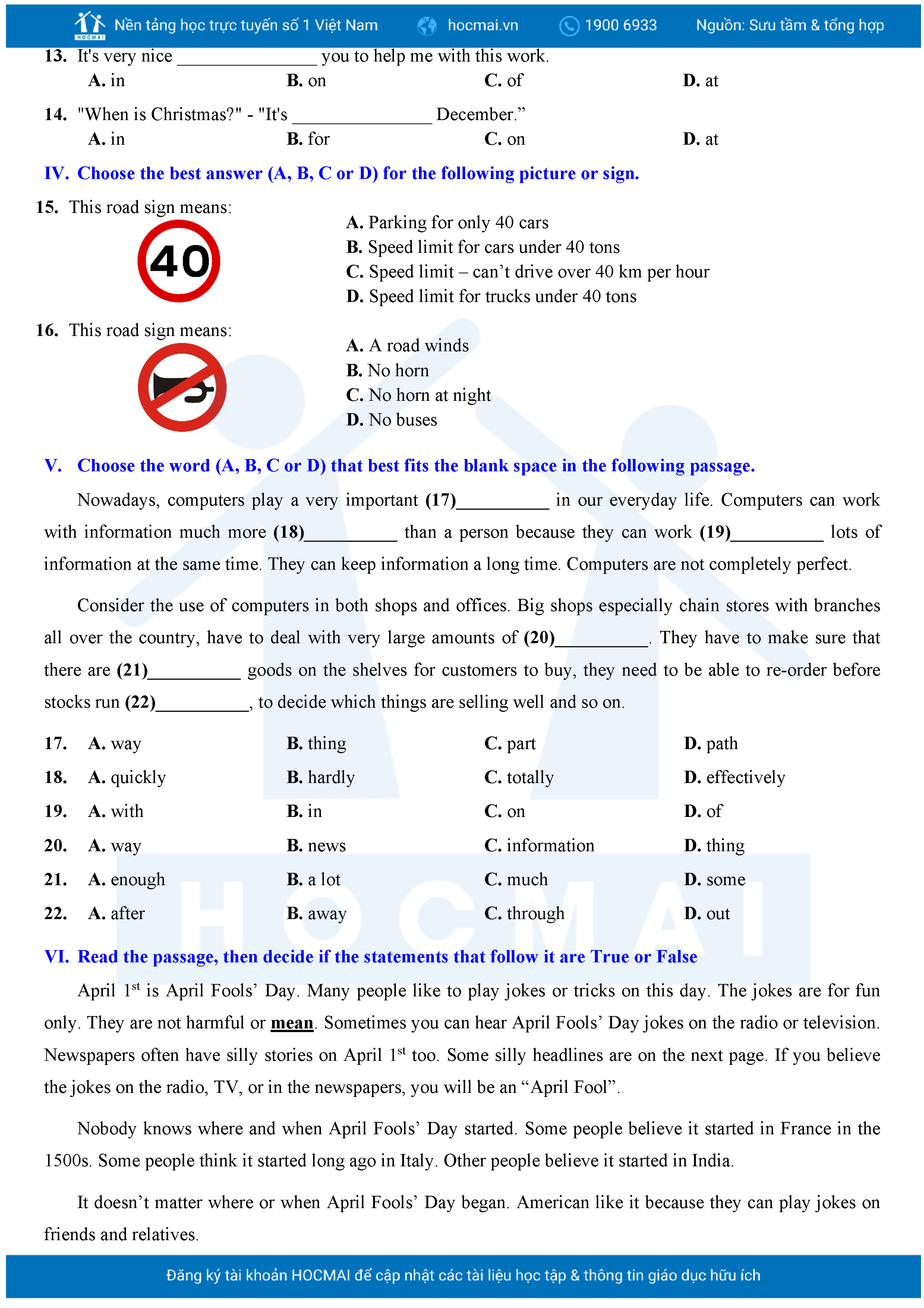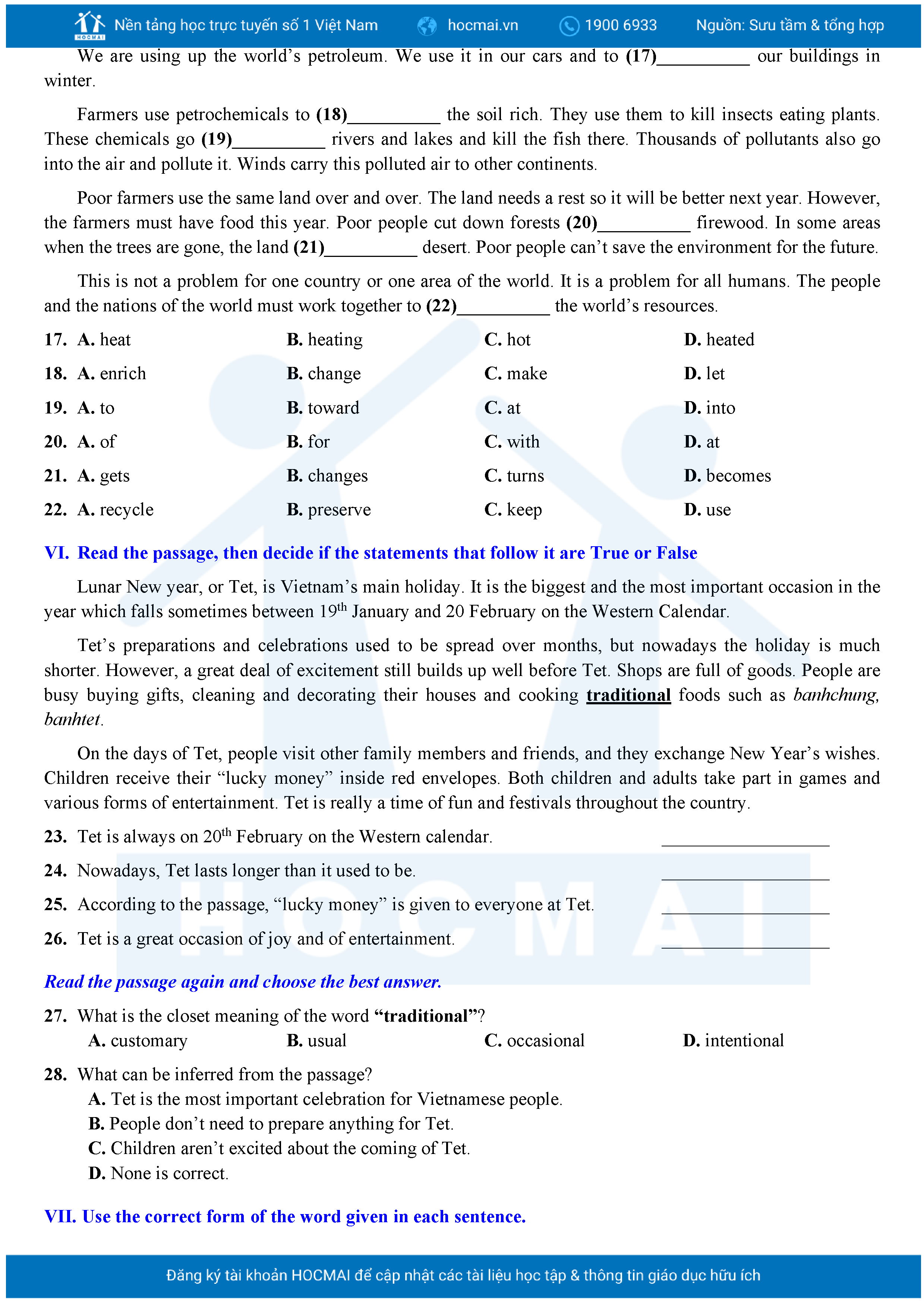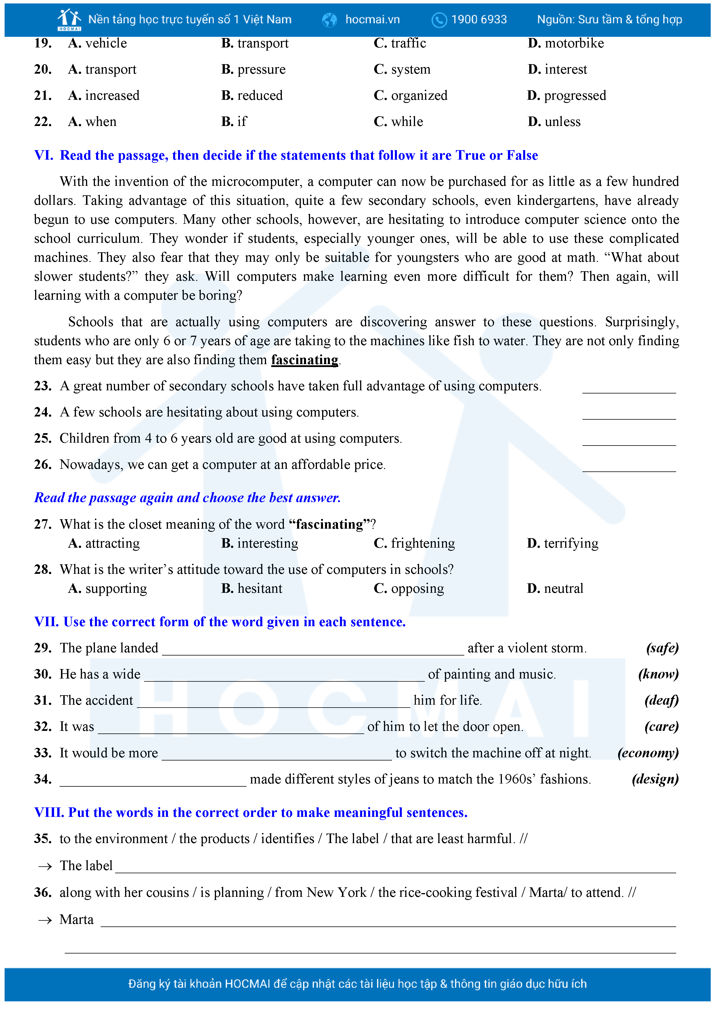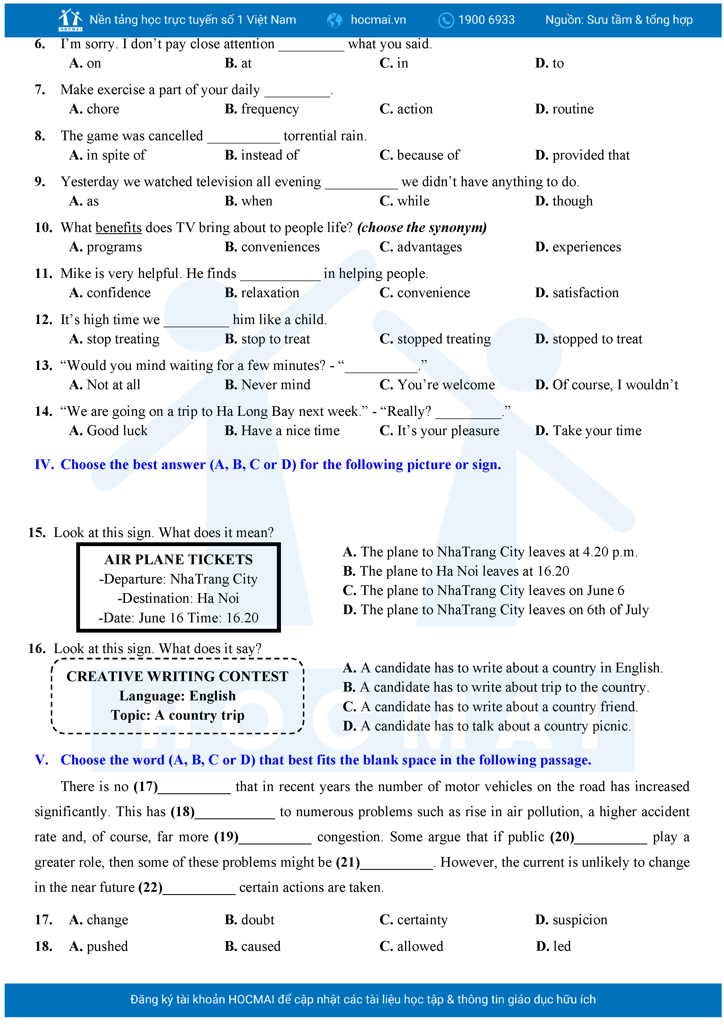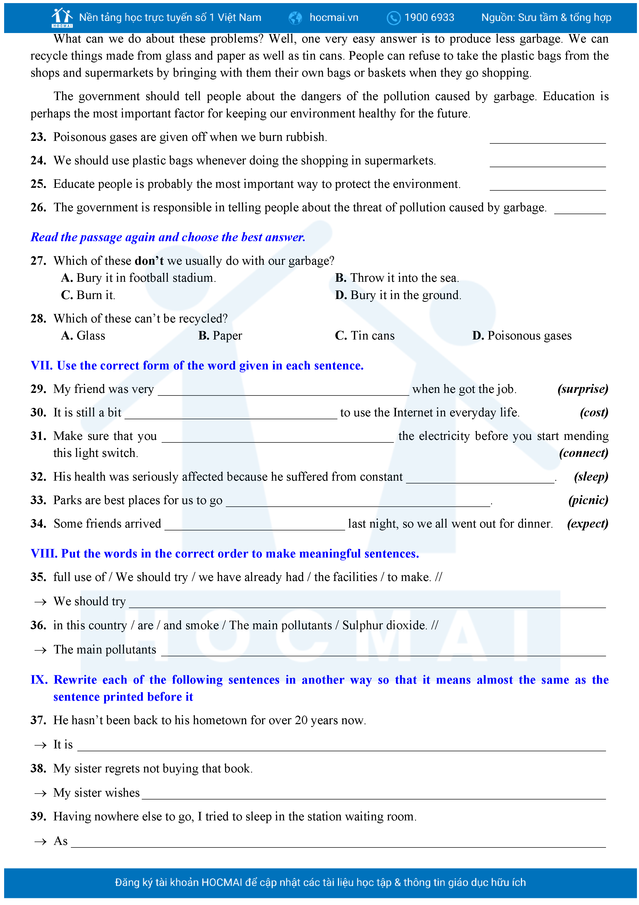 Bộ 10 đề Tiếng Anh ôn thi vào 10 TPHCM kèm lời giải.